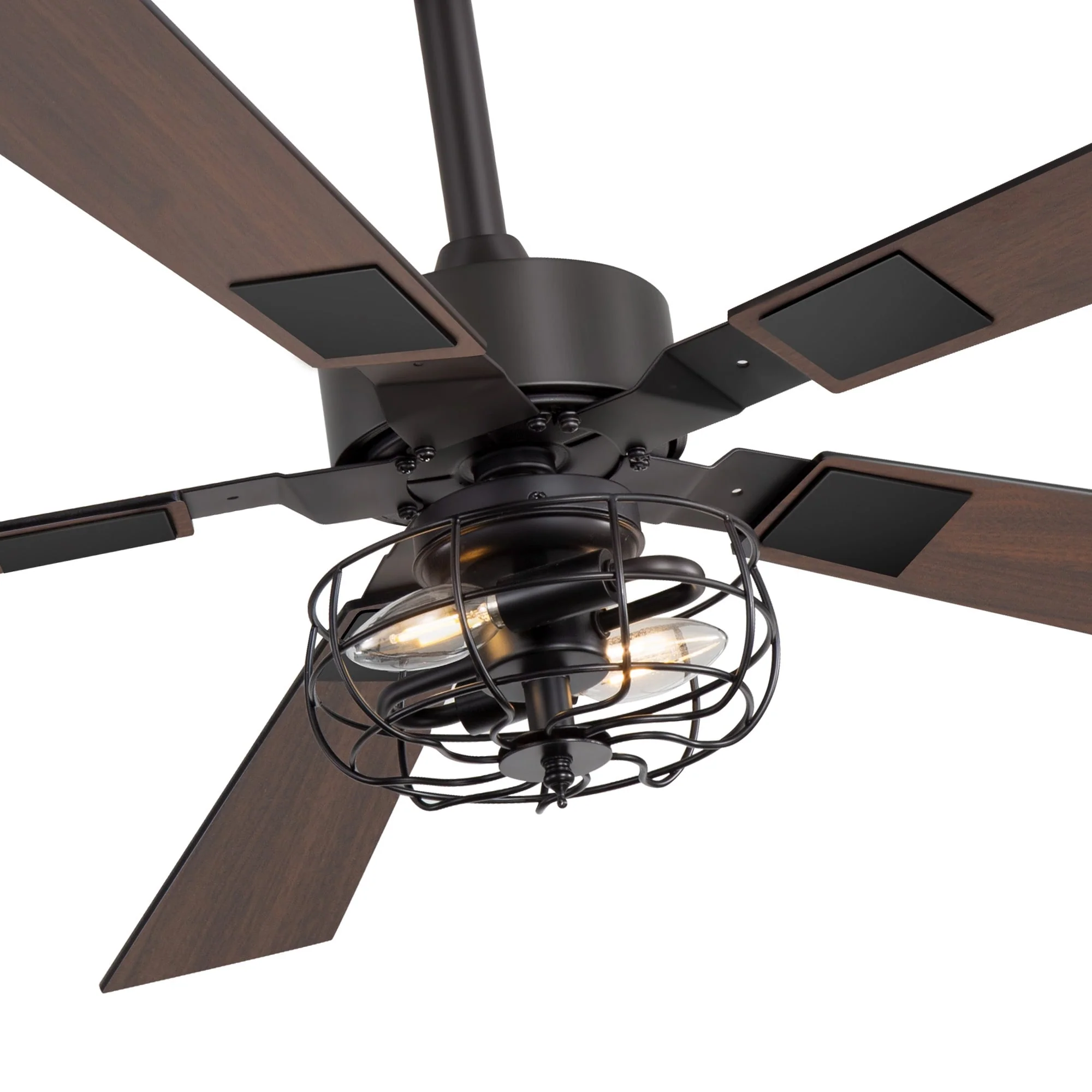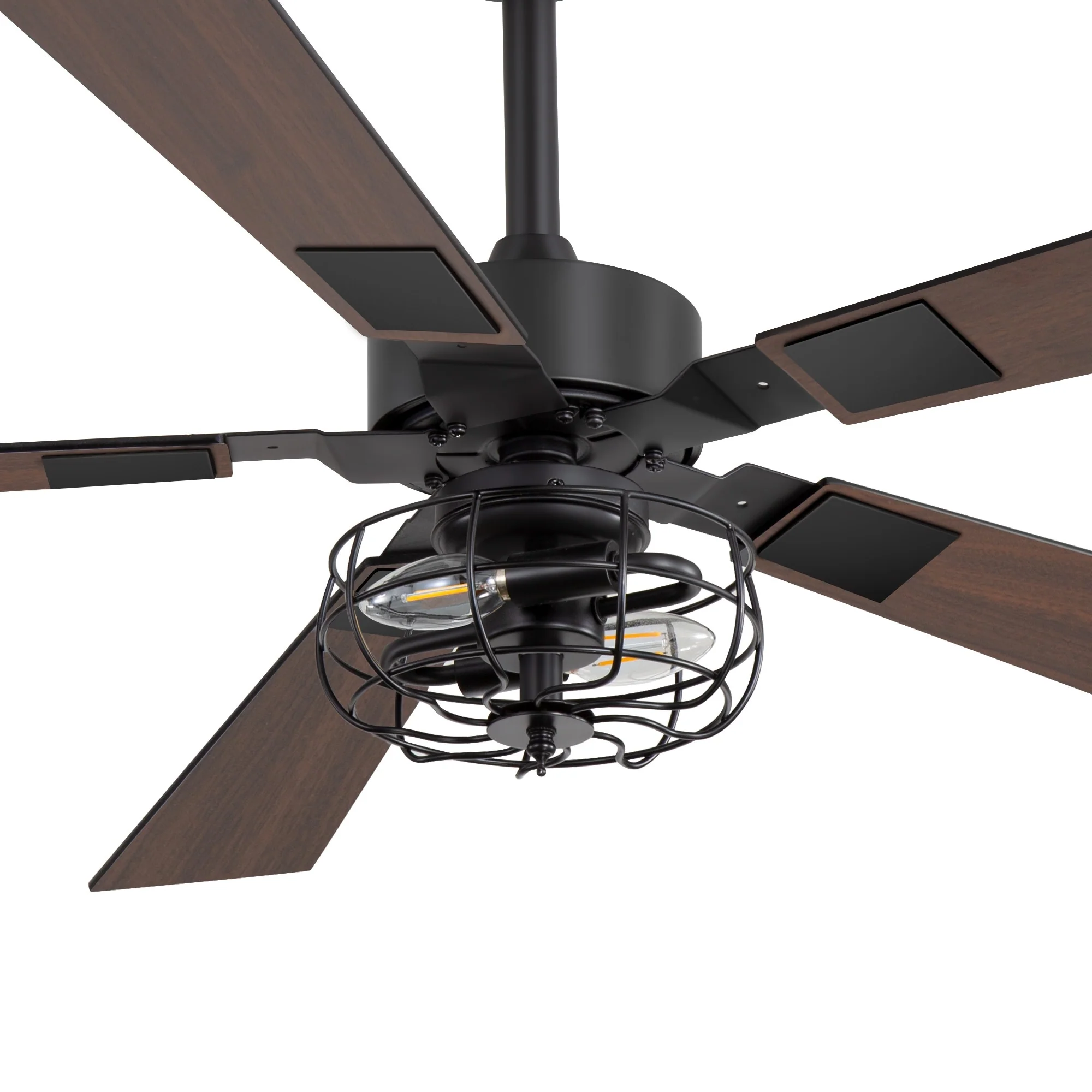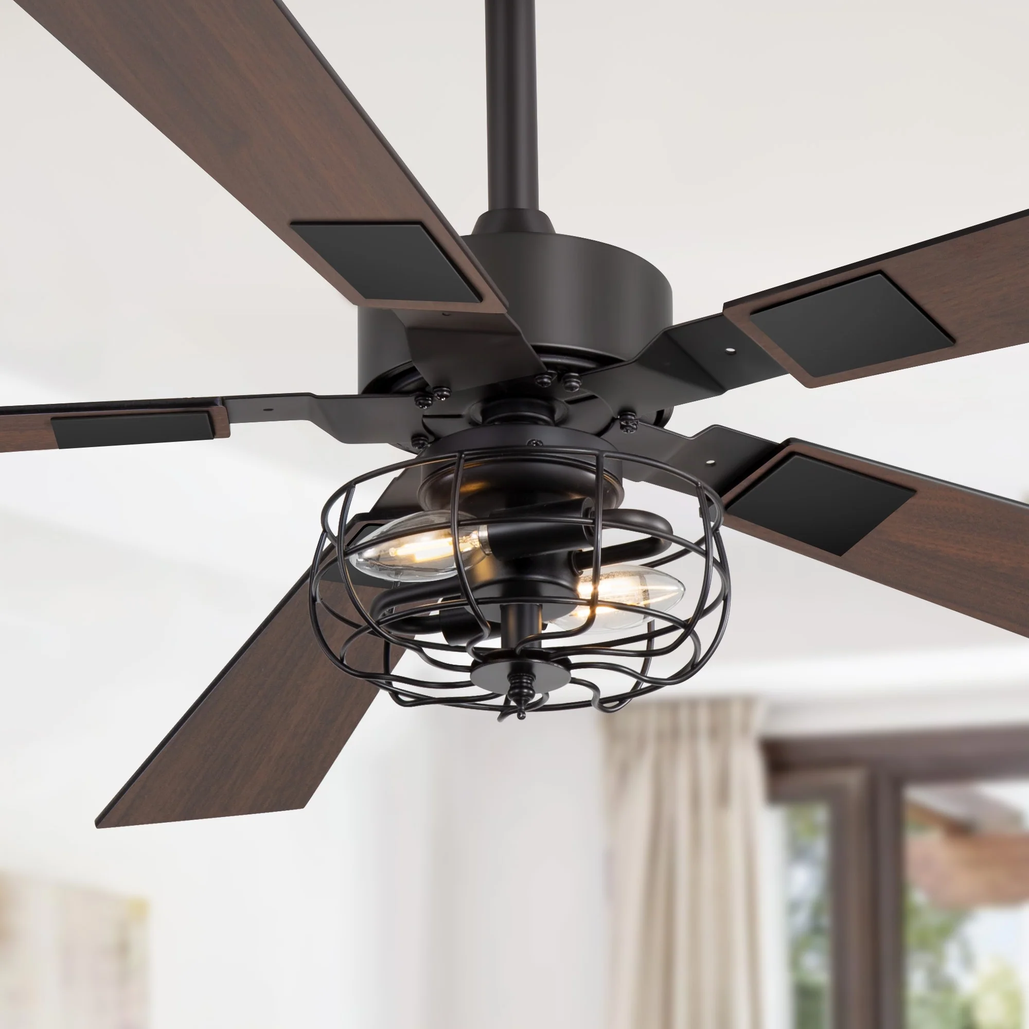 Double-Color Blades Ceiling Fan with Light, 66" Reversible DC Motor Ceiling Fan Chandelier for Living Room Bedroom, Black+Brown