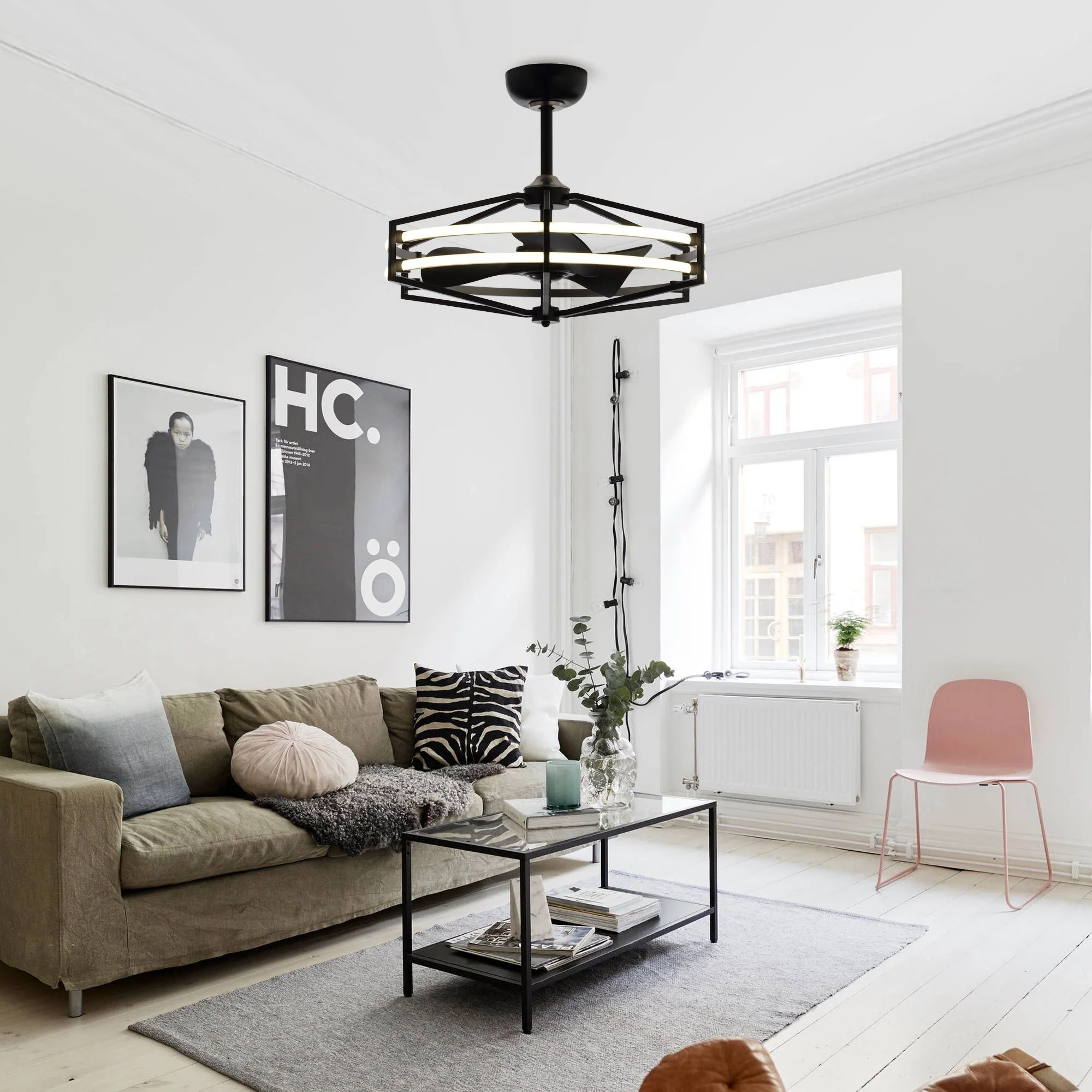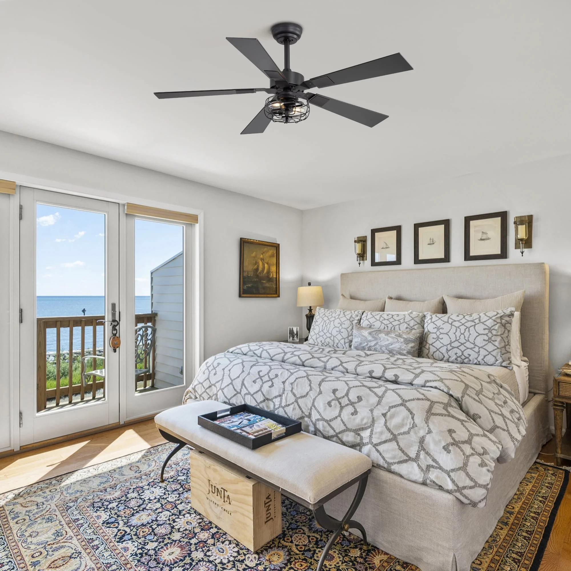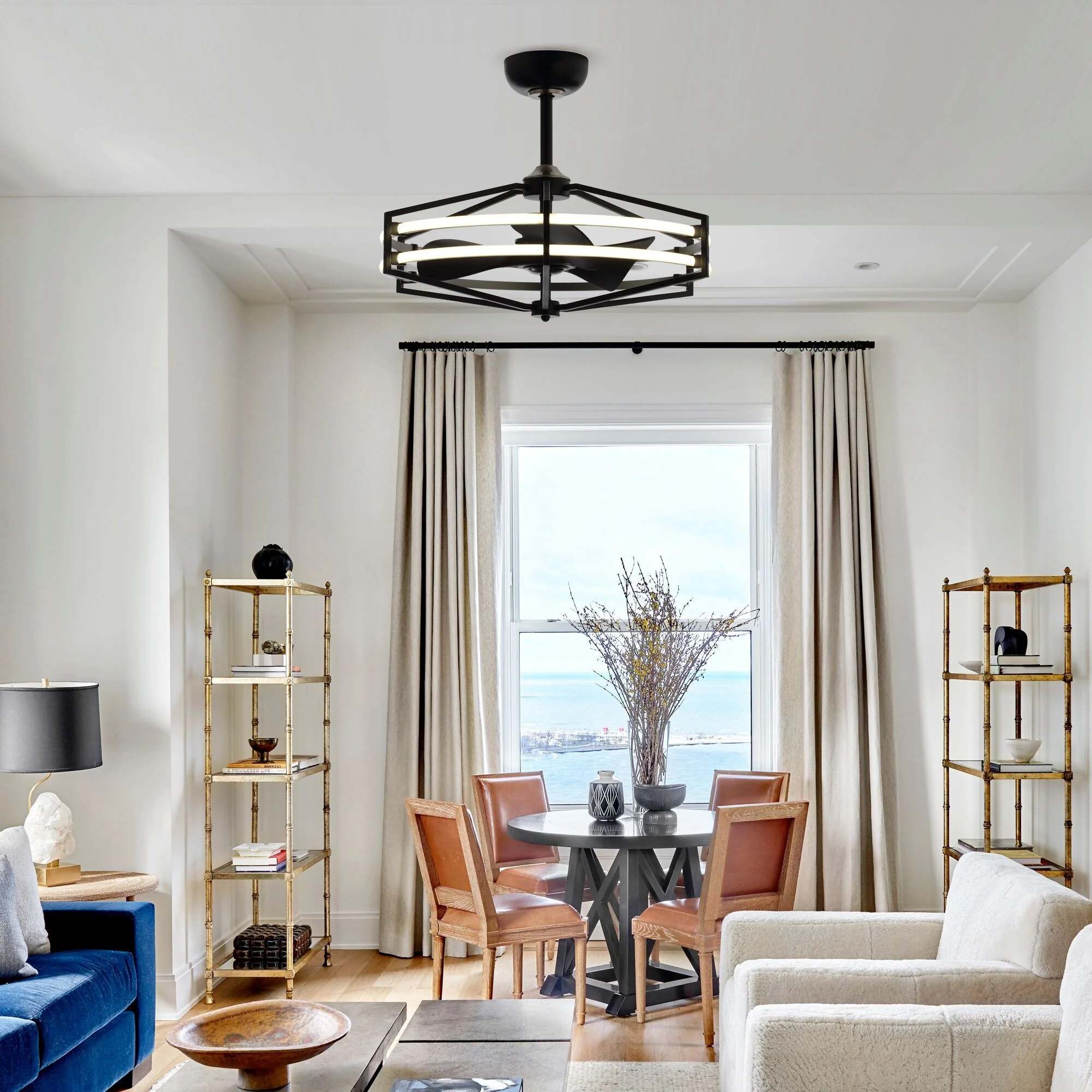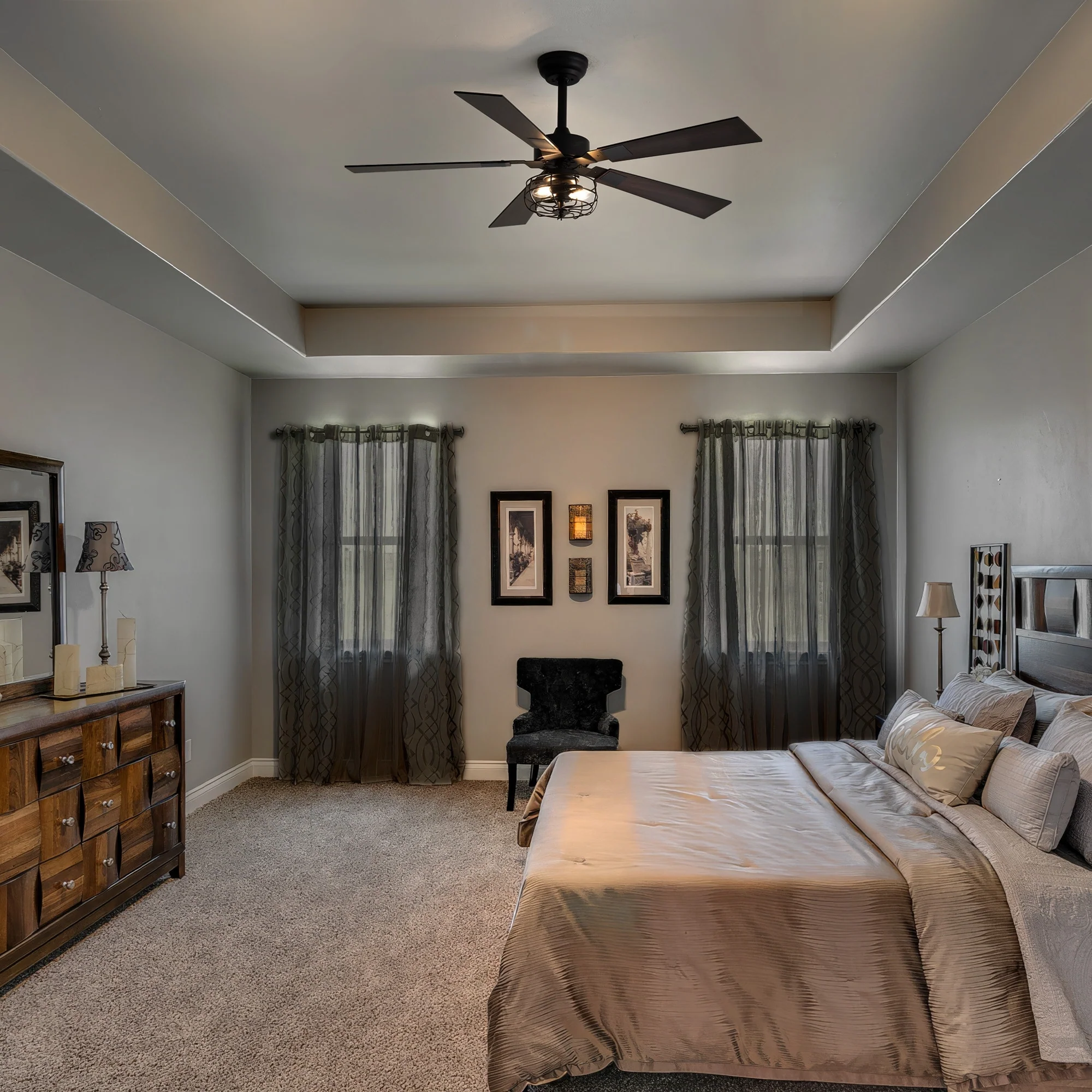 Double-Color Blades Ceiling Fan with Light, 66" Reversible DC Motor Ceiling Fan Chandelier for Living Room Bedroom, Black+Brown
