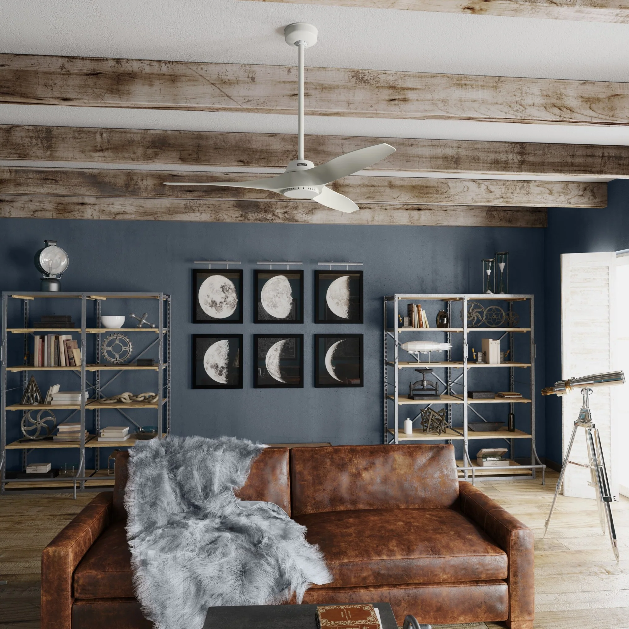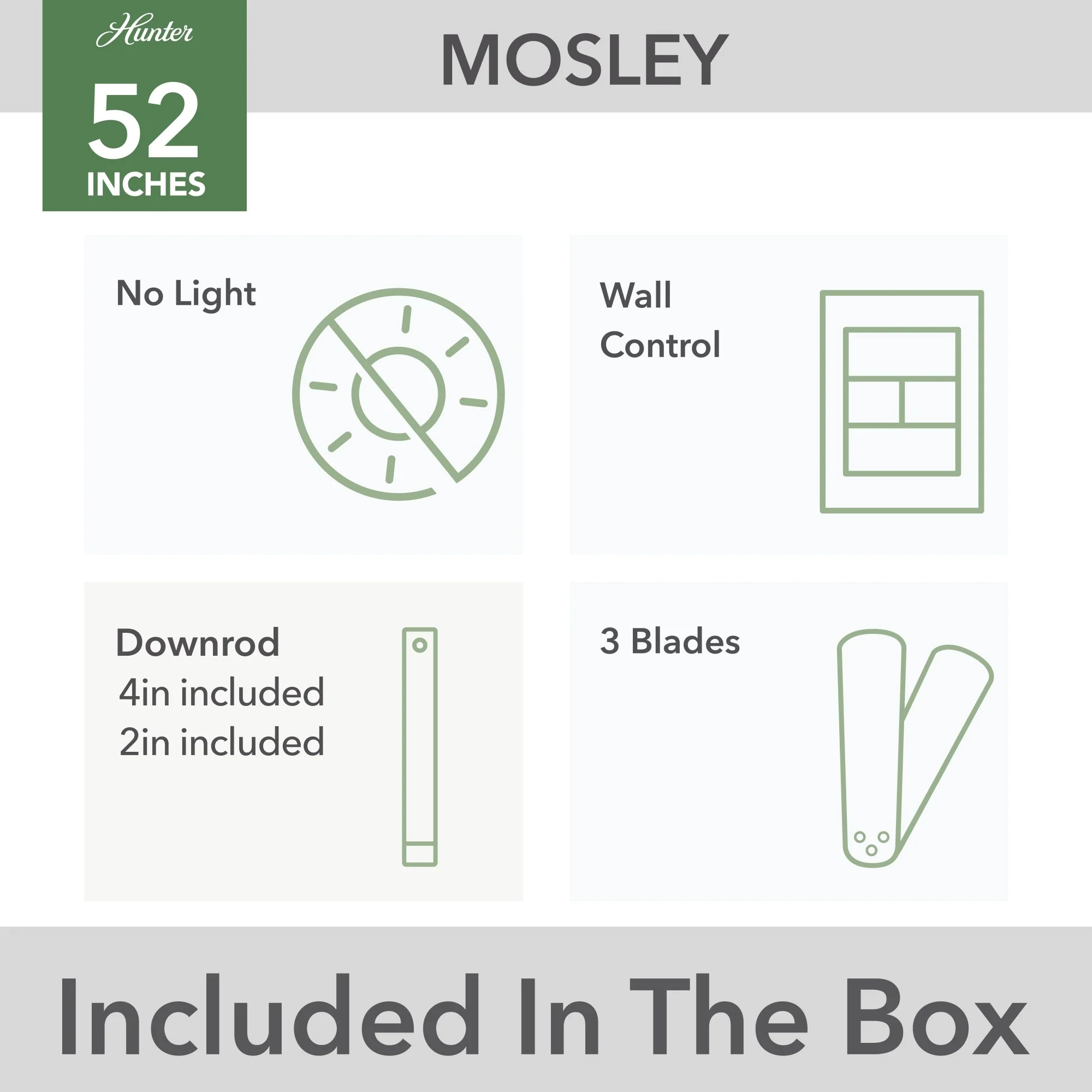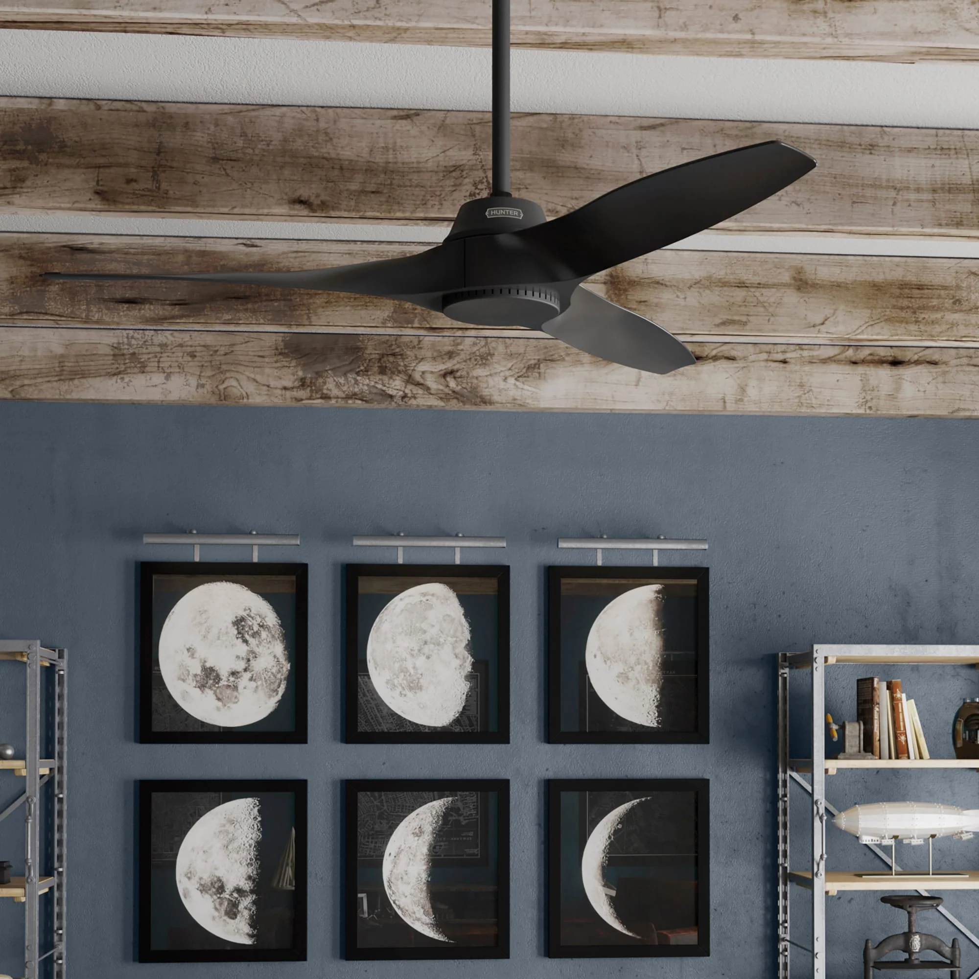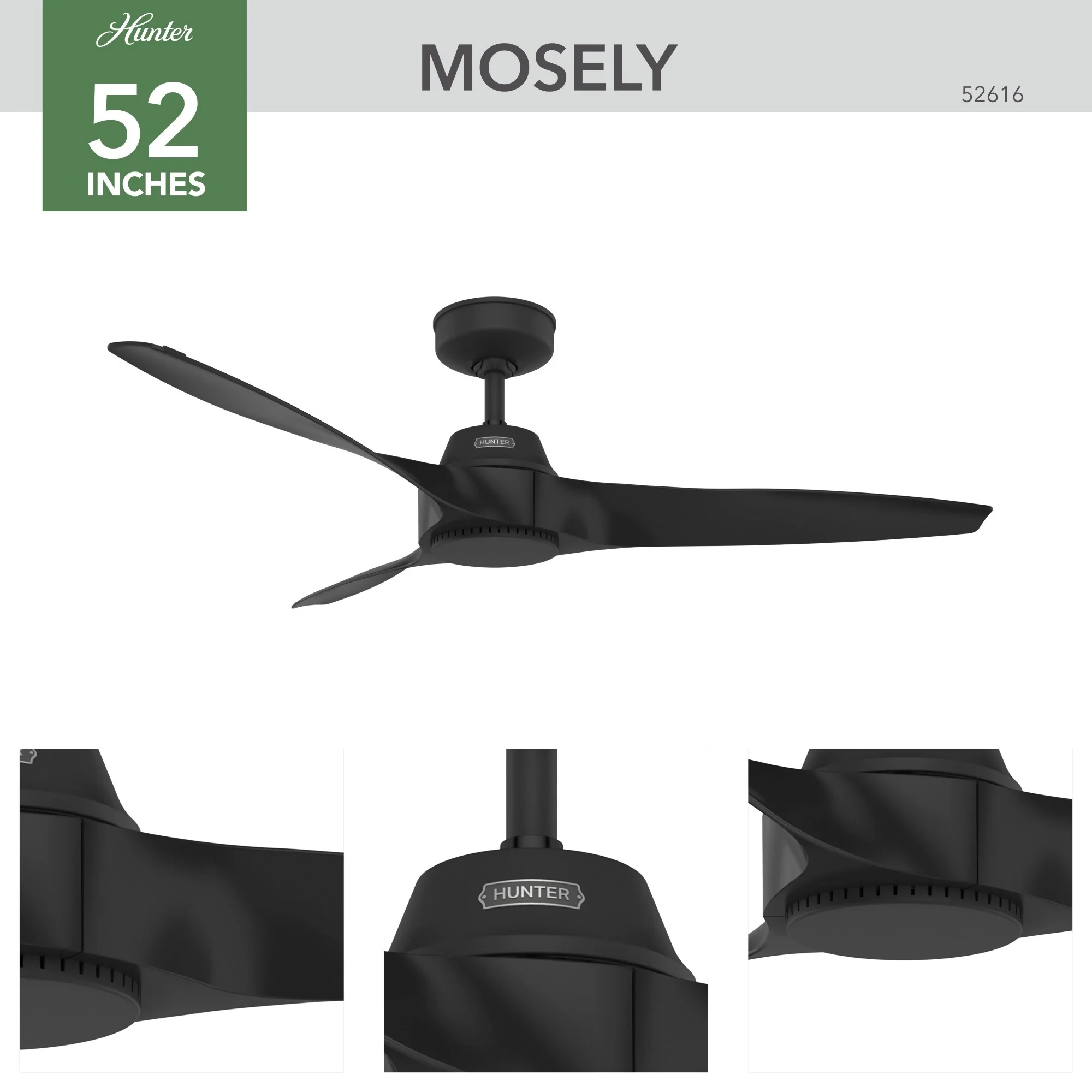 Hunter 52" Mosley Outdoor Ceiling Fan and Wall Control, Damp Rated - Industrial, Modern, Transitional