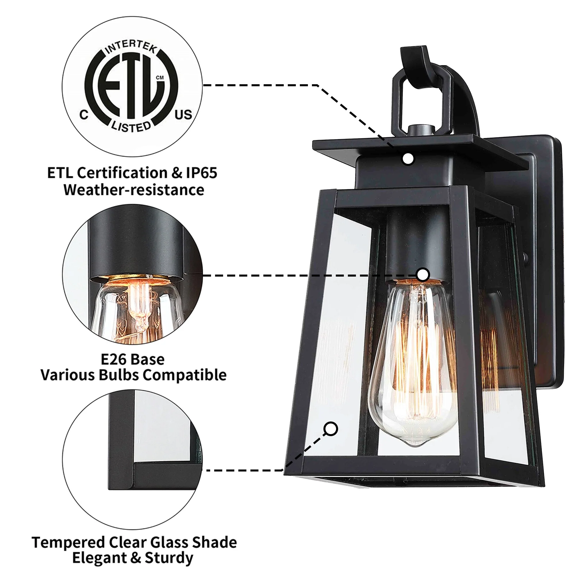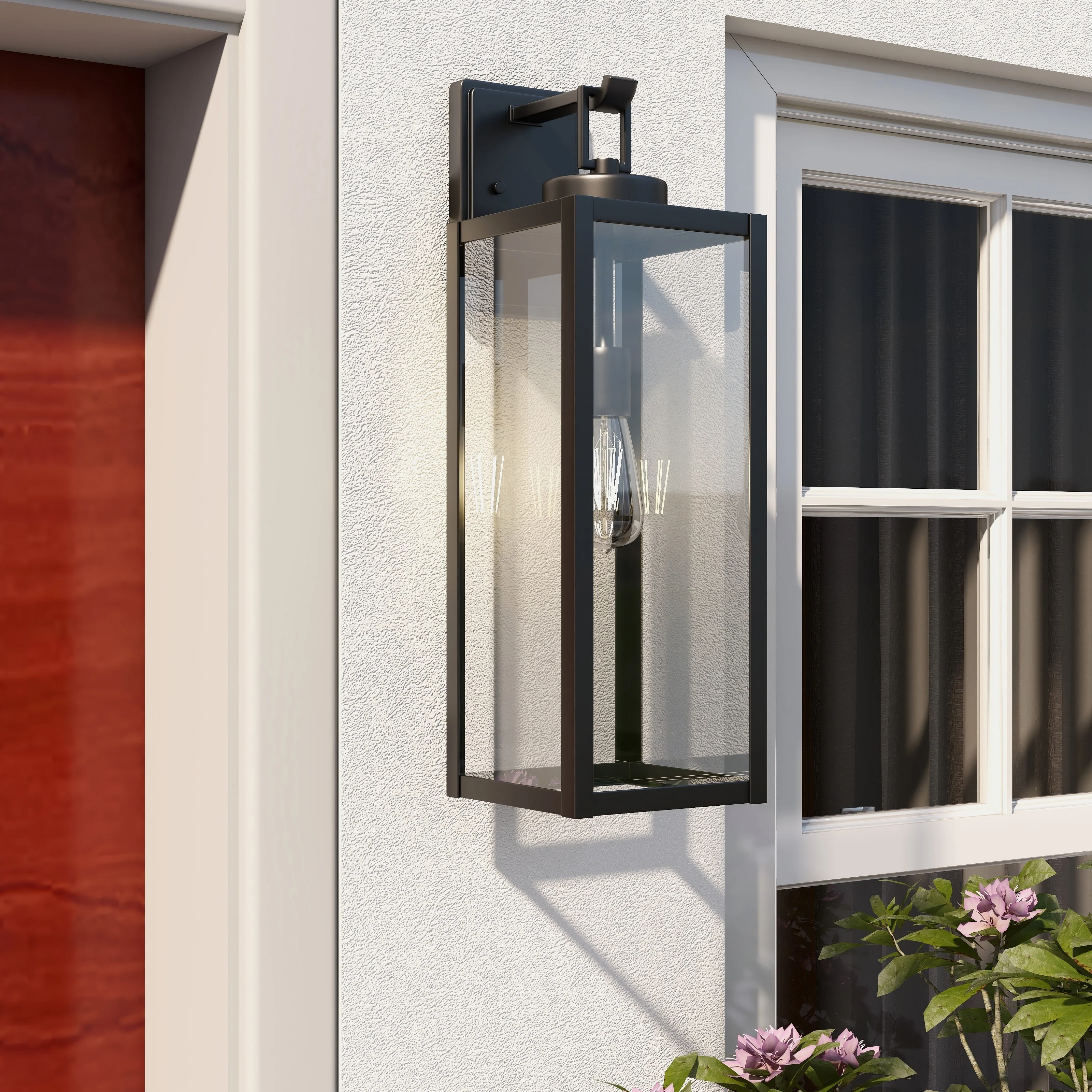 1-Light Exterior Wall Light with Clear Glass - Matte Black