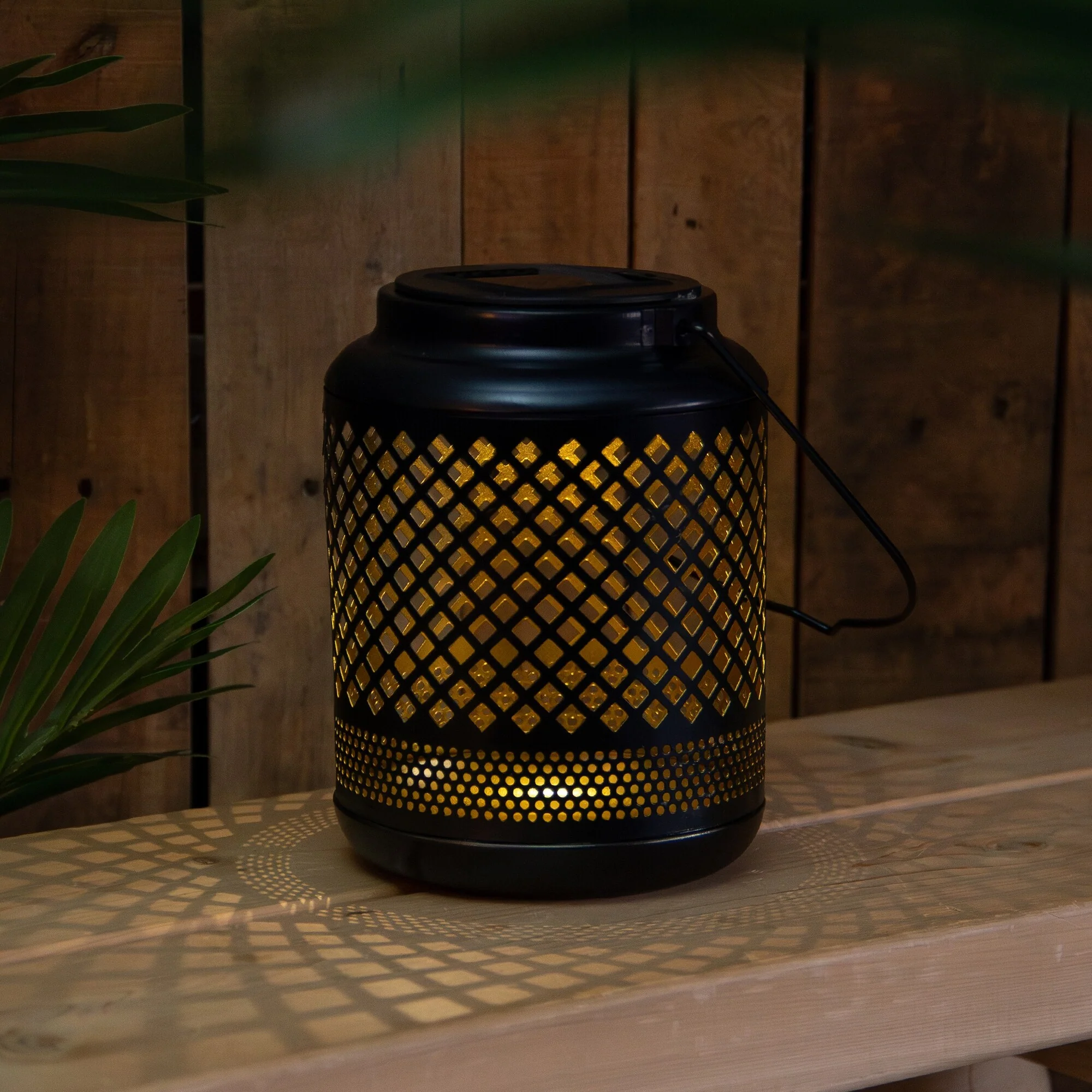 7" Black Diamond Cut Out LED Outdoor Solar Lantern with Handle
