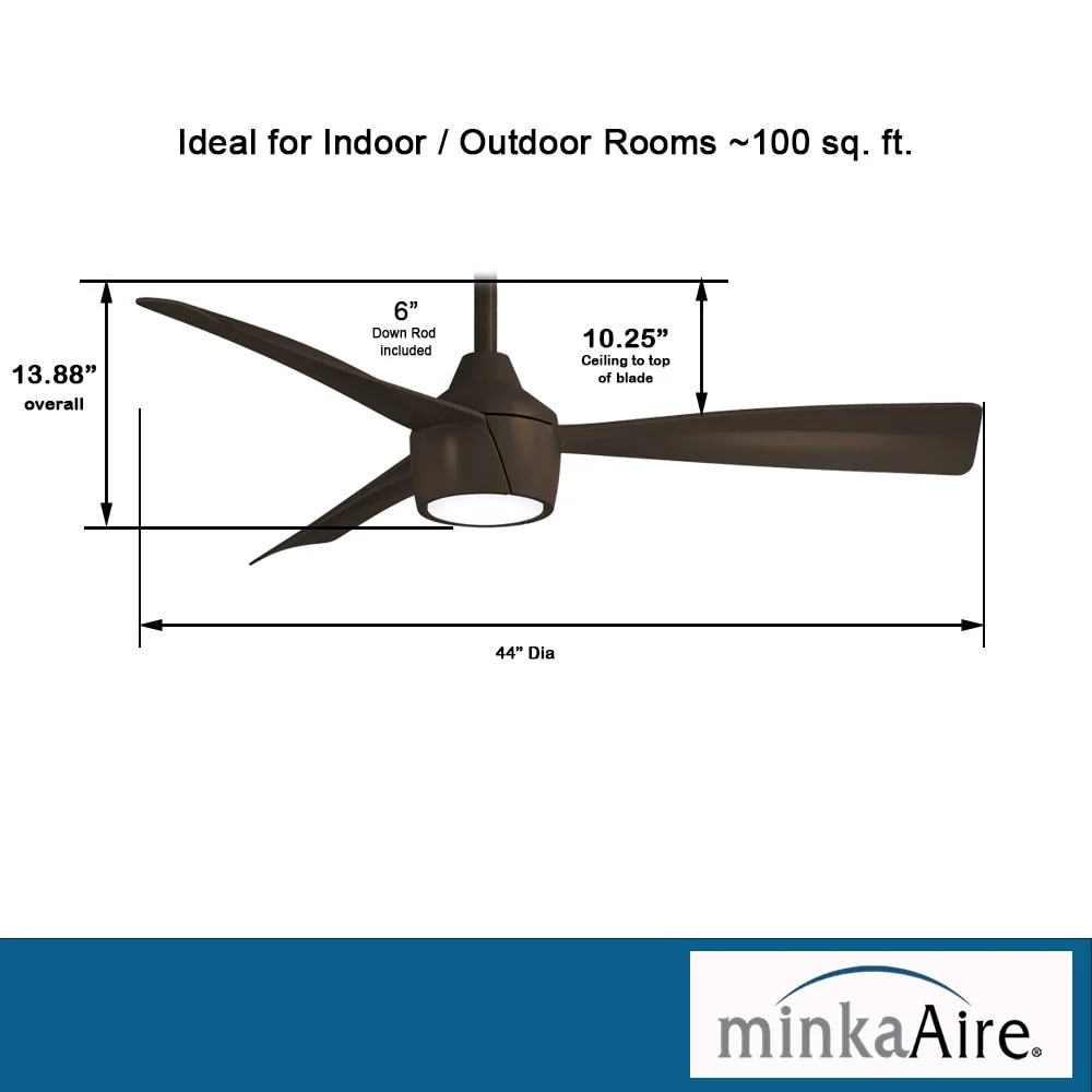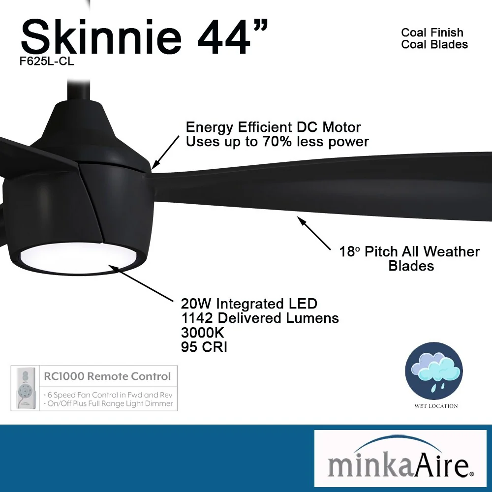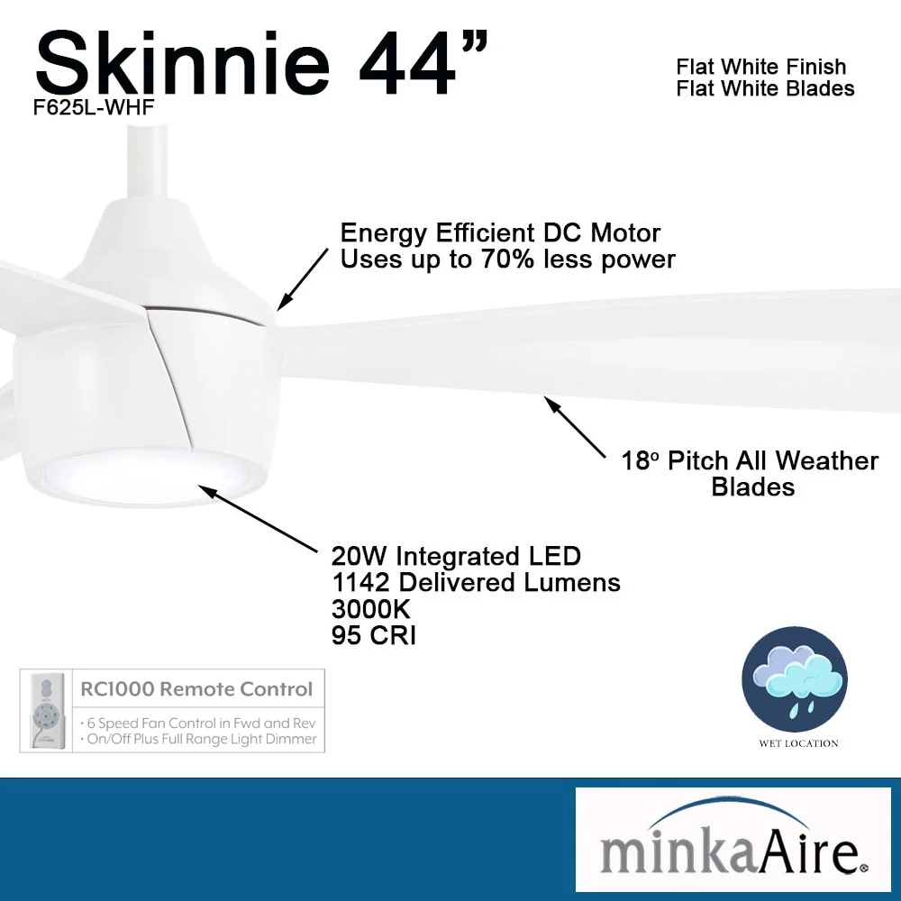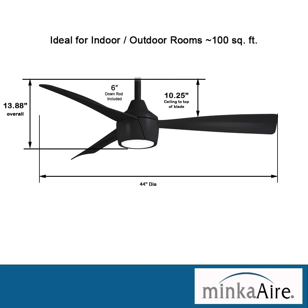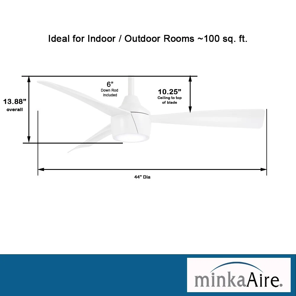 Minka Aire Skinnie 3 Blade 44 Inch Ceiling Fan With LED Light