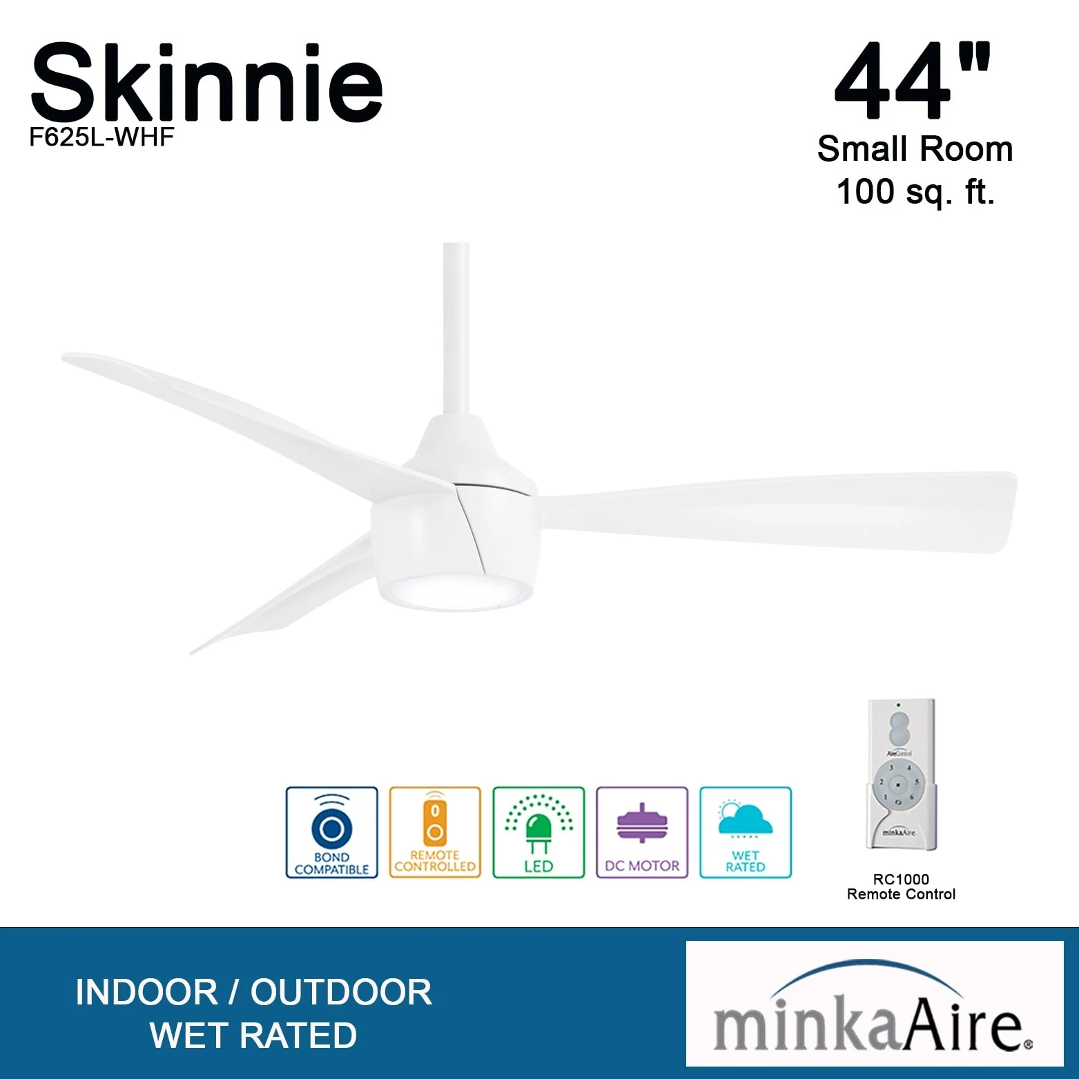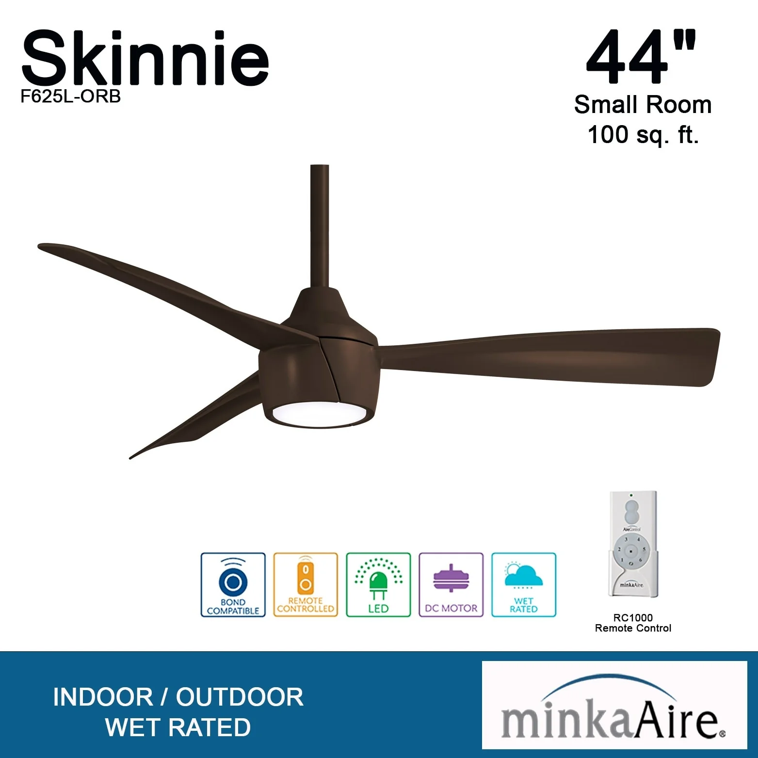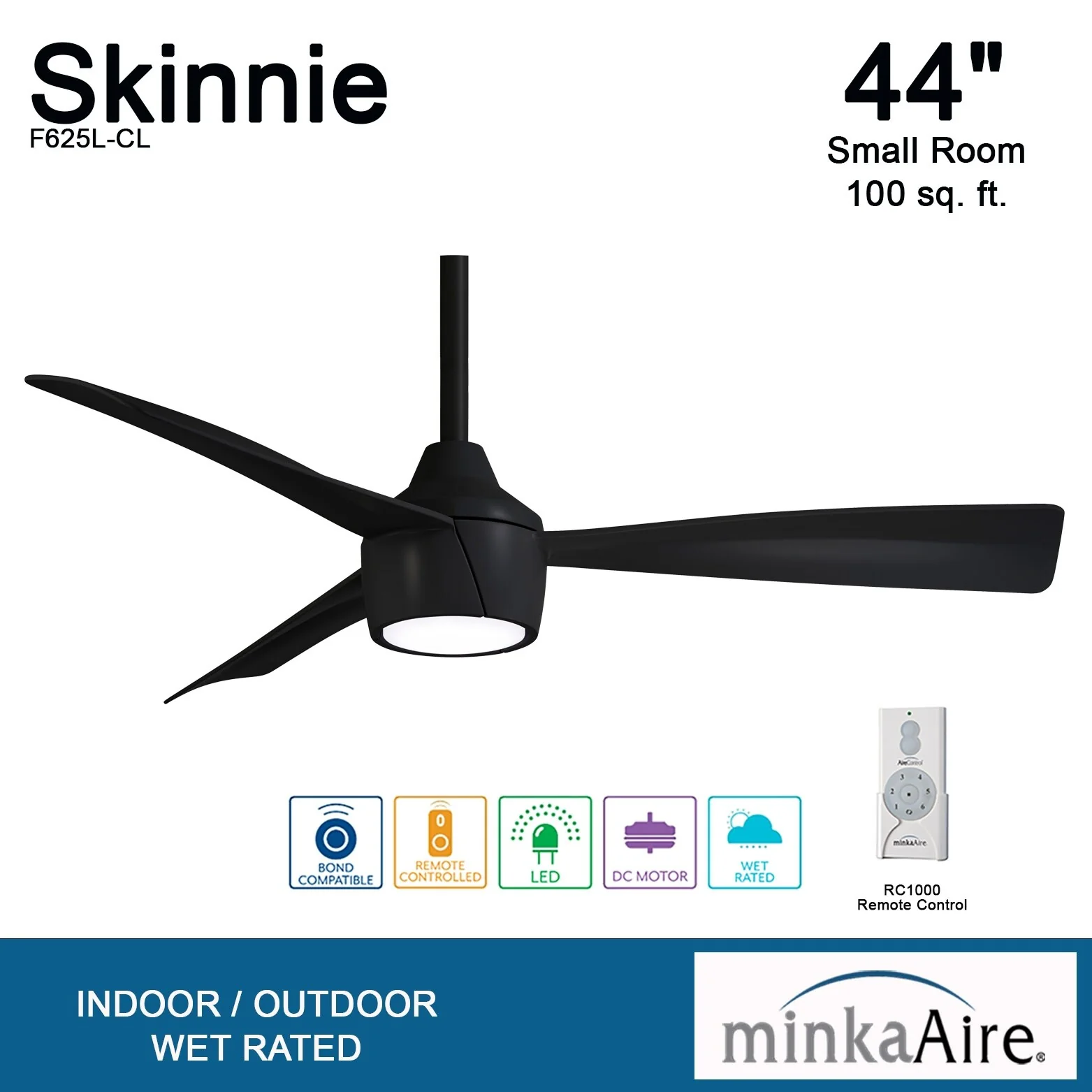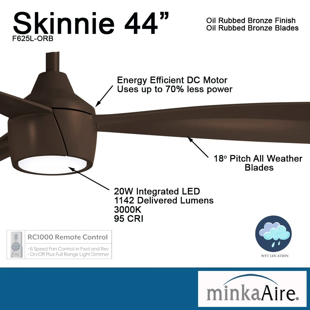 Minka Aire Skinnie 3 Blade 44 Inch Ceiling Fan With LED Light