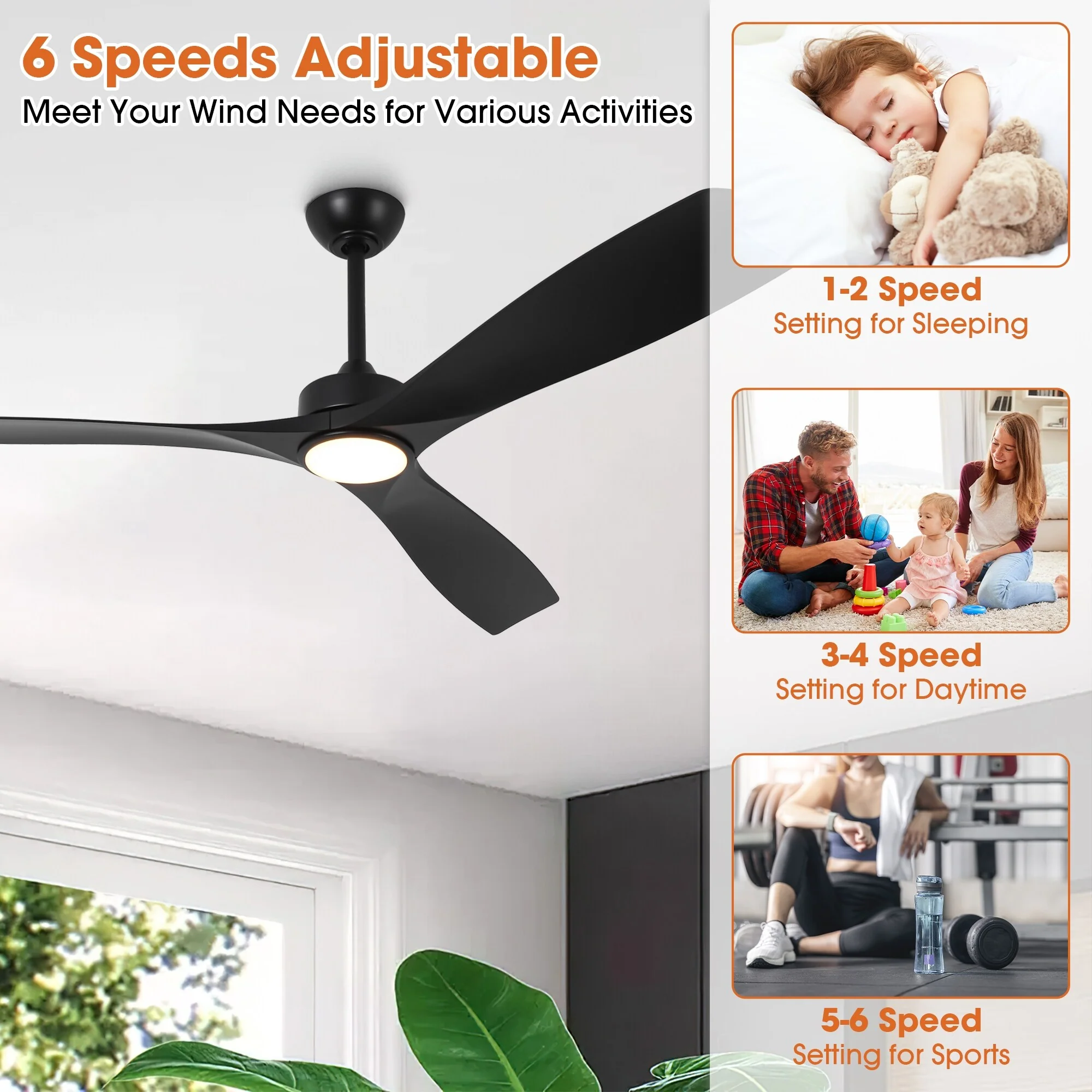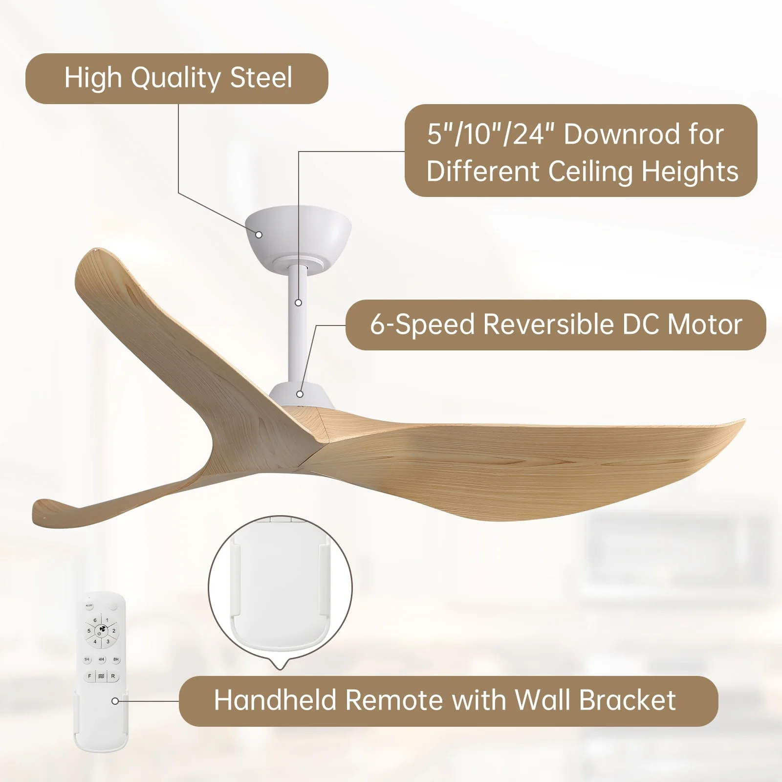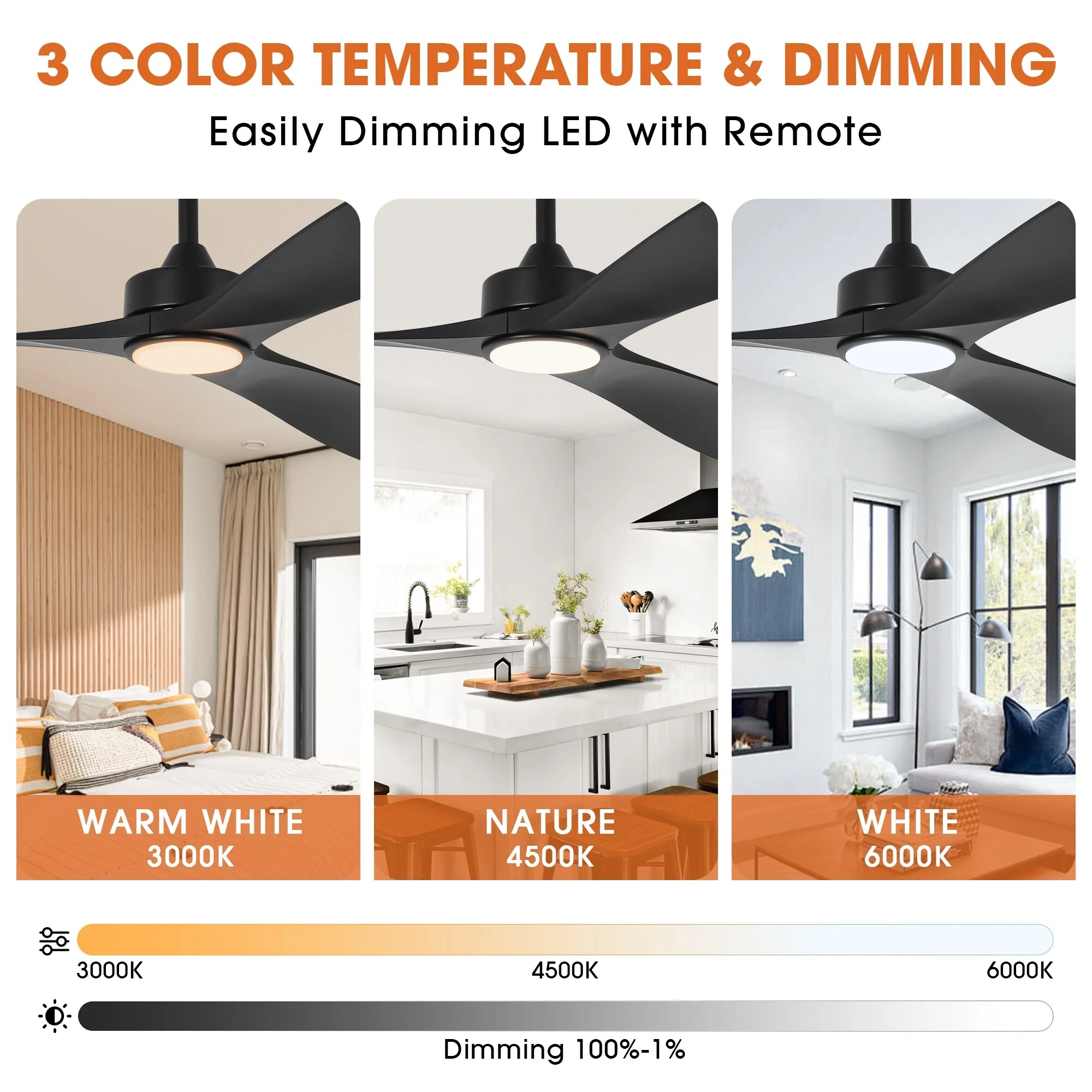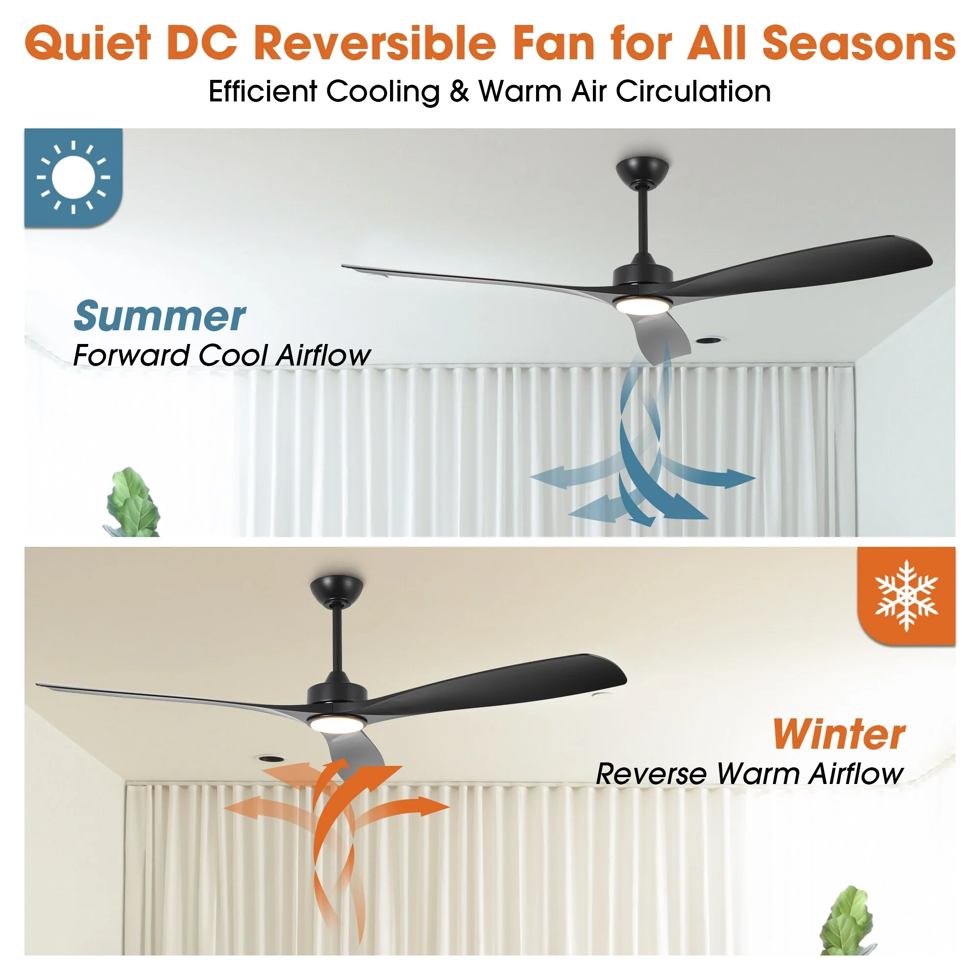 52" Ceiling Fan with Lights Remote Control,Quiet DC Motor 3 Blade Ceiling Fans 6 Speed Levels,Reversible Ceiling Fan
