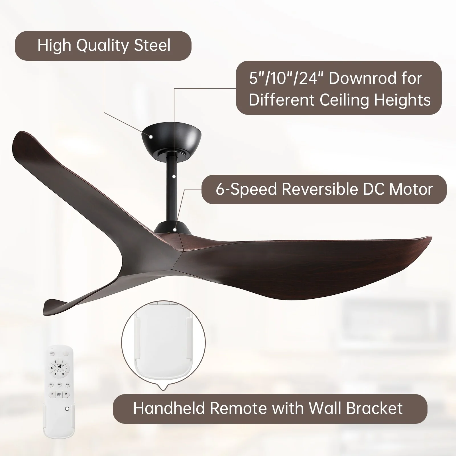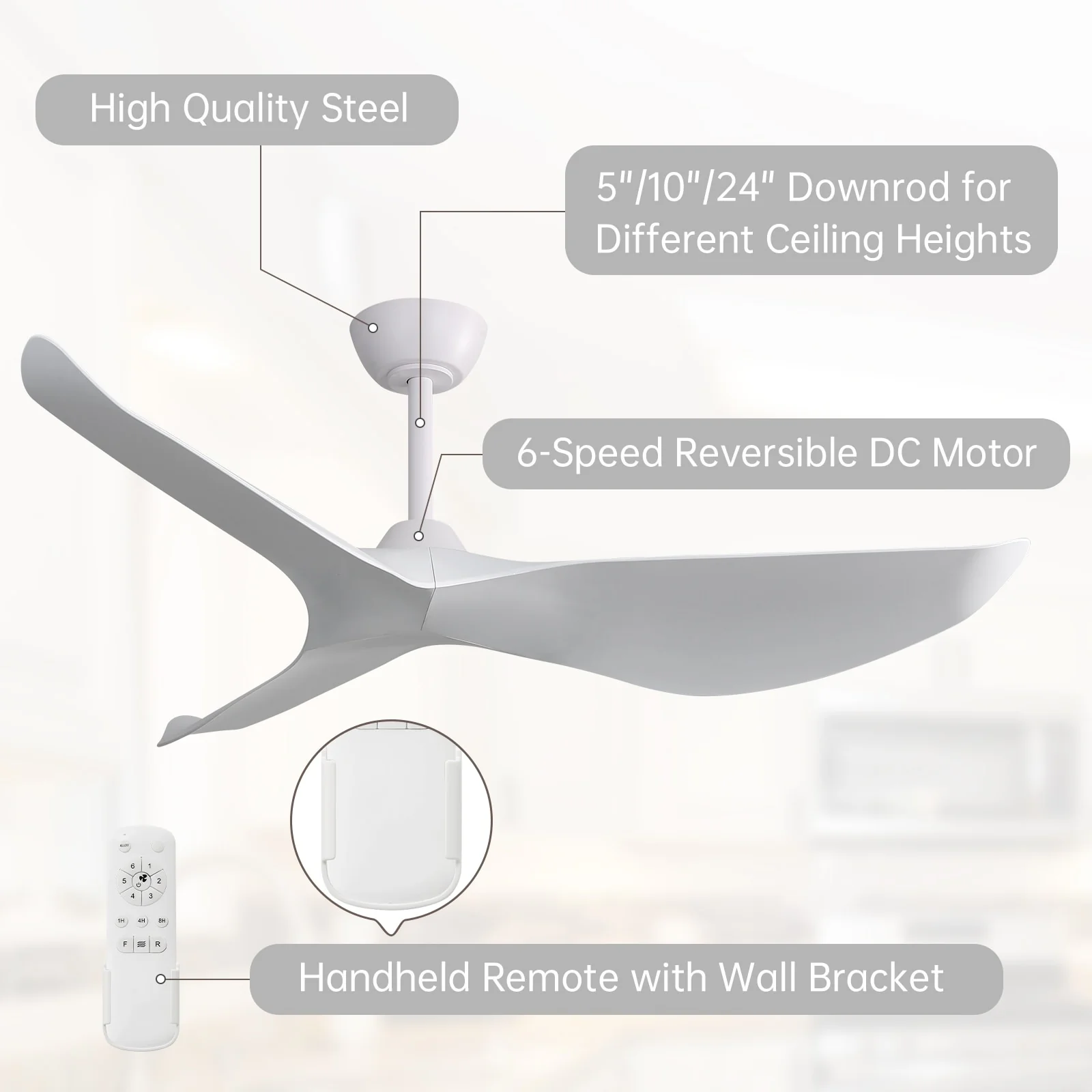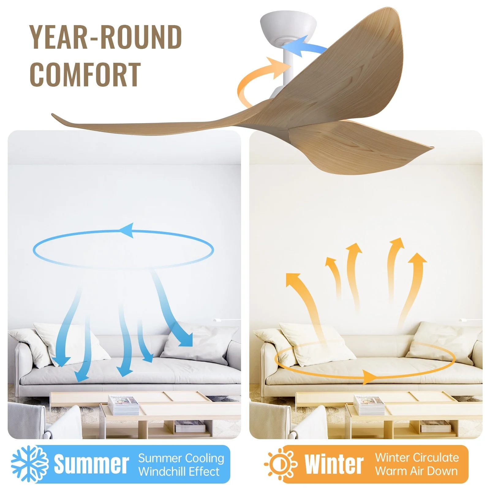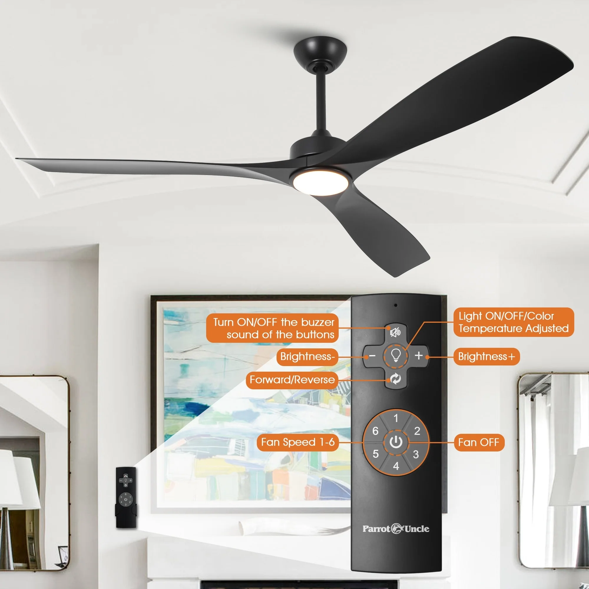 52" Ceiling Fan with Lights Remote Control,Quiet DC Motor 3 Blade Ceiling Fans 6 Speed Levels,Reversible Ceiling Fan