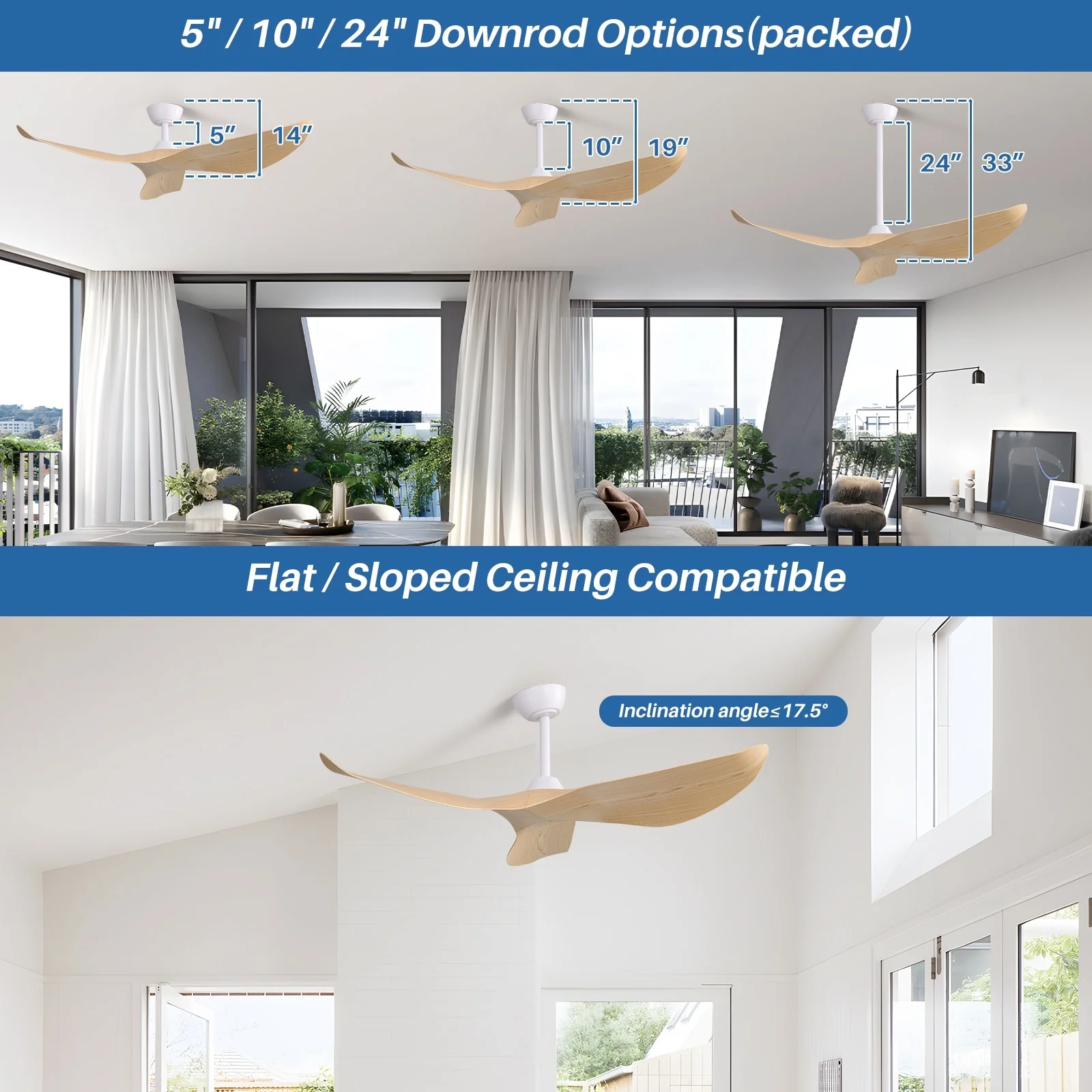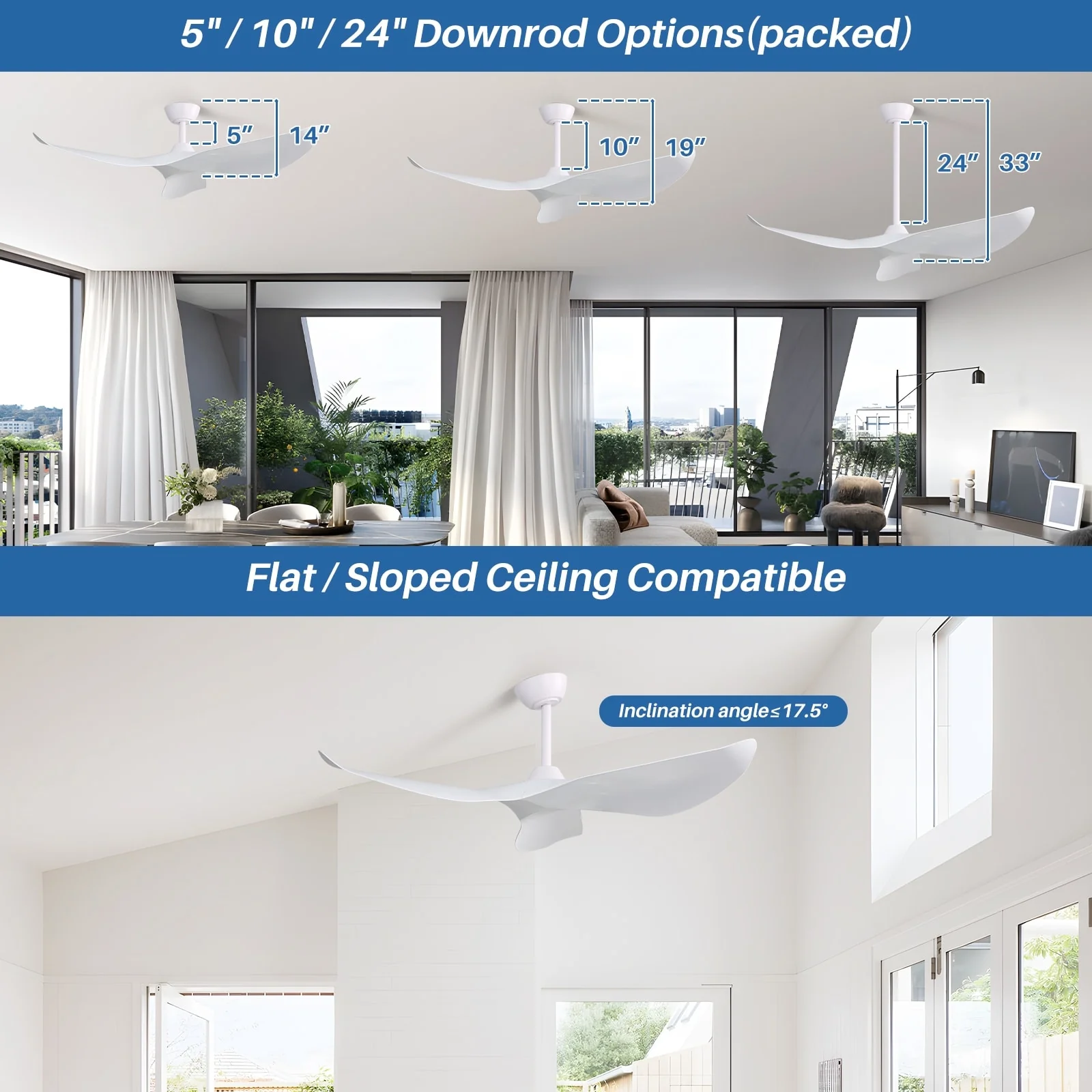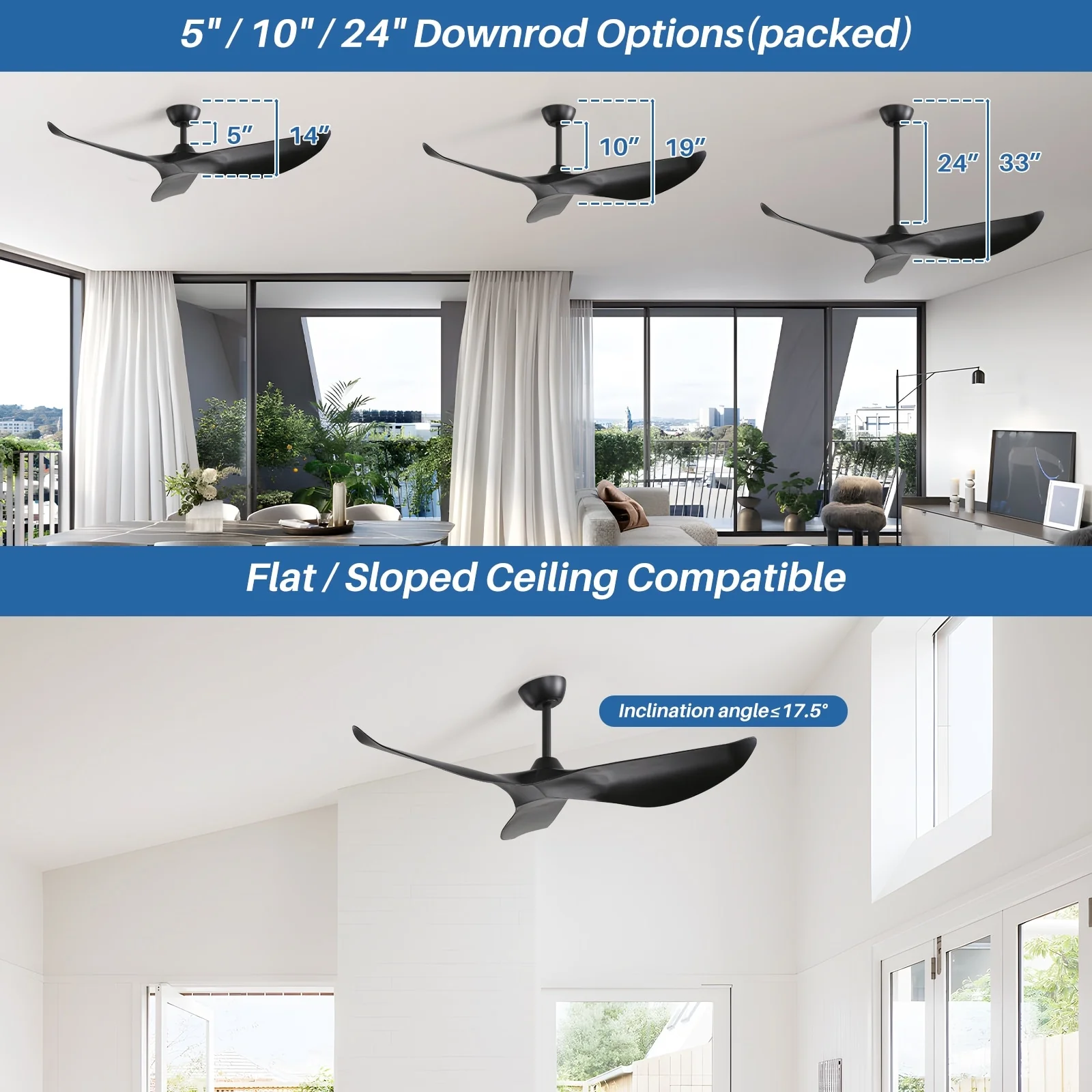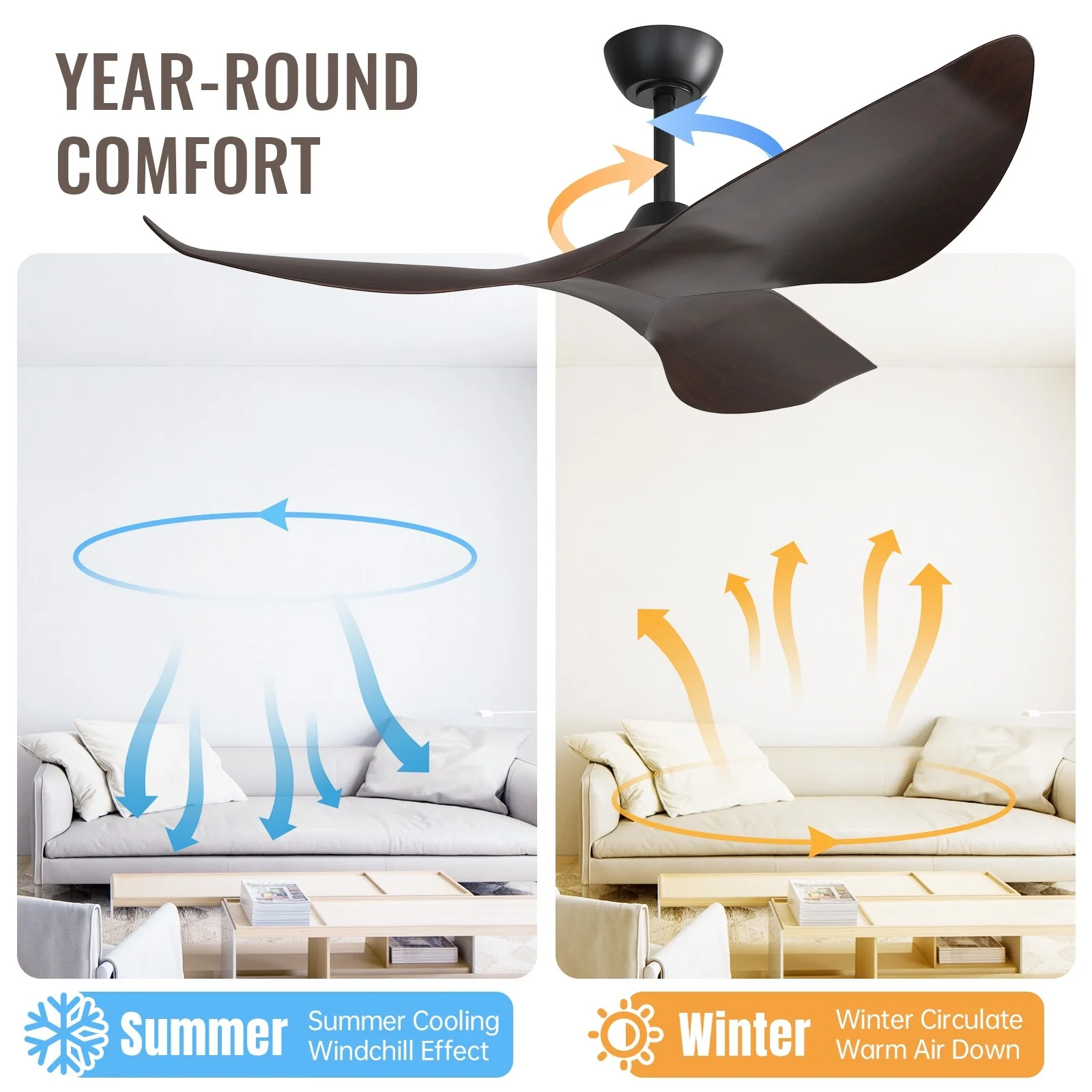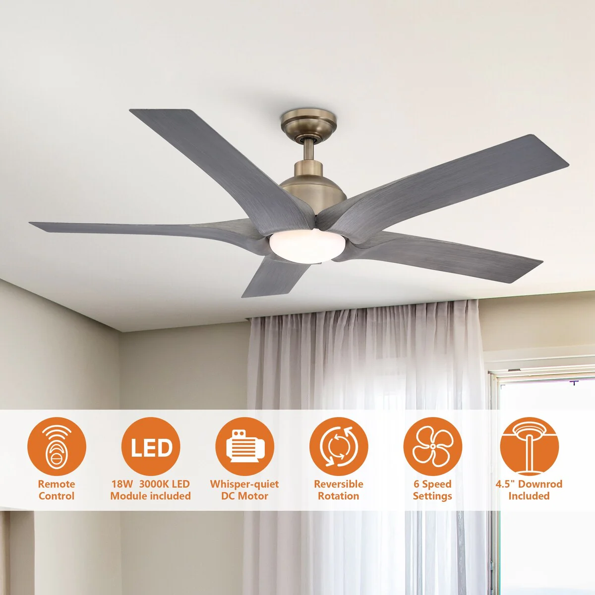 52" Ceiling Fan with Lights Remote Control,Quiet DC Motor 3 Blade Ceiling Fans 6 Speed Levels,Reversible Ceiling Fan
