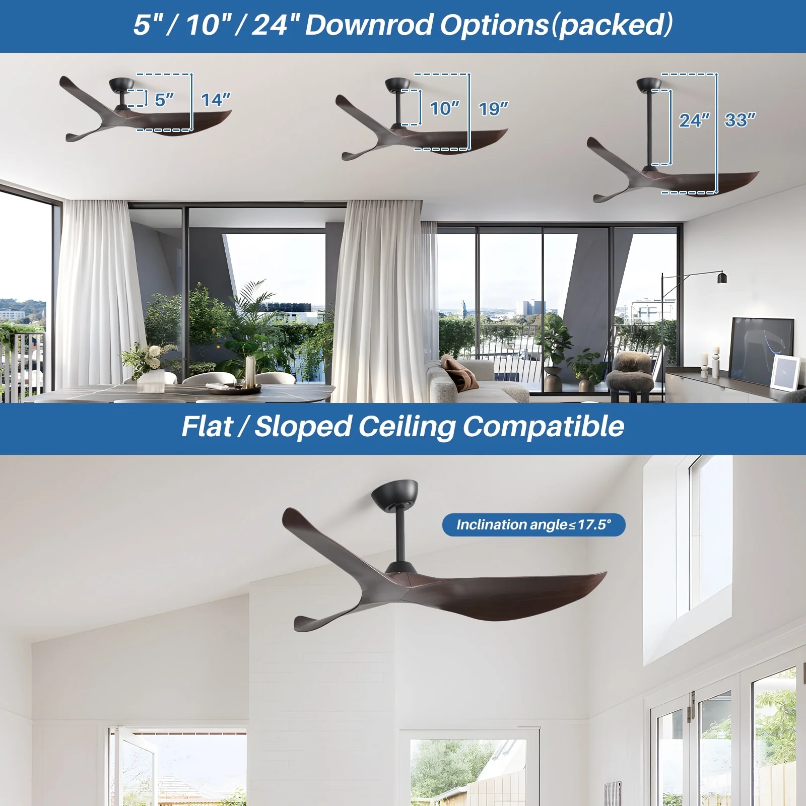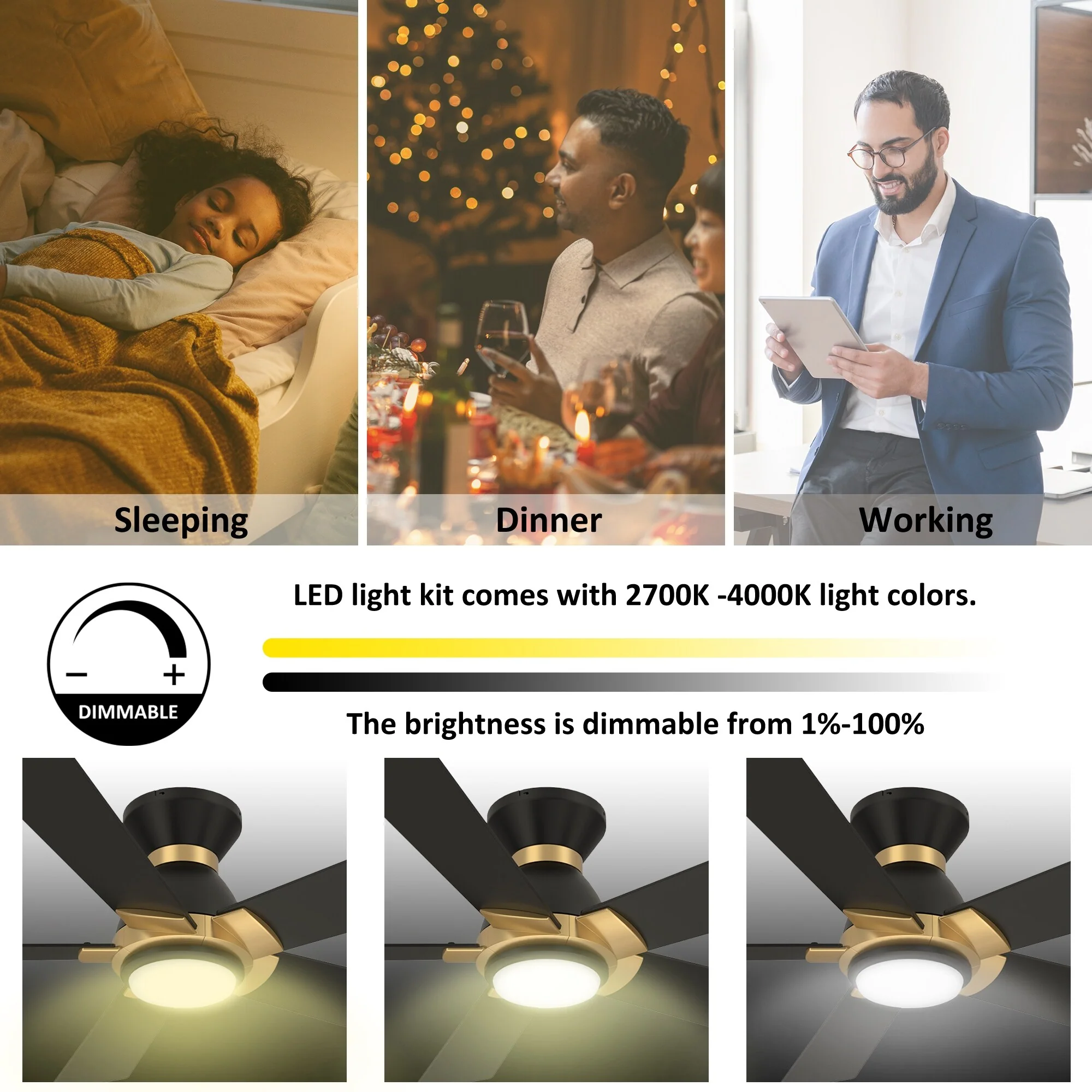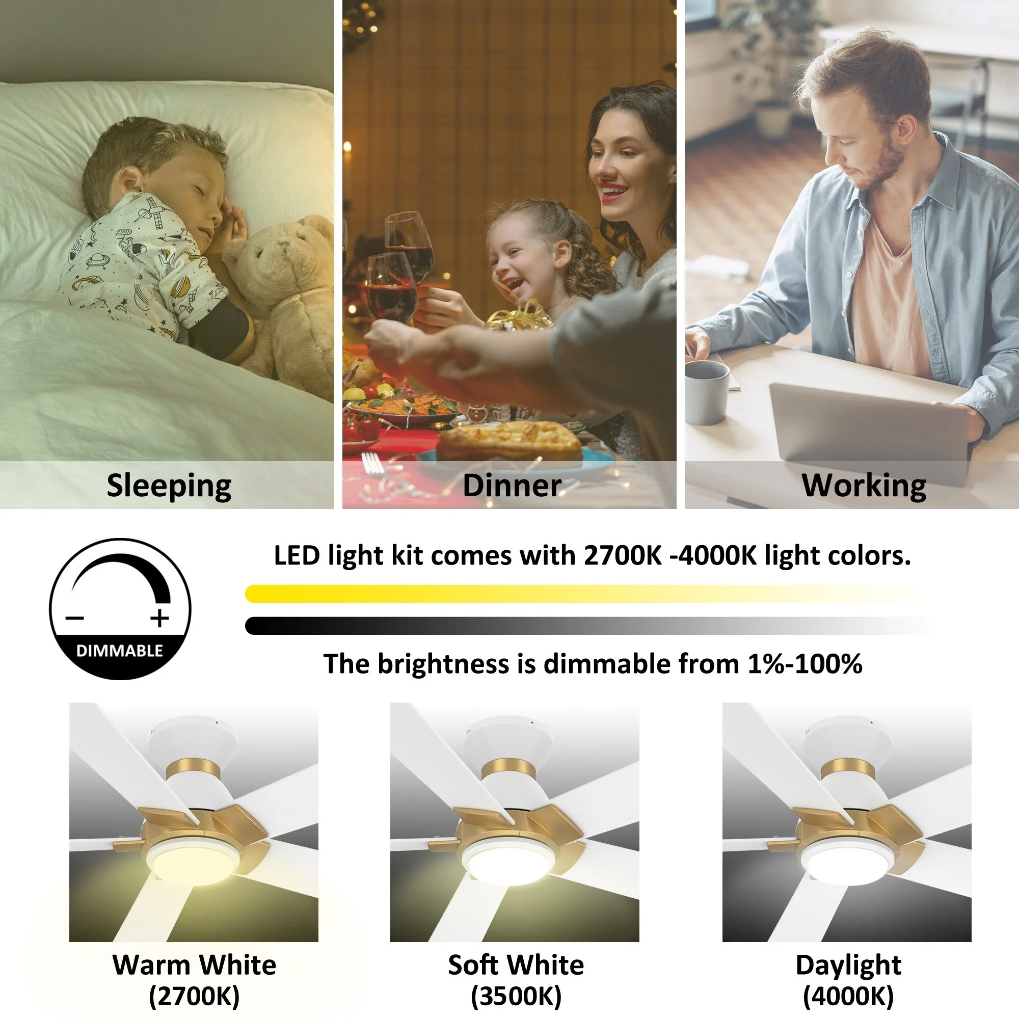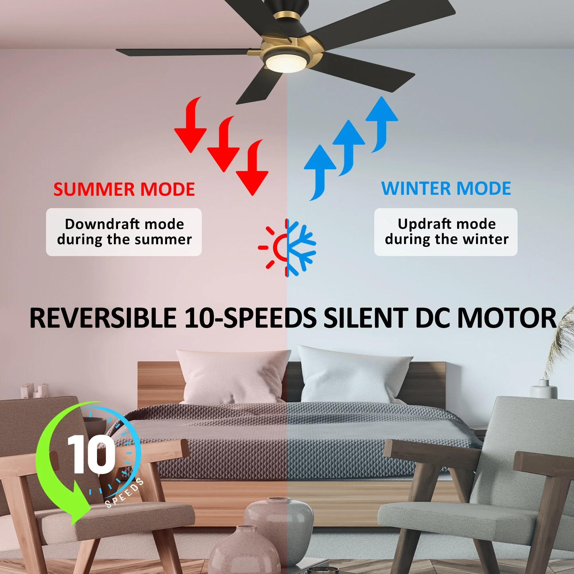 52" Ceiling Fan with Lights Remote Control,Quiet DC Motor 3 Blade Ceiling Fans 6 Speed Levels,Reversible Ceiling Fan