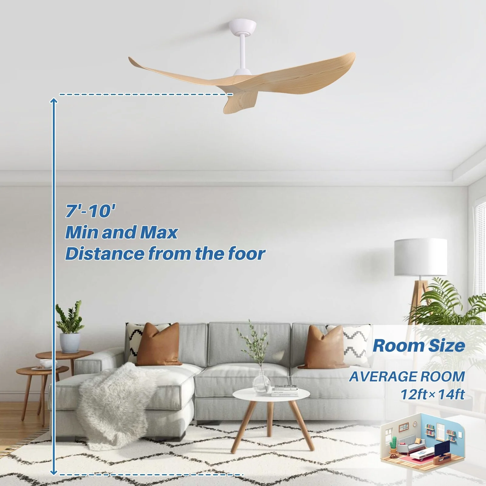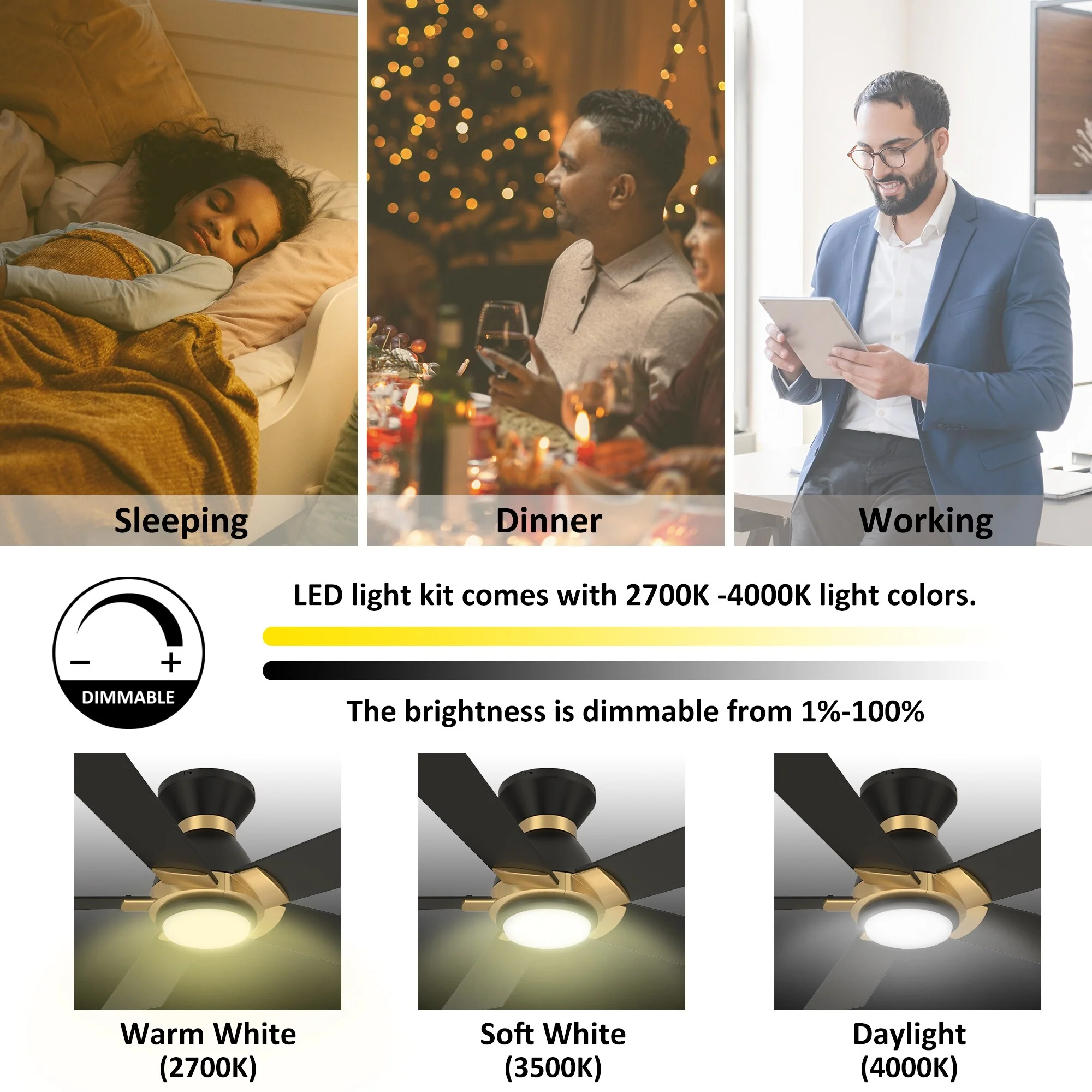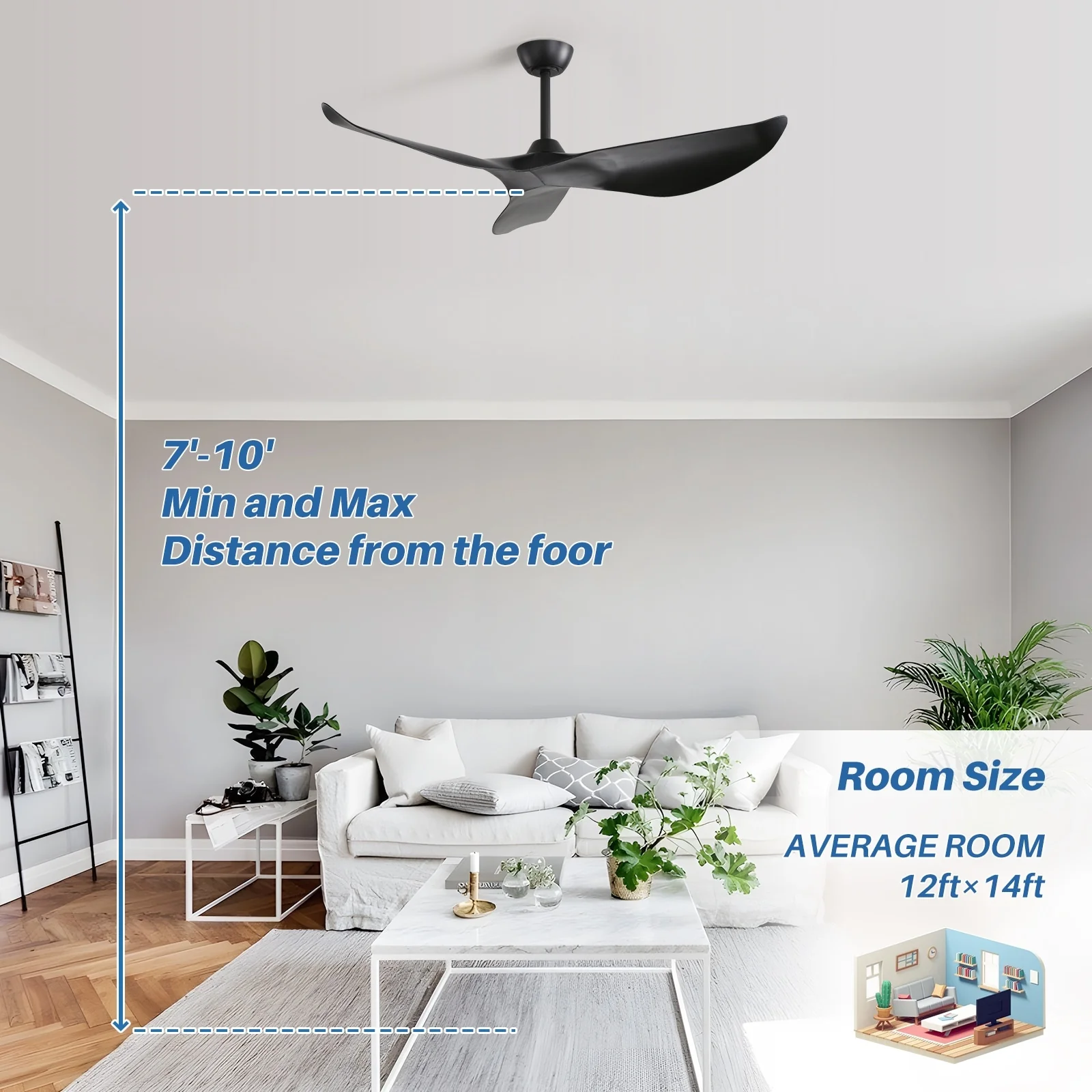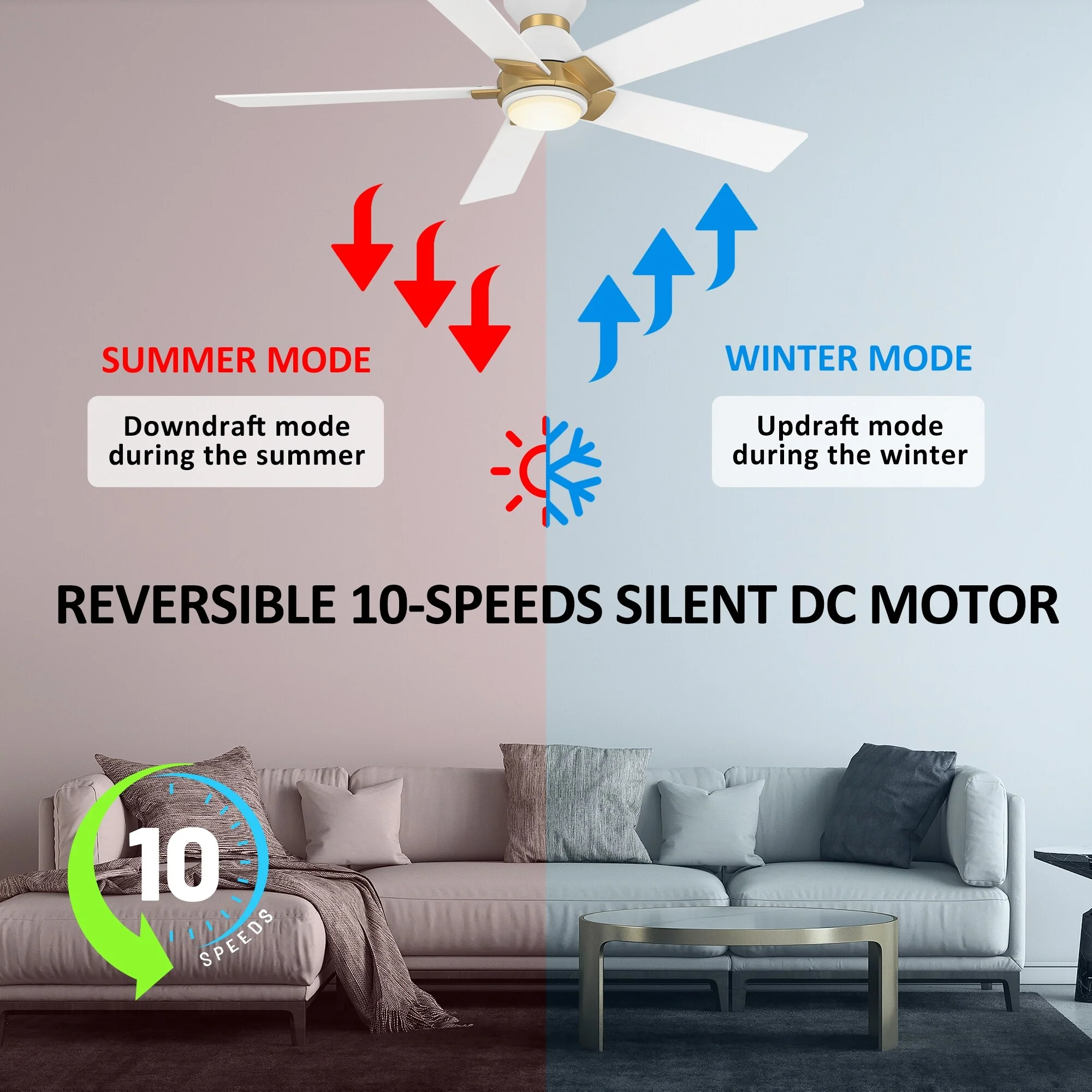 52" Ceiling Fan with Lights Remote Control,Quiet DC Motor 3 Blade Ceiling Fans 6 Speed Levels,Reversible Ceiling Fan