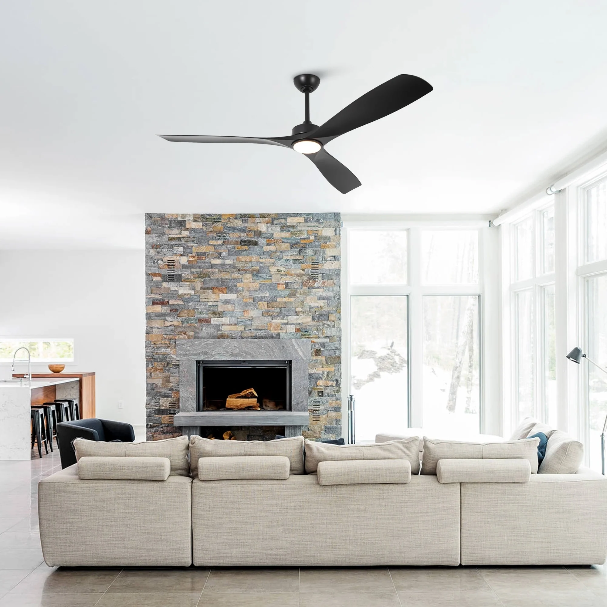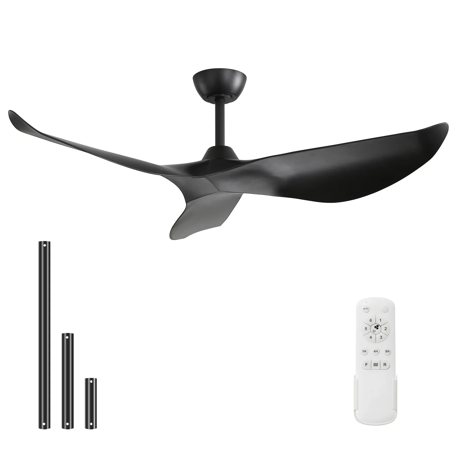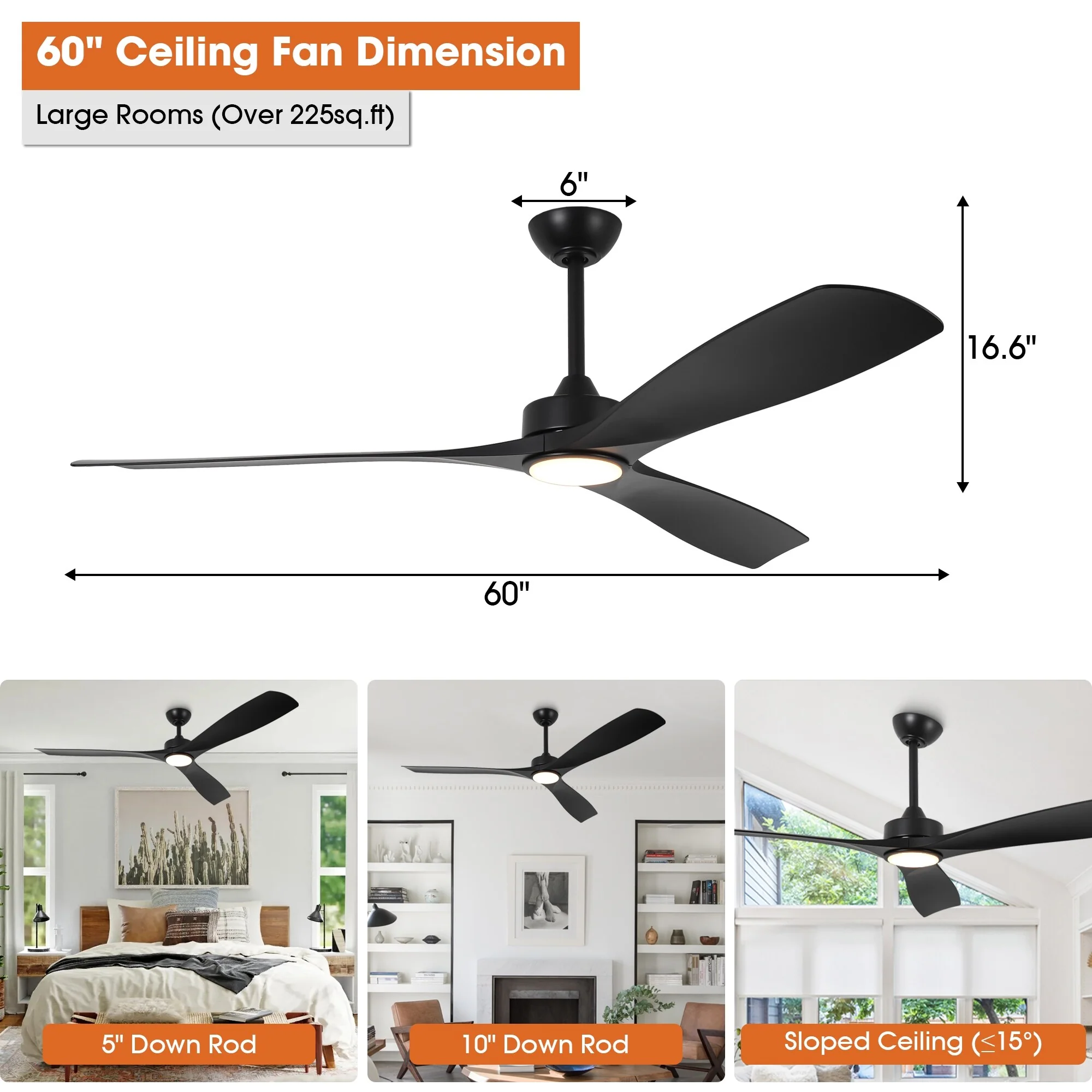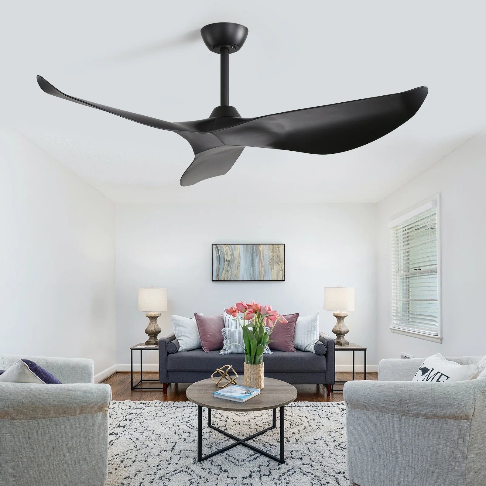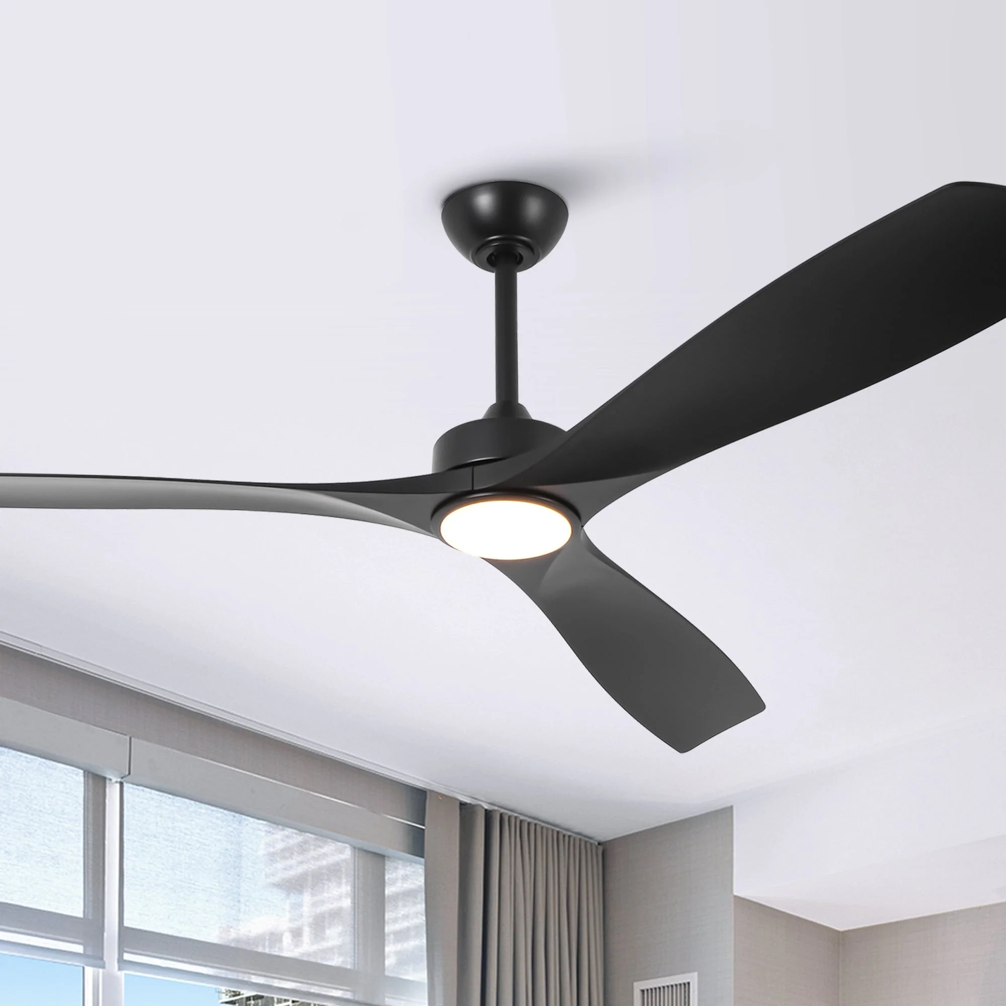 60" Modern Black ABS Propeller Indoor Ceiling Fan with Light and Remote