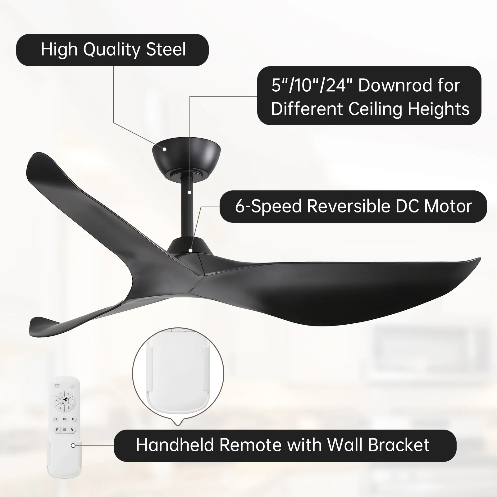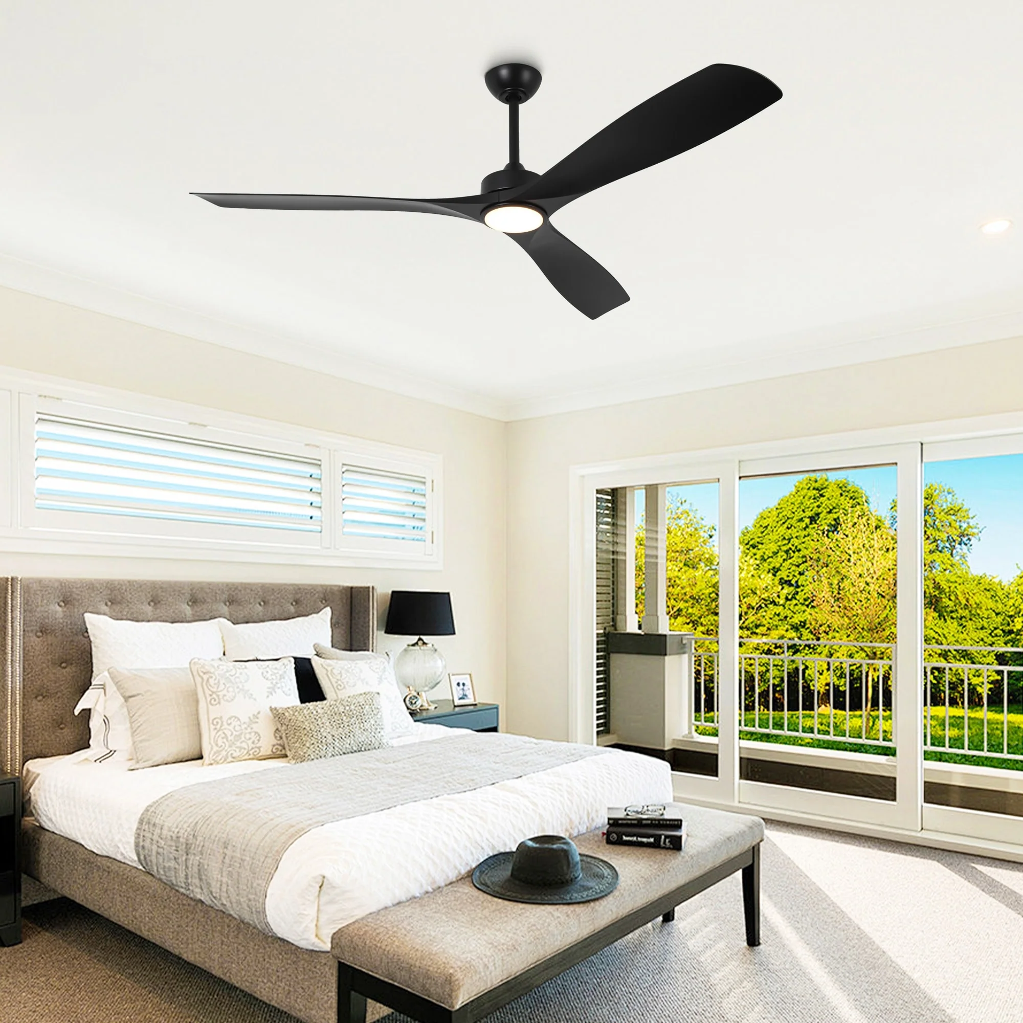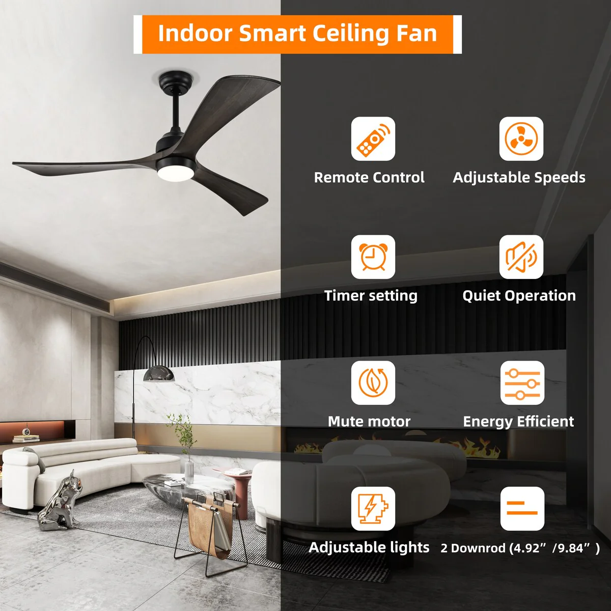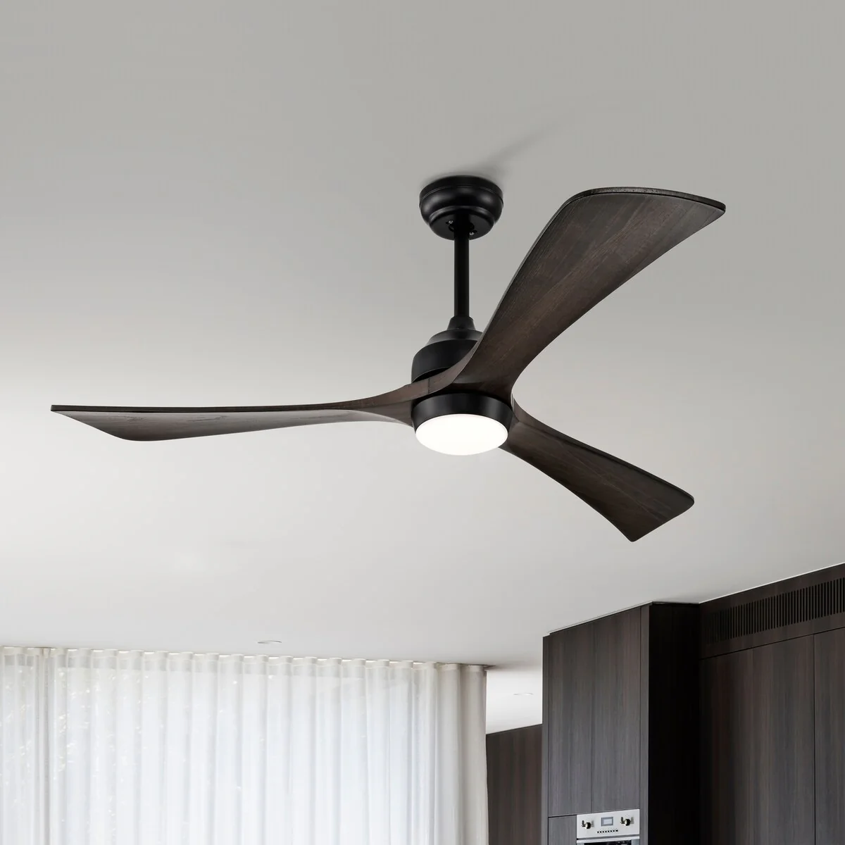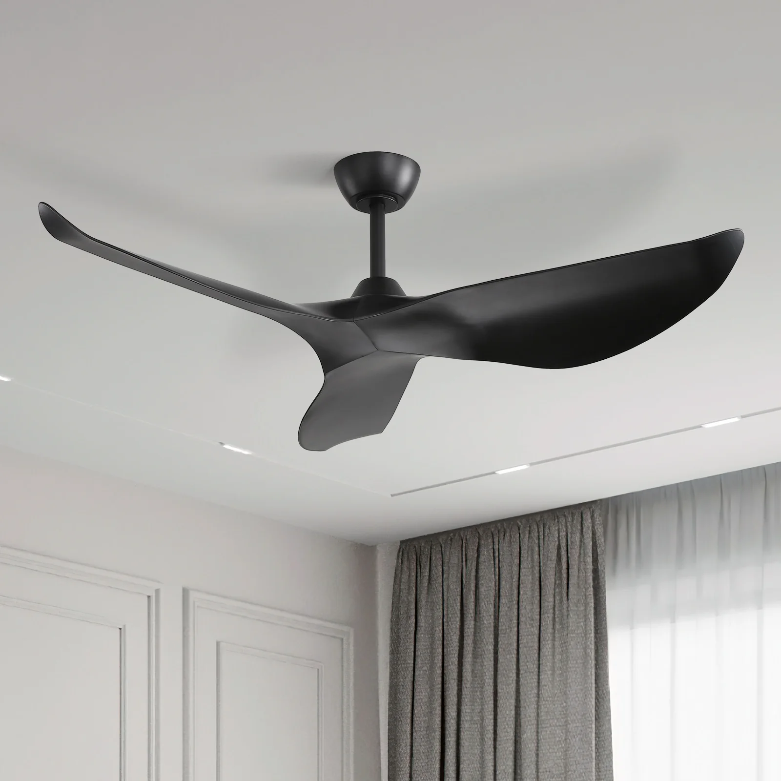 60" Modern Black ABS Propeller Indoor Ceiling Fan with Light and Remote