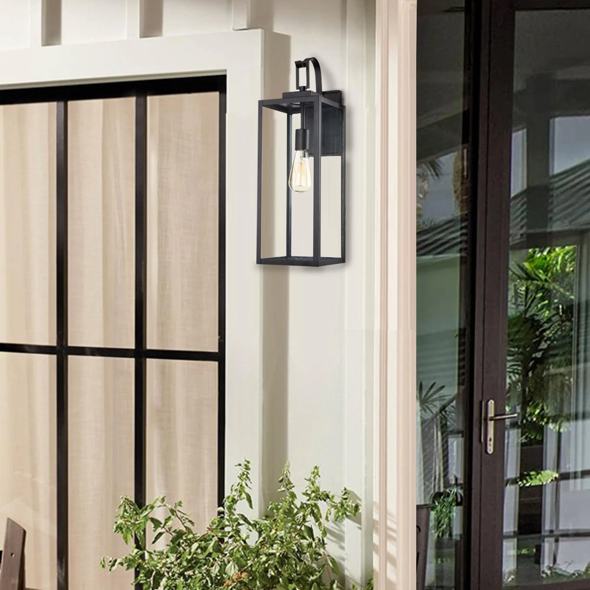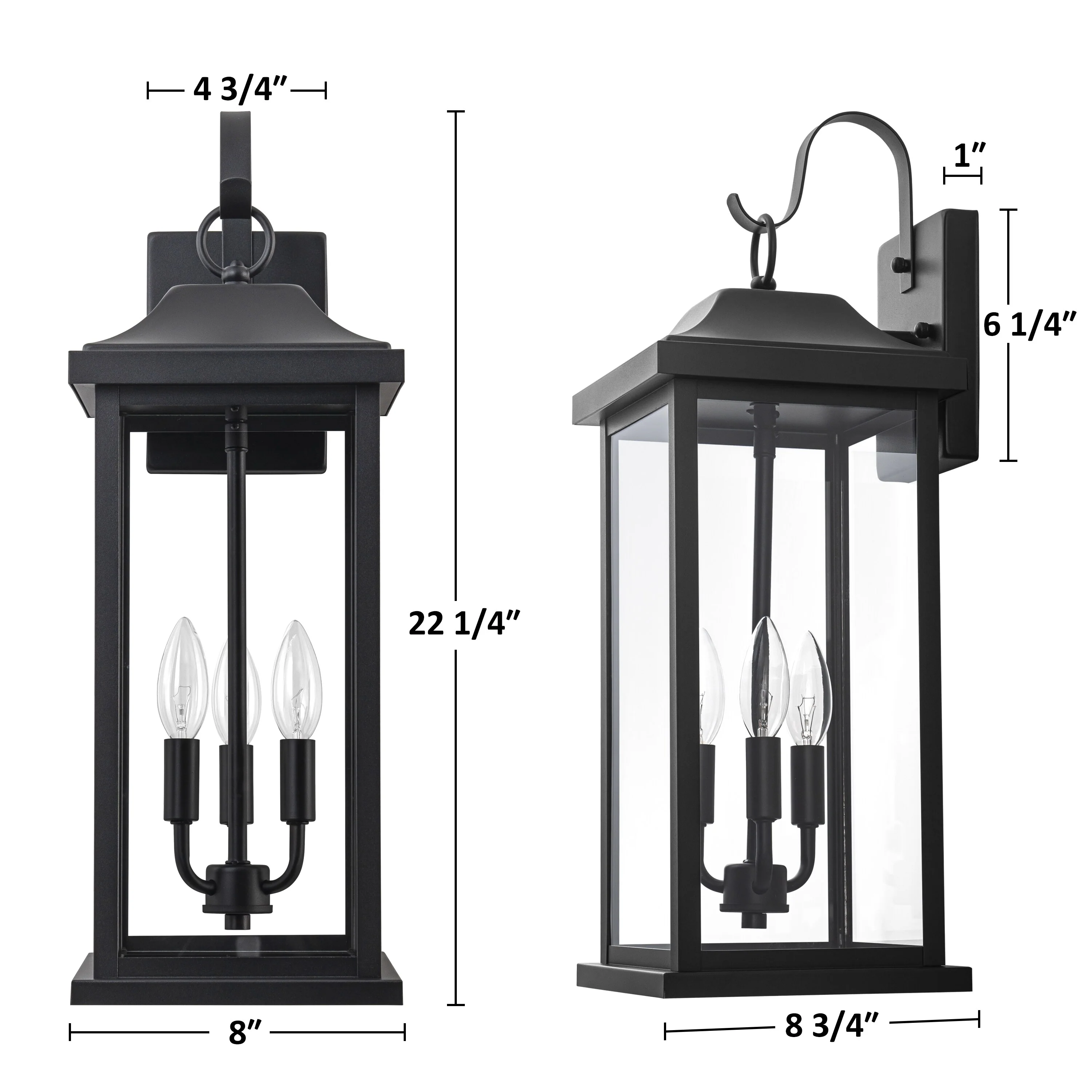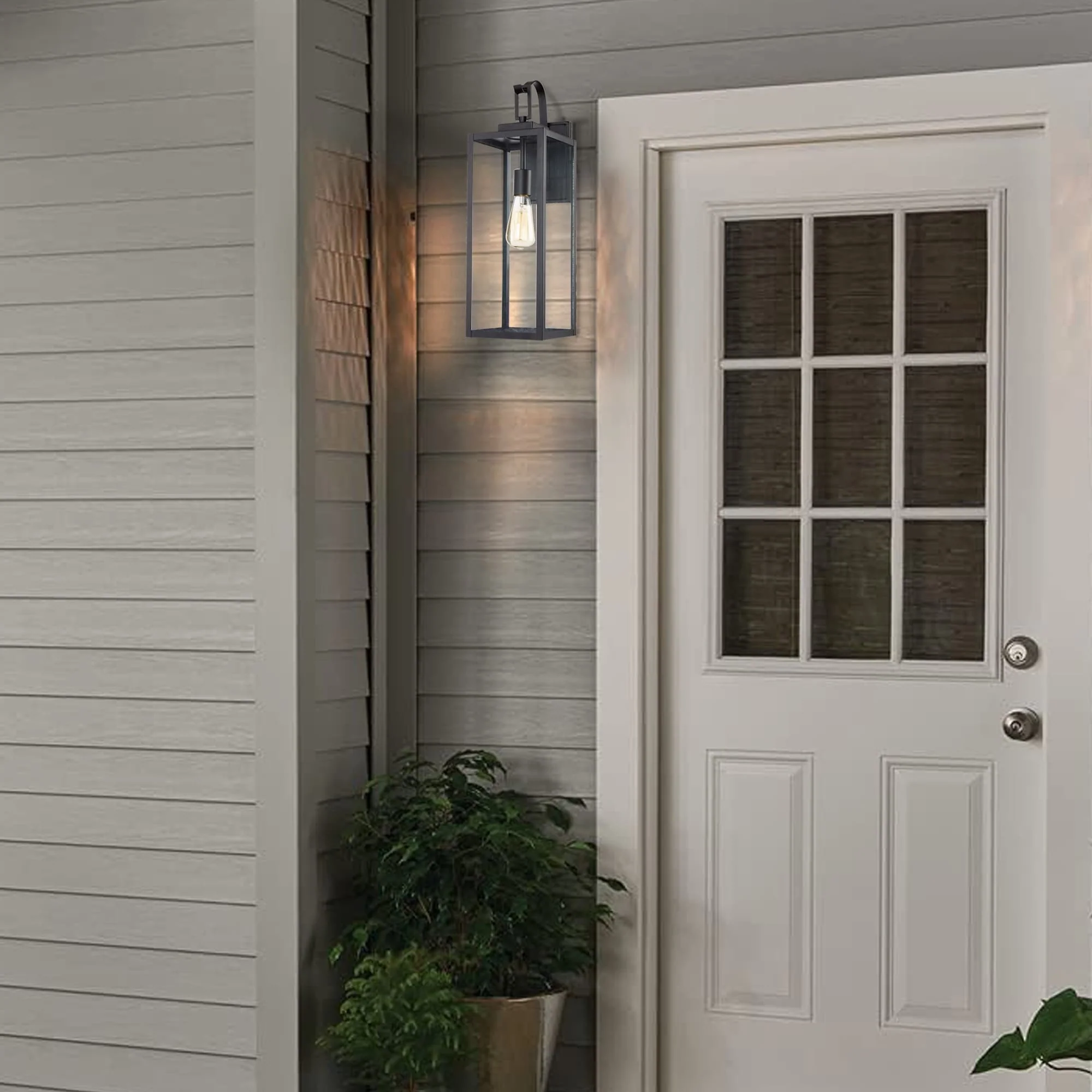 1-Light 22.48in Matte Black Outdoor Wall Lantern with Clear Glass Shade