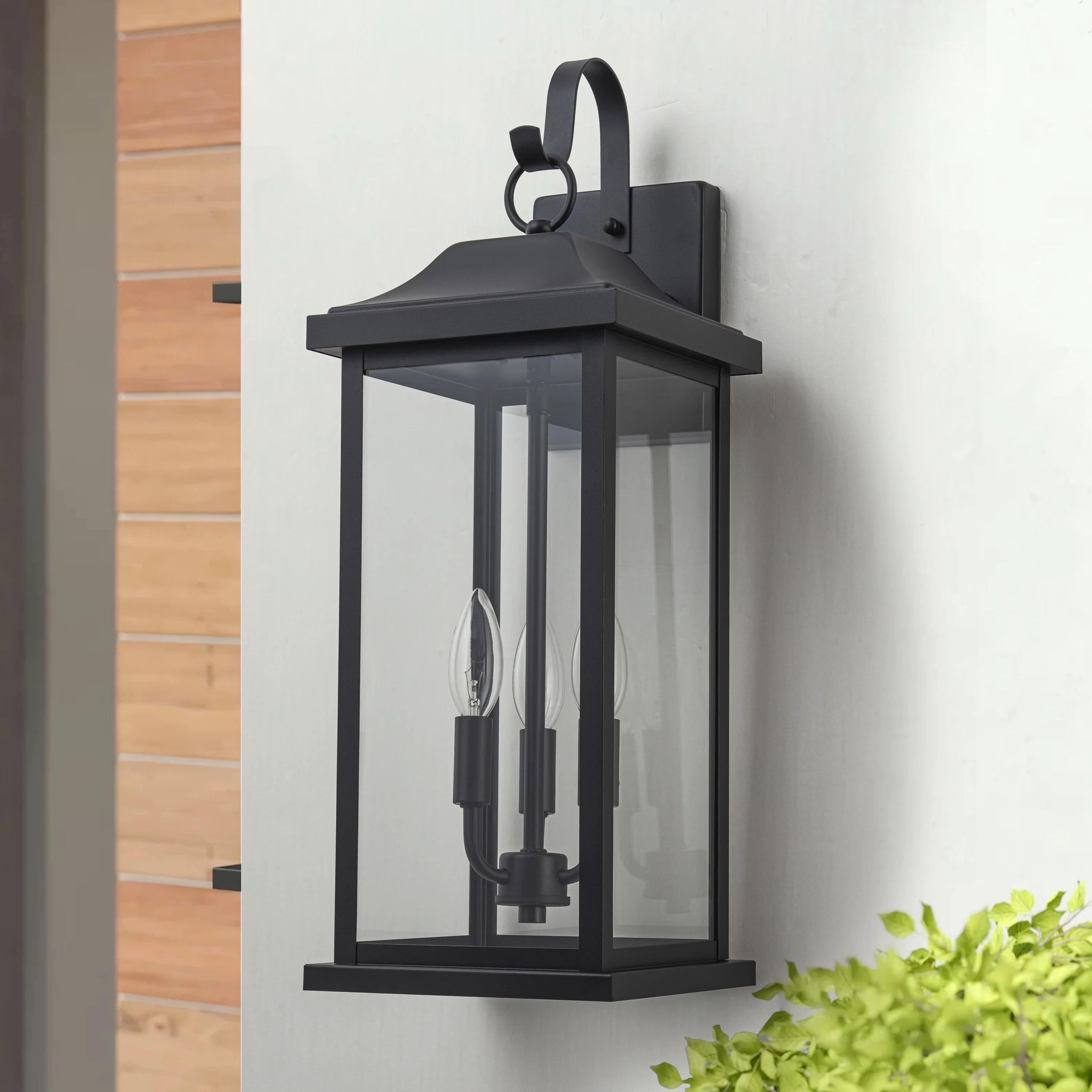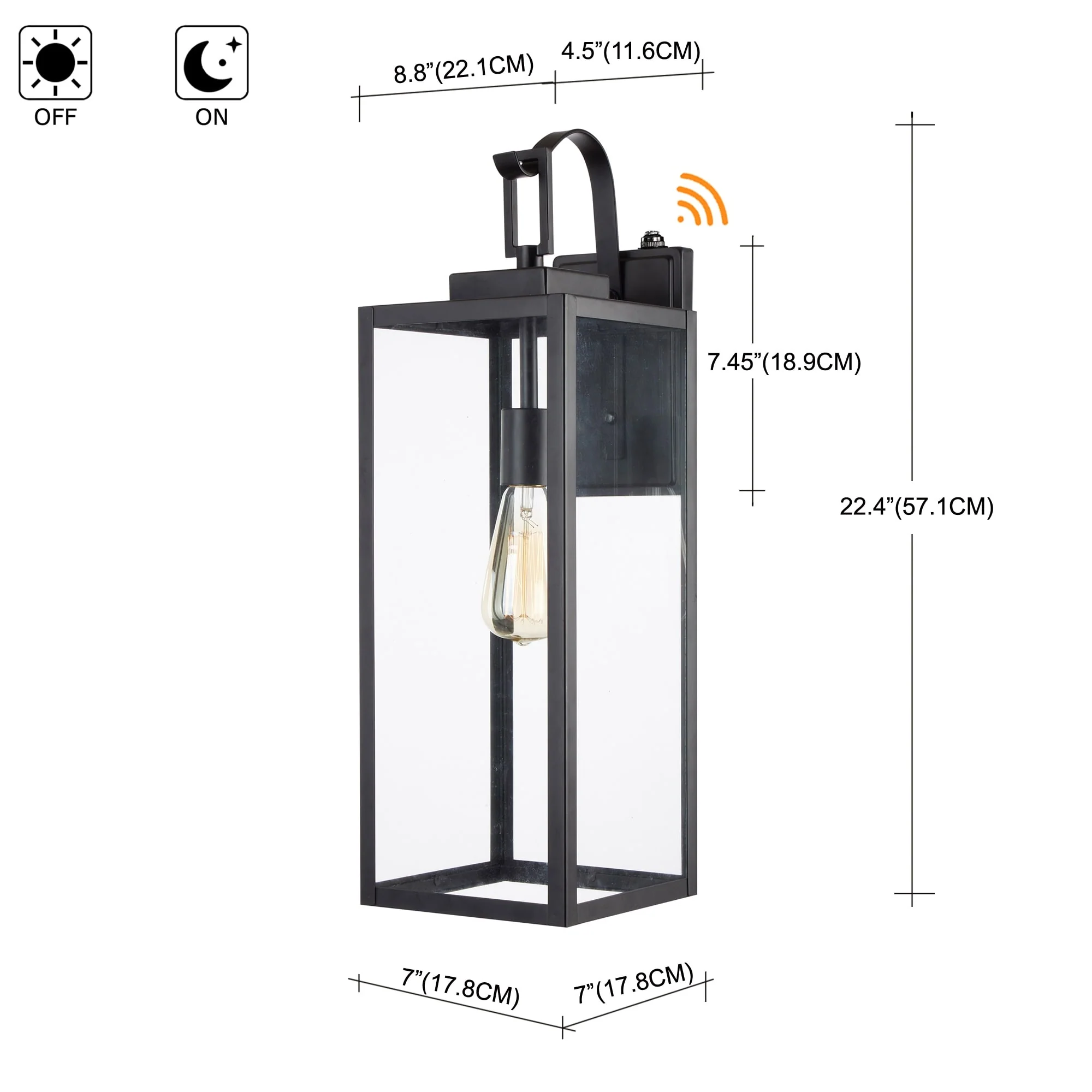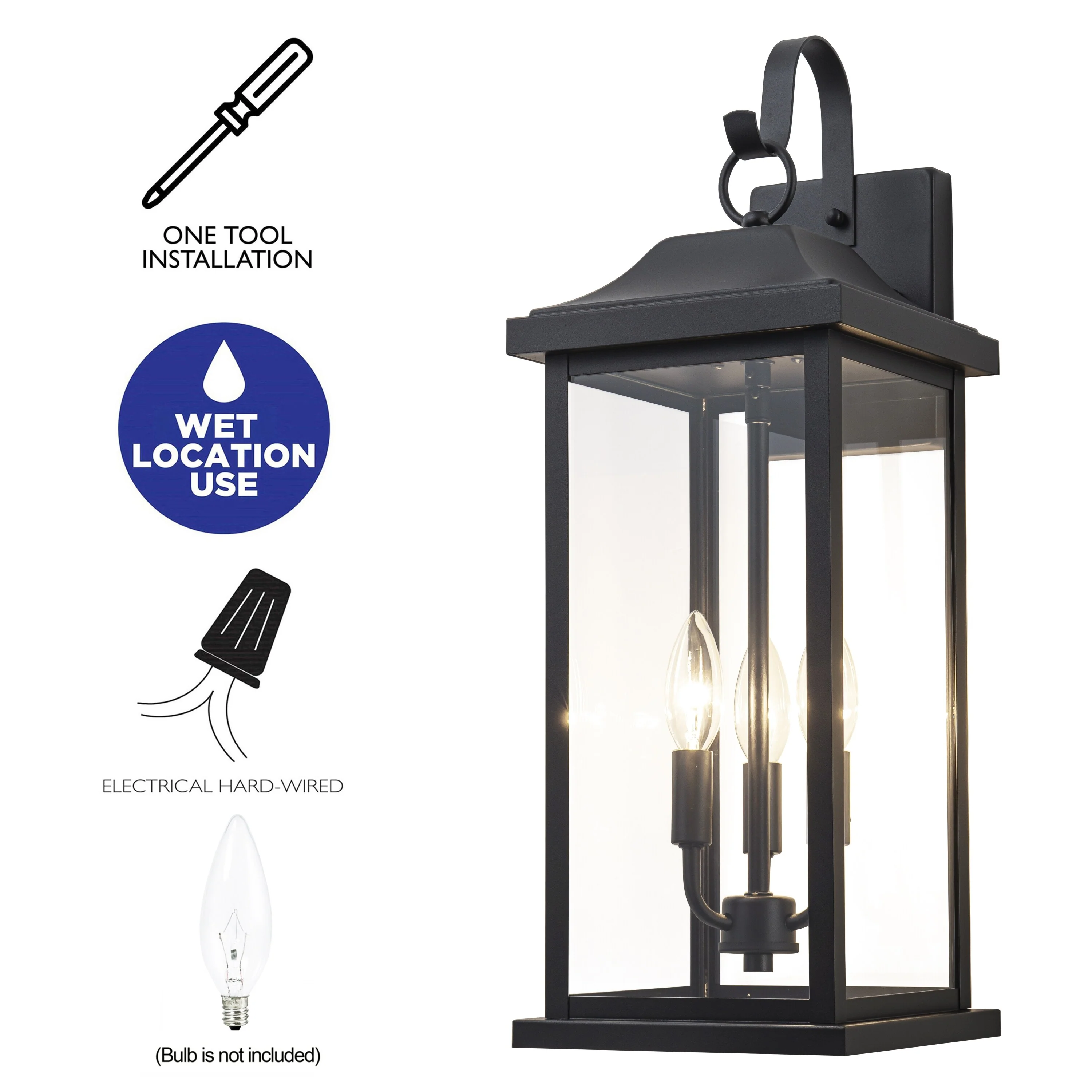 1-Light 22.48in Matte Black Outdoor Wall Lantern with Clear Glass Shade