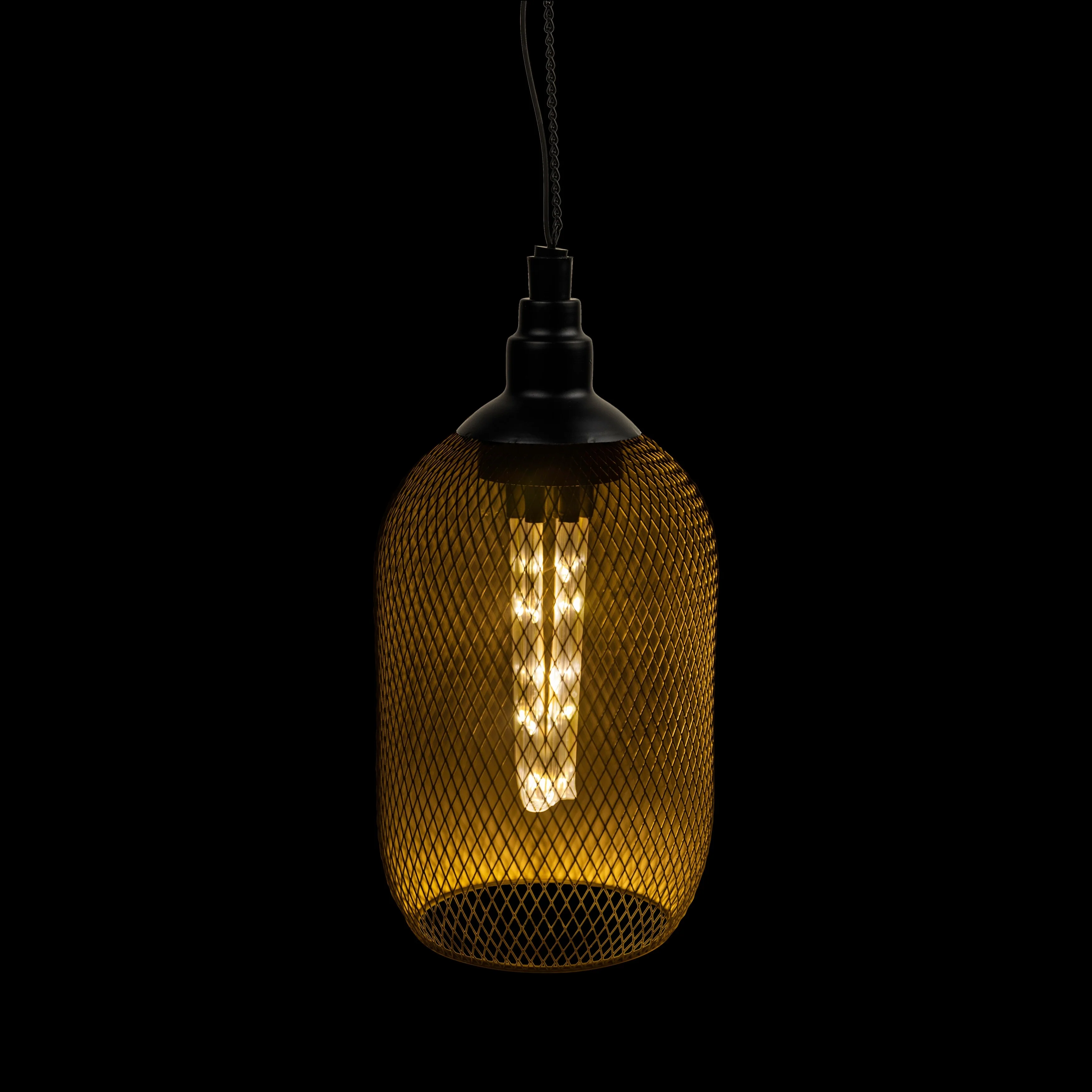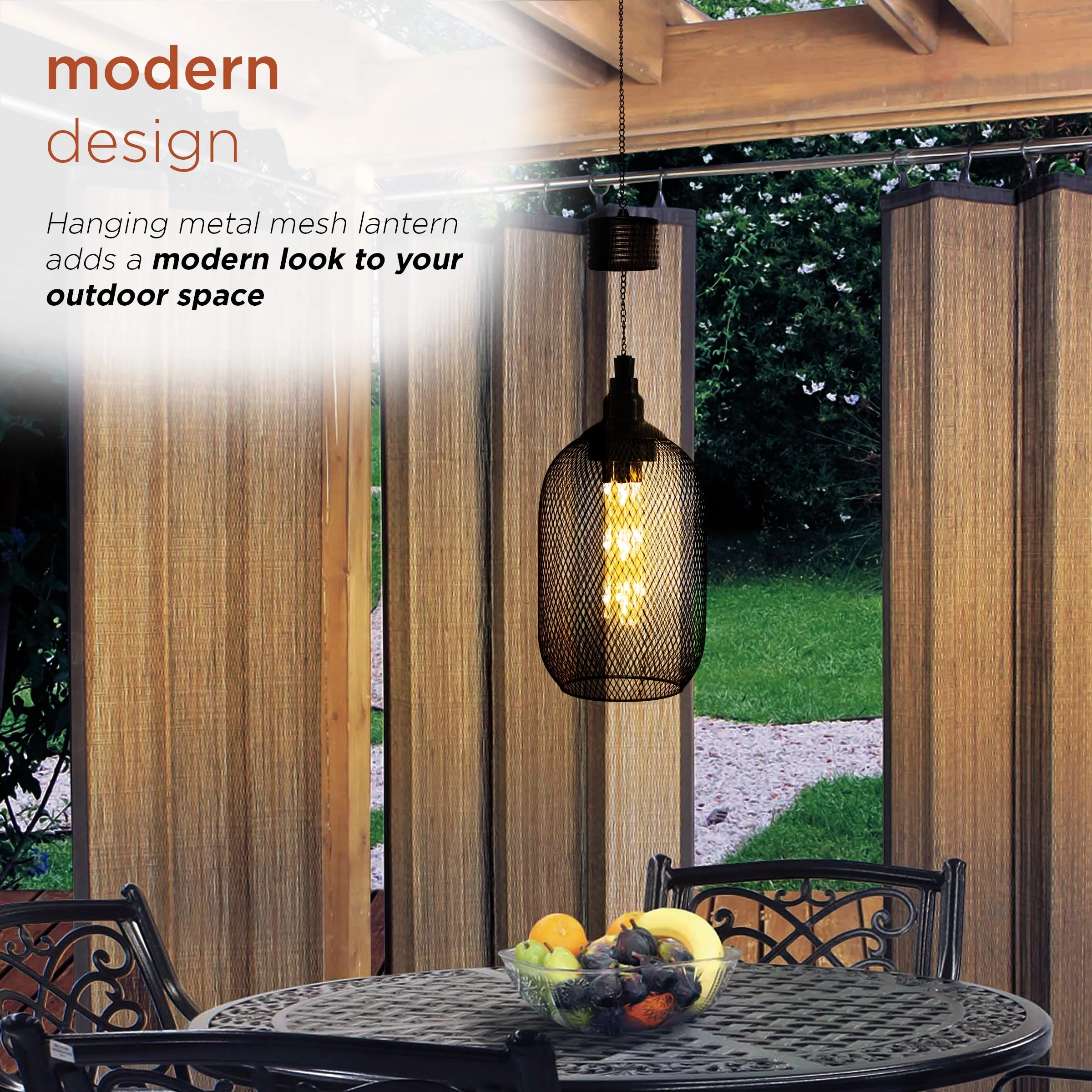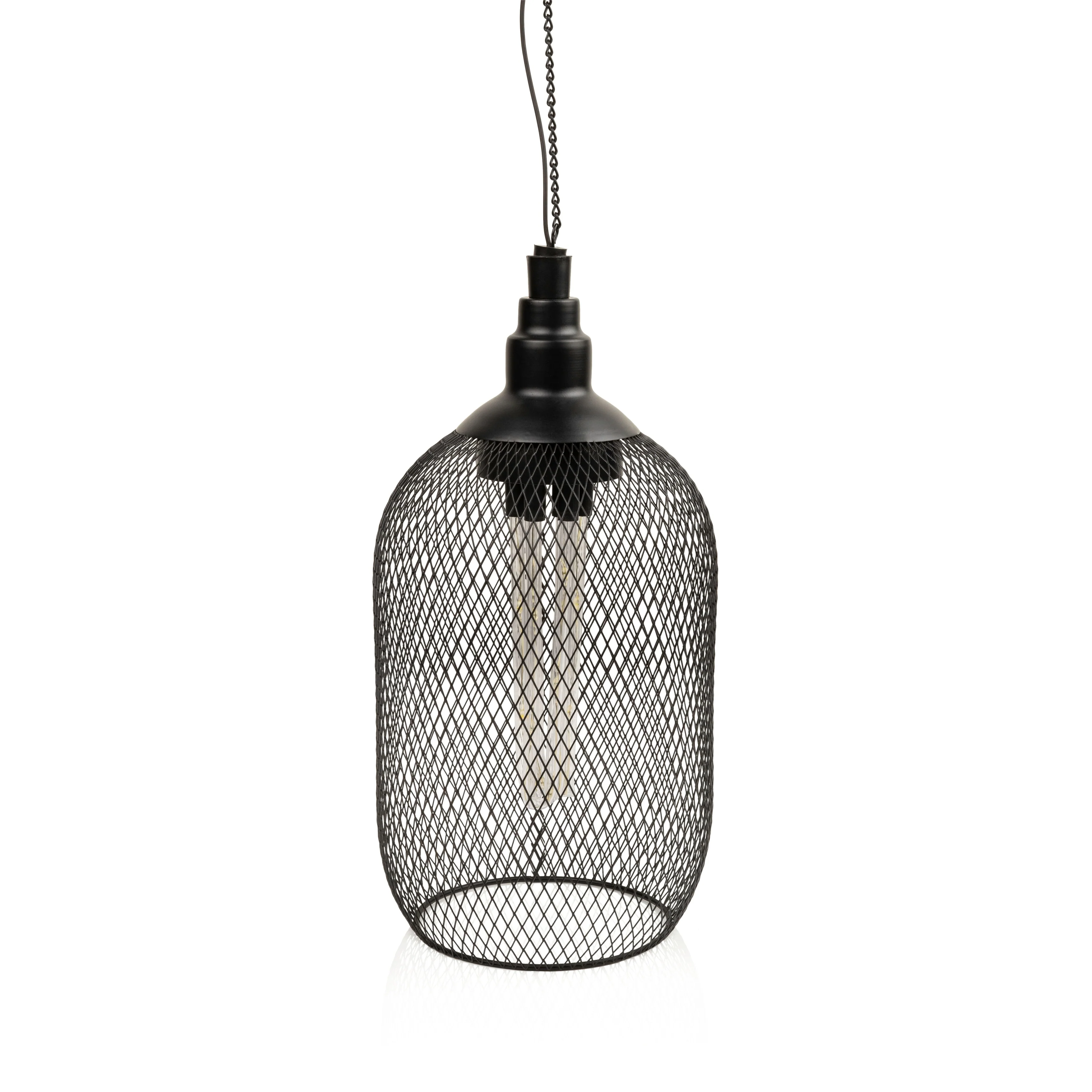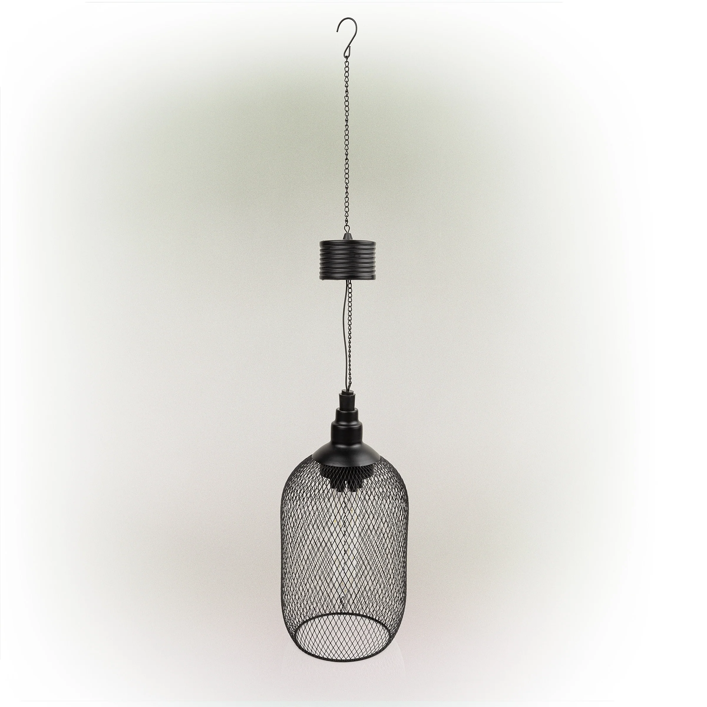 Alpine Corporation 12" Tall Hanging Solar Powered Outdoor Mesh Lantern with LED Lights, Black