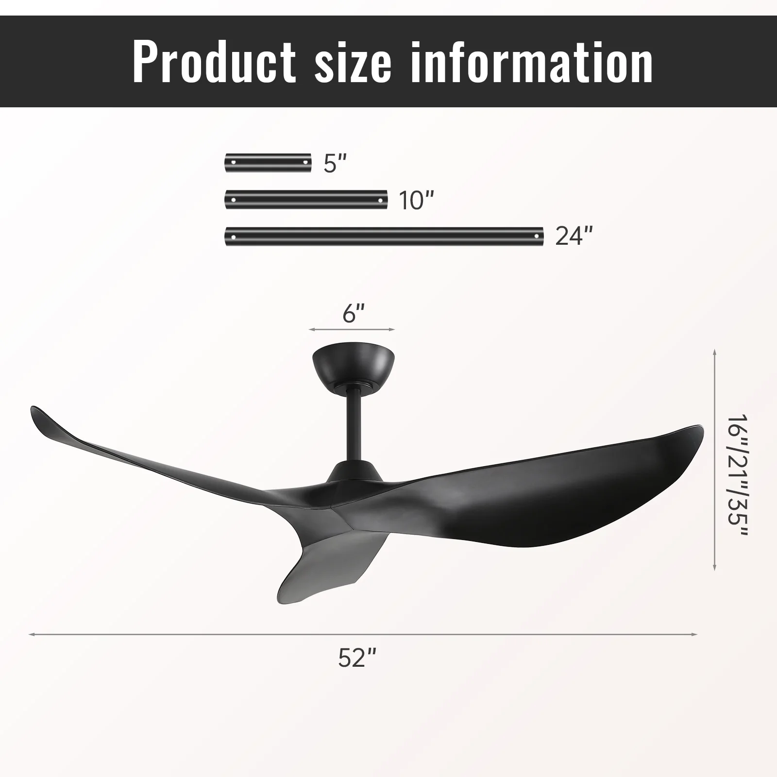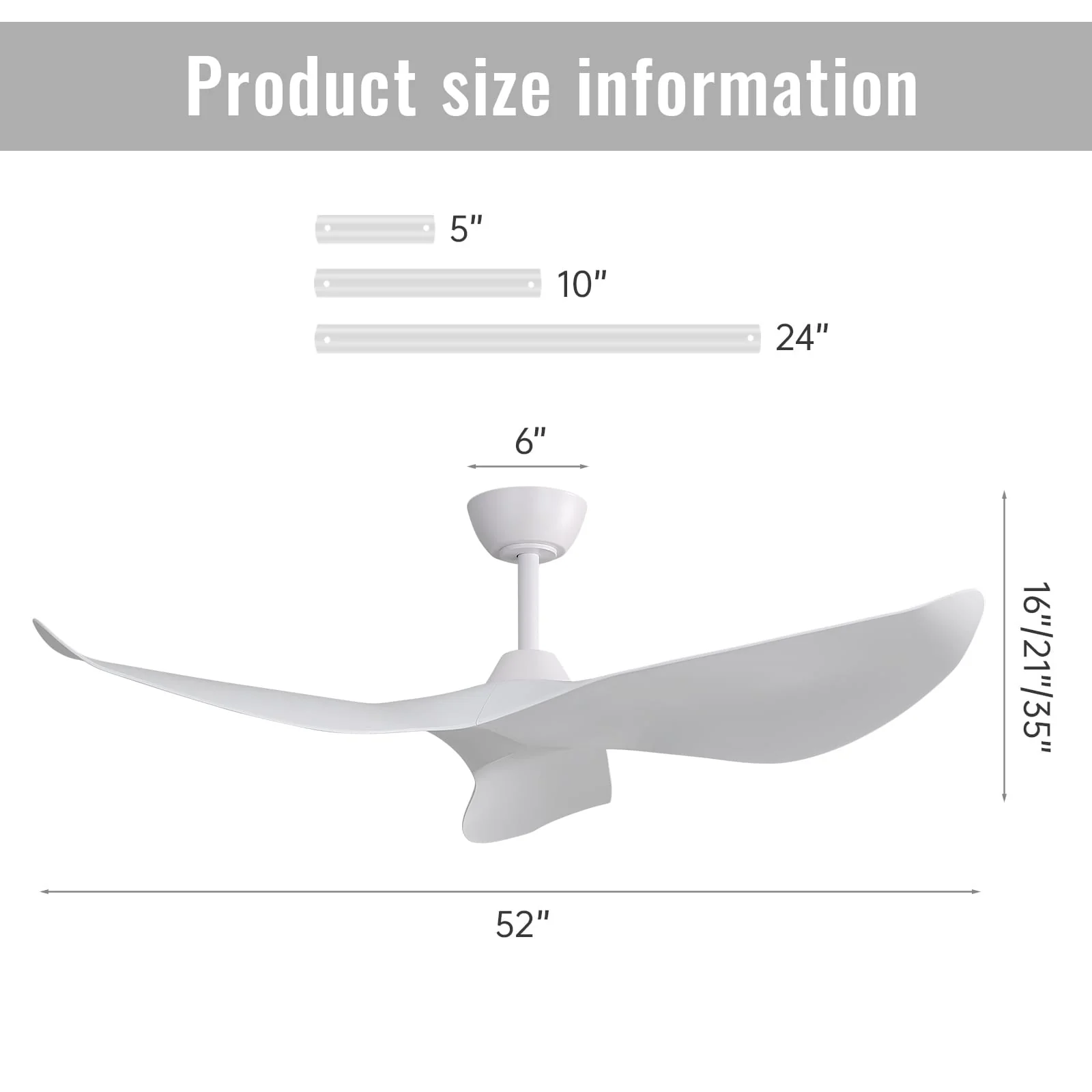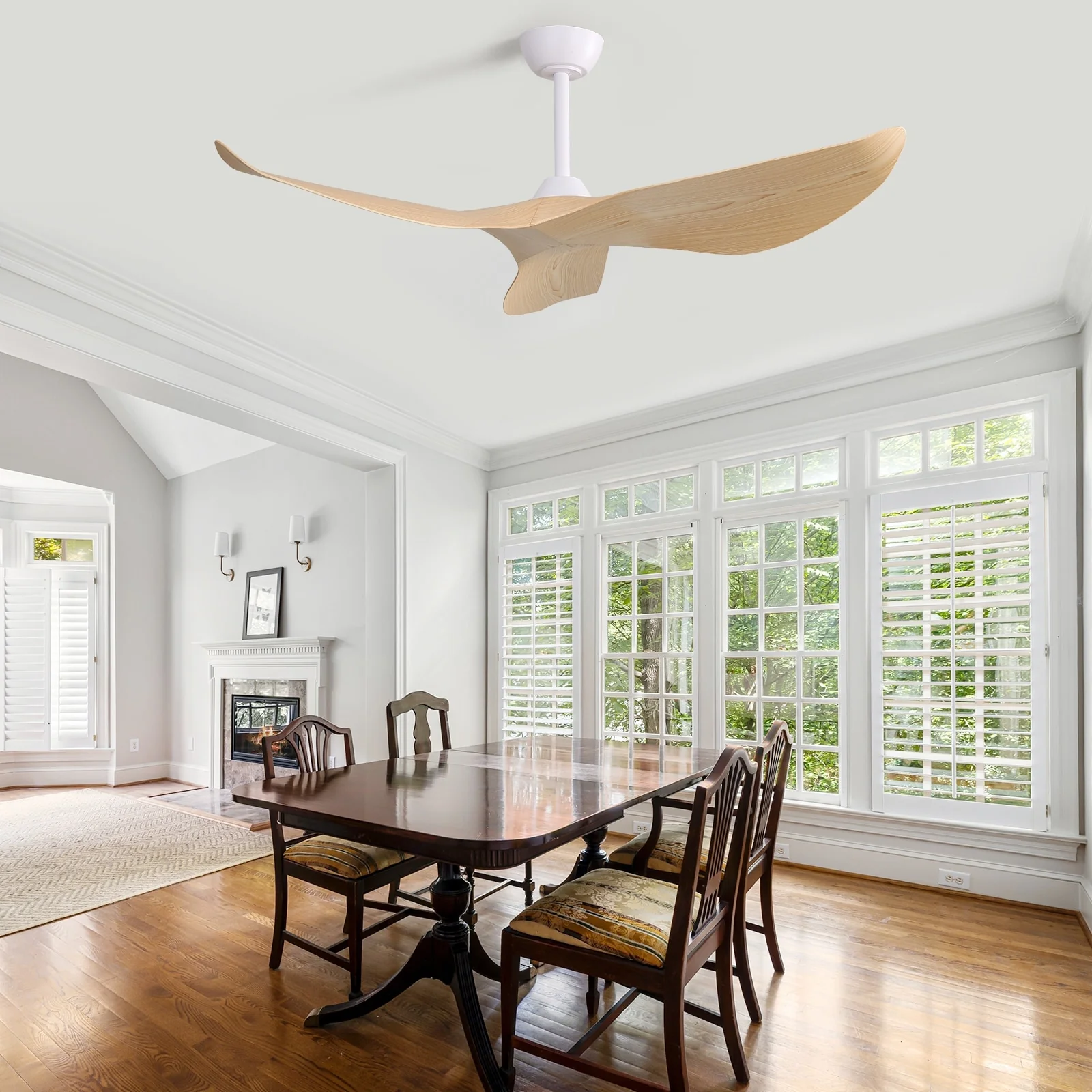 52" Modern Ceiling Fan without Light, Remote Control and Reversible DC Motor Included
