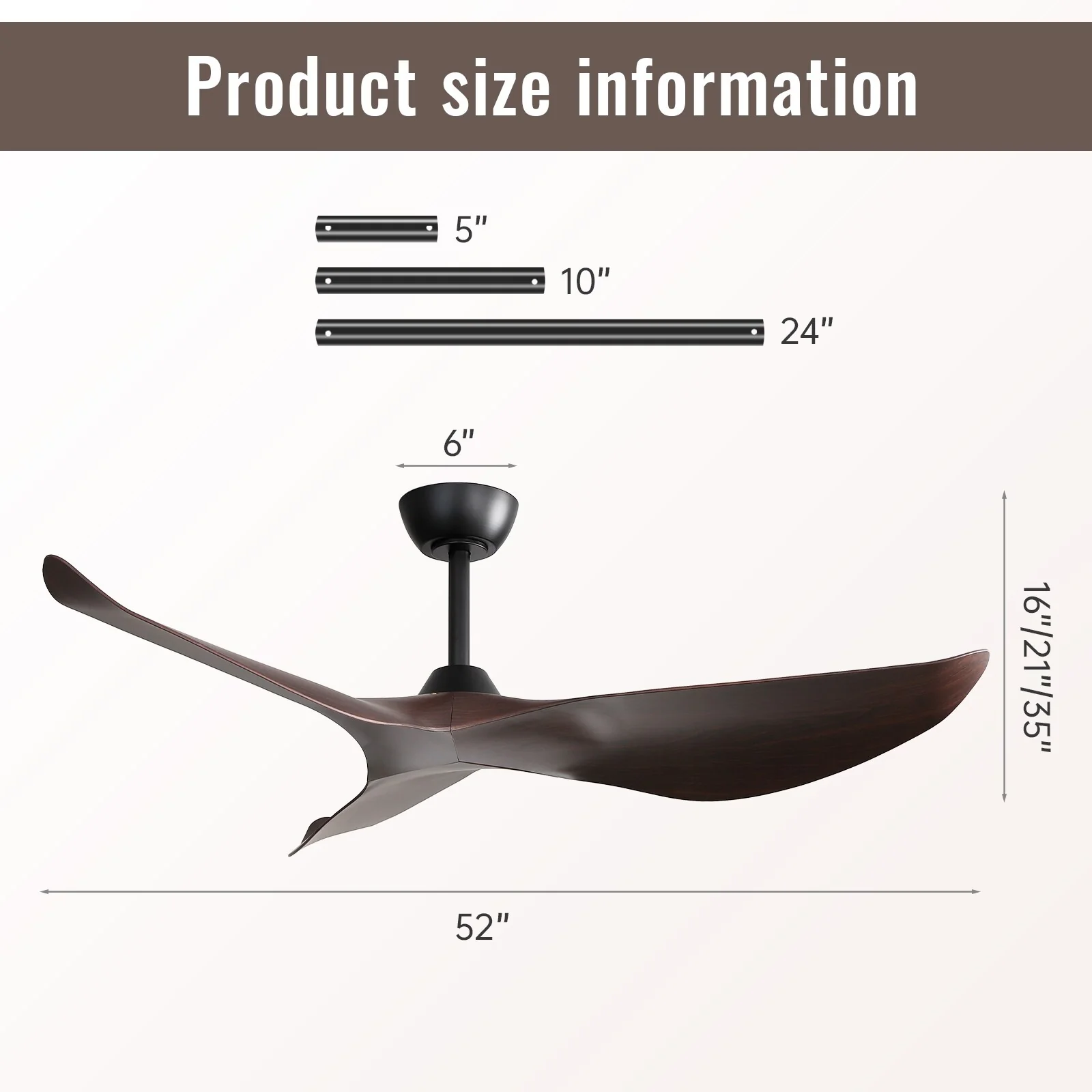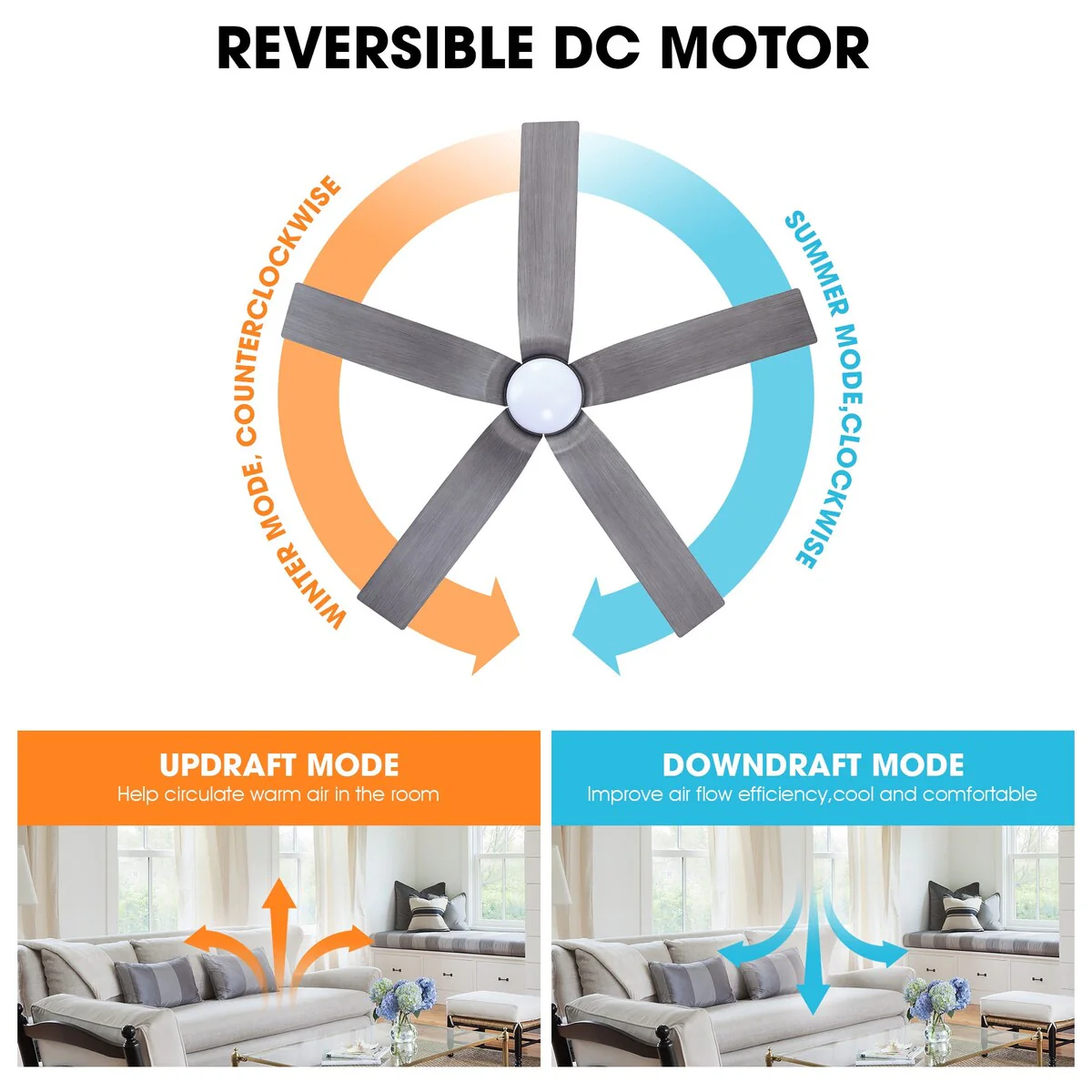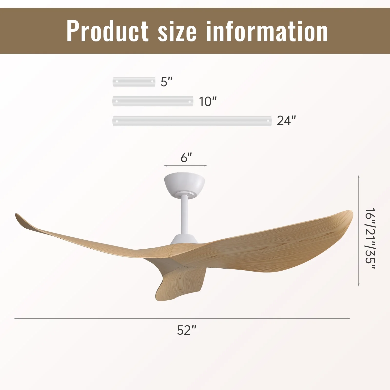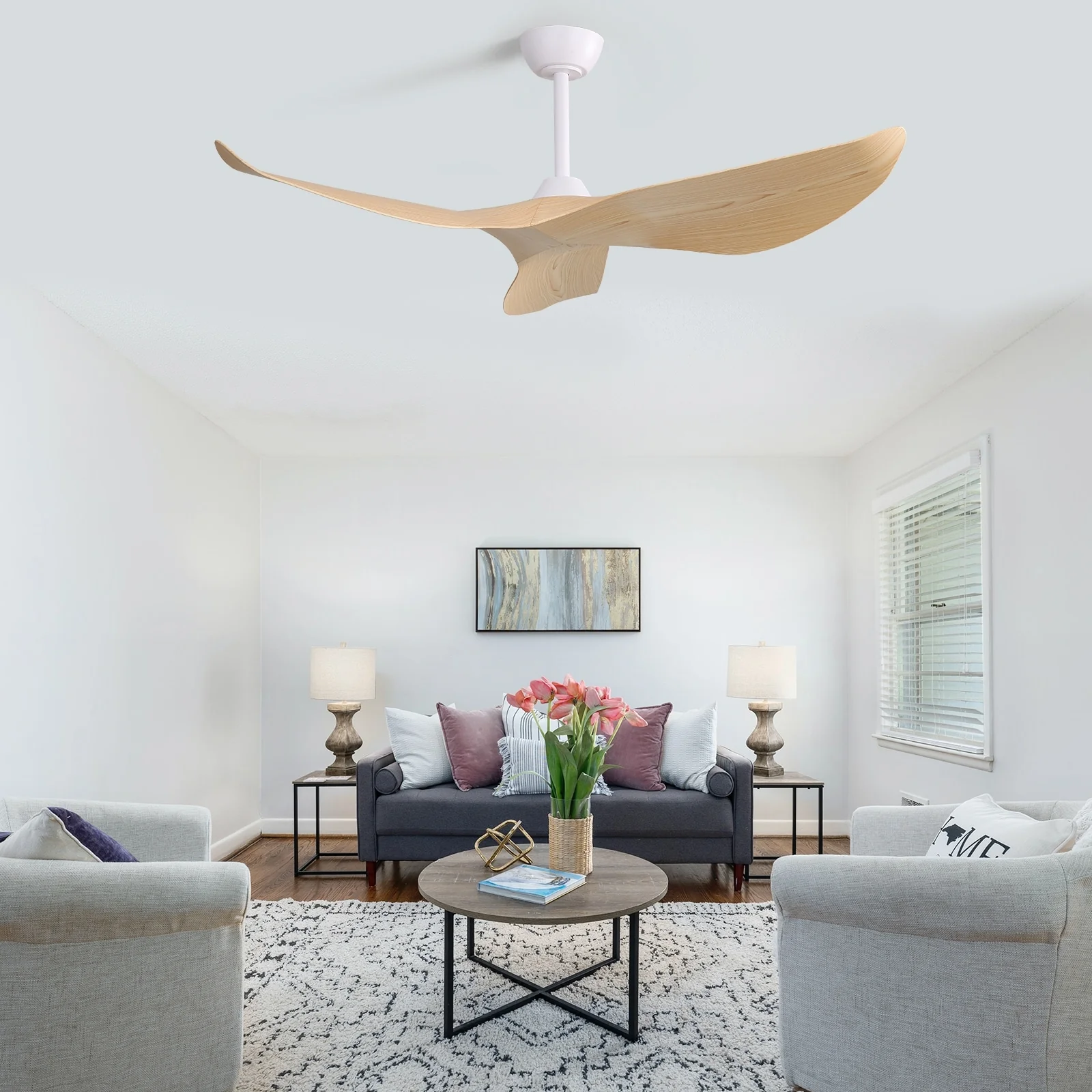 52" Modern Ceiling Fan without Light, Remote Control and Reversible DC Motor Included
