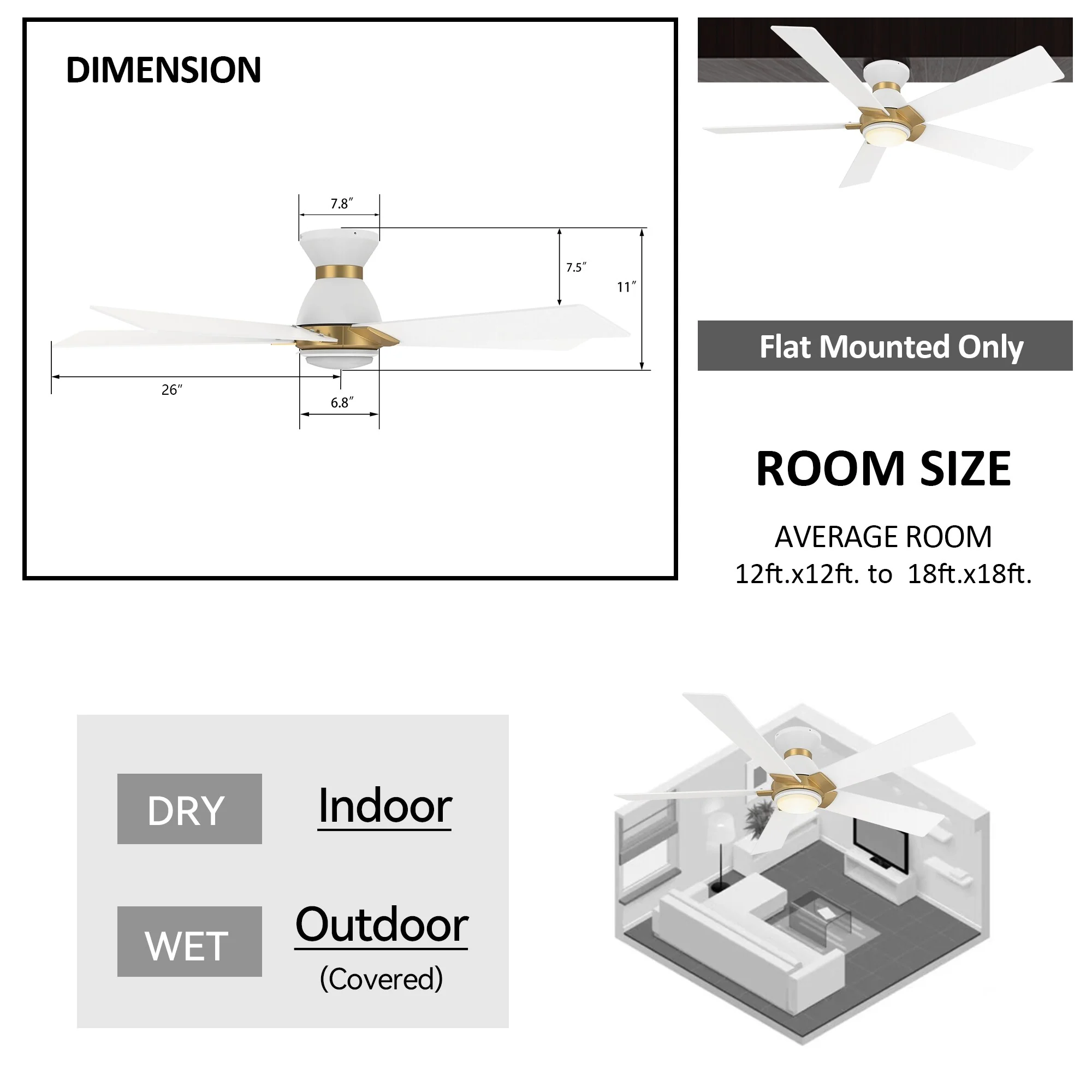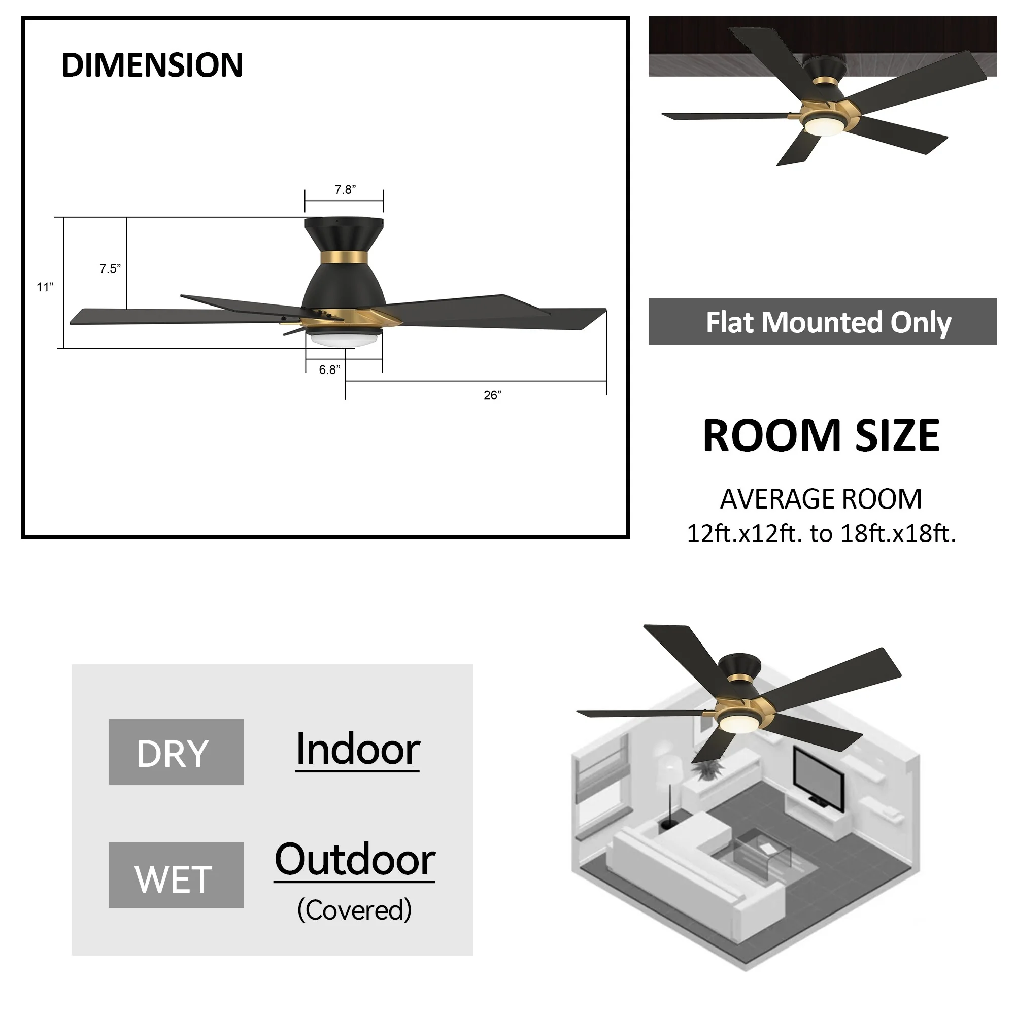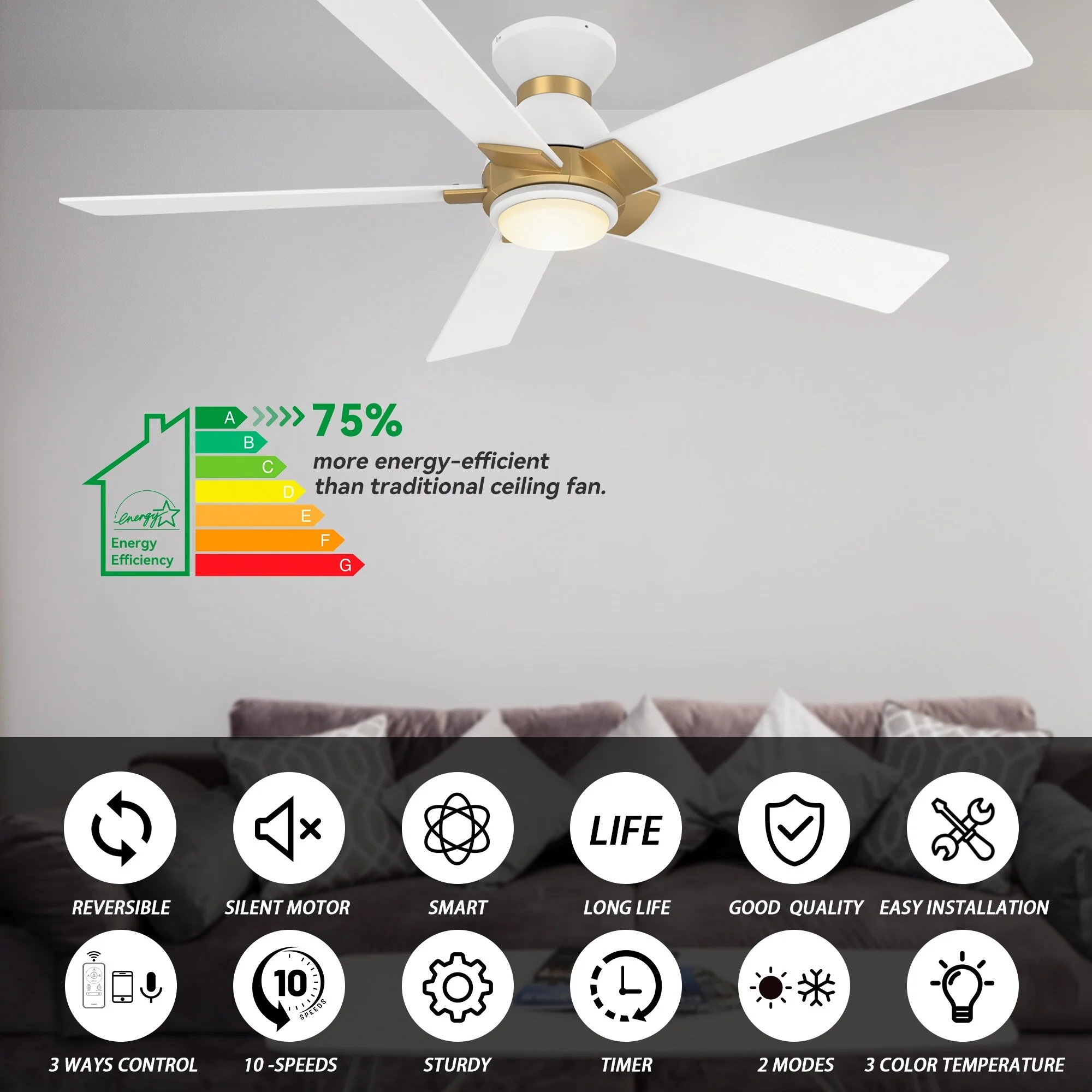 CARRO Joule 52" 5-Blade Smart Ceiling Fan with Light and Remote-Flush Mount