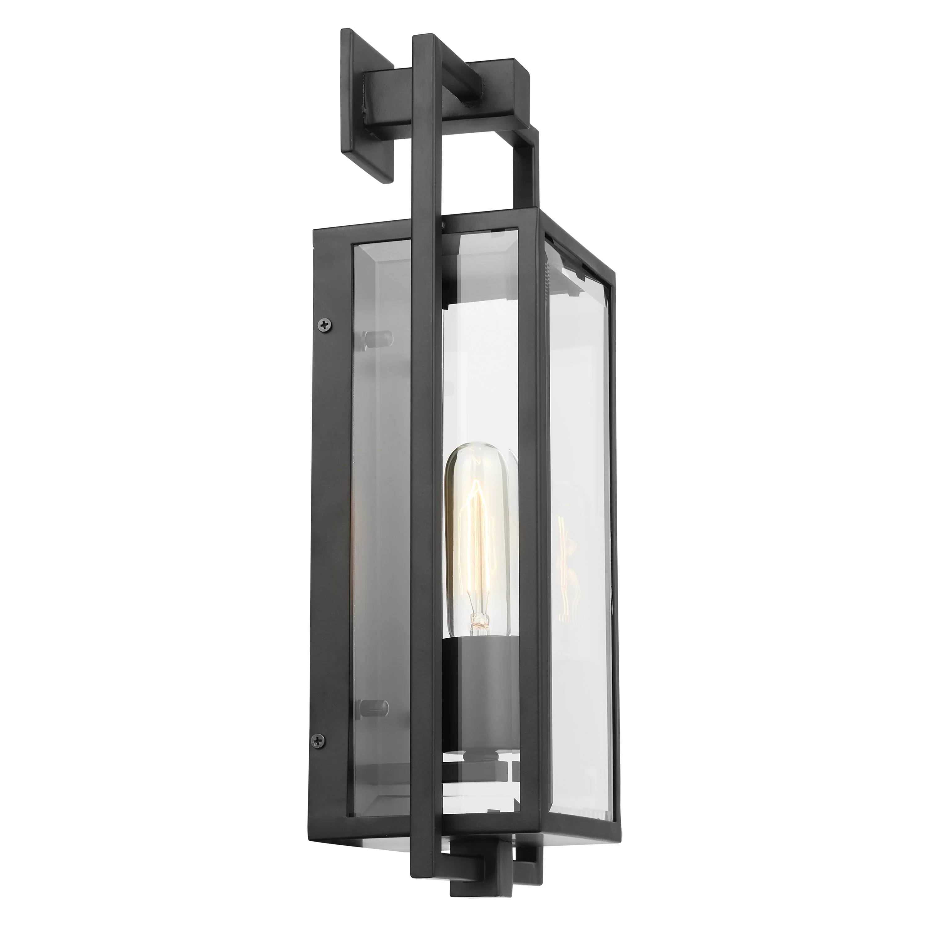 Exhibit 1 Light Medium Wall Lantern Matte Black Finish with Clear Beveled Glass