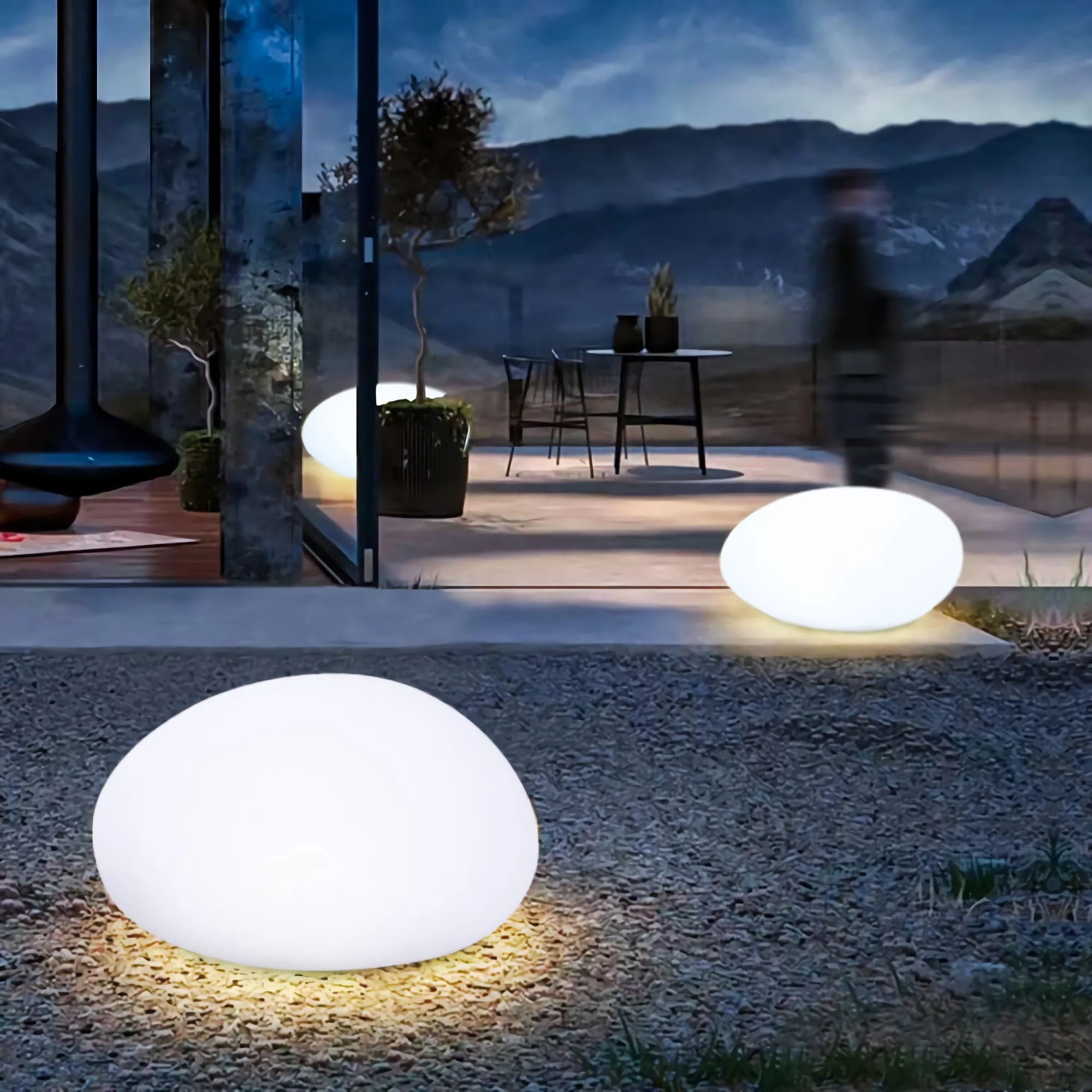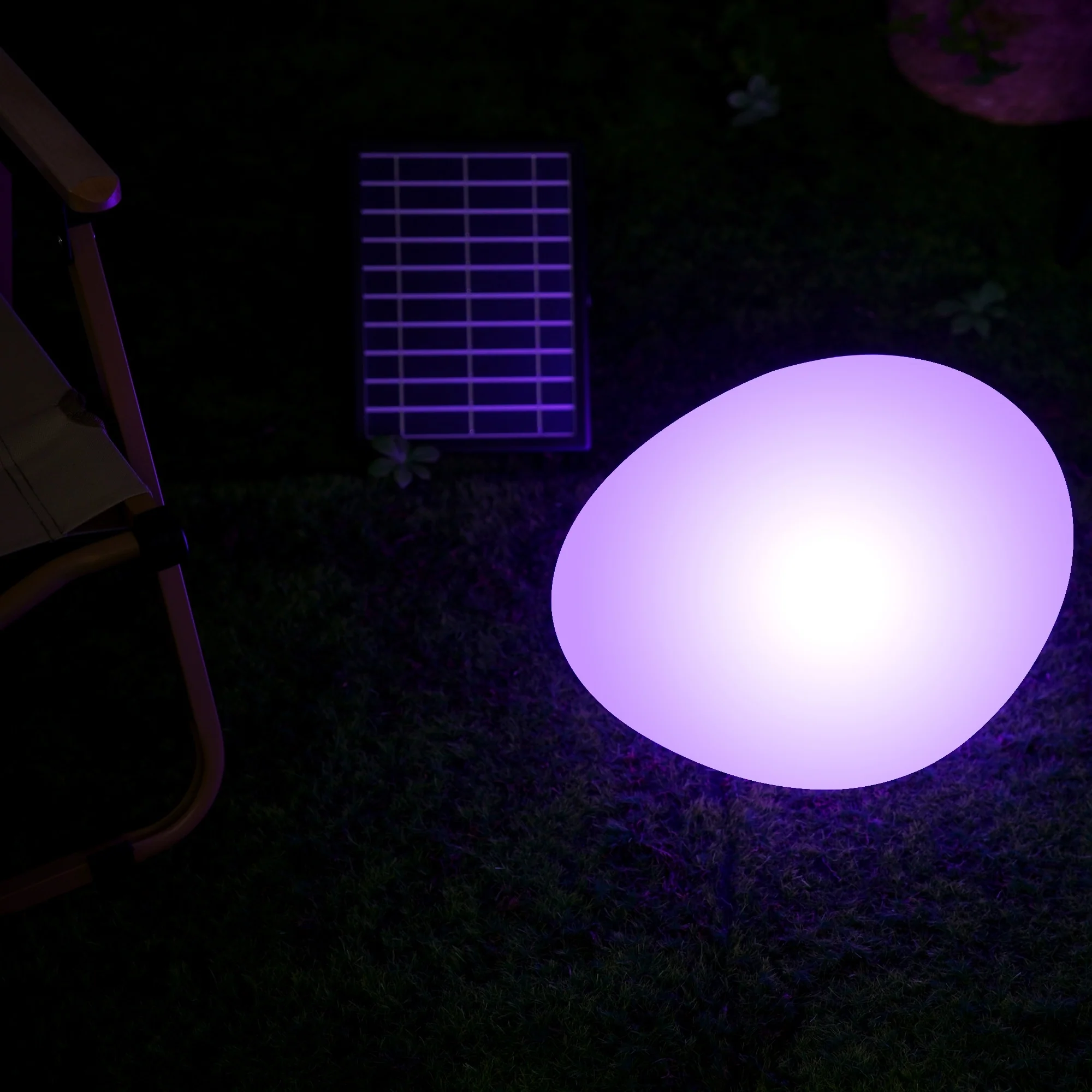 Indoor & Outdoor Chargeable Solar Garden Light - 12" Cobblestone Shape