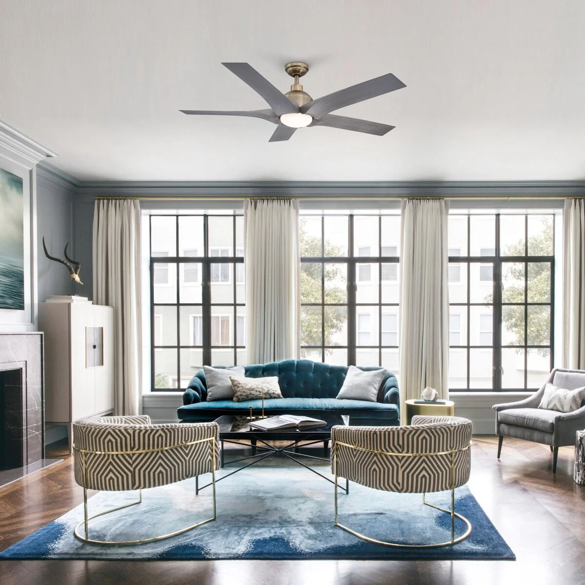 Bovard 56-inch Indoor/Outdoor Smart Ceiling Fan, Dimmable LED Light Kit & Remote, Works with Alexa/Google Home/Siri