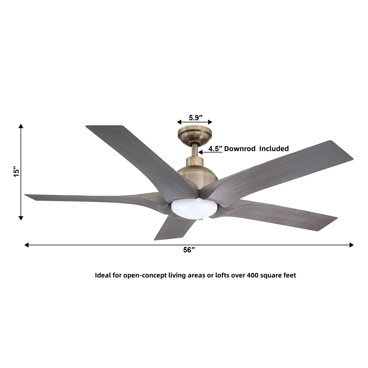 56" Antique Bronze ABS 5-Blade Chandelier Ceiling Fan with Light and Remote