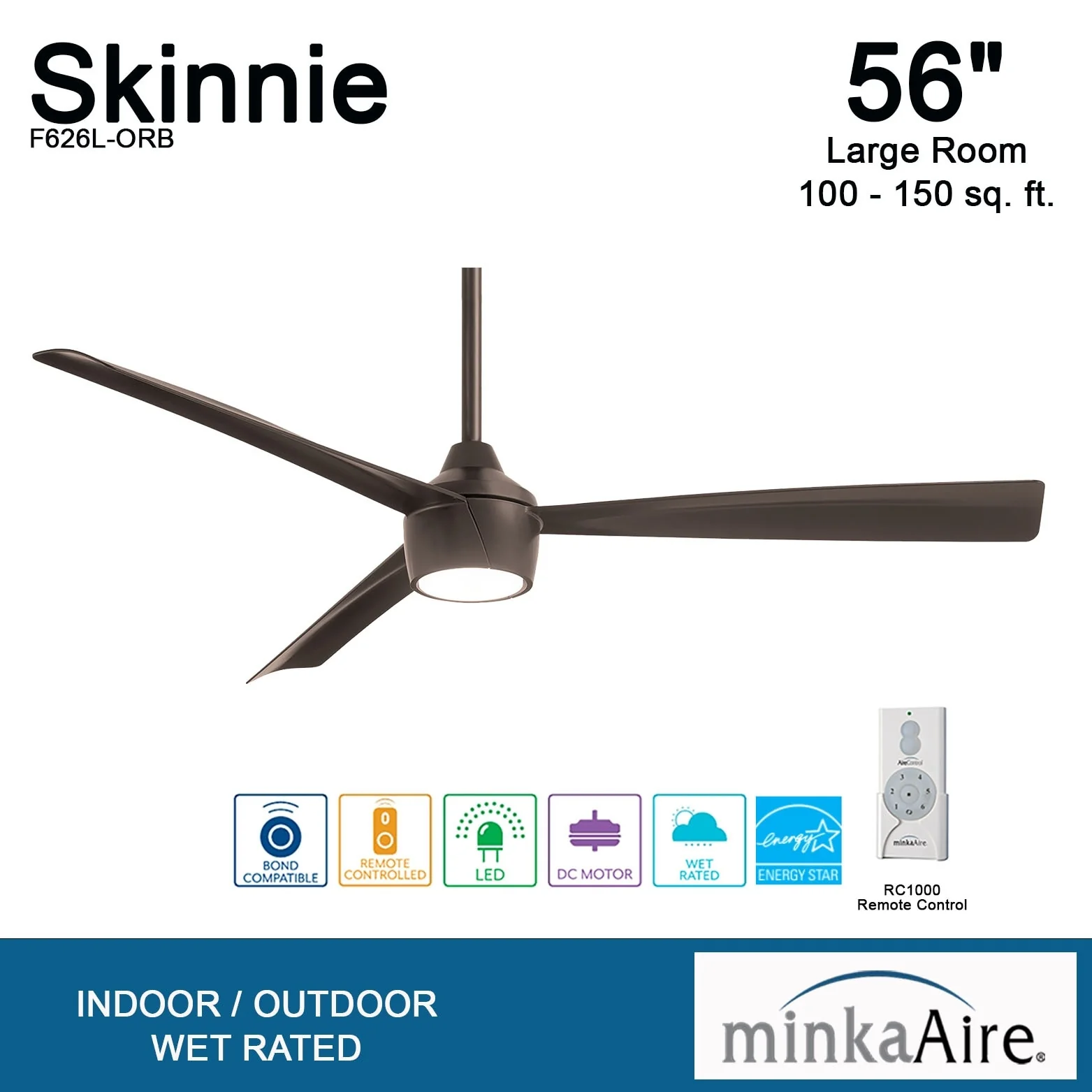 Minka Aire Skinnie 3 Blade 56 Inch Ceiling Fan With LED Light