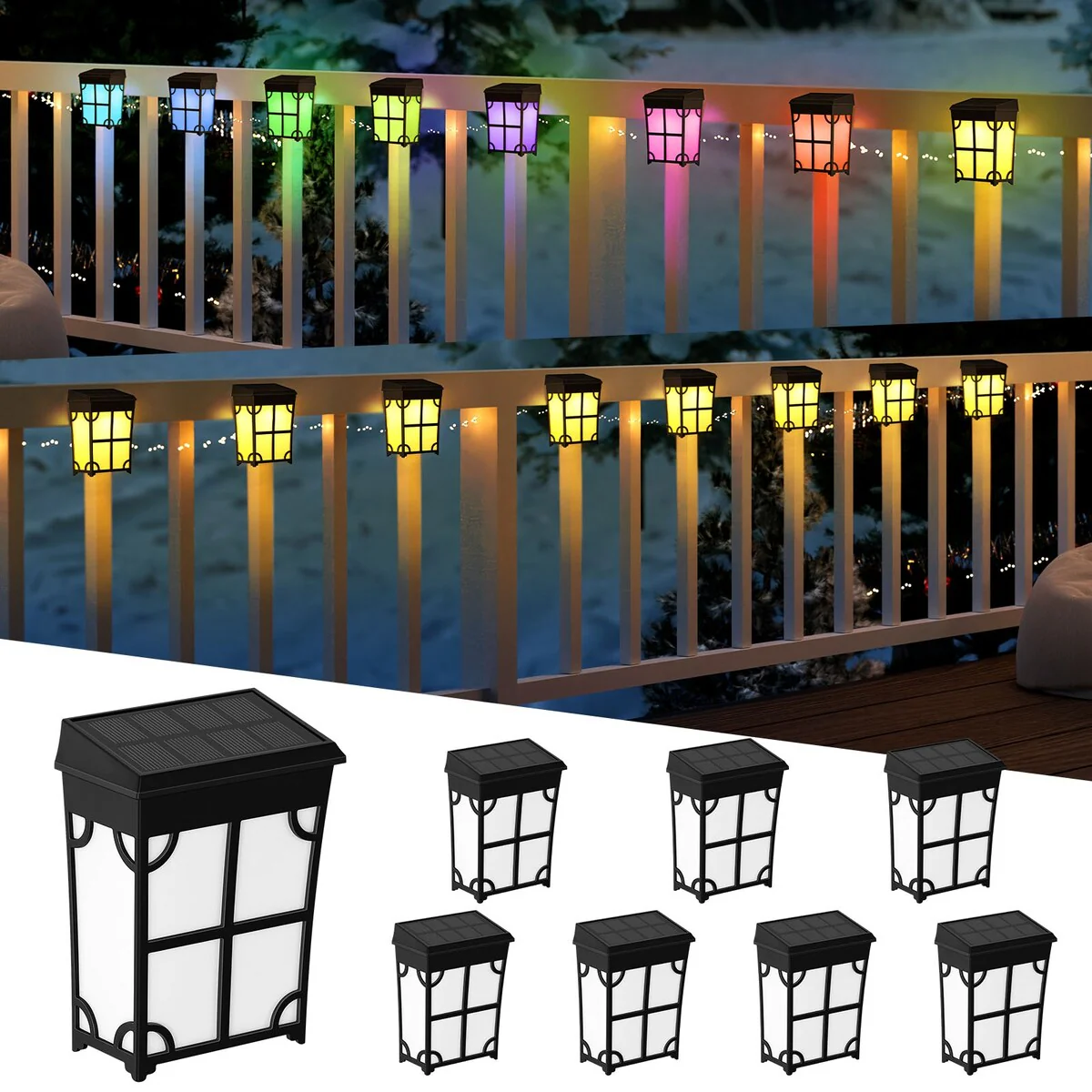 2 Modes LED Solar Fence Lights Waterproof,8 Pack