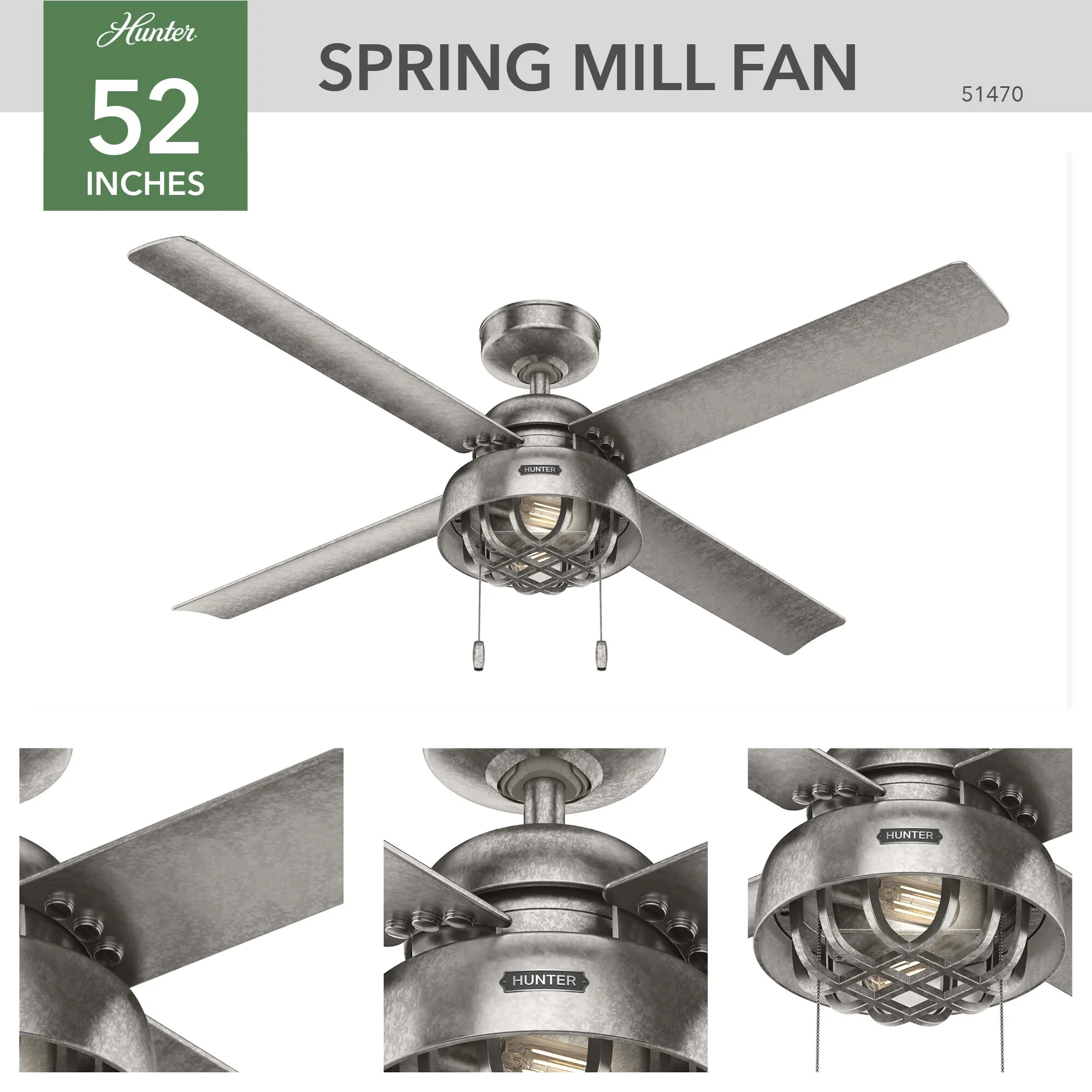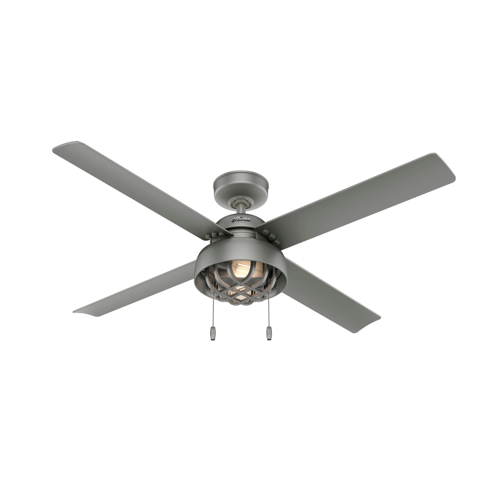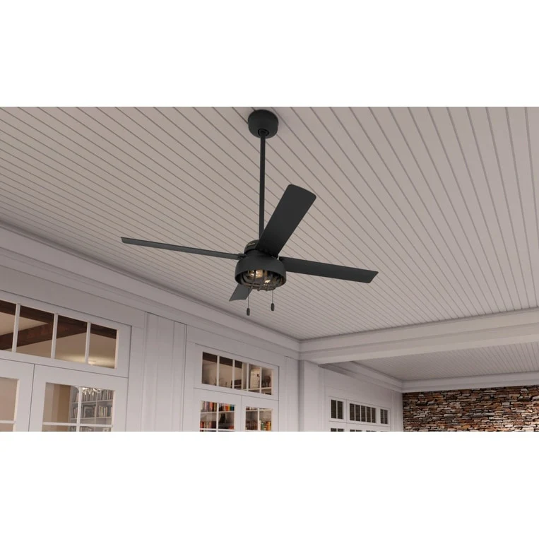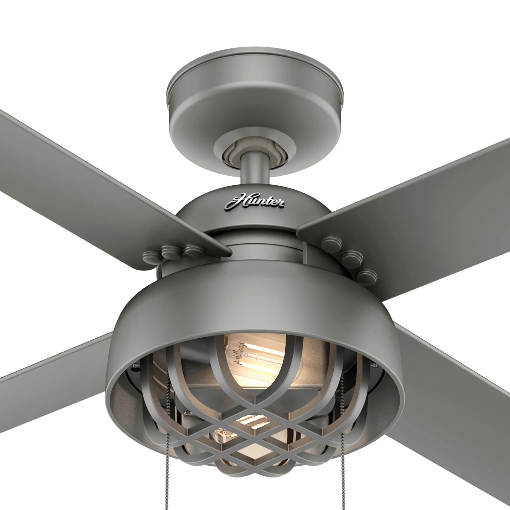 Hunter 52" Spring Mill Outdoor Ceiling Fan w/ LED Light and Pull Chain, Damp-Rated - Industrial, Transitional, Caged