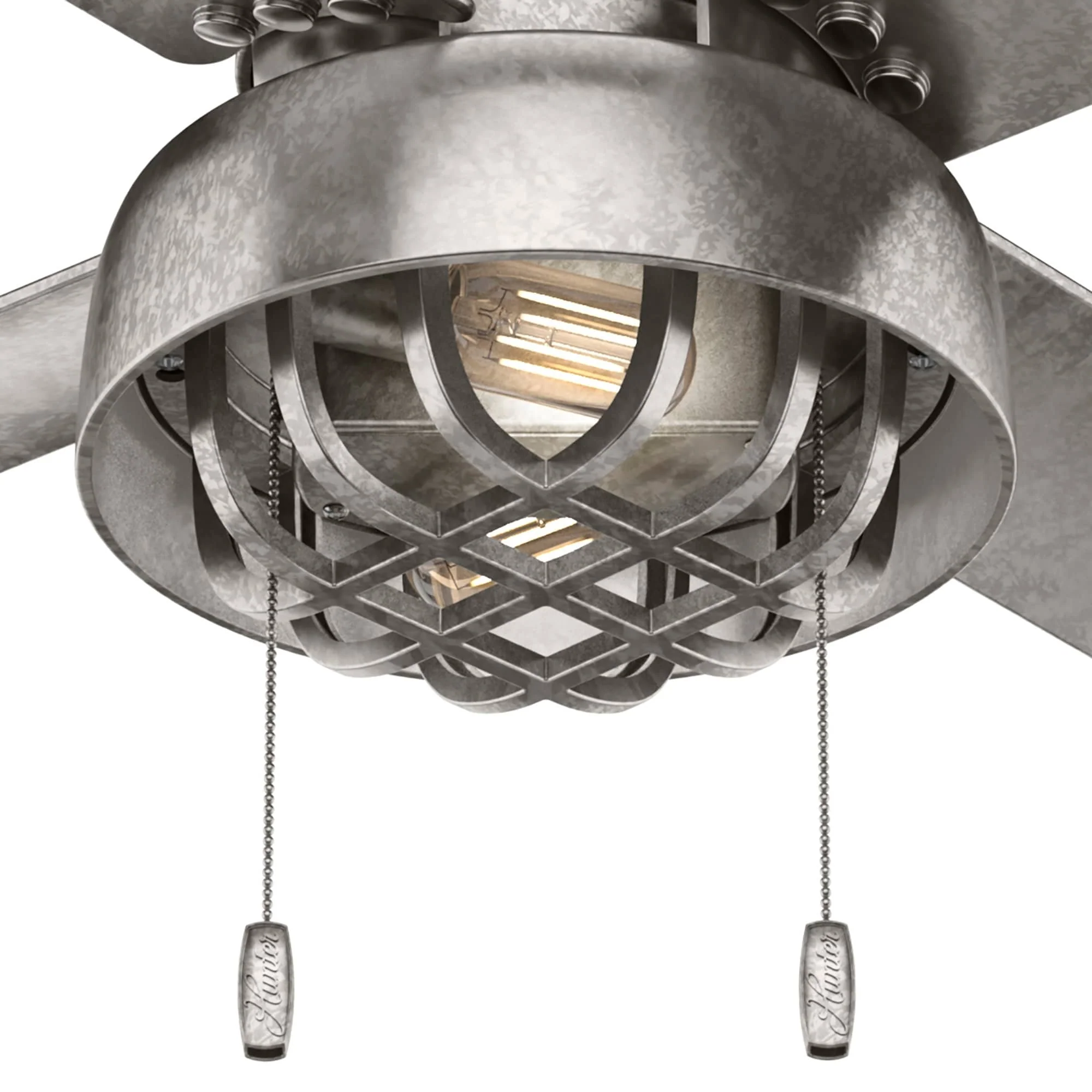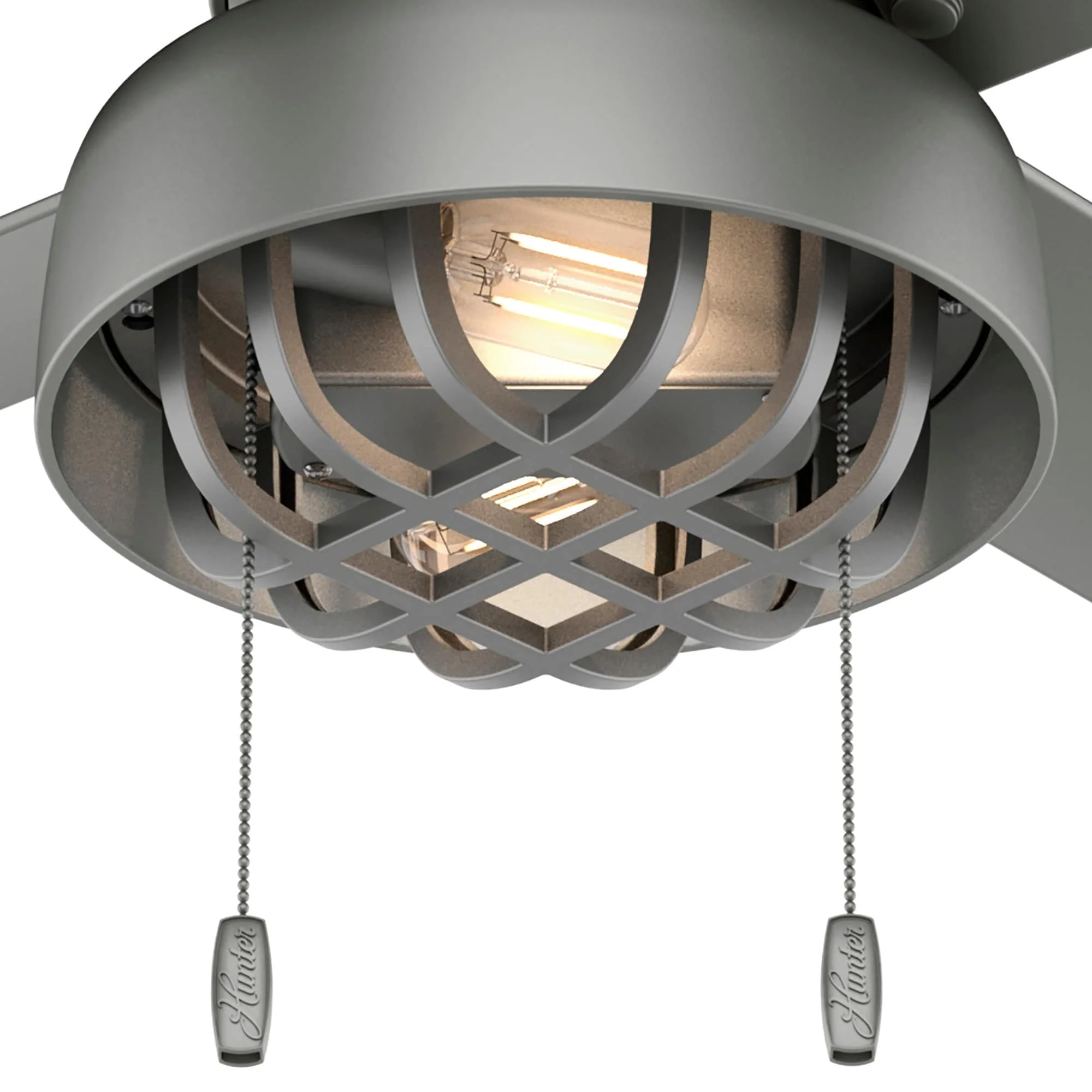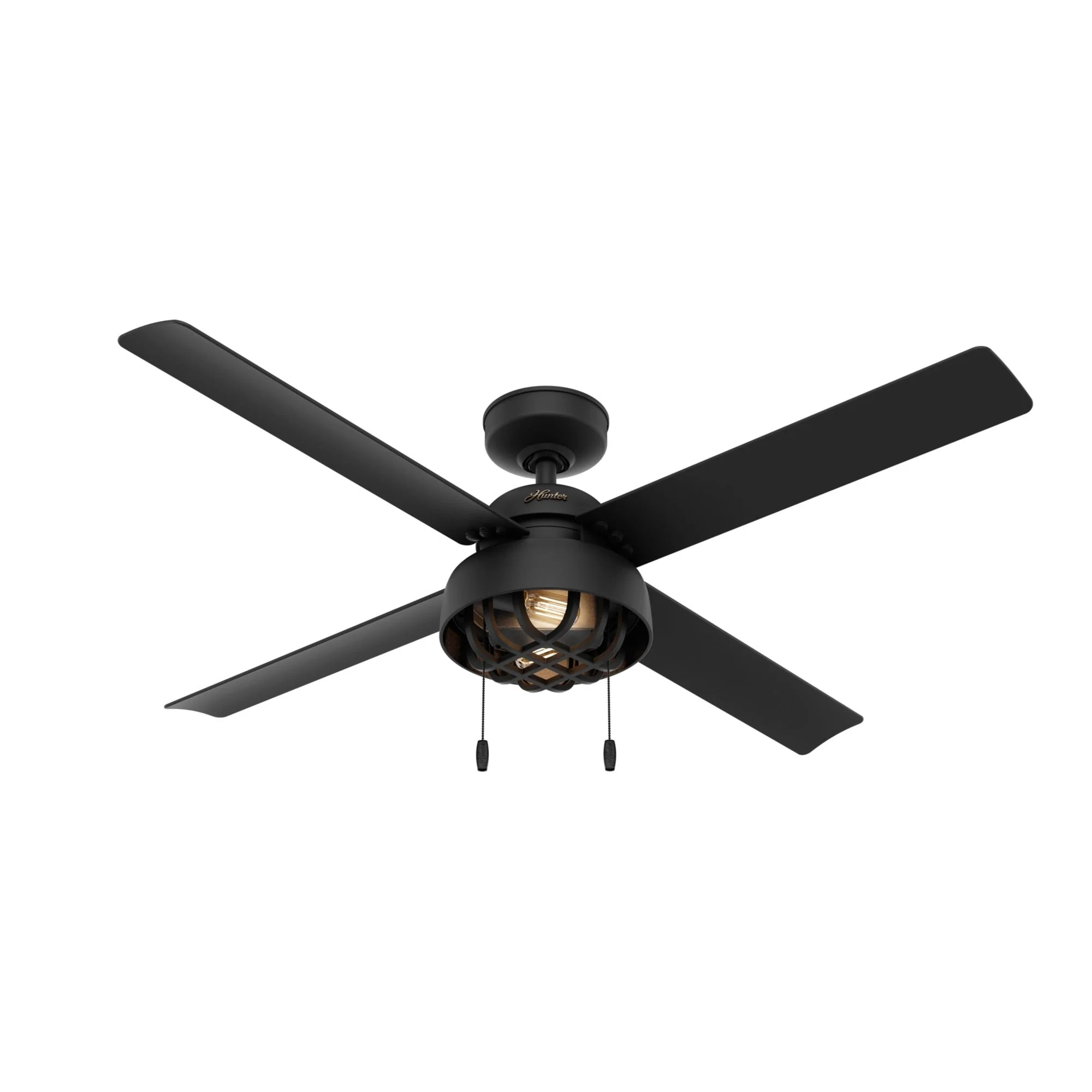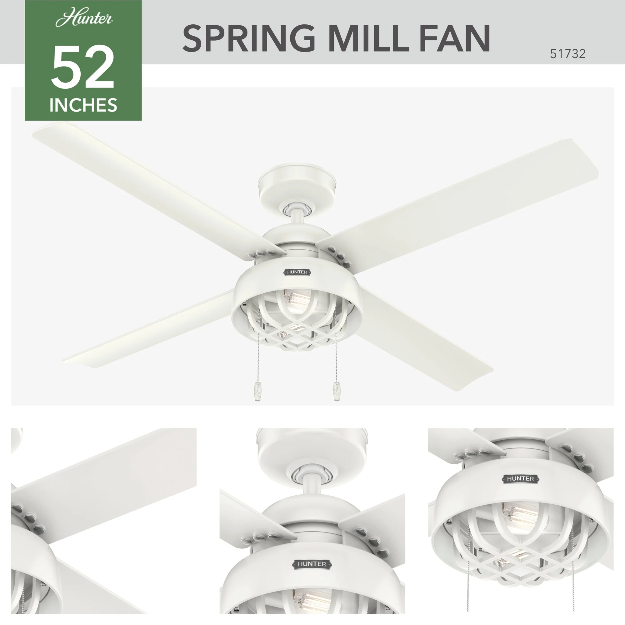 Hunter 52" Spring Mill Outdoor Ceiling Fan w/ LED Light and Pull Chain, Damp-Rated - Industrial, Transitional, Caged