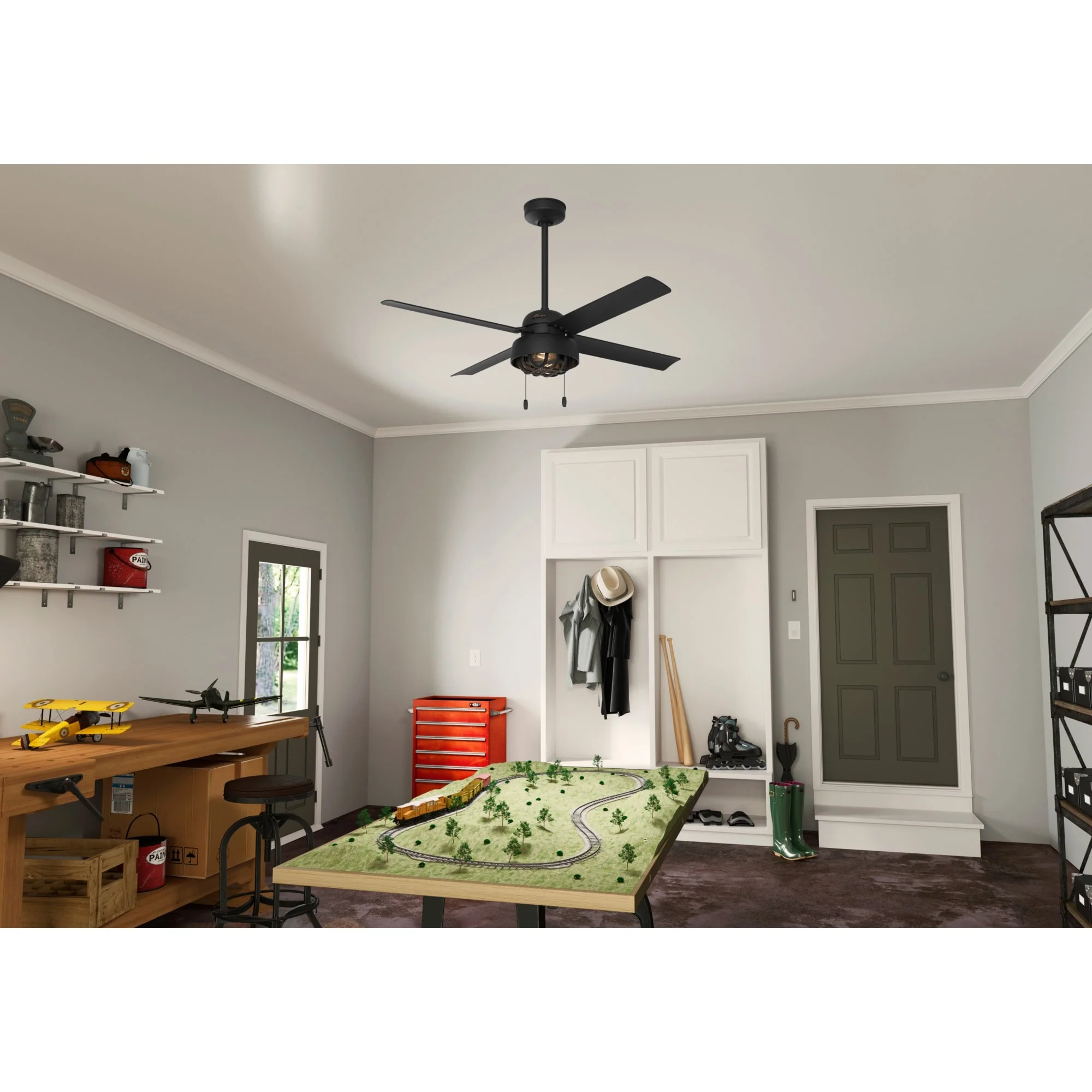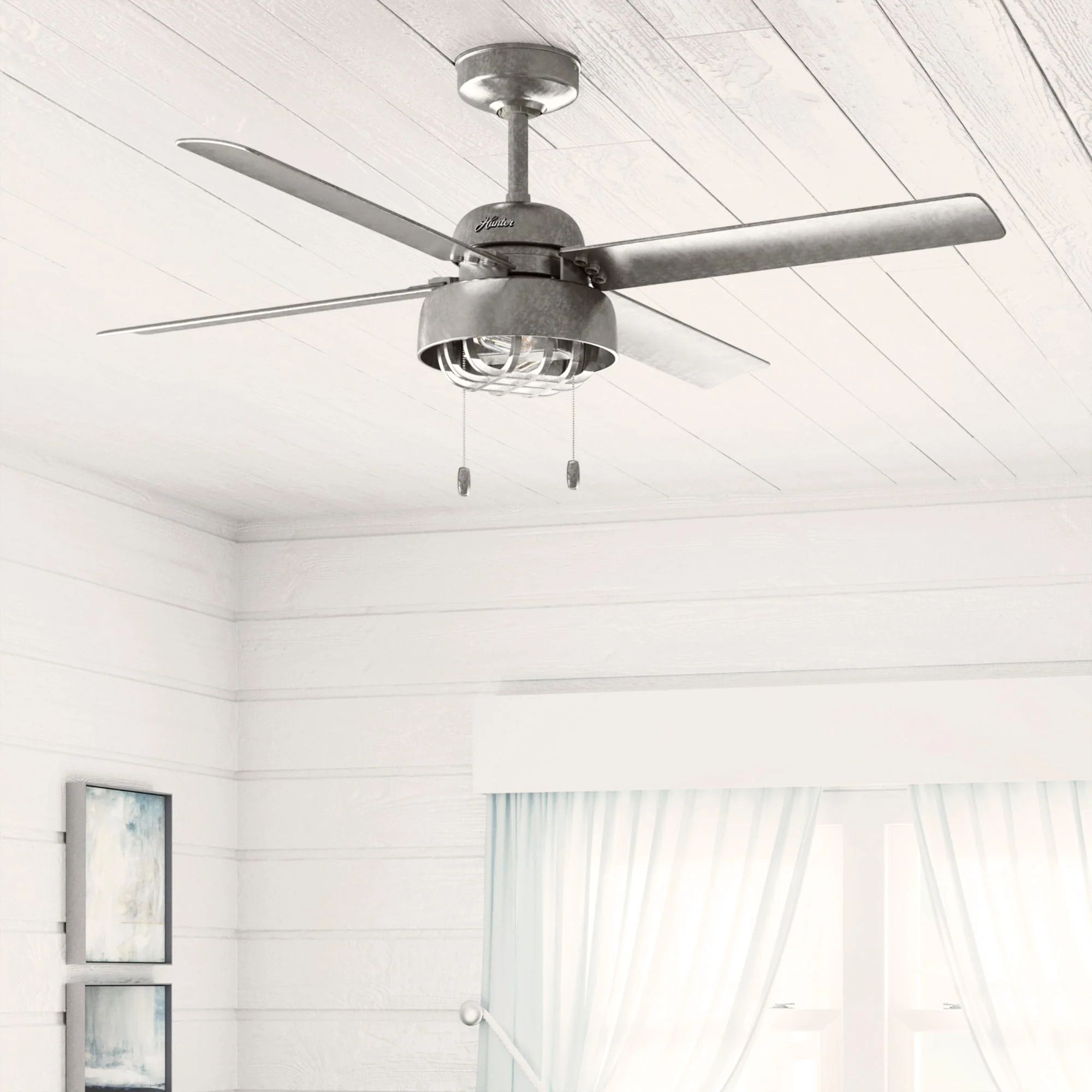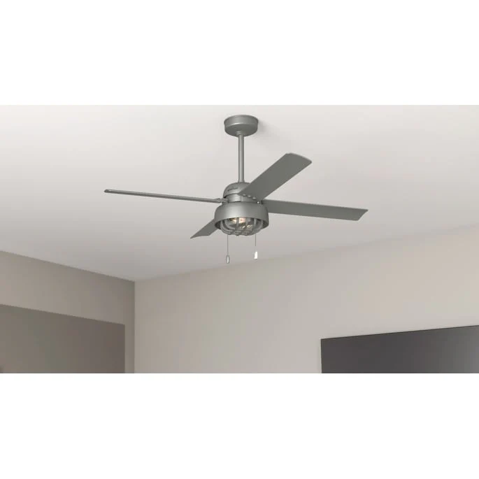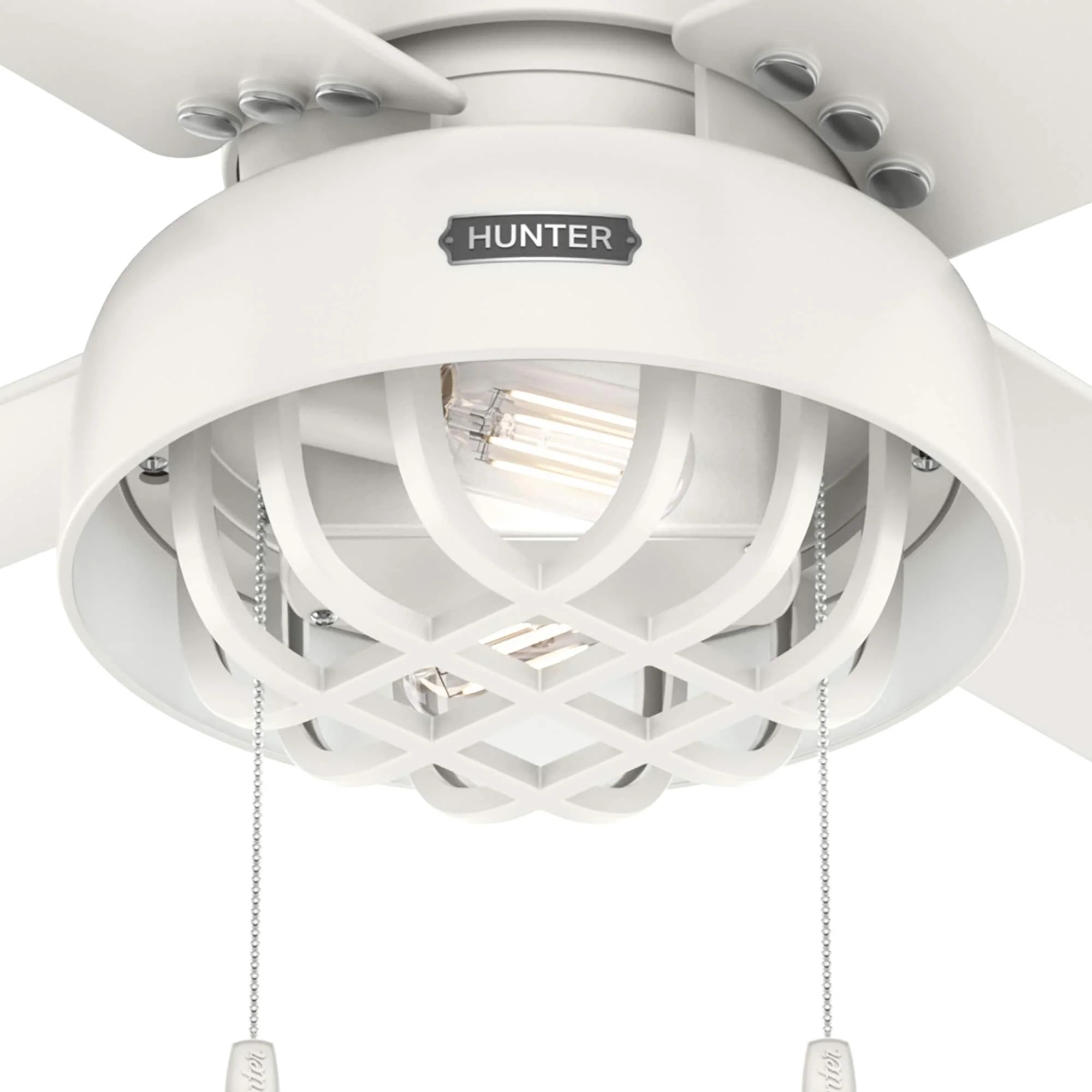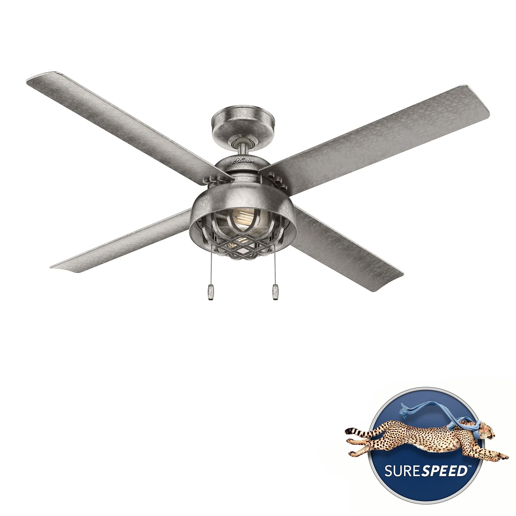 Hunter 52" Spring Mill Outdoor Ceiling Fan w/ LED Light and Pull Chain, Damp-Rated - Industrial, Transitional, Caged
