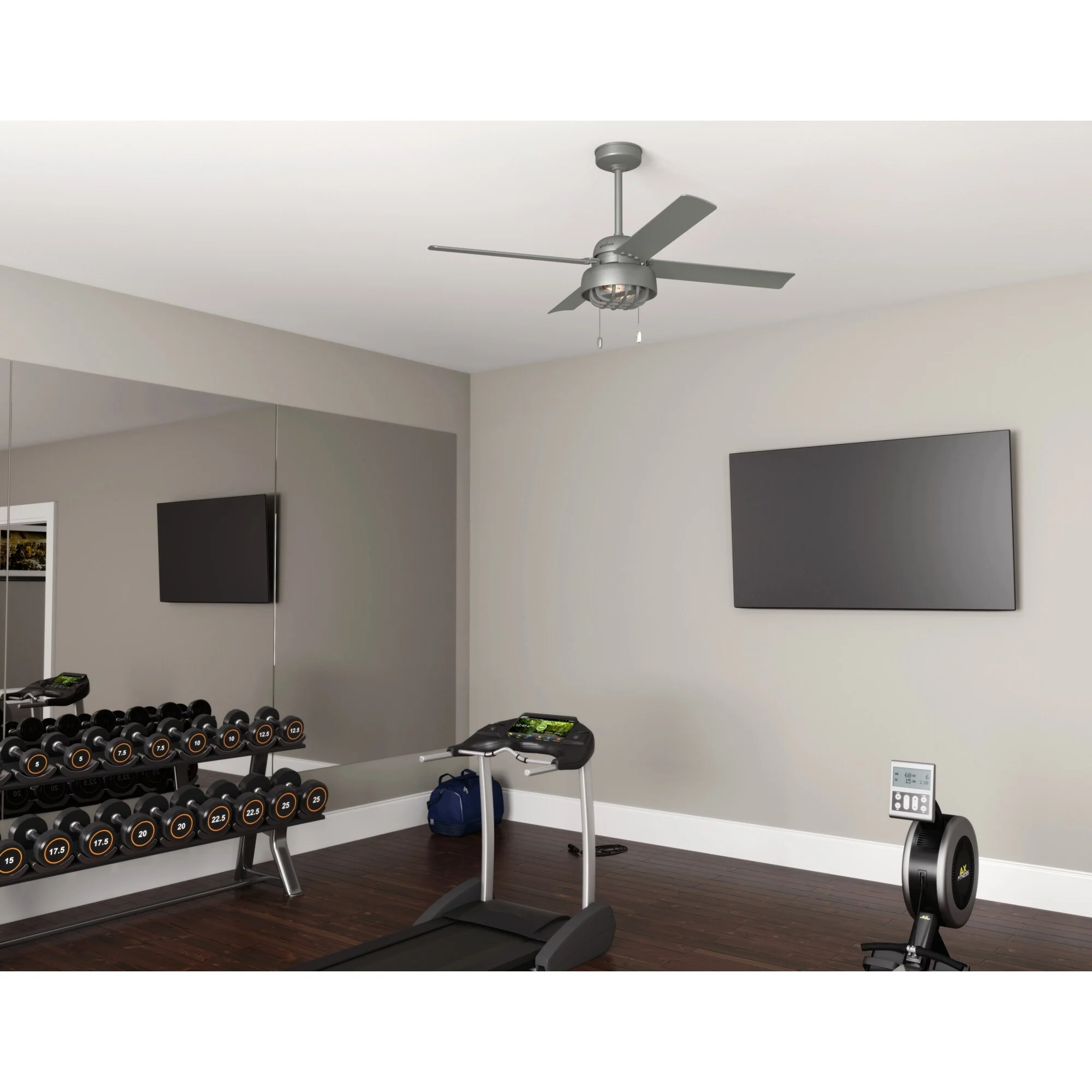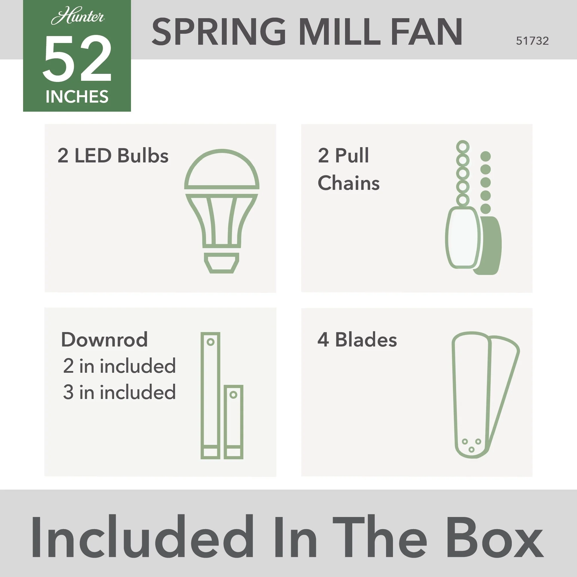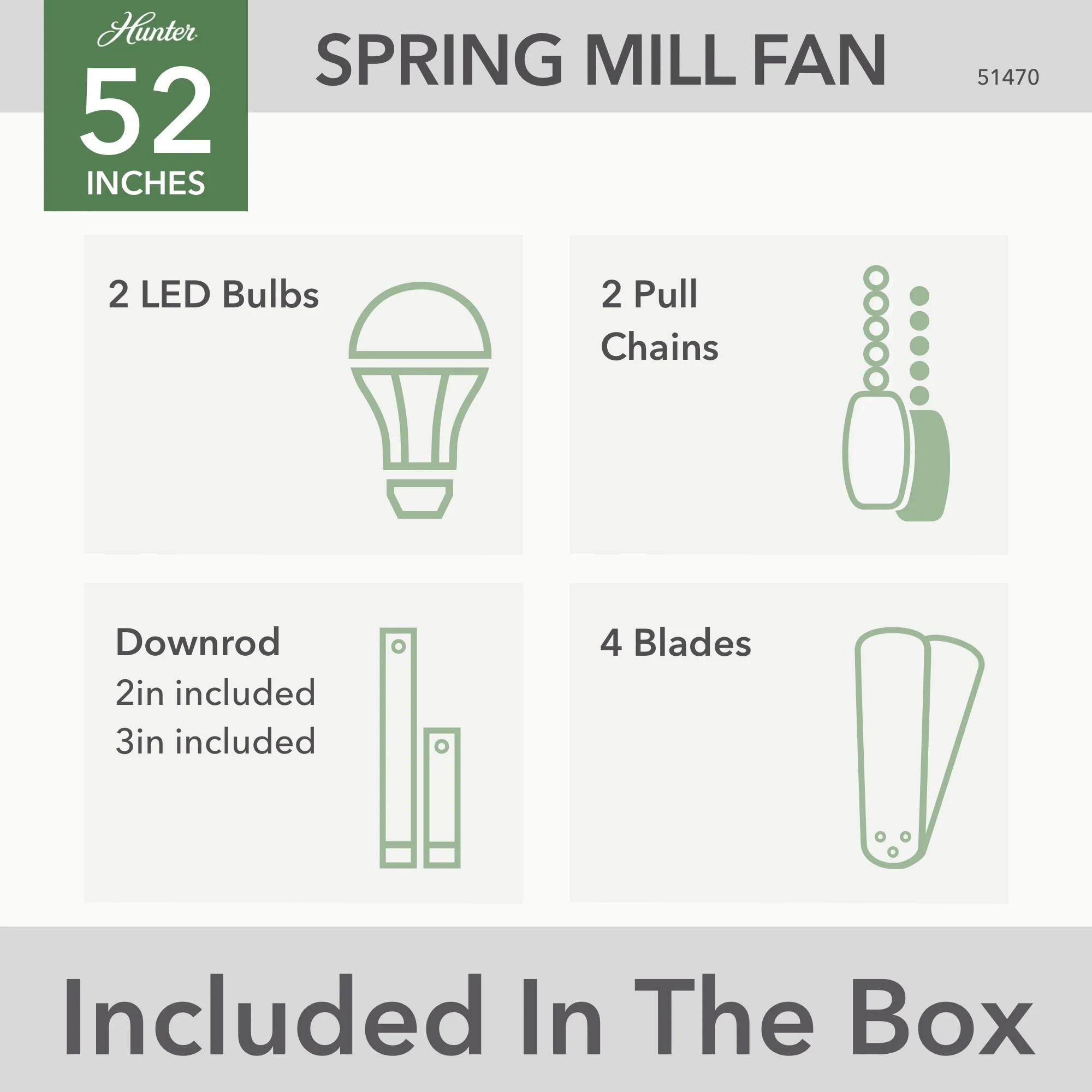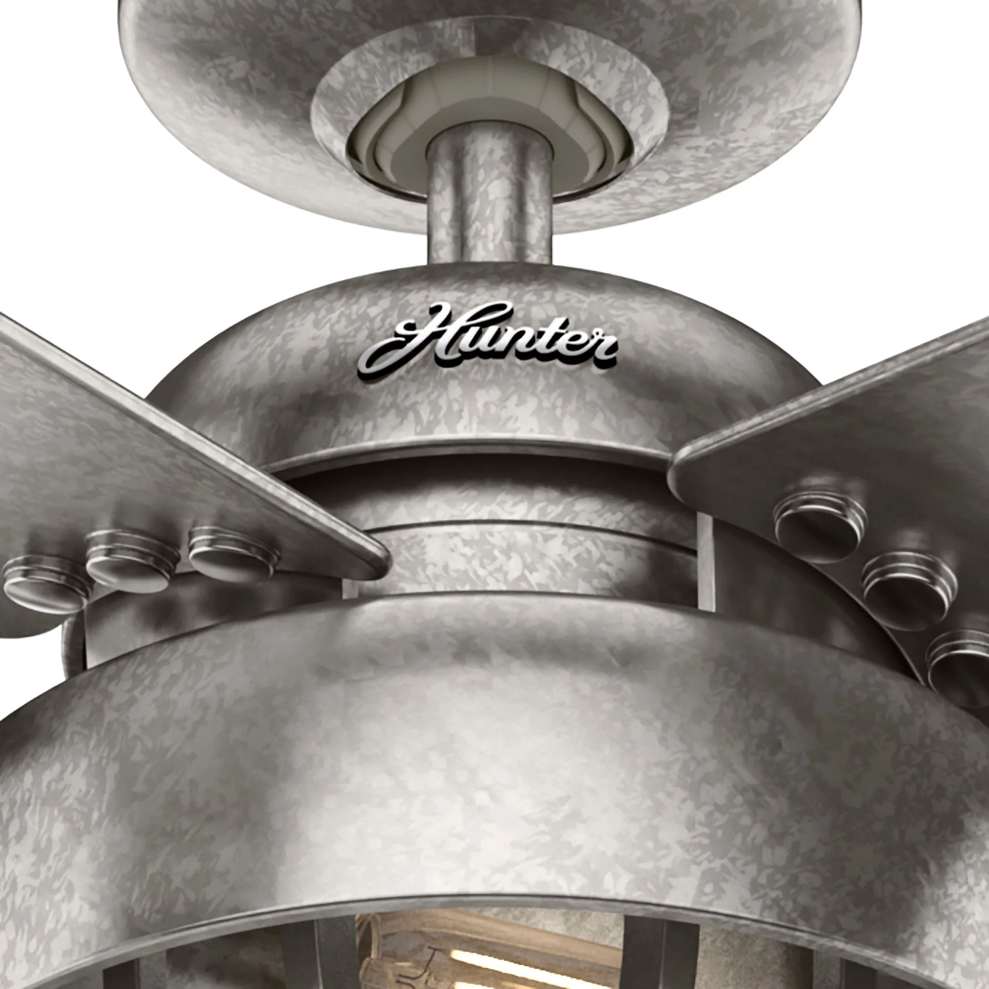 Hunter 52" Spring Mill Outdoor Ceiling Fan w/ LED Light and Pull Chain, Damp-Rated - Industrial, Transitional, Caged