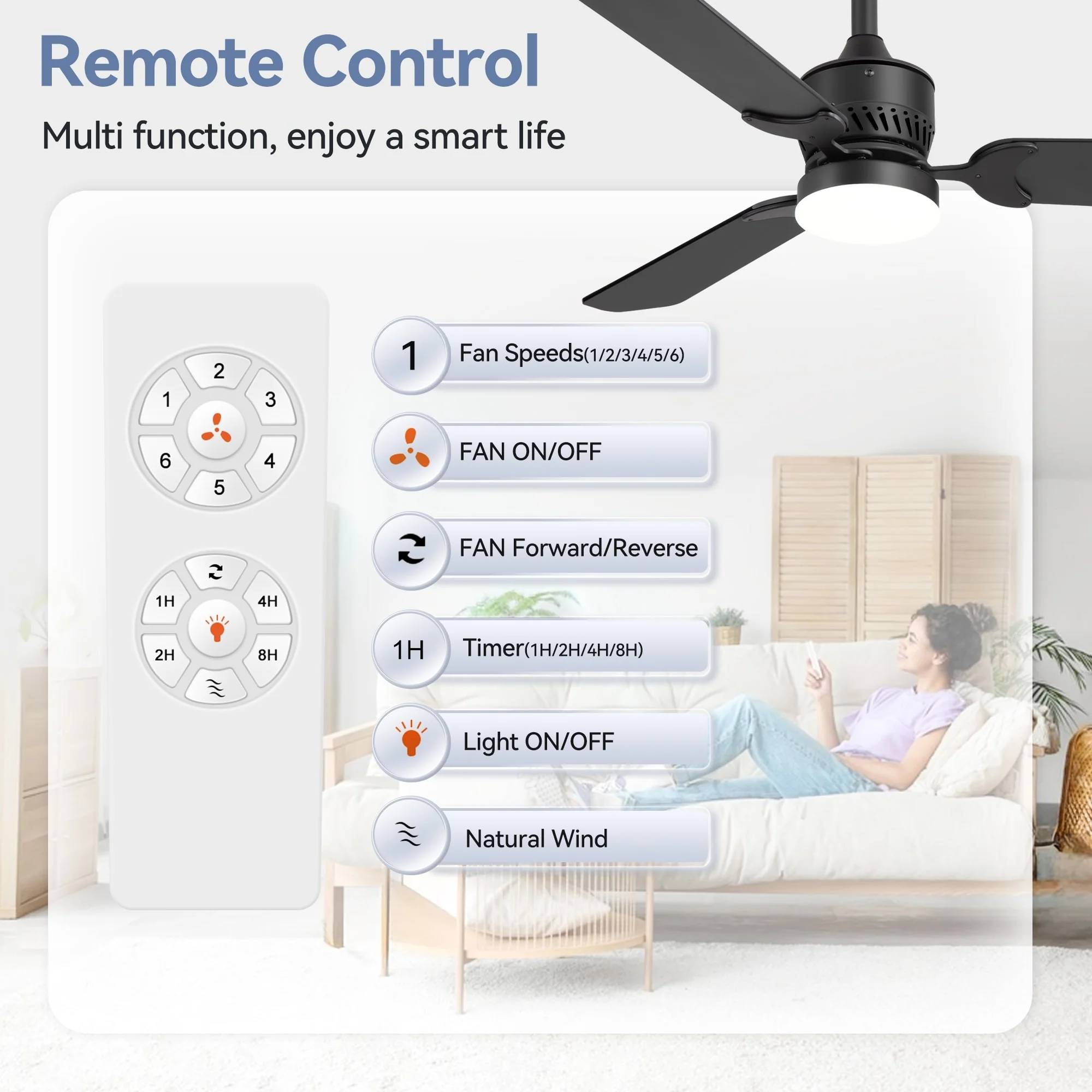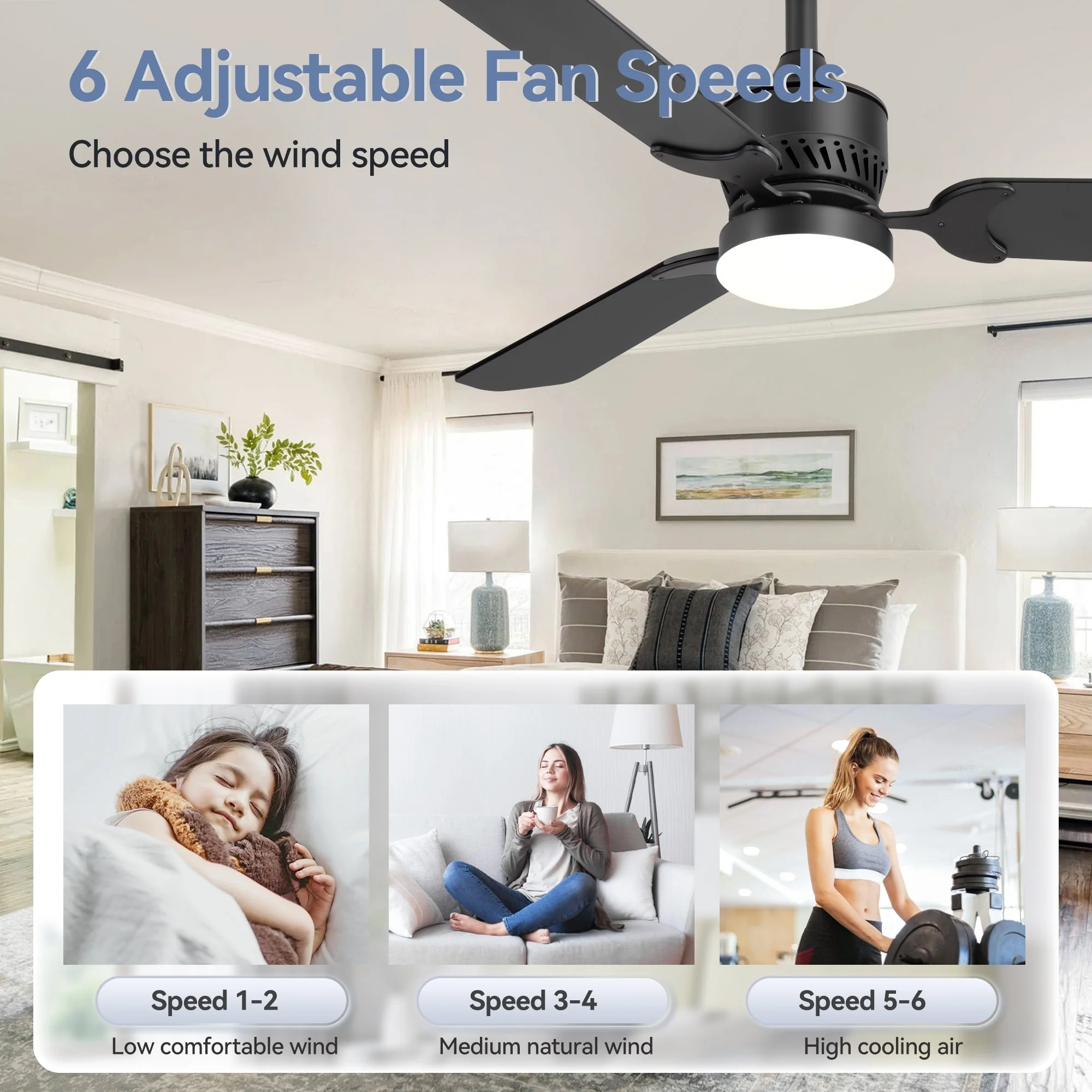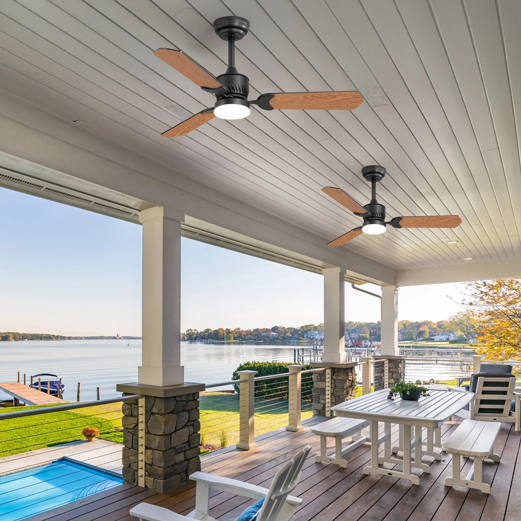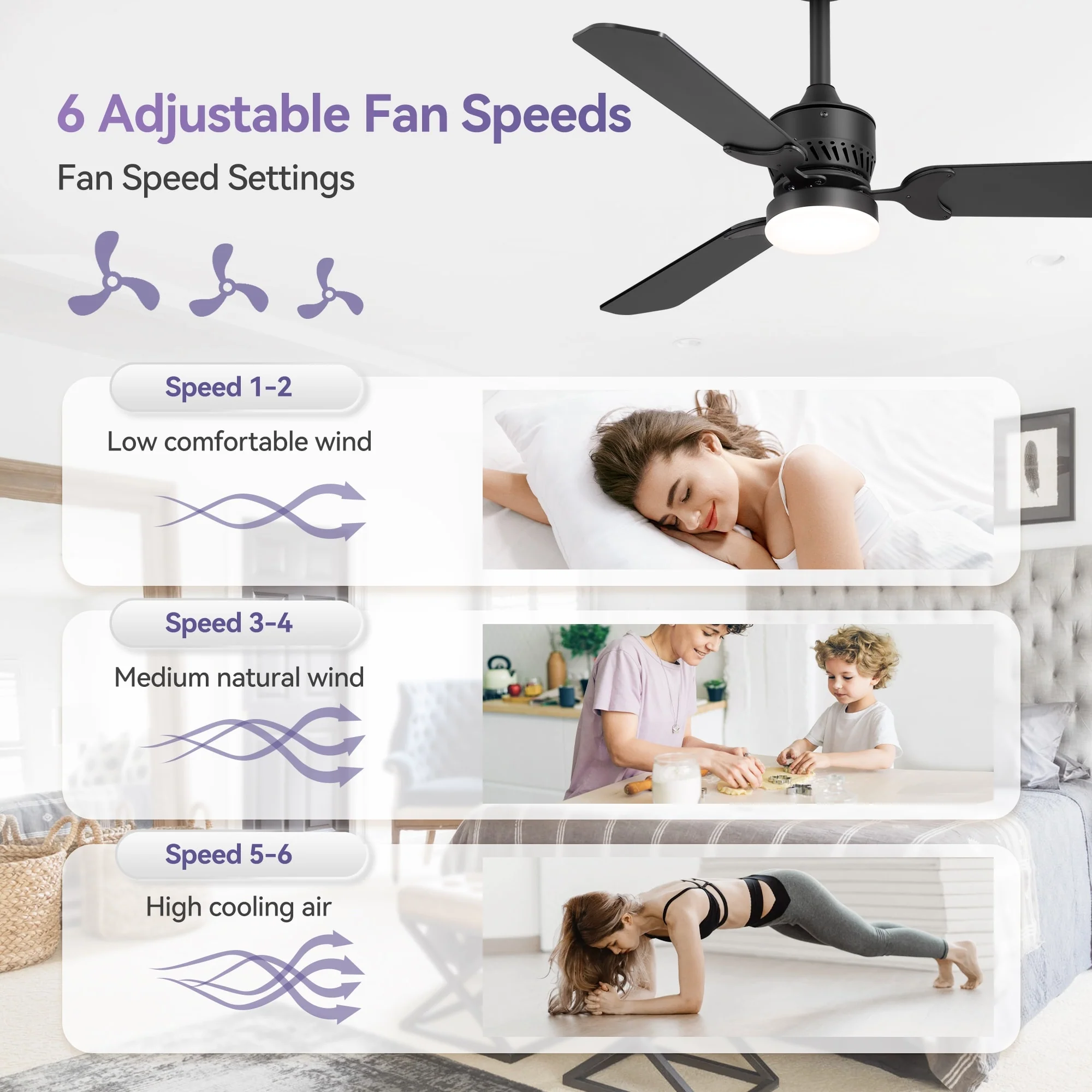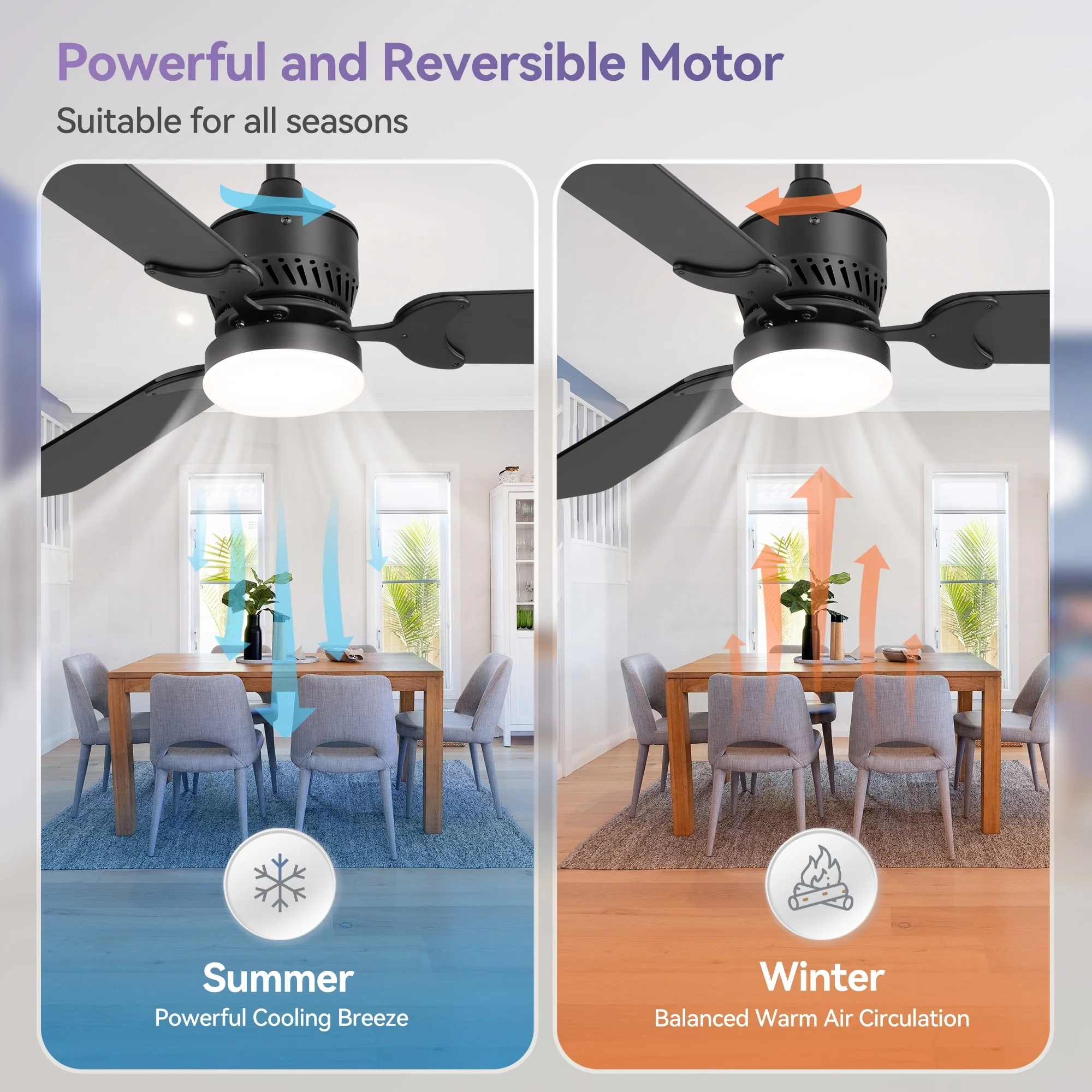 3 Blade Propeller Ceiling Fan for Living Room Bedroom, Indoor & Outdoor 52" Reversible Ceiling Fan with Remote, No Light, Black