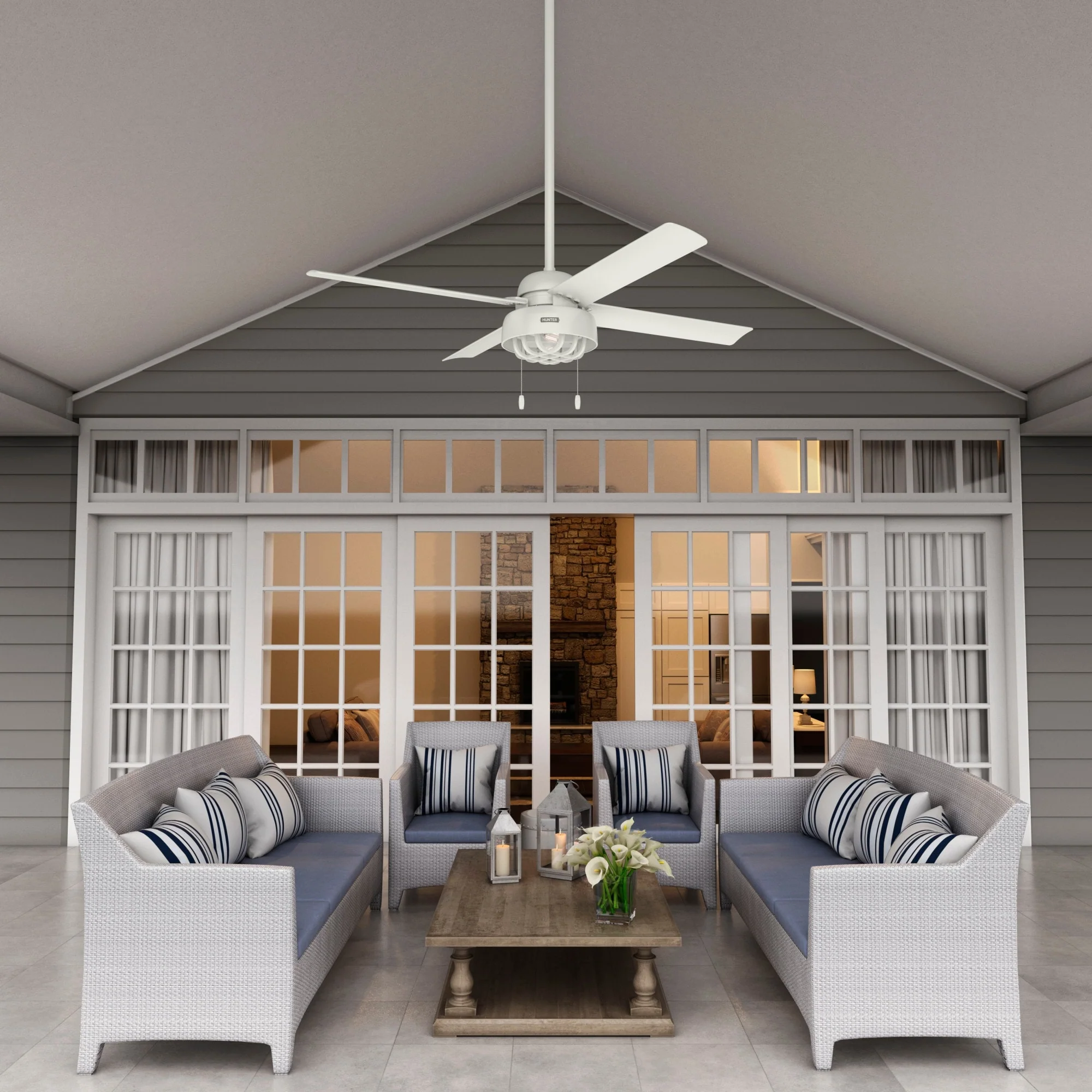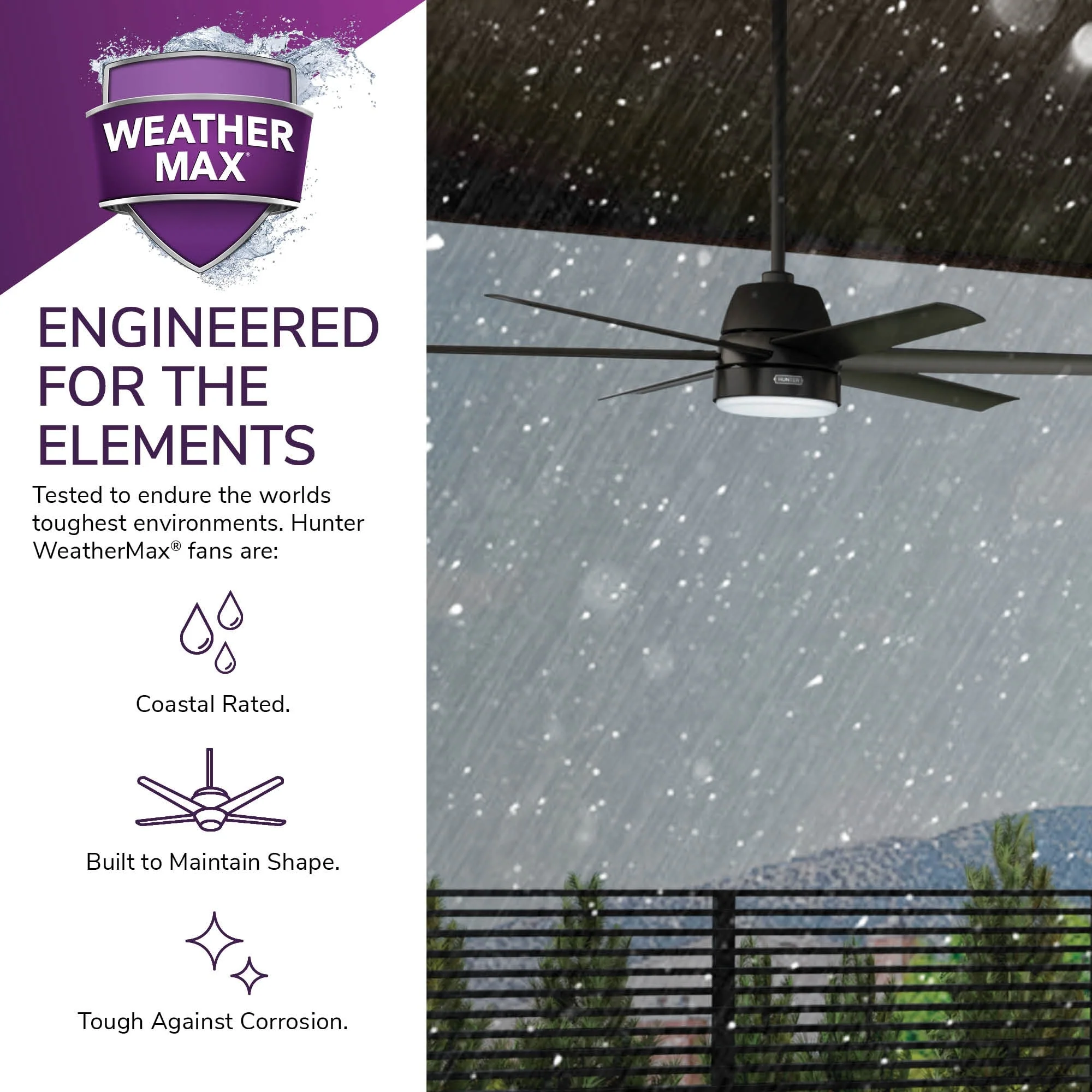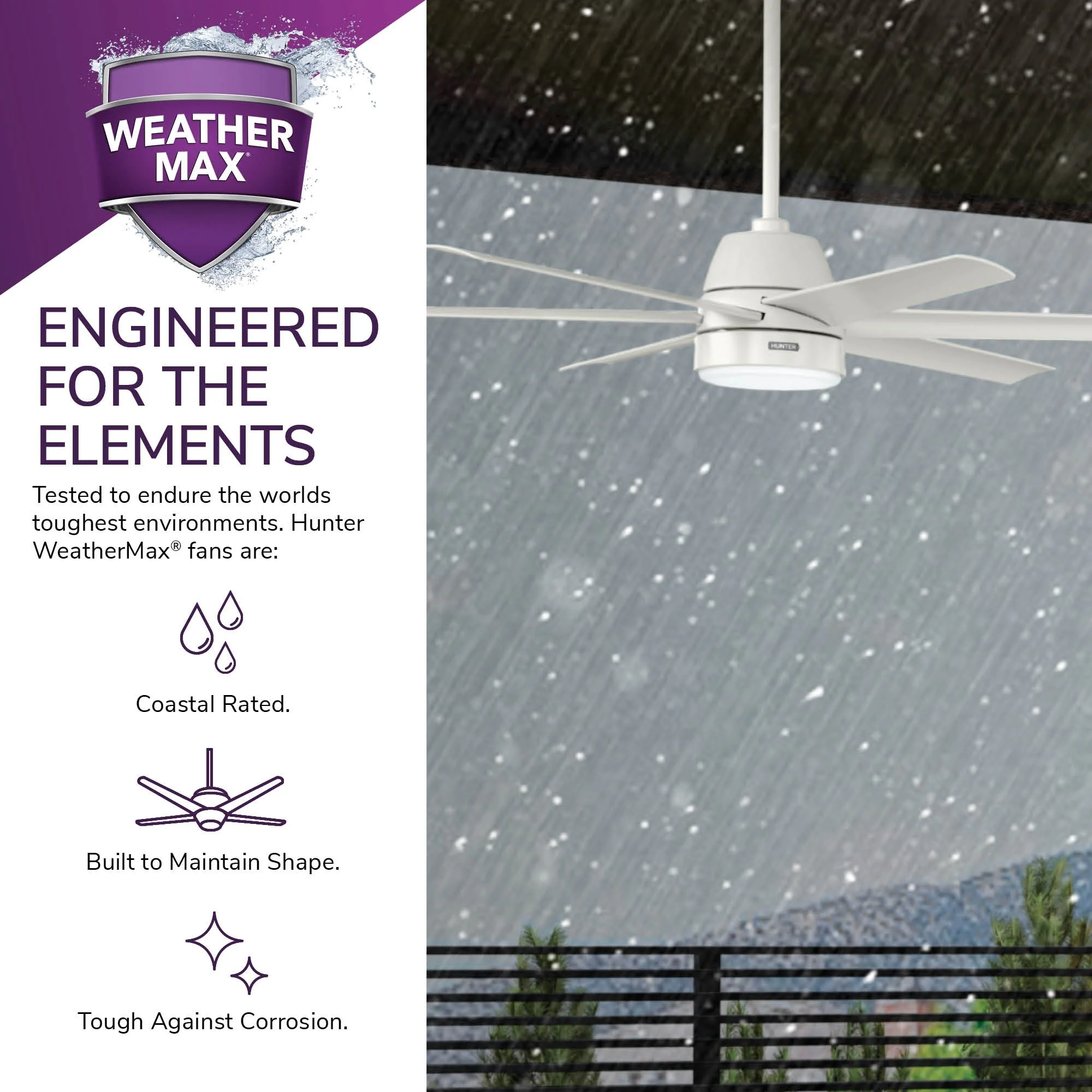 Hunter 60" Skysail Outdoor Ceiling Fan w/LED Light, Wall Control - Extreme Weather! - ENERGY STAR!