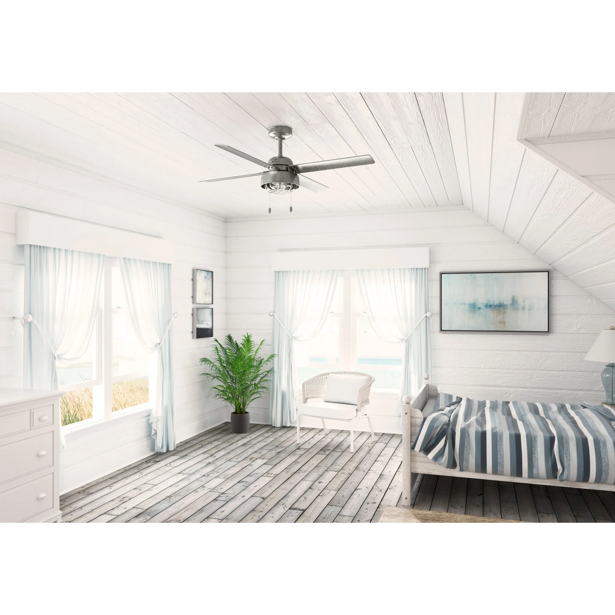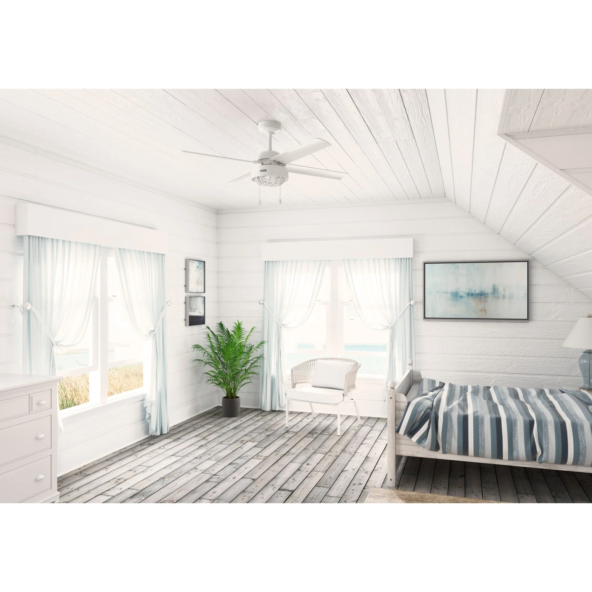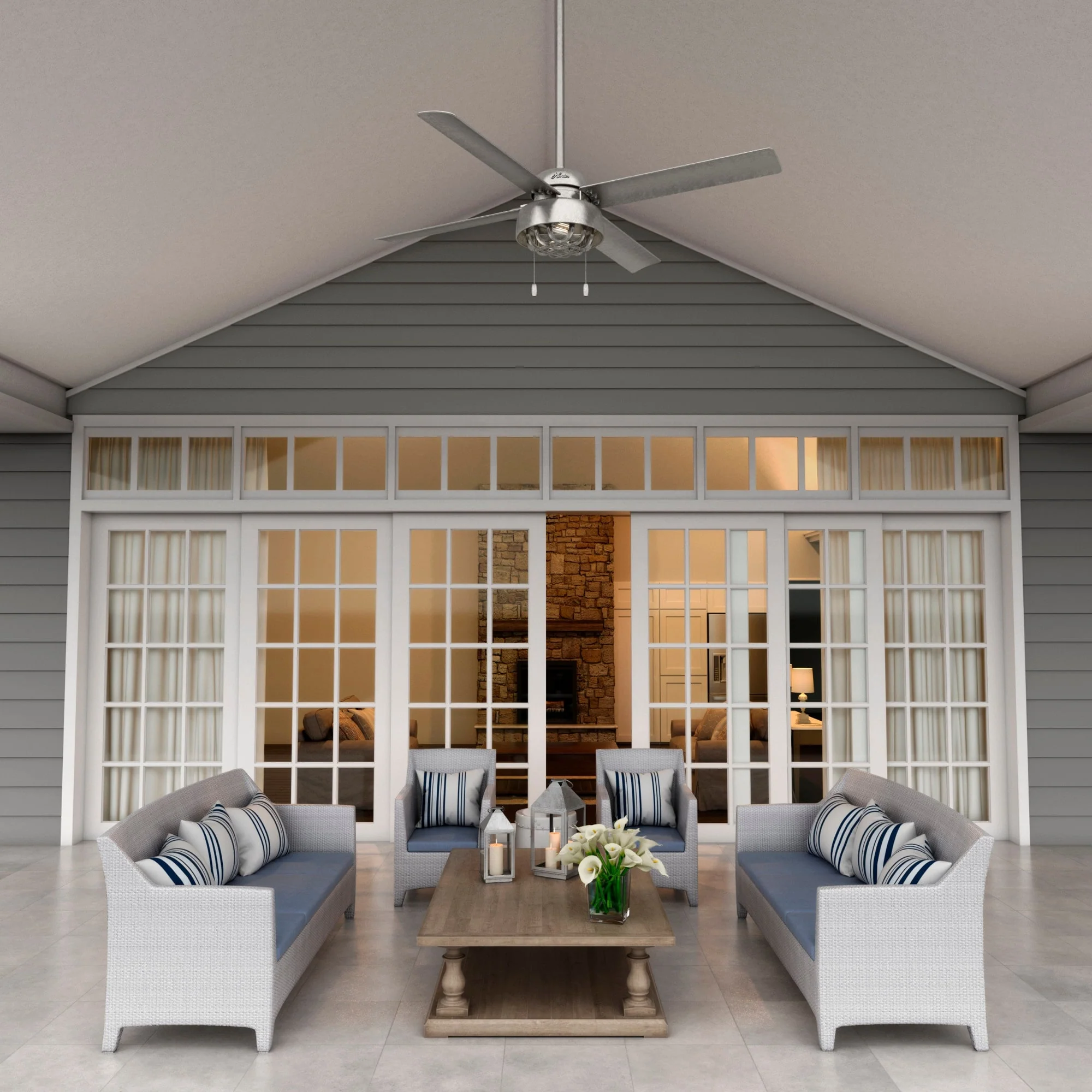 Hunter 60" Skysail Outdoor Ceiling Fan w/LED Light, Wall Control - Extreme Weather! - ENERGY STAR!