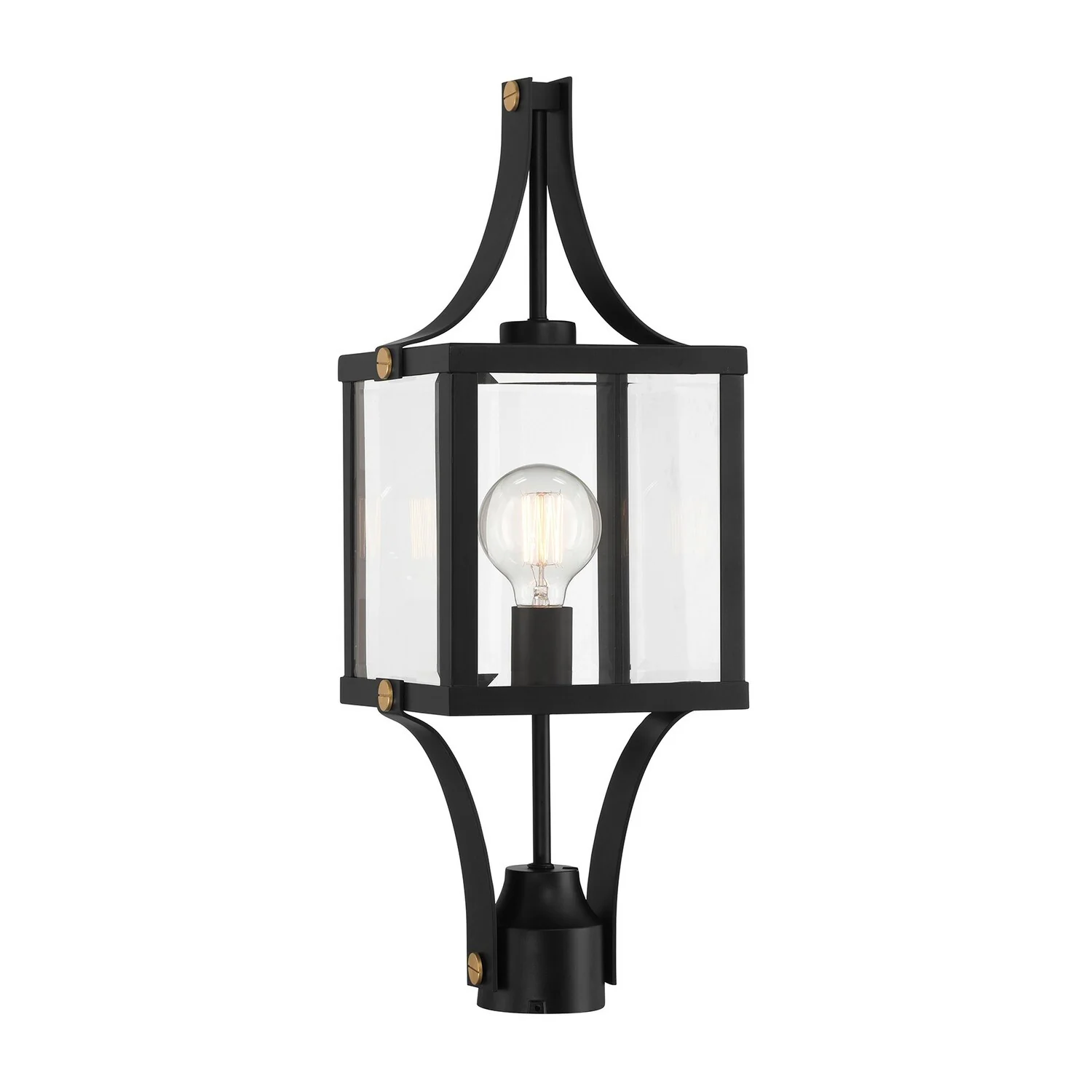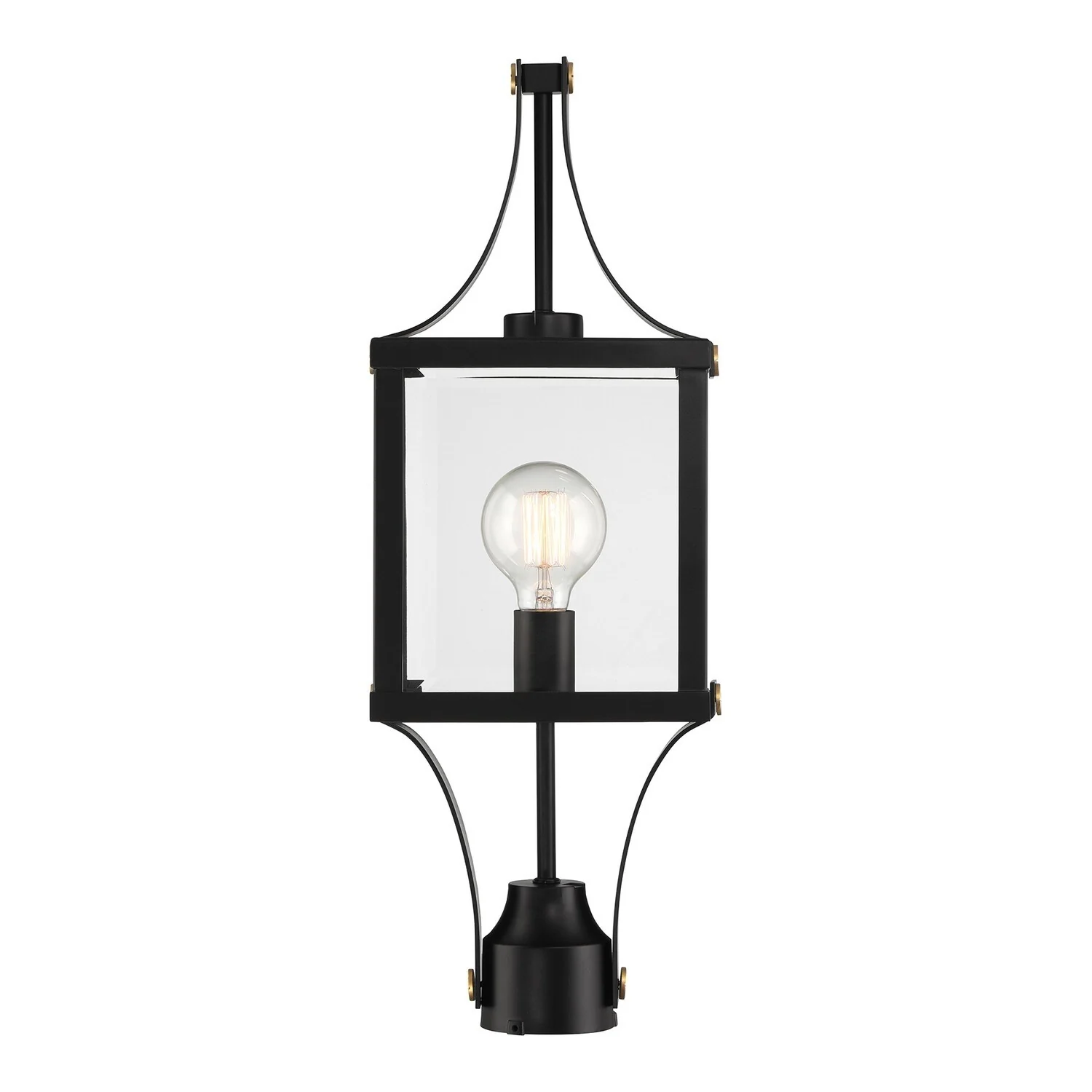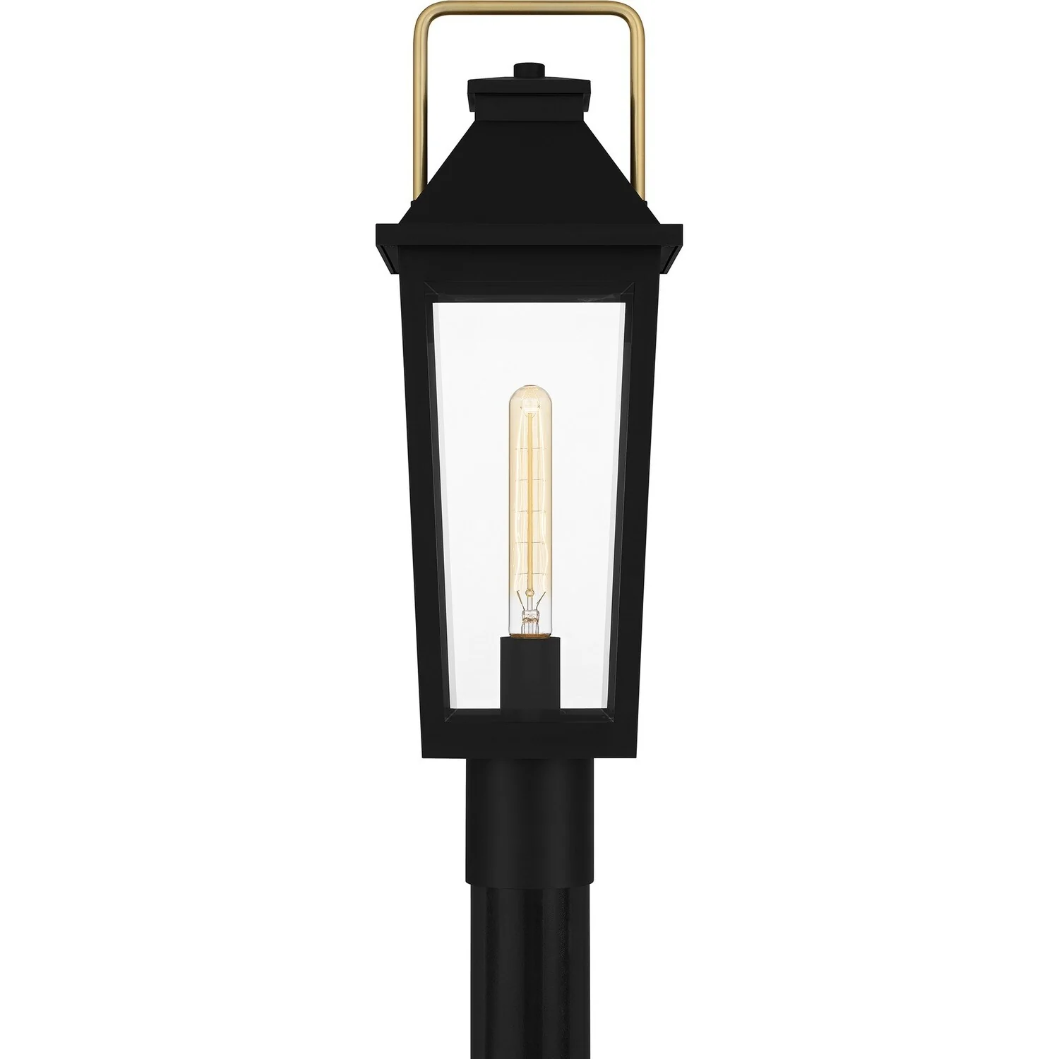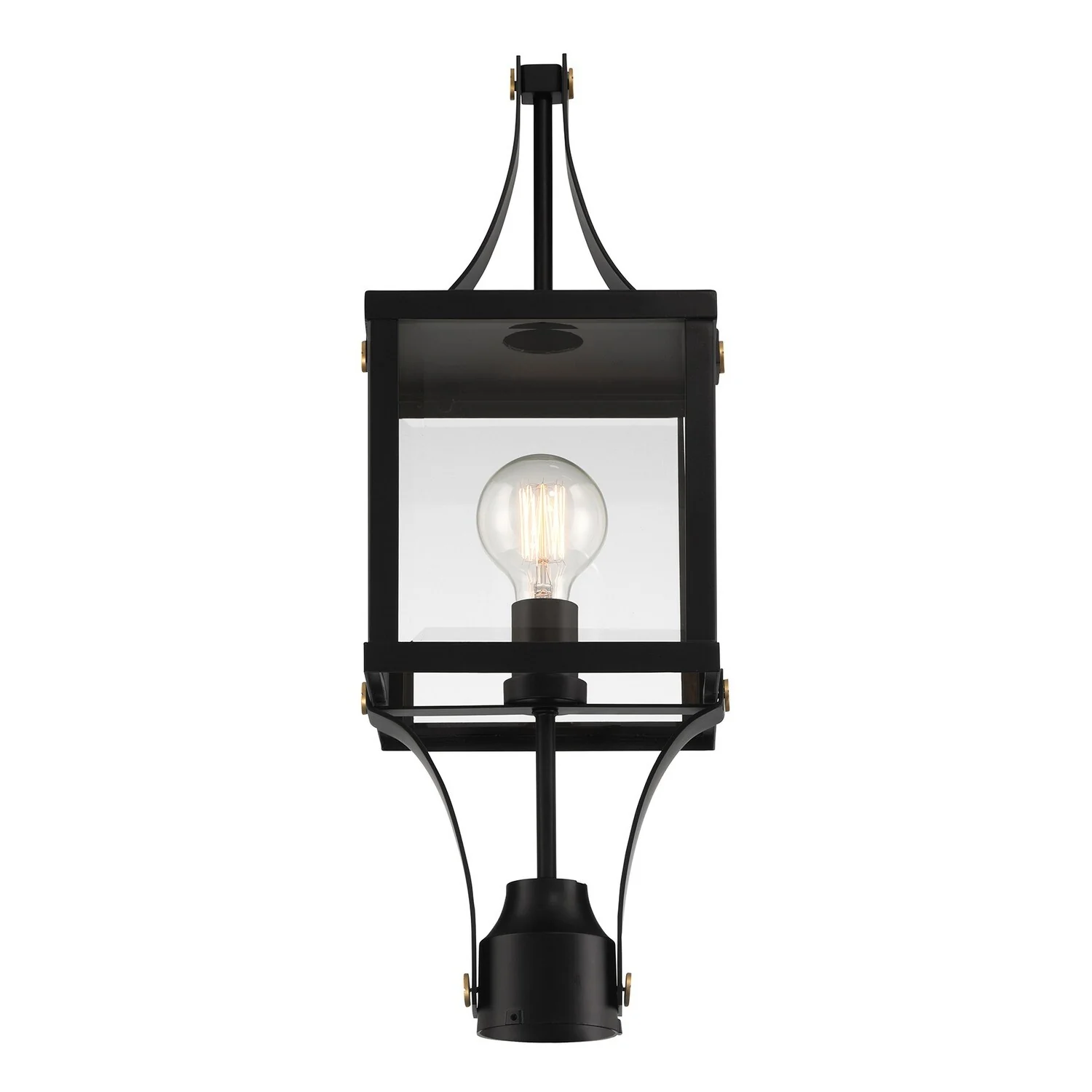Raeburn 1-Light Outdoor Post Lantern in Matte Black and Weathered Brushed Brass