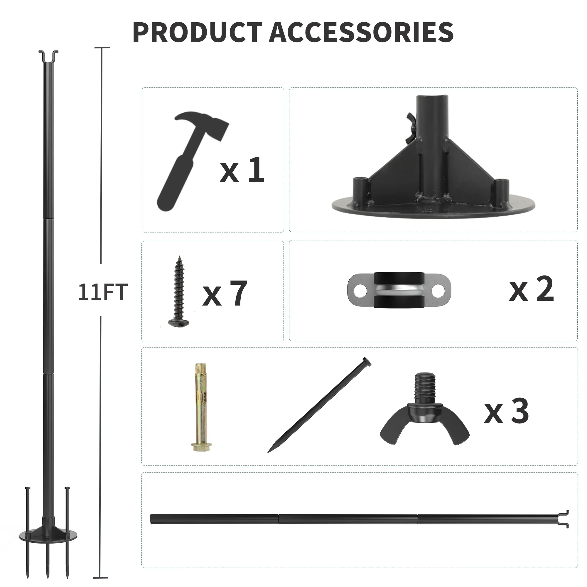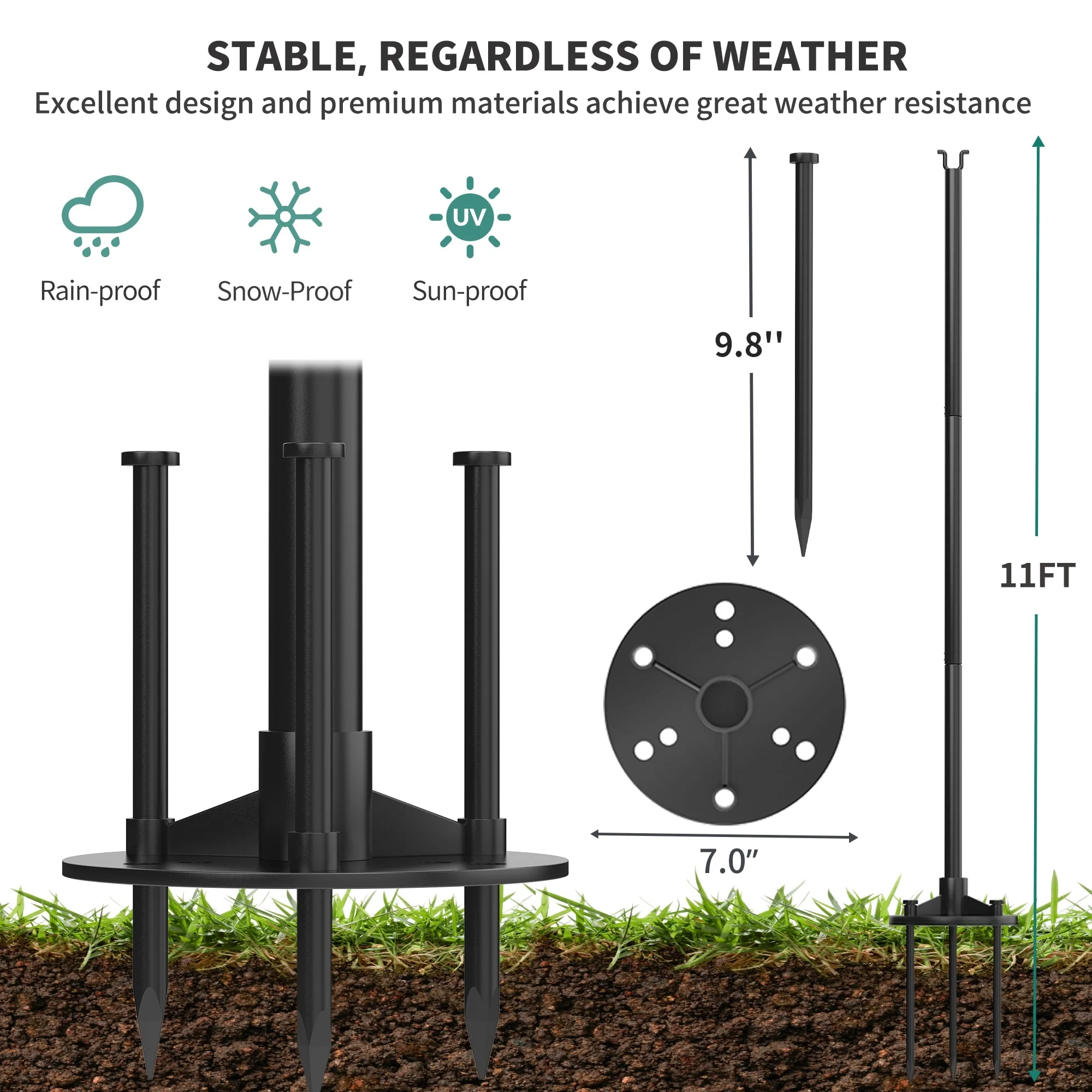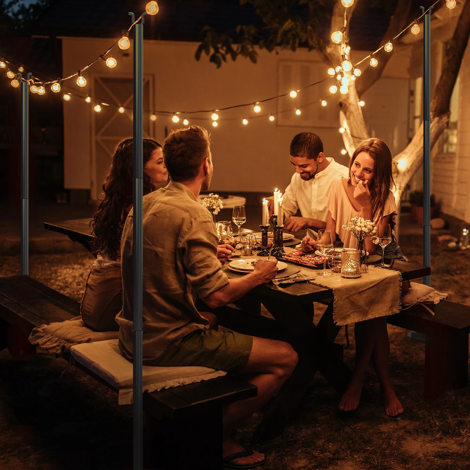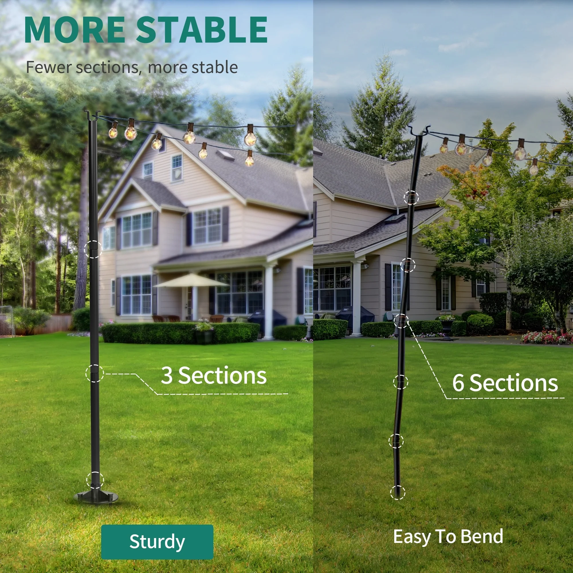 String Light Poles with Hook for Hanging String Lights for Garden Party Patio Christmas Wedding - Black