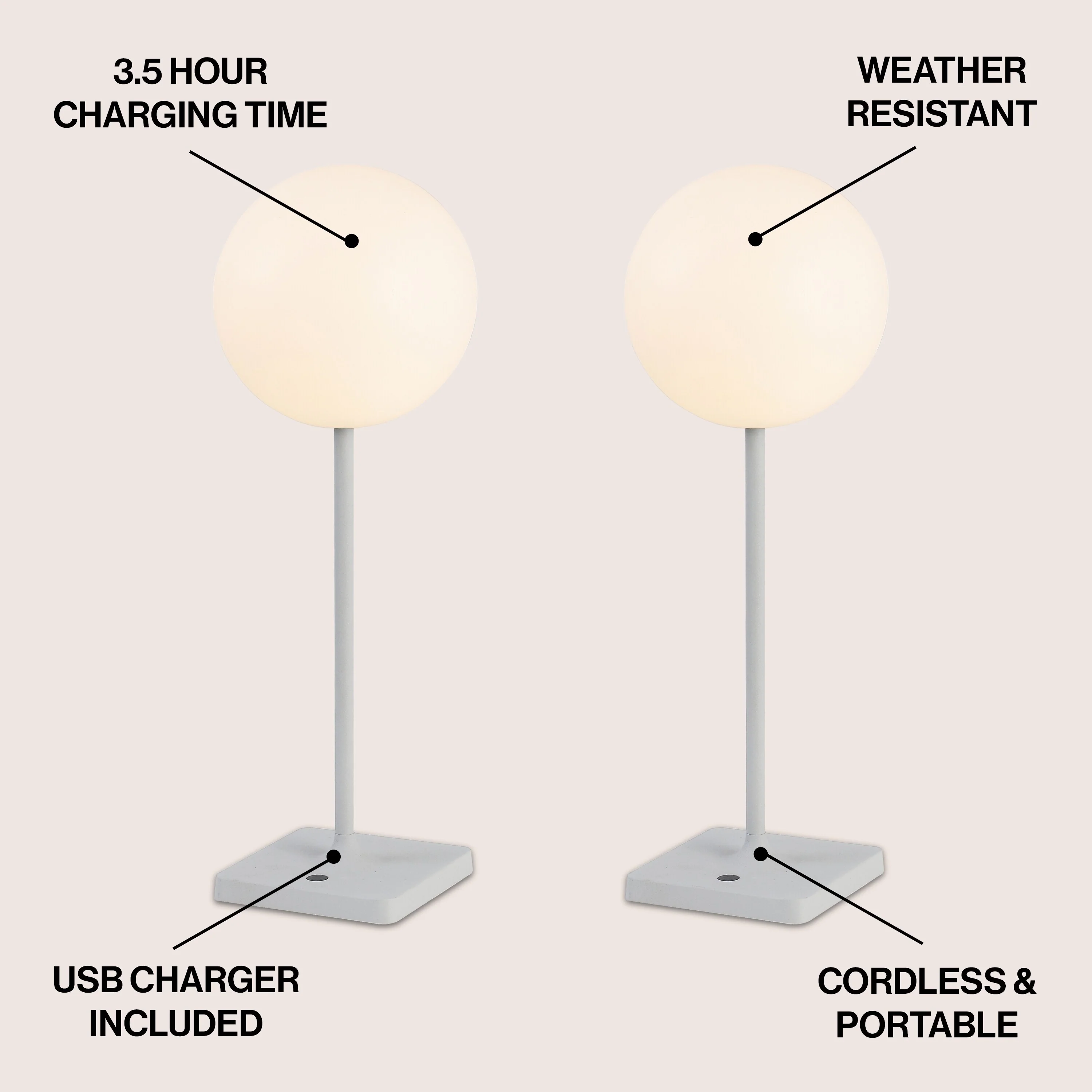 17.5" Modern LED Table Lamp, Dimmable, Cordless, Touch Sensor (Set of 2) - 17.50