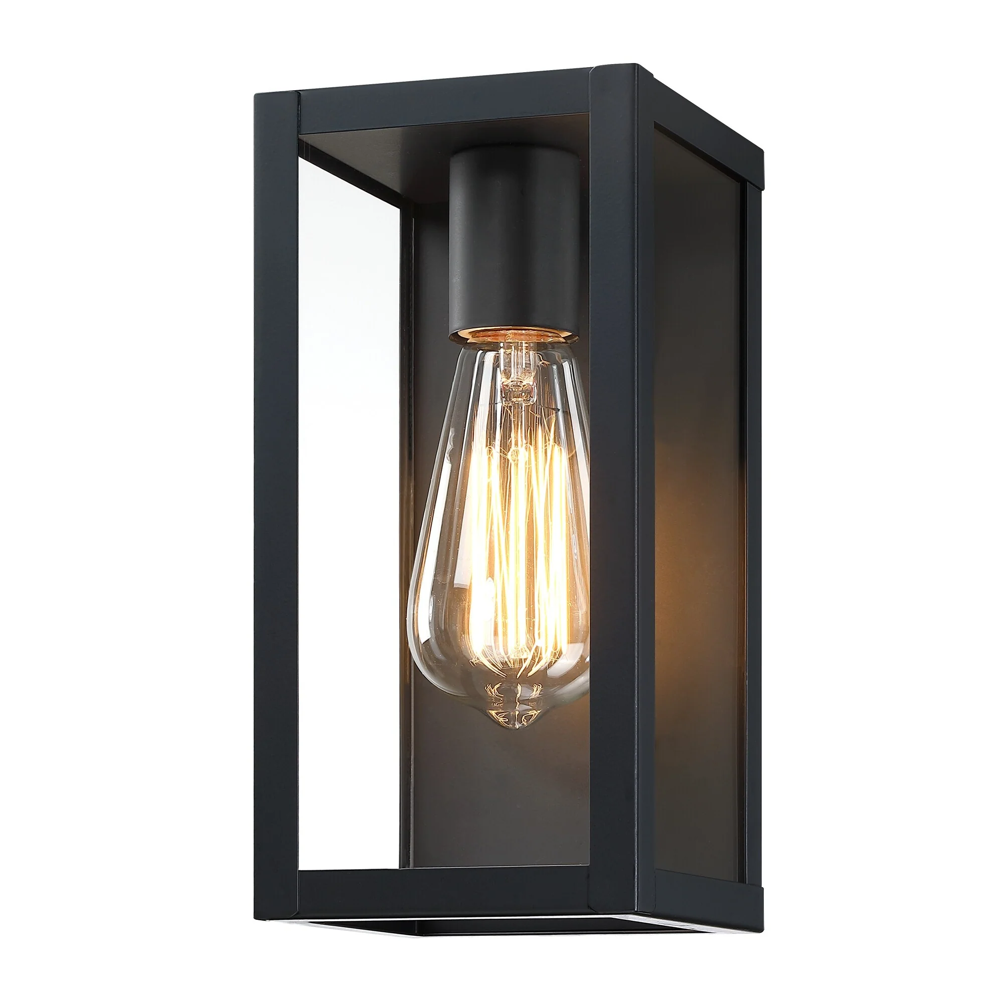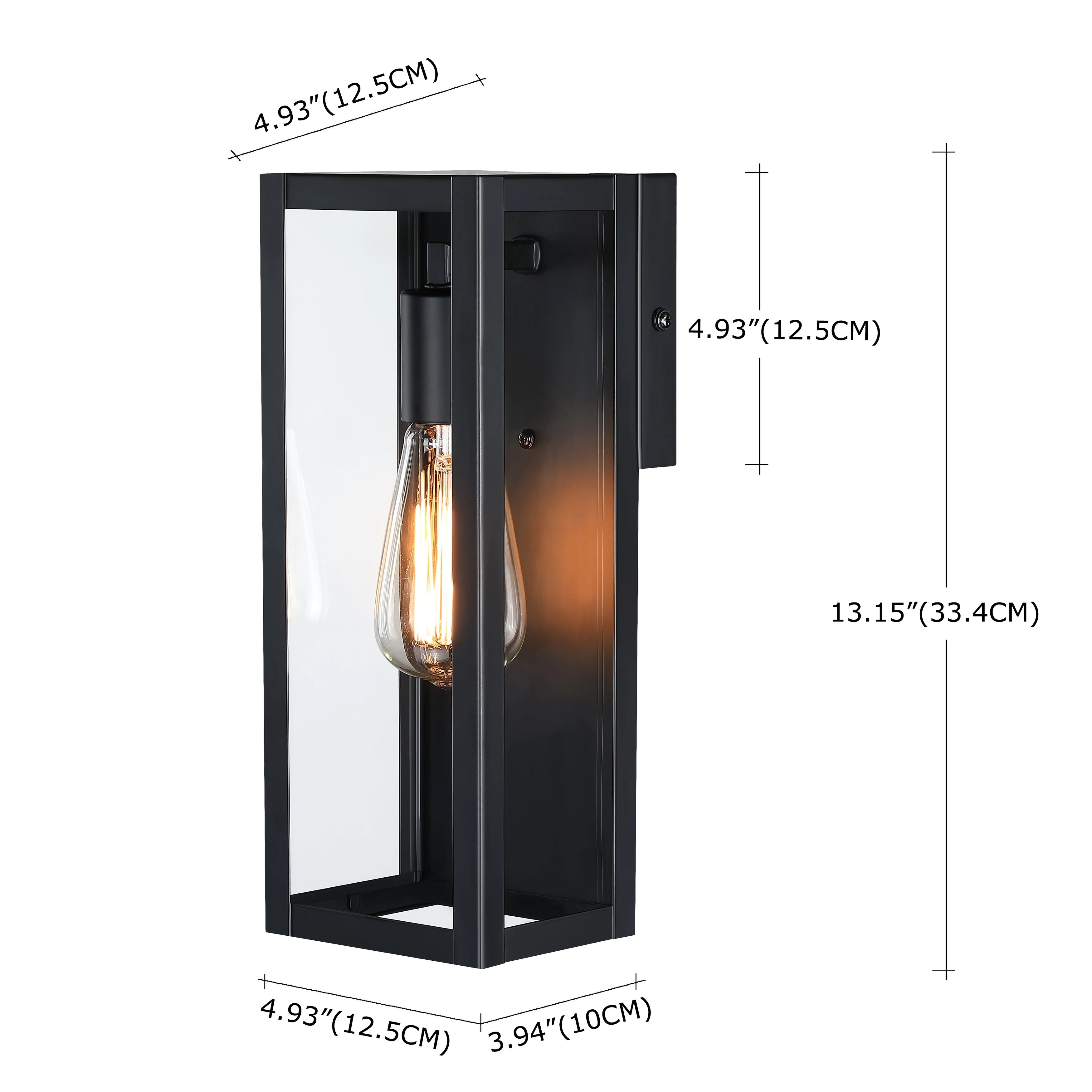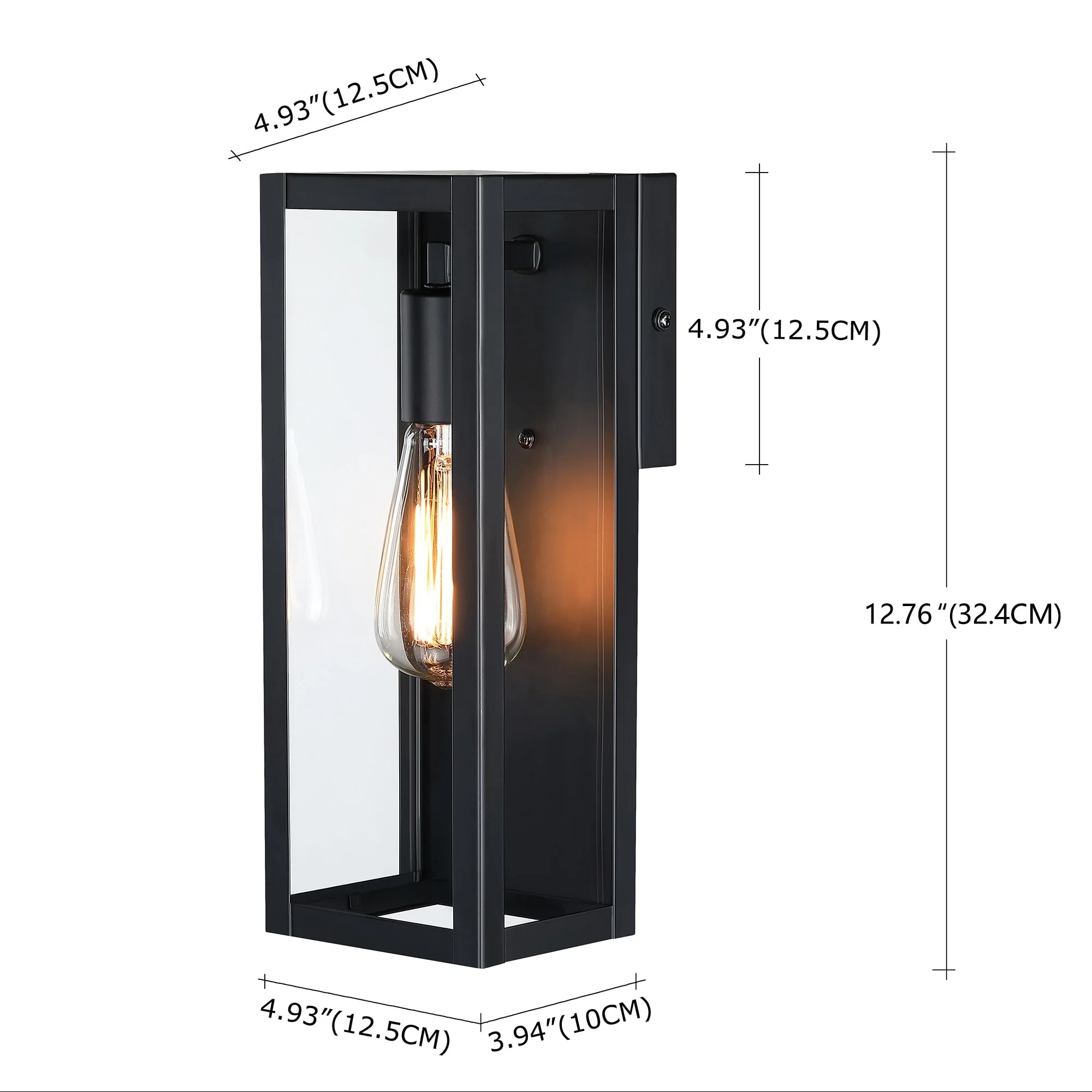1-Light 12.76in Outdoor Wall Light with Matte Black Finish & Clear glass shade