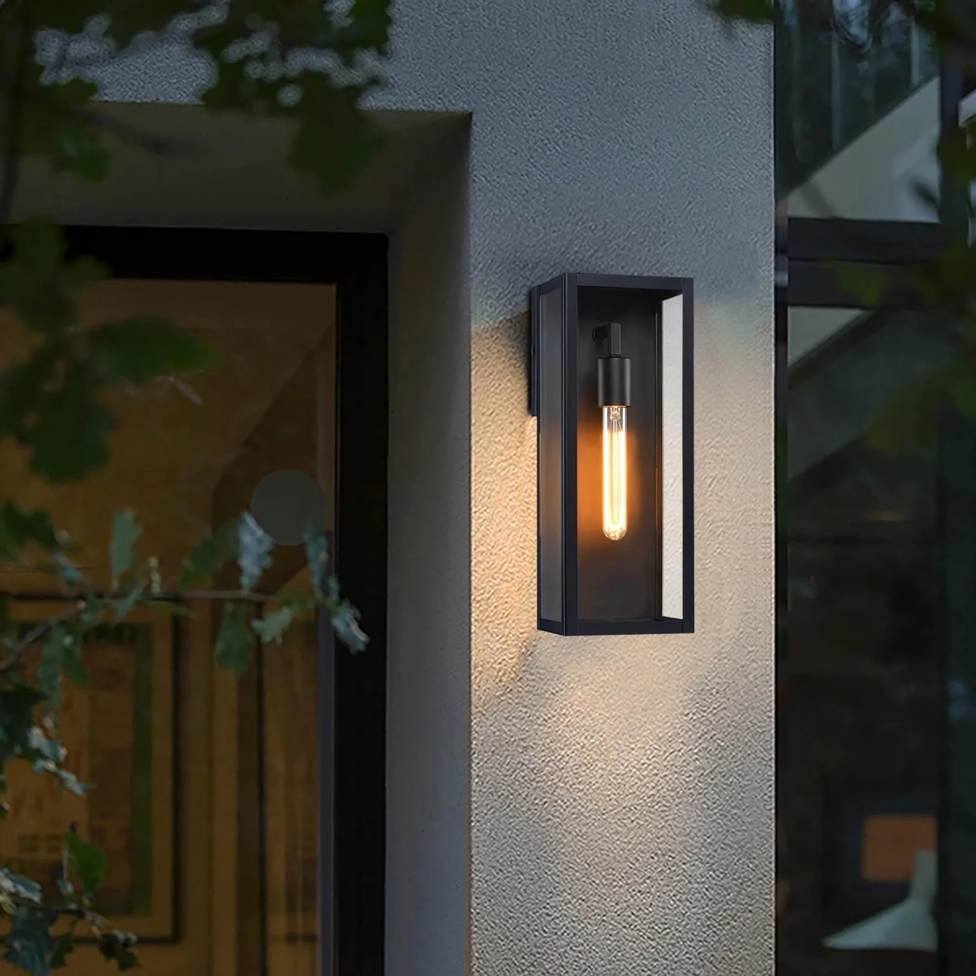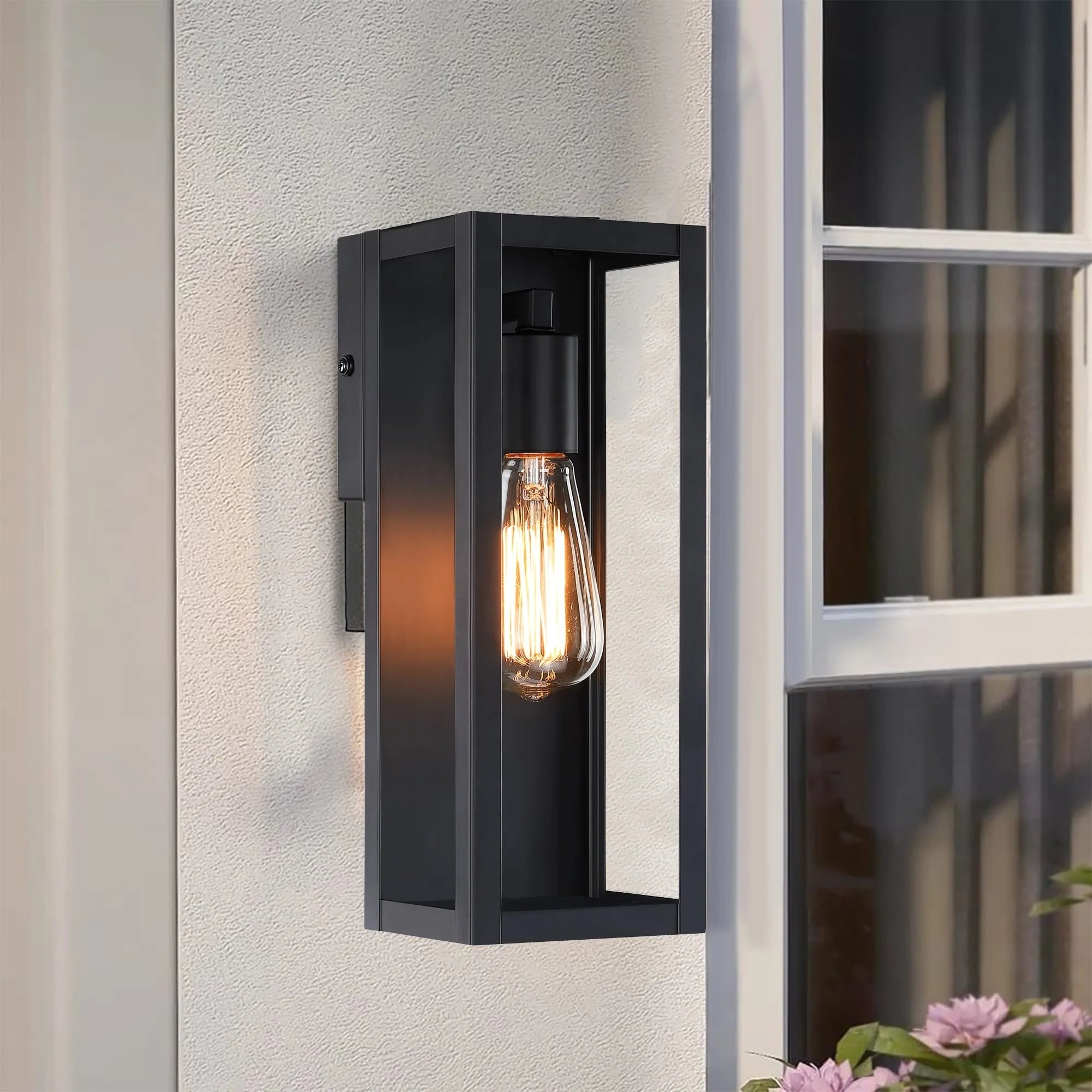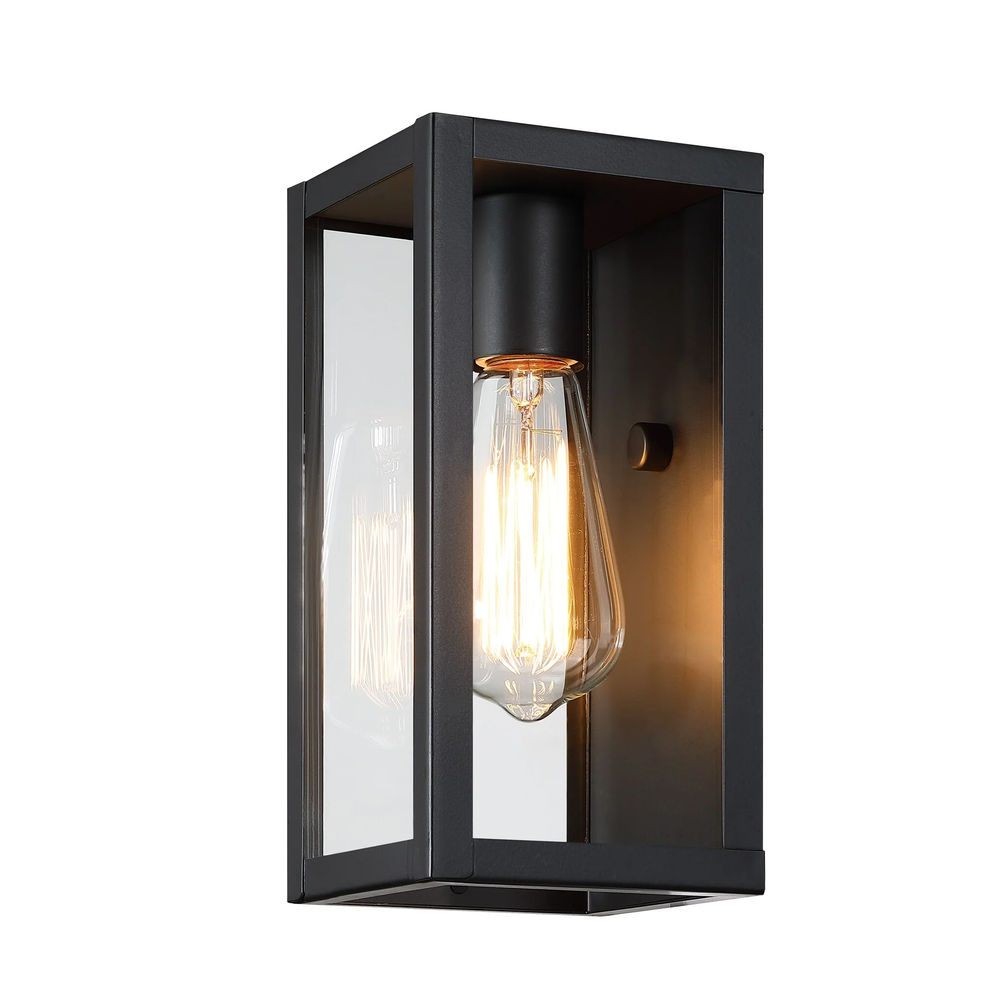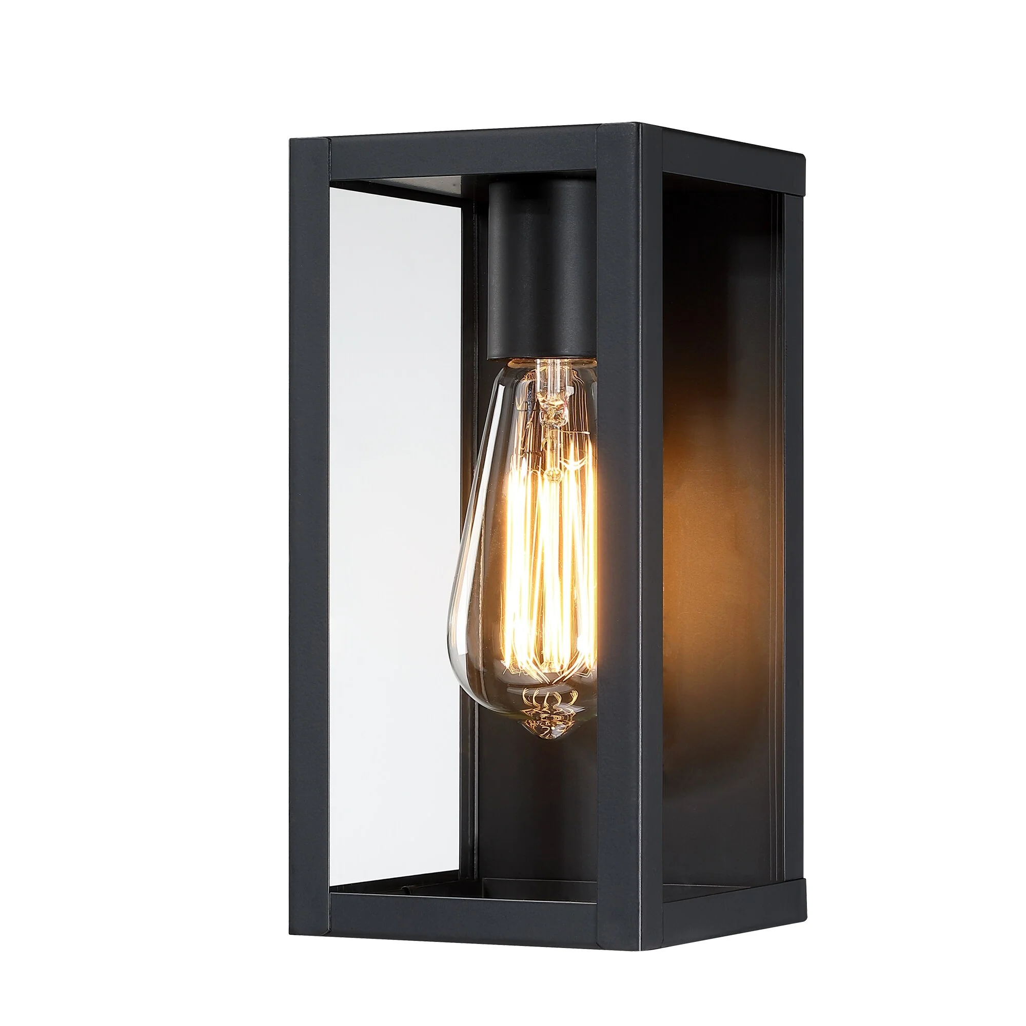 1-Light 12.76in Outdoor Wall Light with Matte Black Finish & Clear glass shade