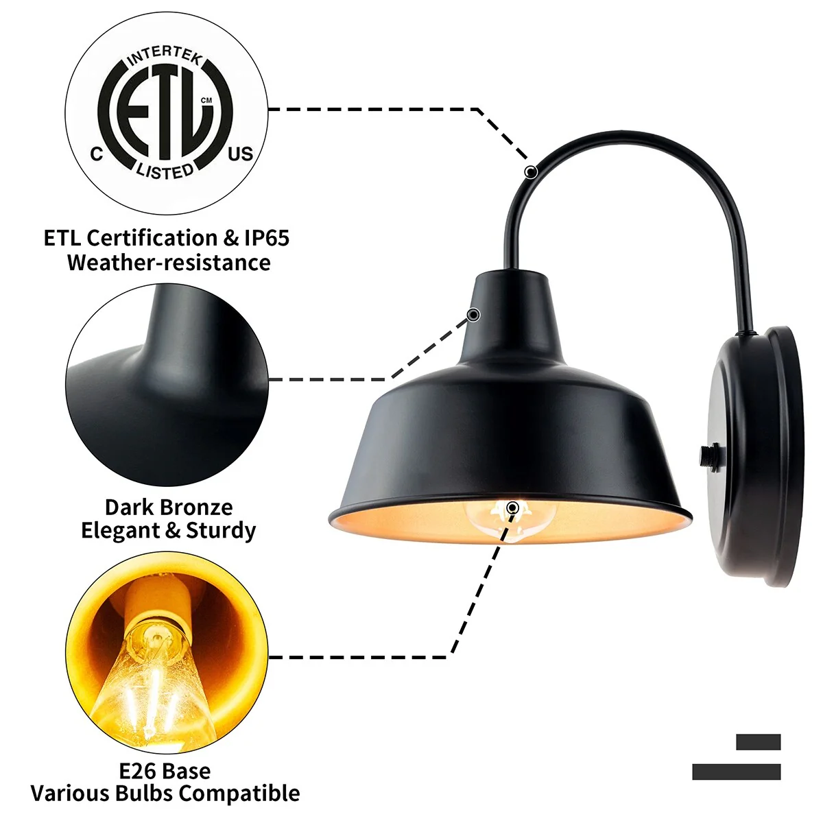 1-Light Outdoor Barn Light With Dark Bronze finish - 8.35"x10.65"x11"