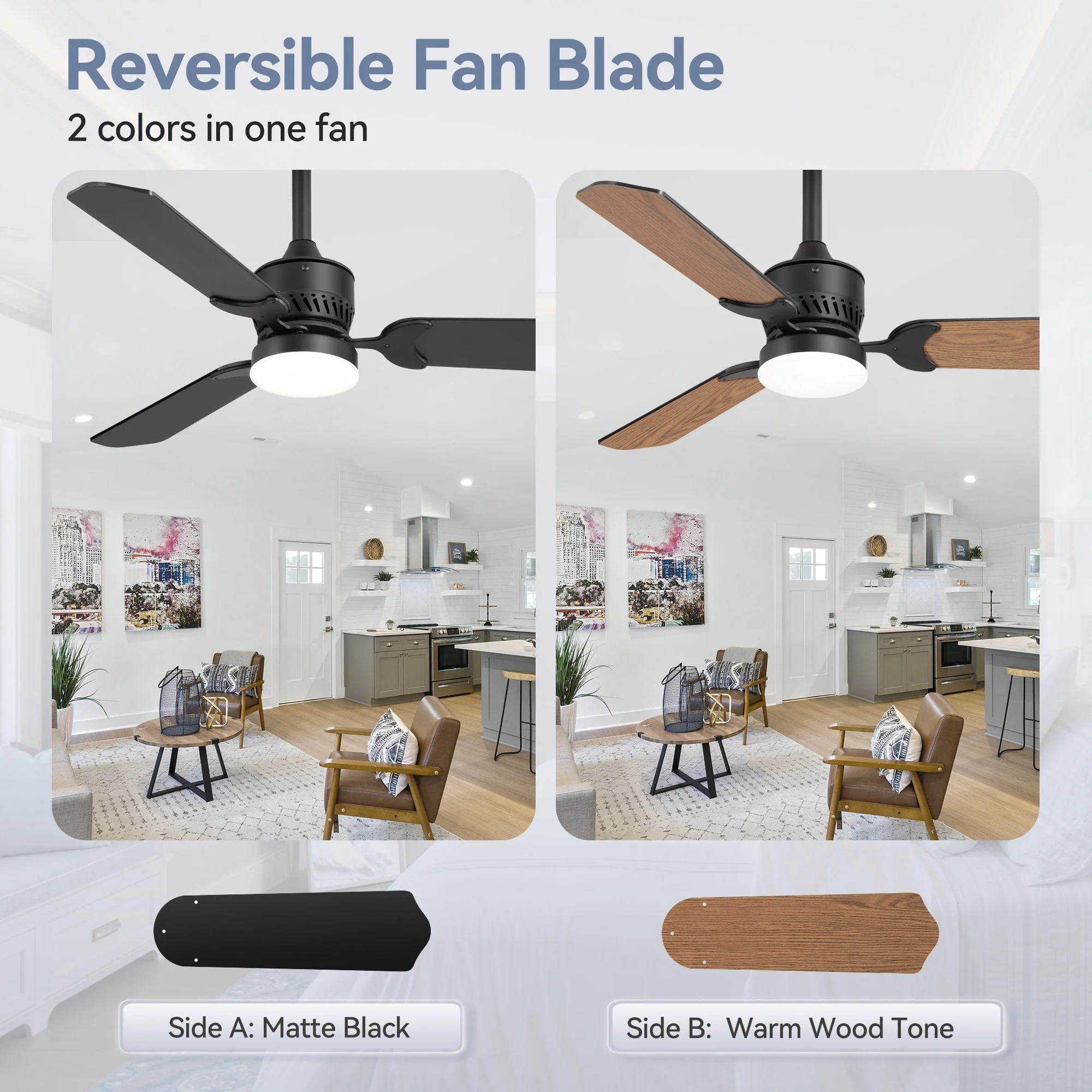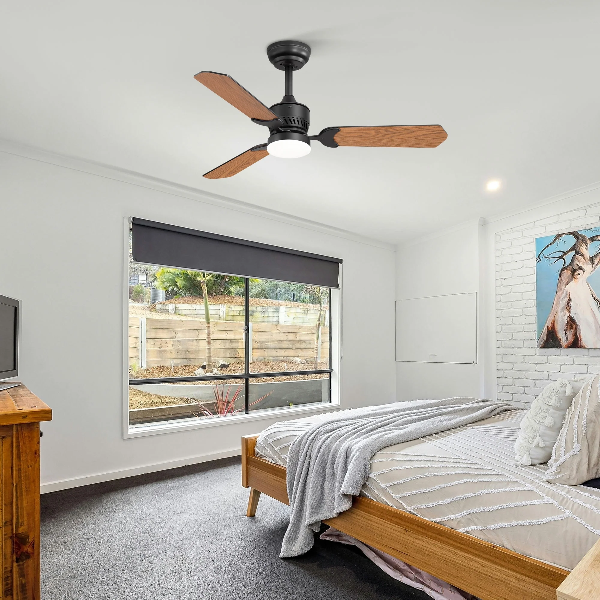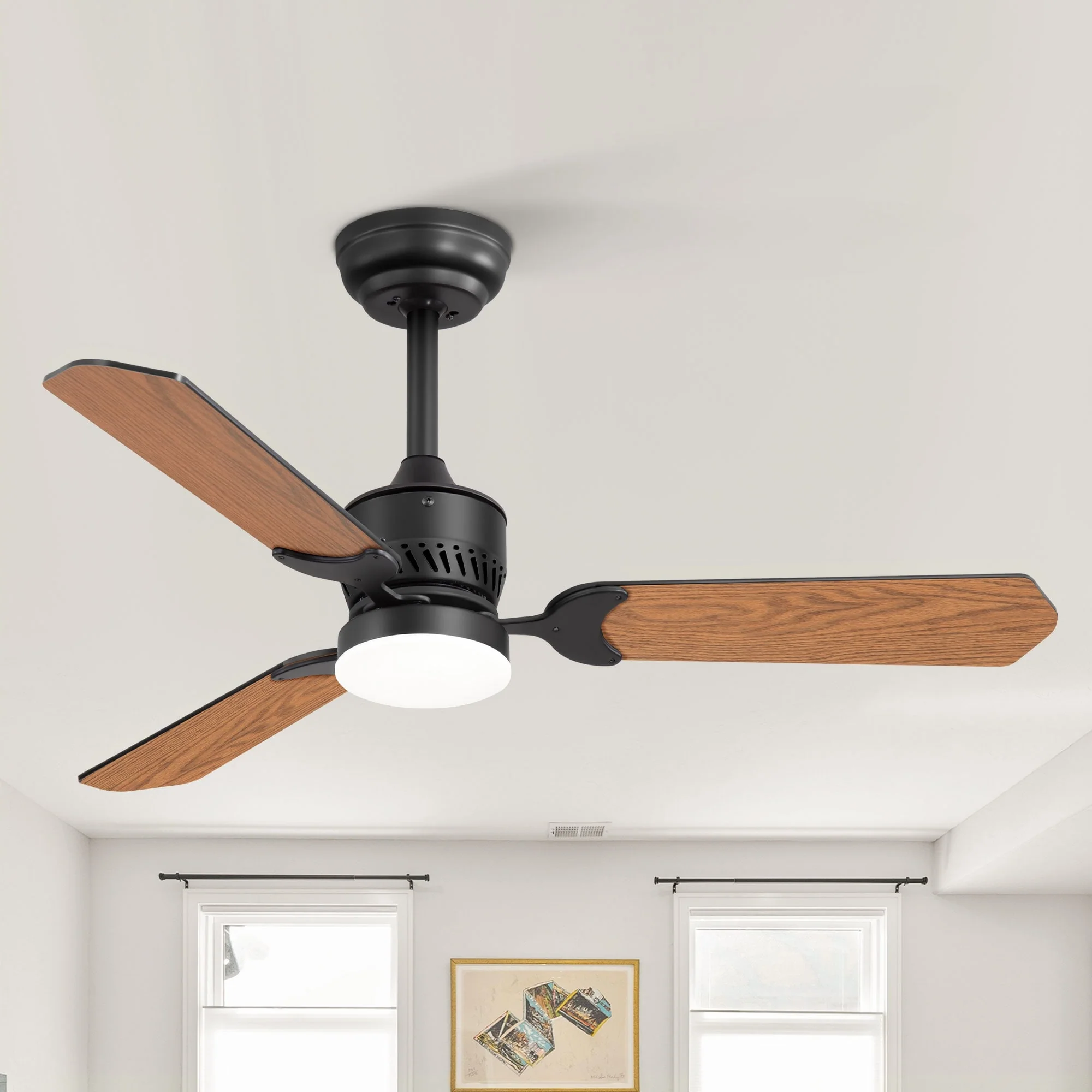 42" Wood Reversible 3-Blade Integrated Ceiling Fan with LED Light and Remote
