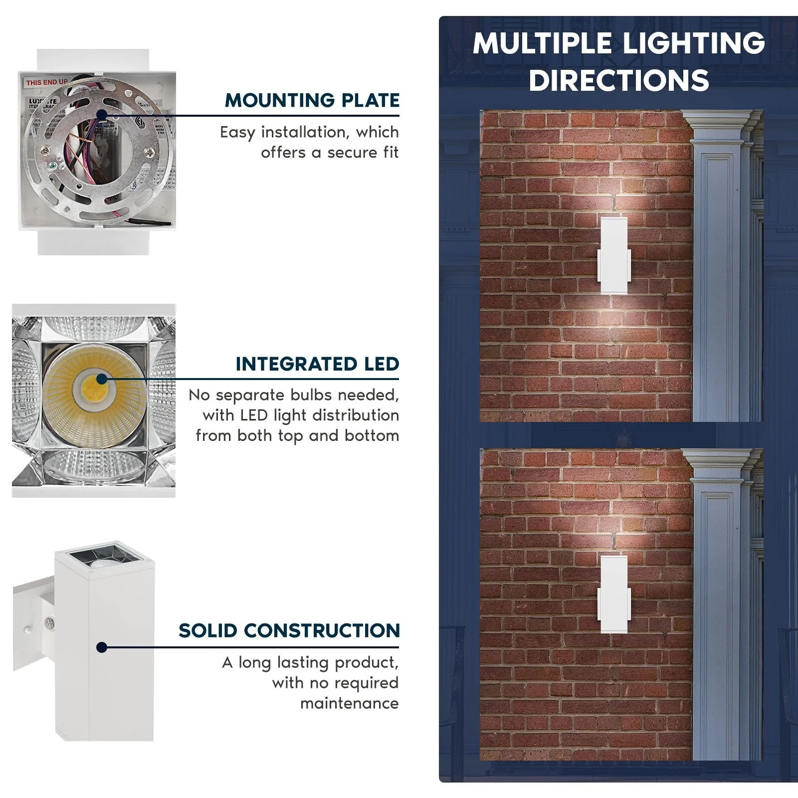Luxrite Dusk to Dawn LED Outdoor Wall Light 10 in. 3CCT Wall Sconce 15/20/24W Dimmable IP65 ETL