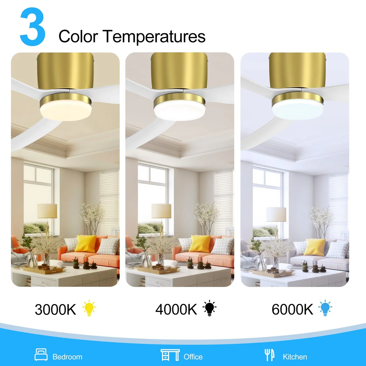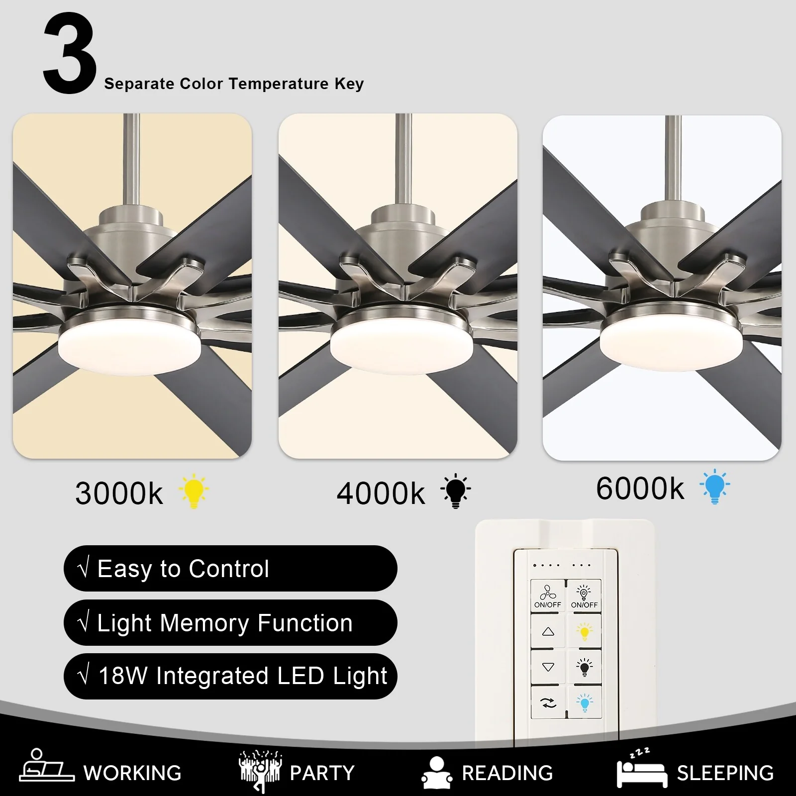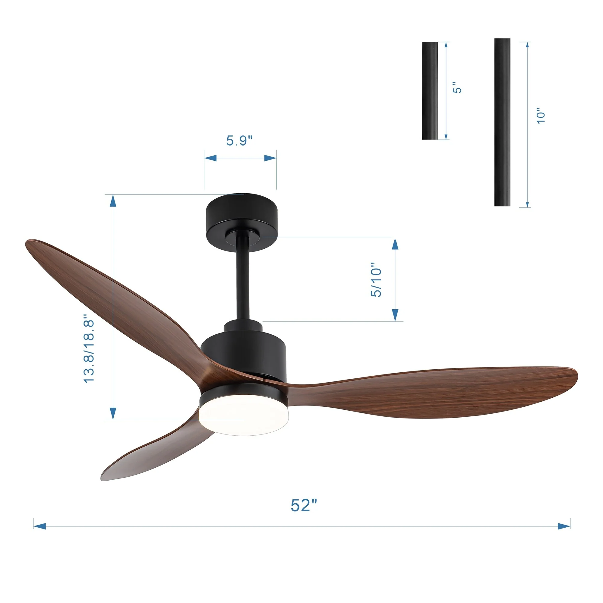52 Inch LED Ceiling Fan with Lights Remote(3-Blade)