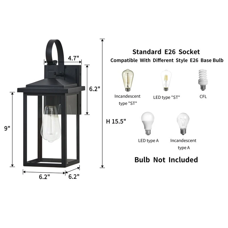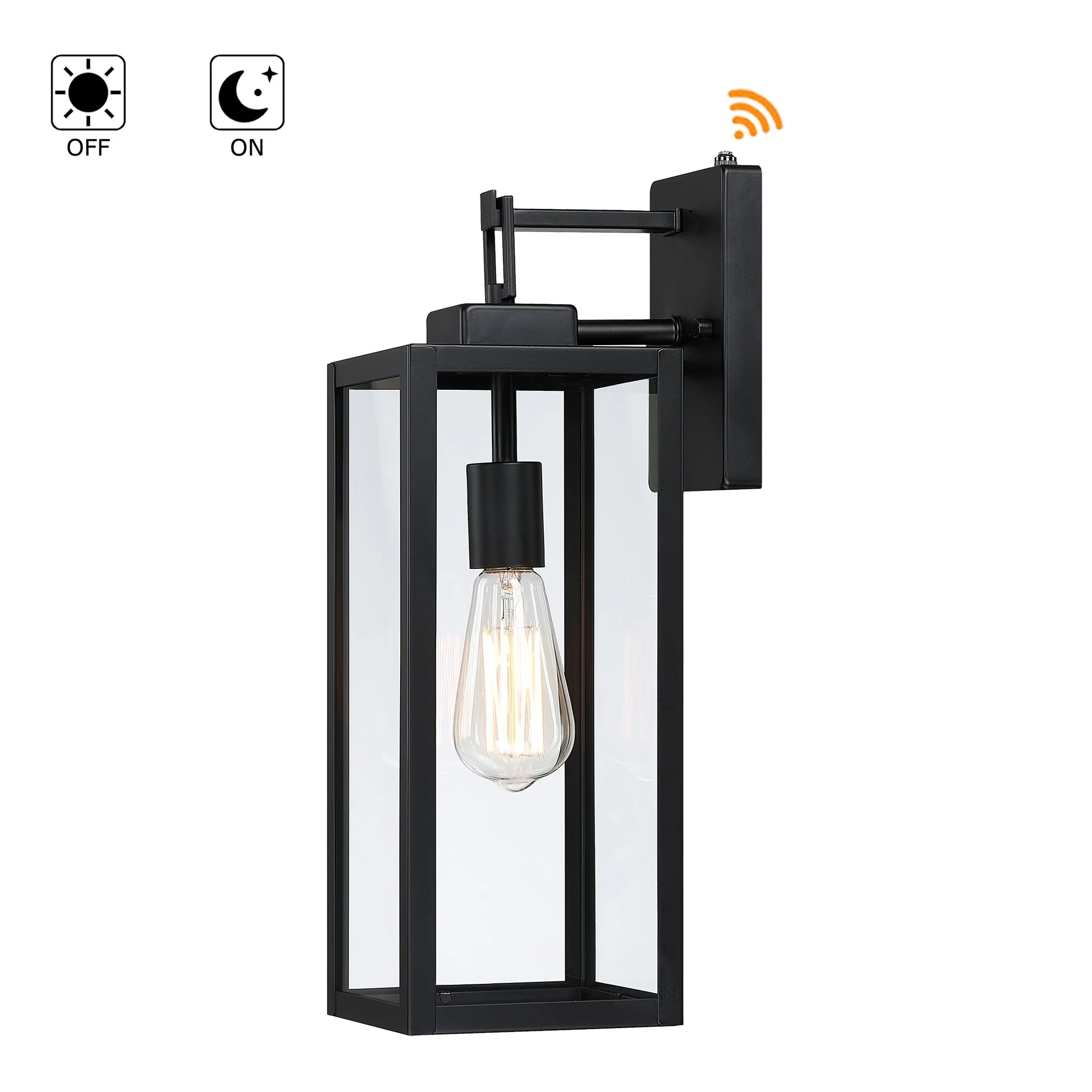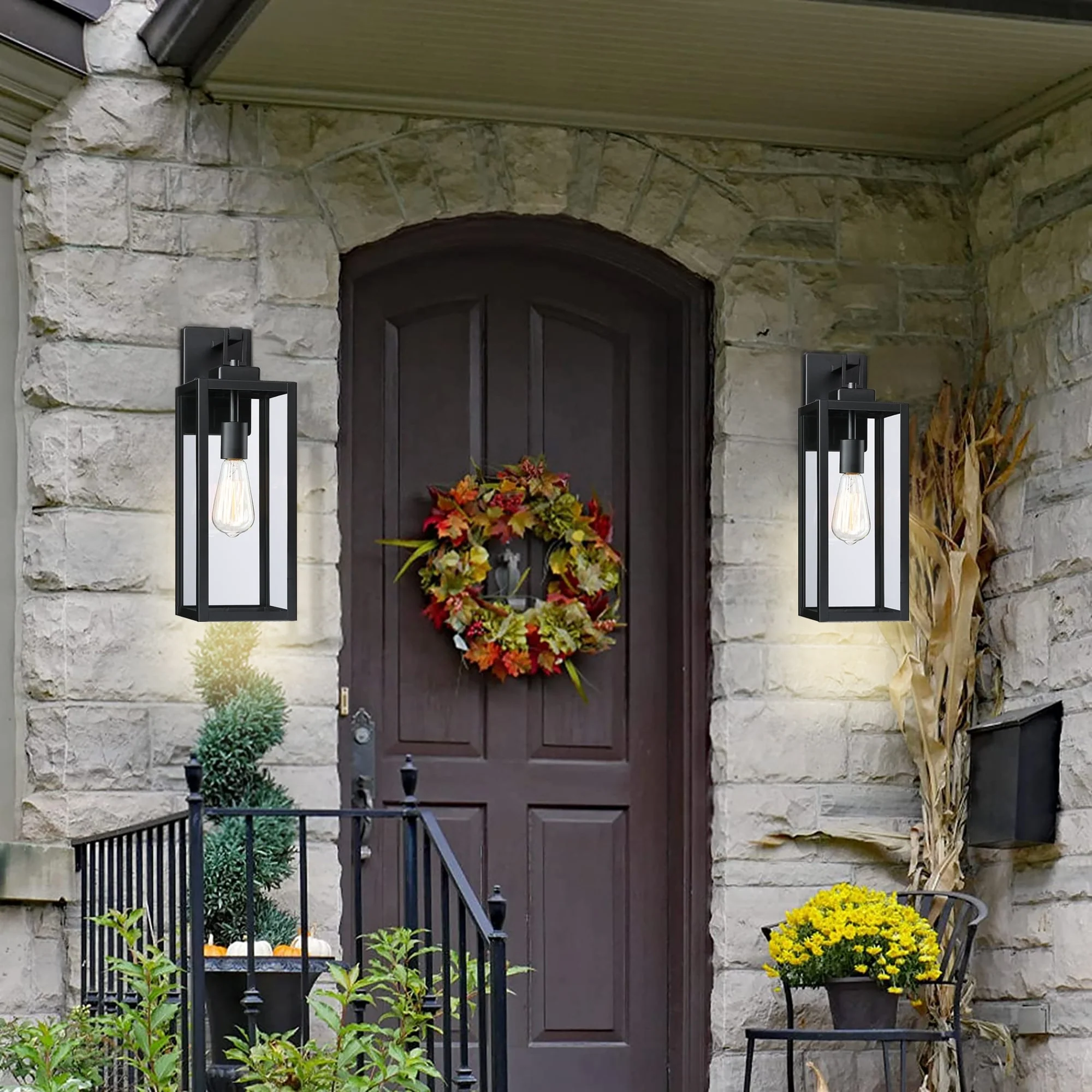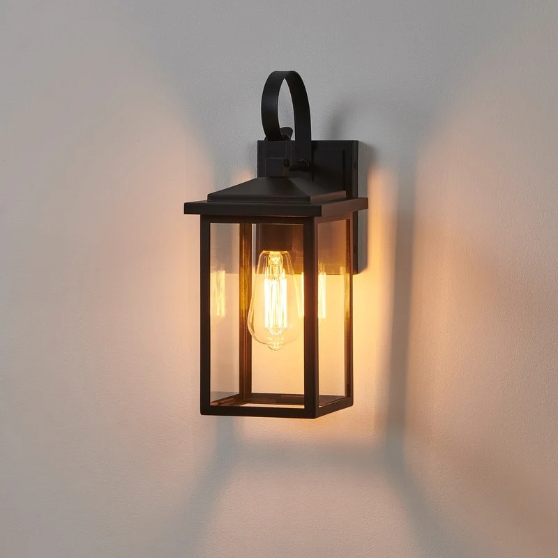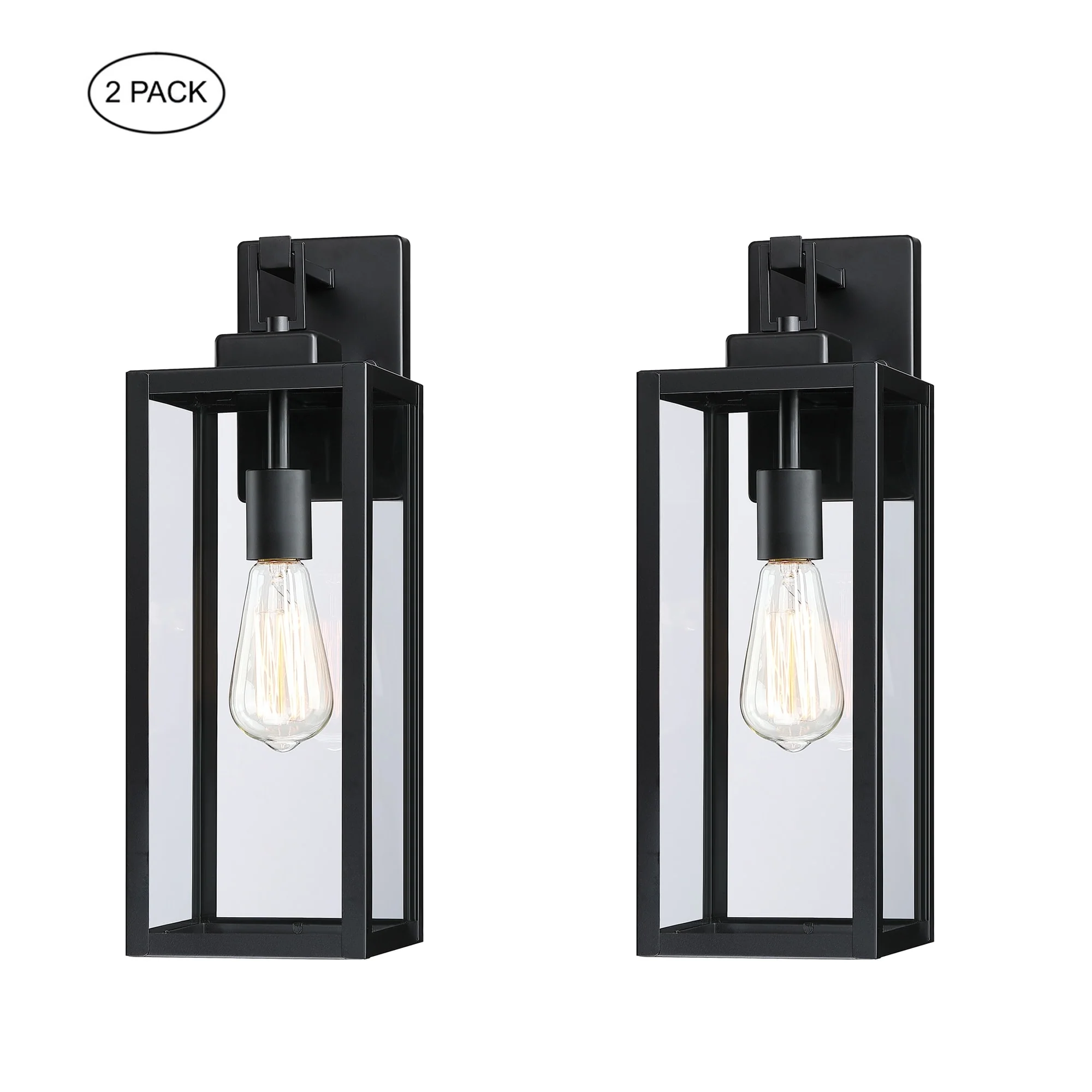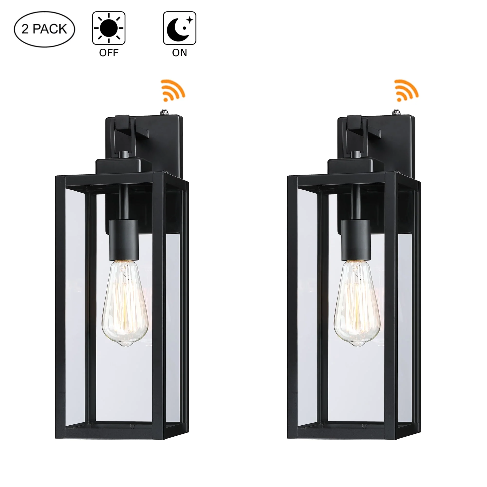 2-pack 1-Light 18 inch Matte Black Outdoor Wall Lantern with Clear Glass Shade(dusk to dawn could be chosen)