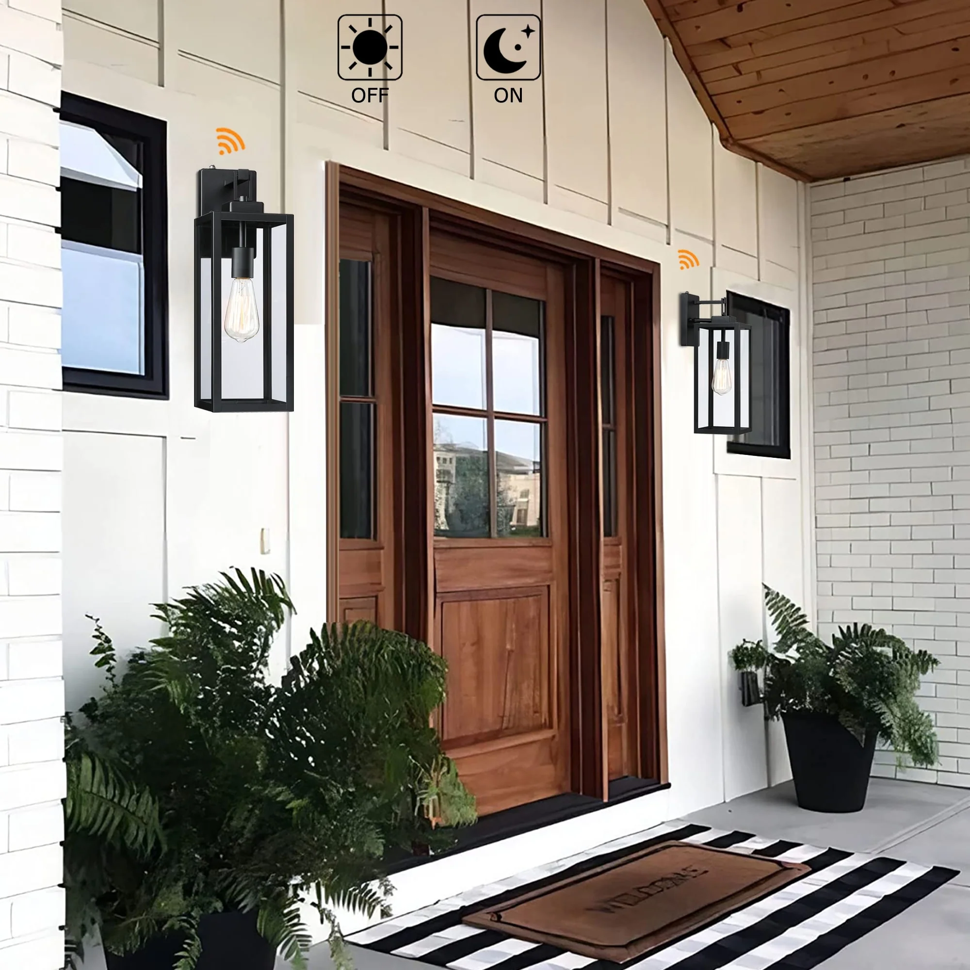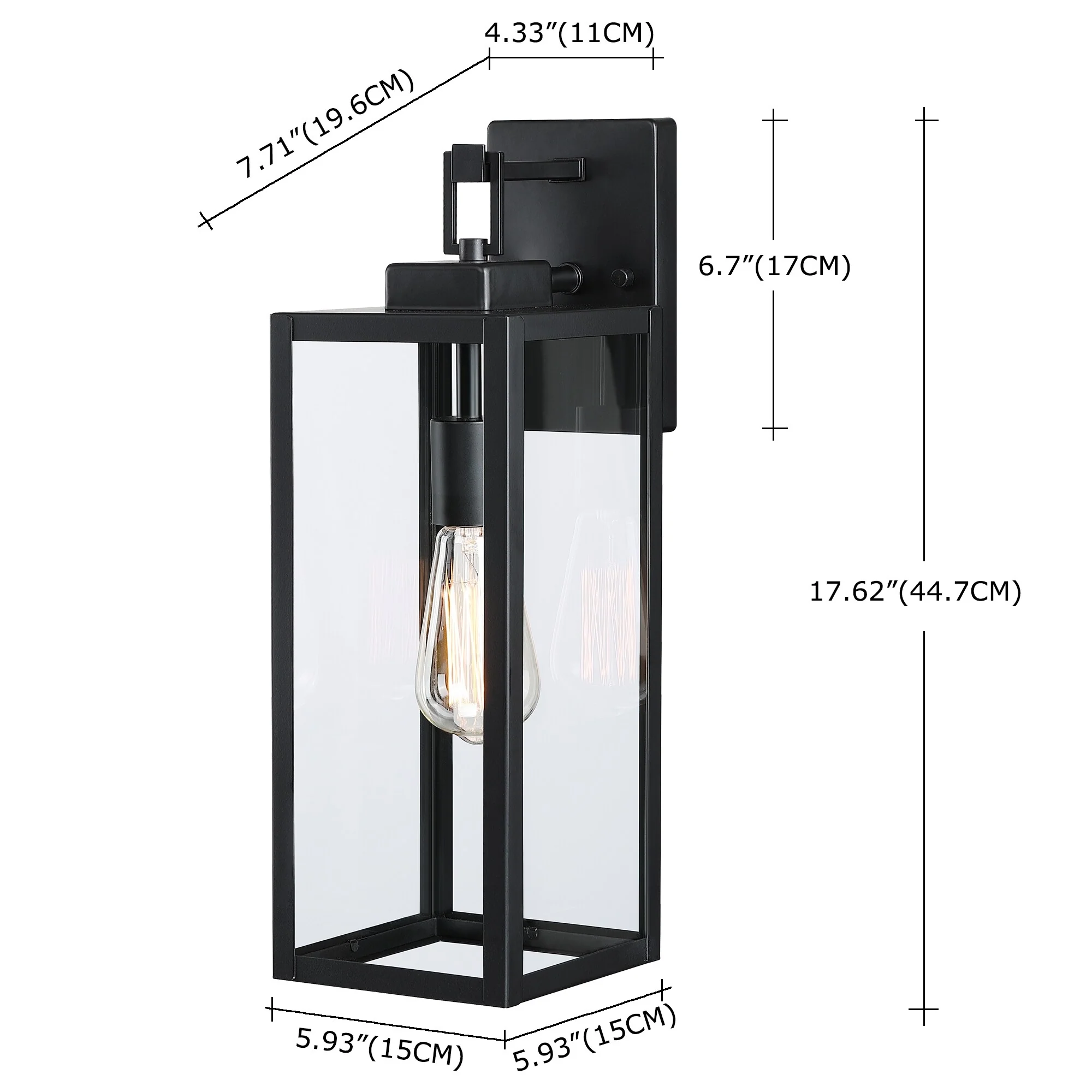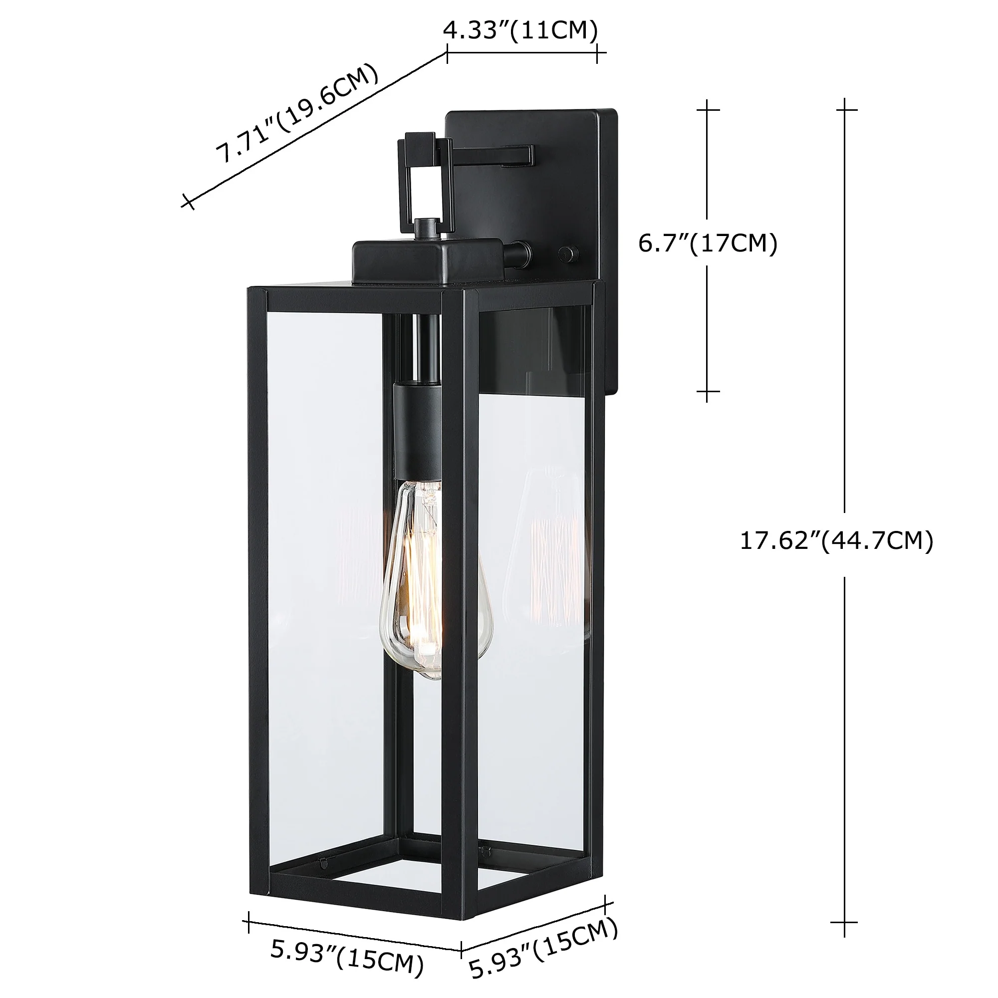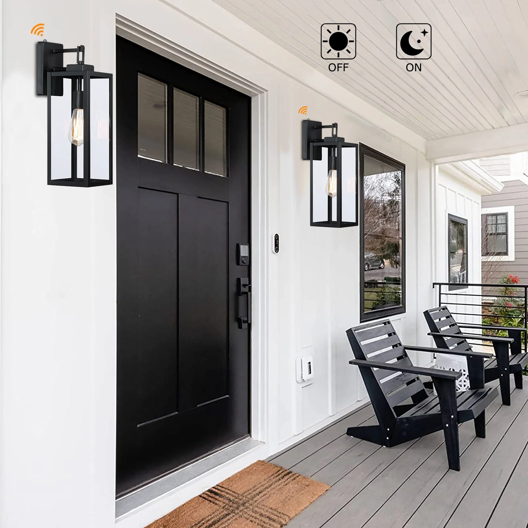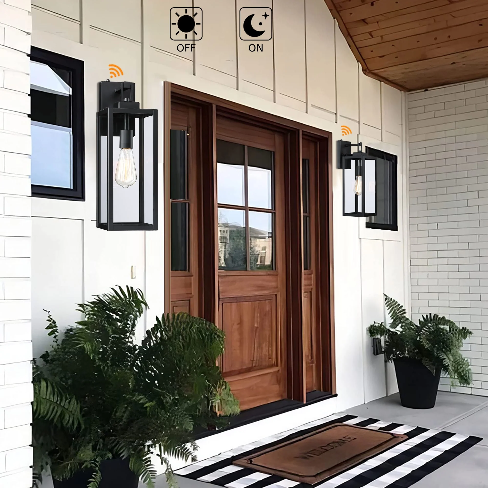 2-pack 1-Light 18 inch Matte Black Outdoor Wall Lantern with Clear Glass Shade(dusk to dawn could be chosen)