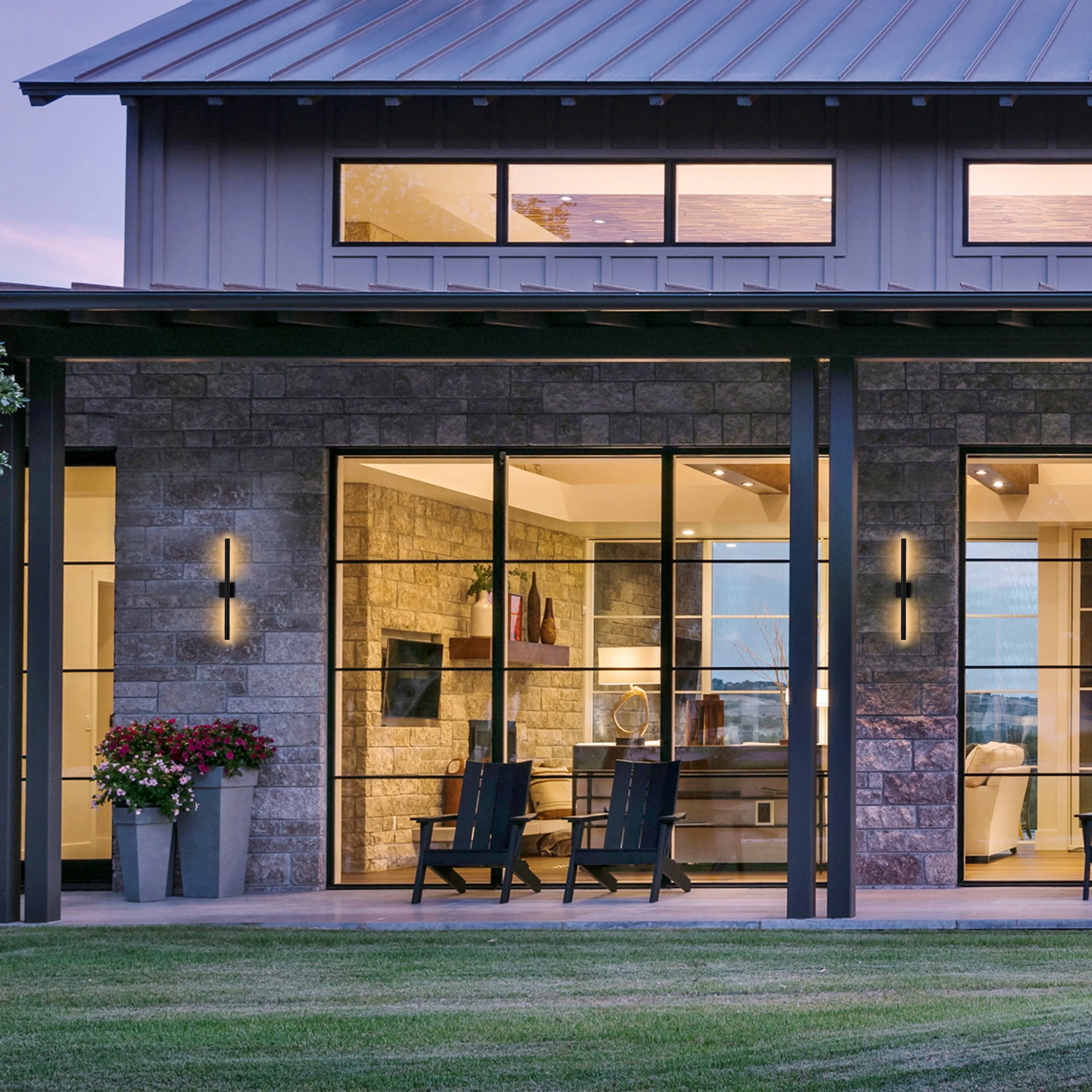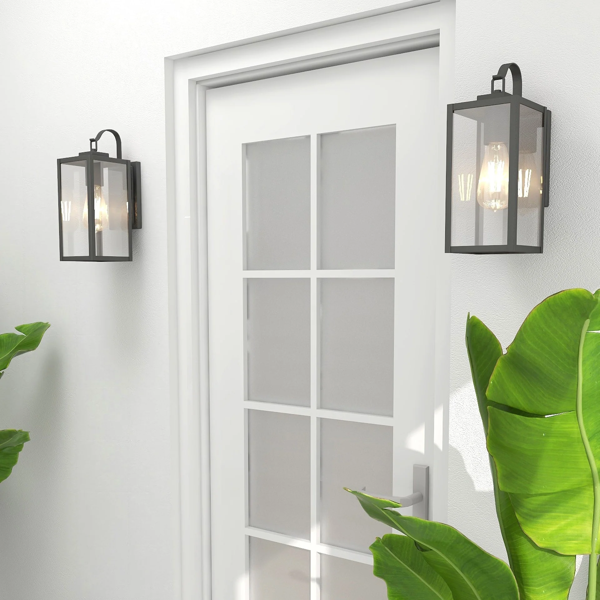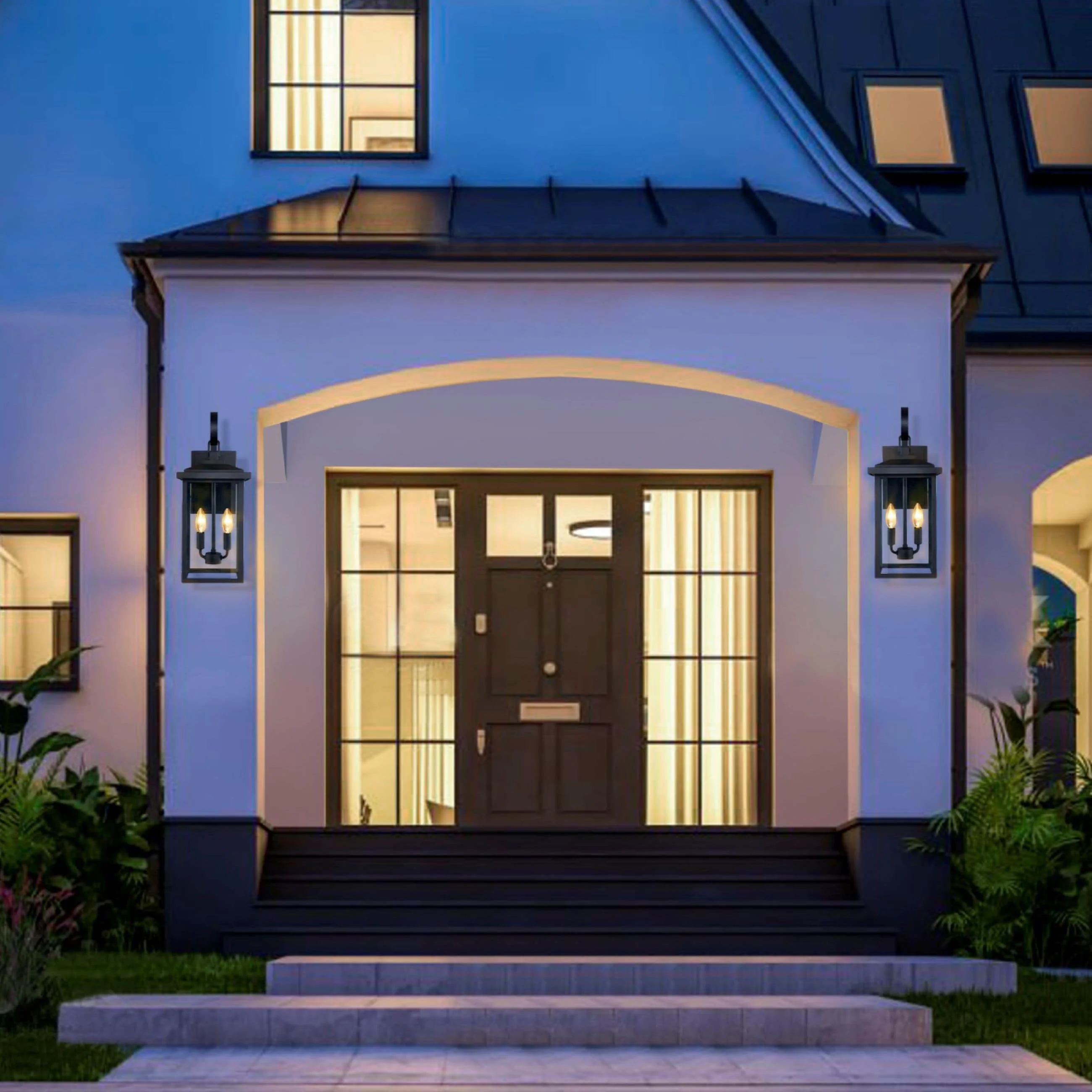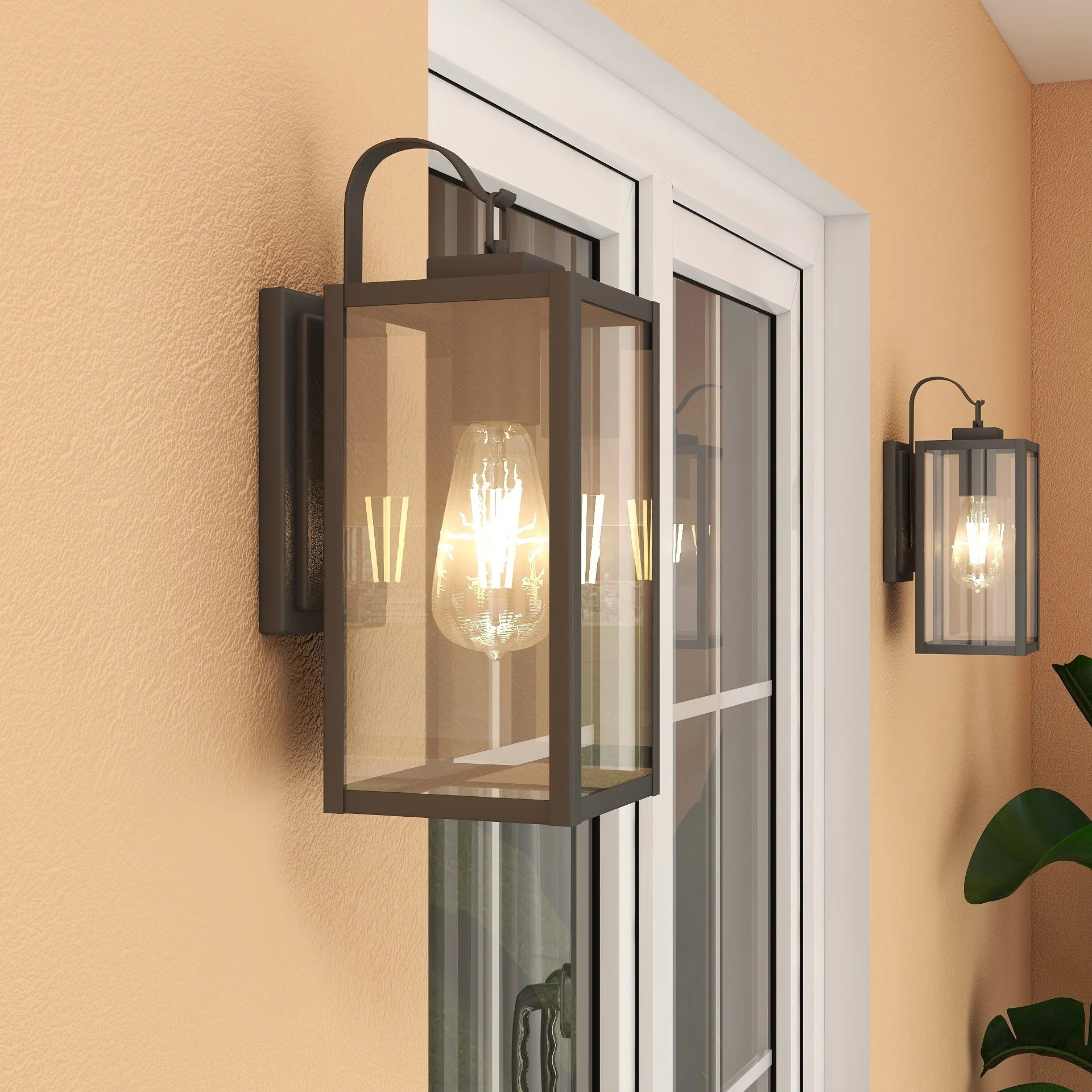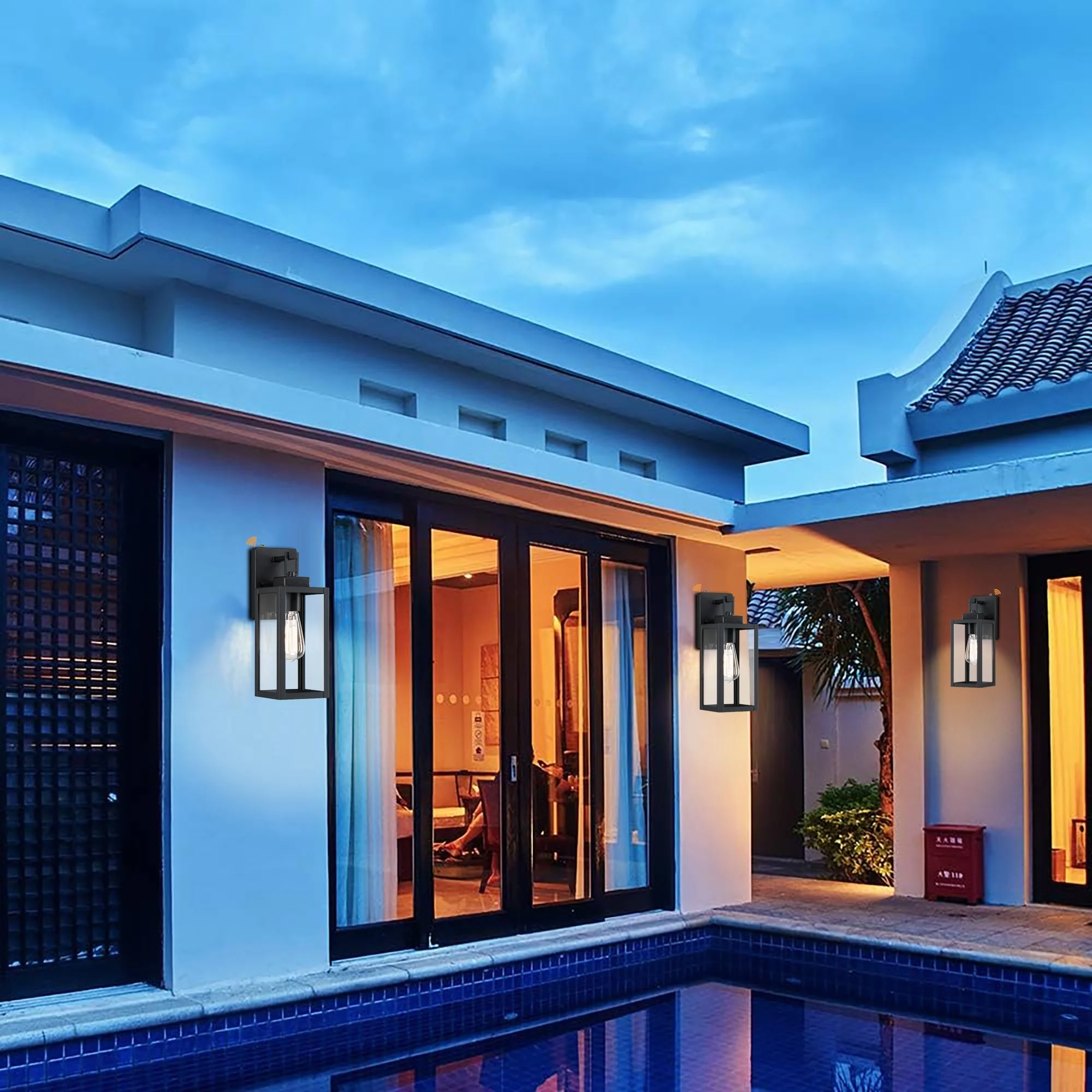 2-pack 1-Light 18 inch Matte Black Outdoor Wall Lantern with Clear Glass Shade(dusk to dawn could be chosen)