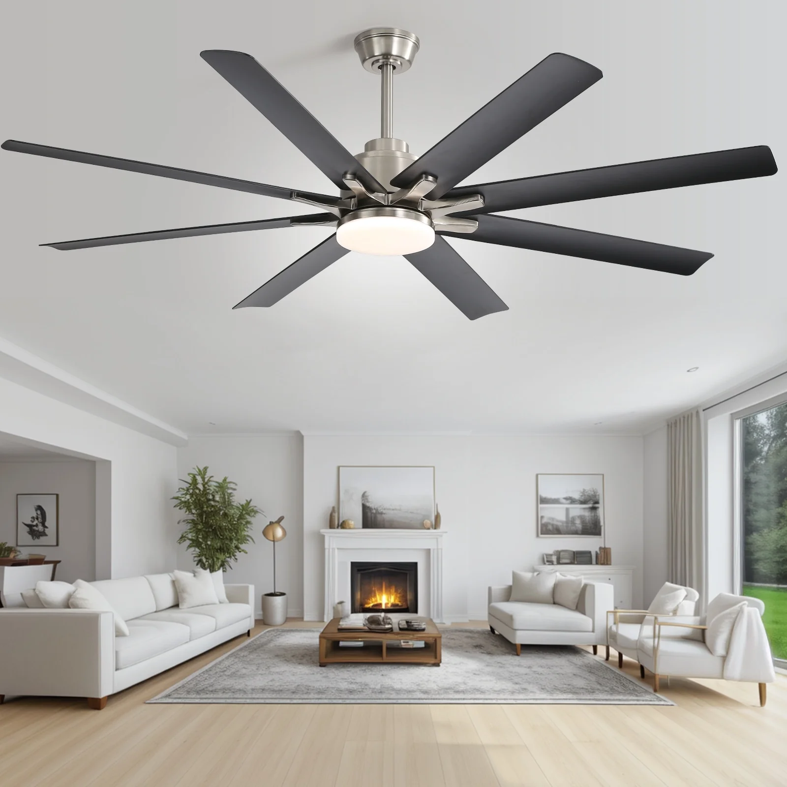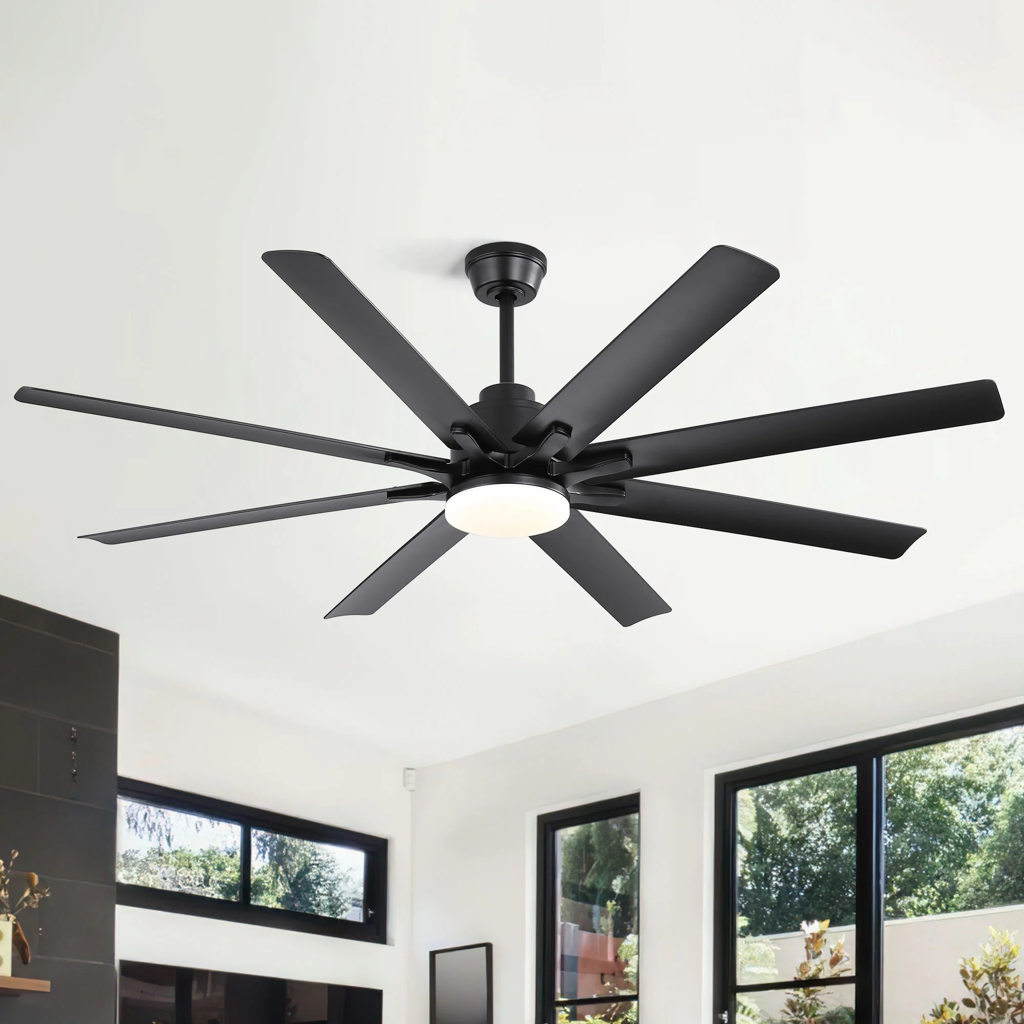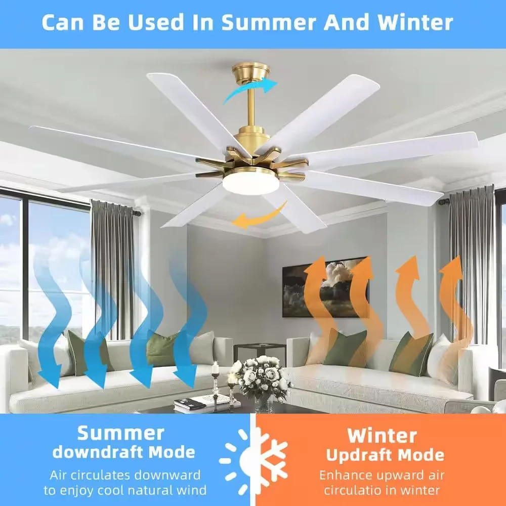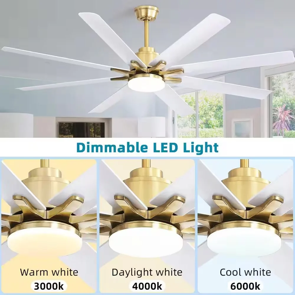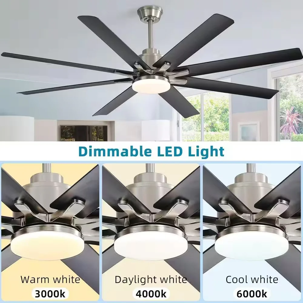 66" Large Smart Windmill Ceiling Fan with Light, Remote/APP Control, Dimmable LED Included