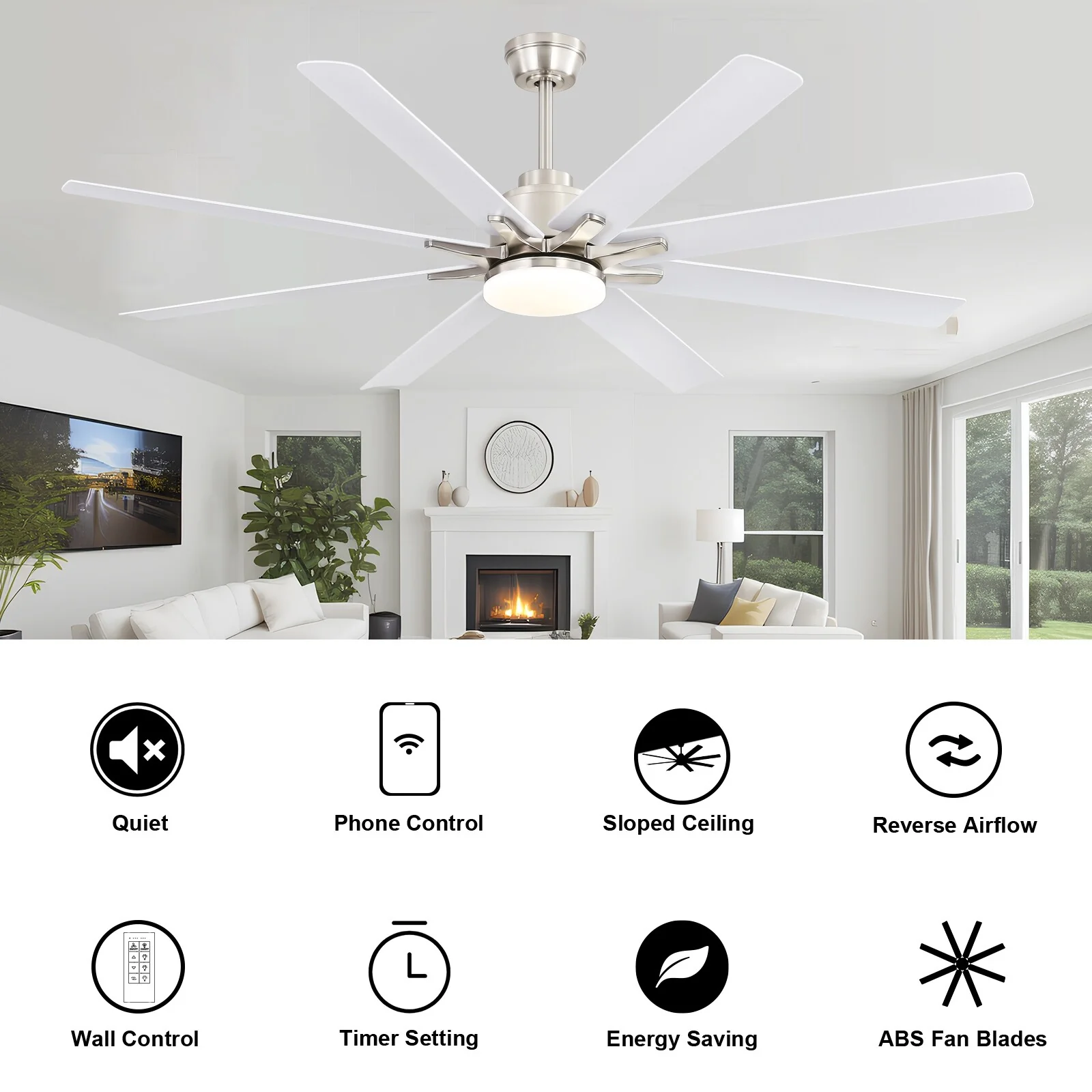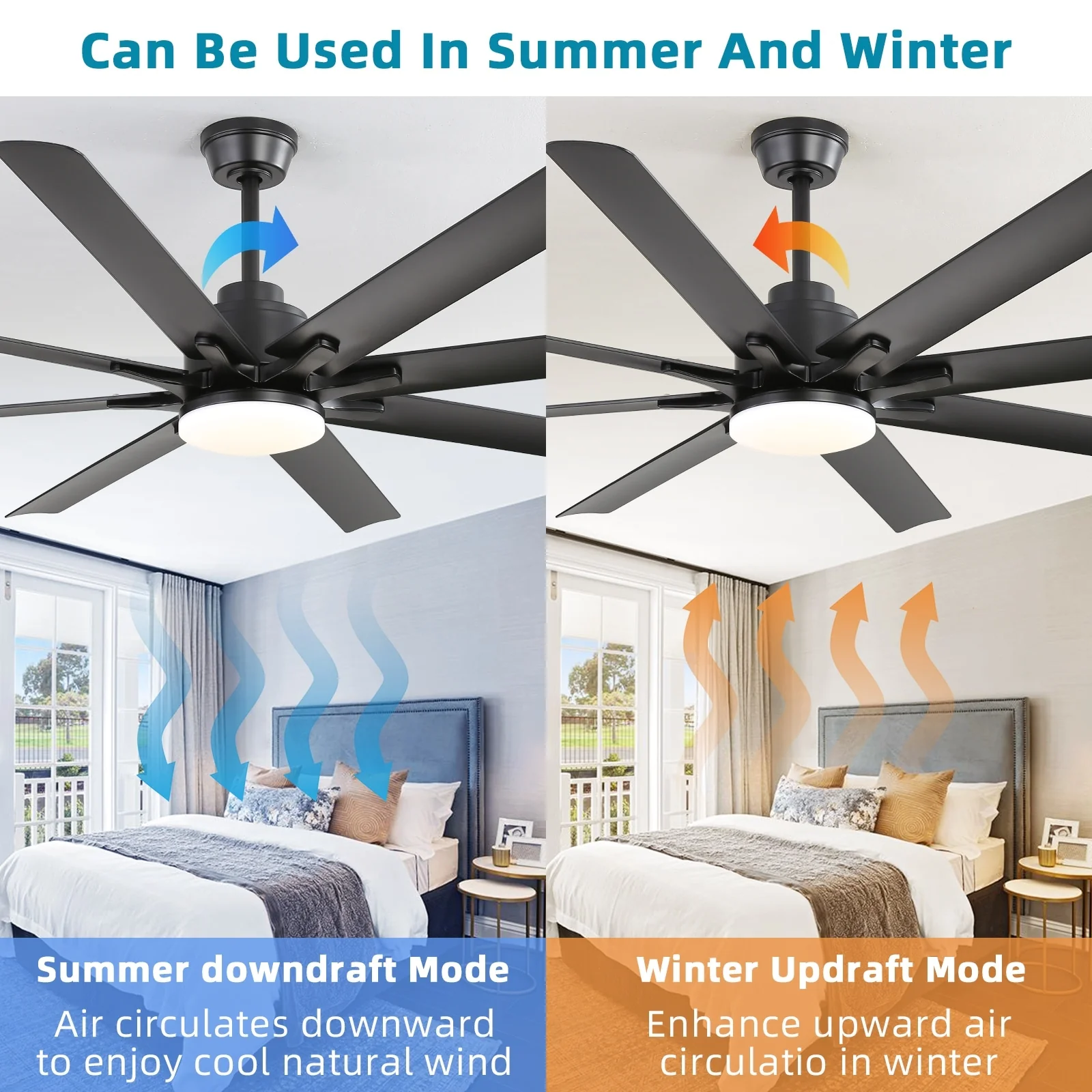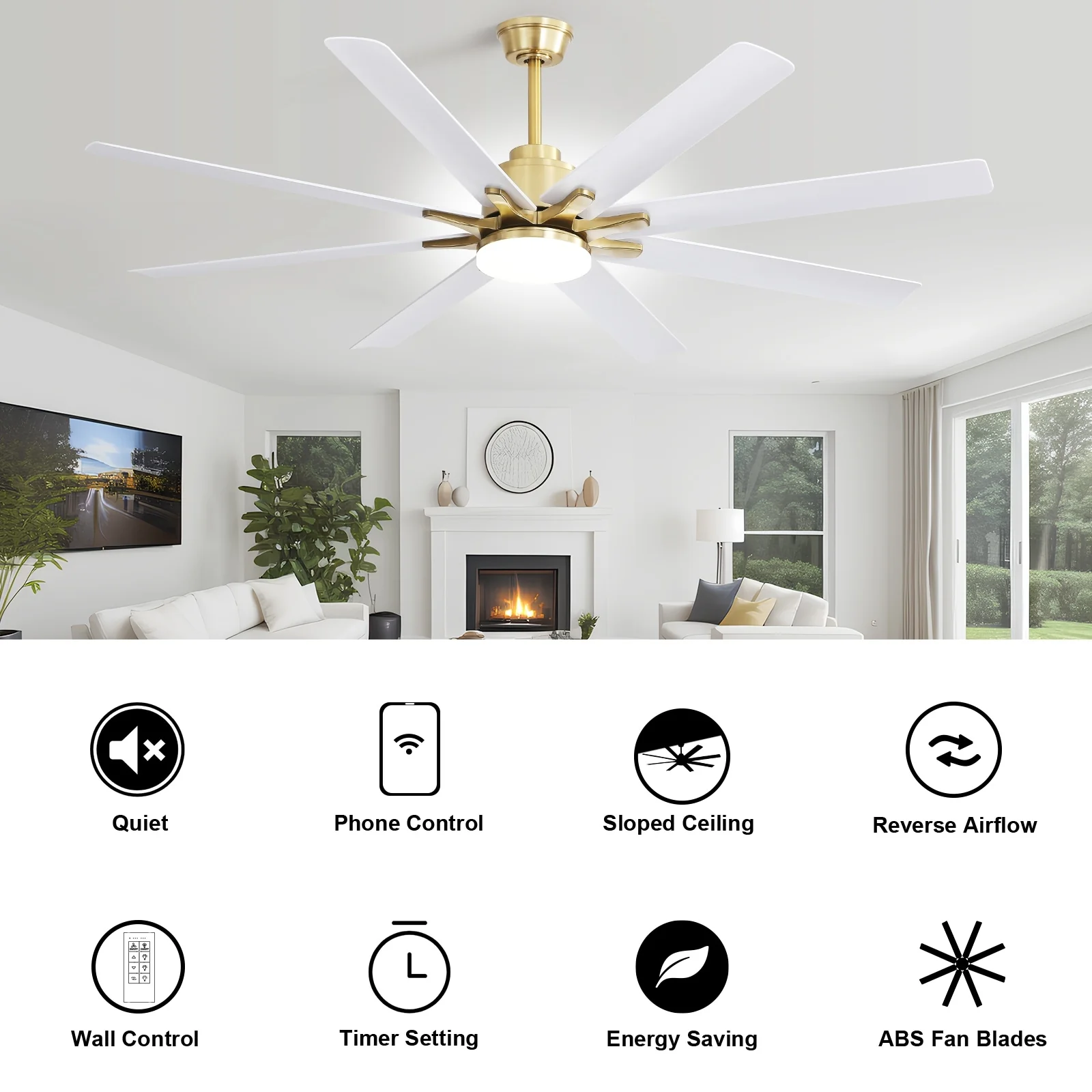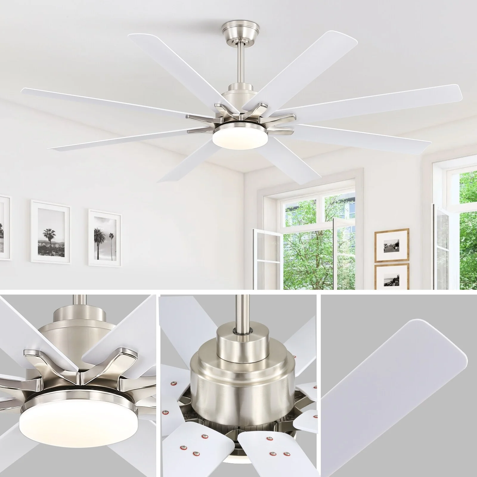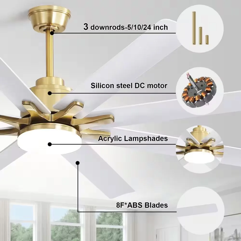 66" Large Smart Windmill Ceiling Fan with Light, Remote/APP Control, Dimmable LED Included