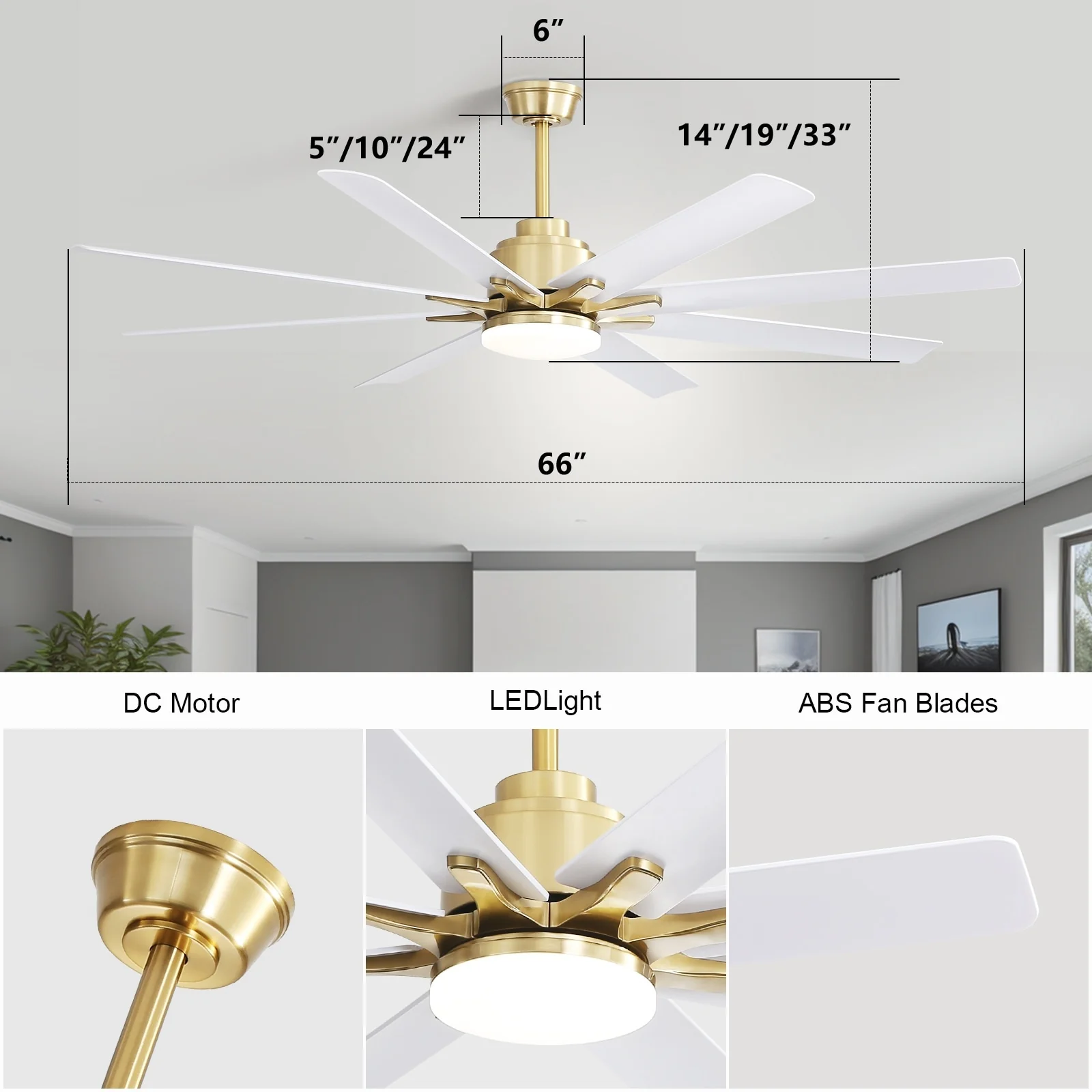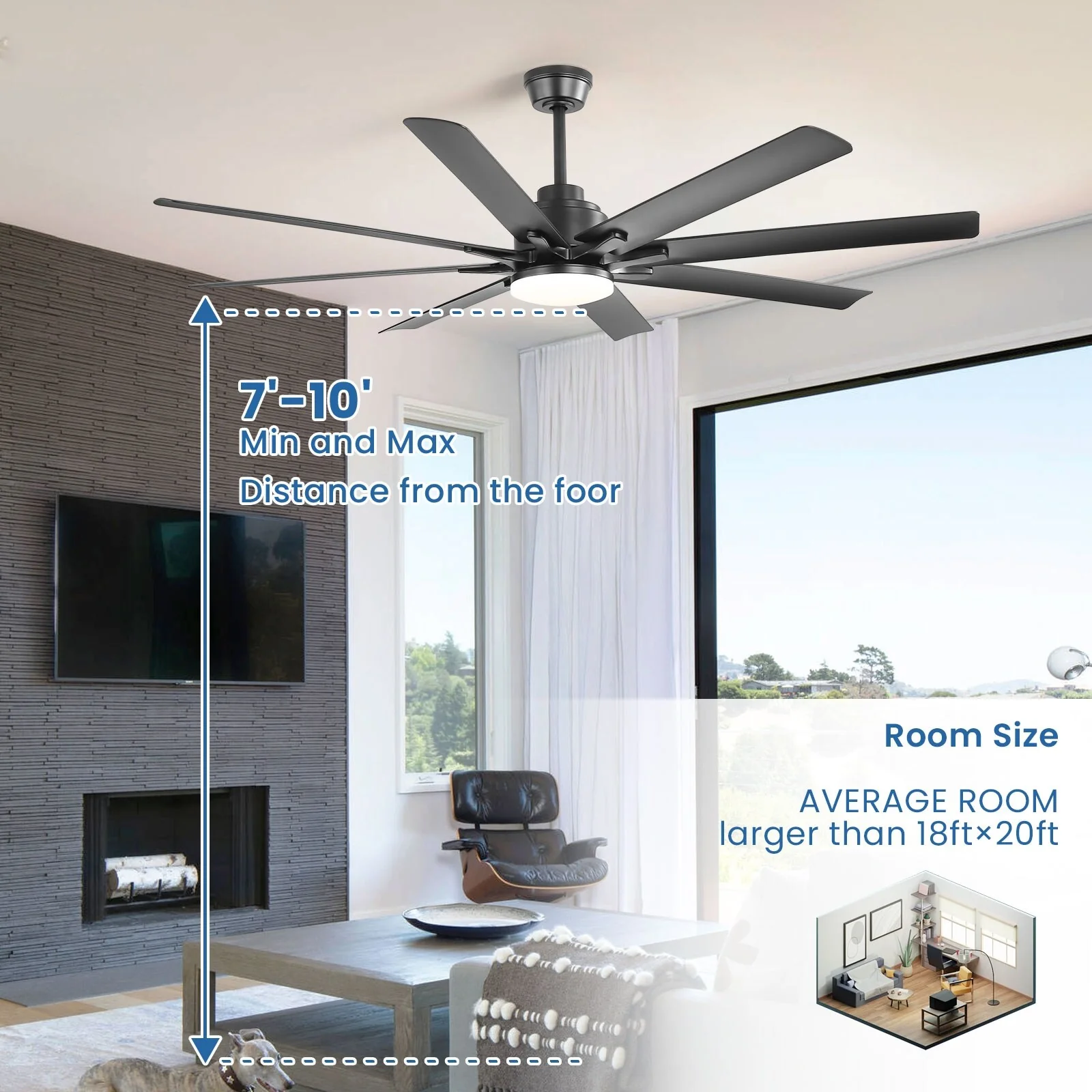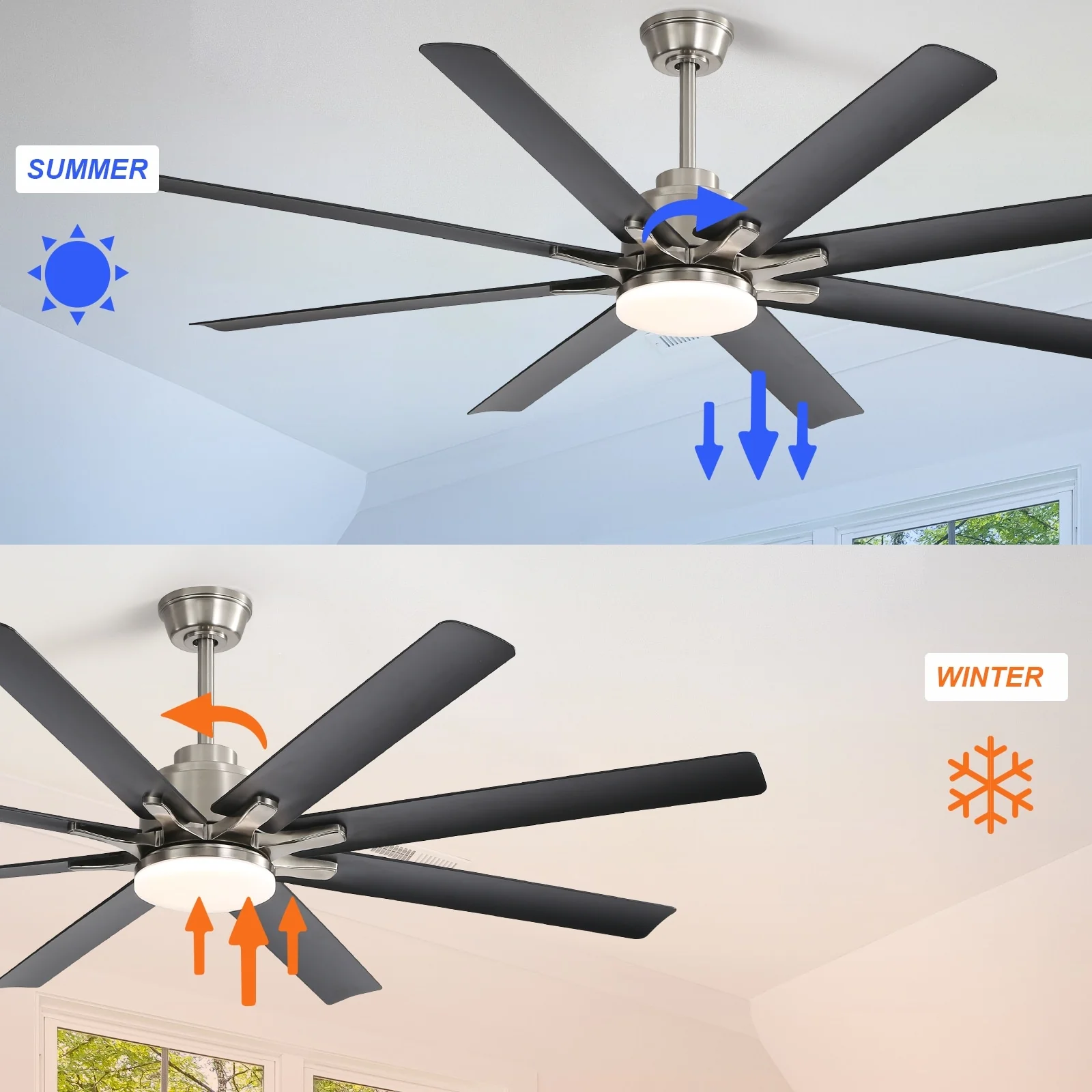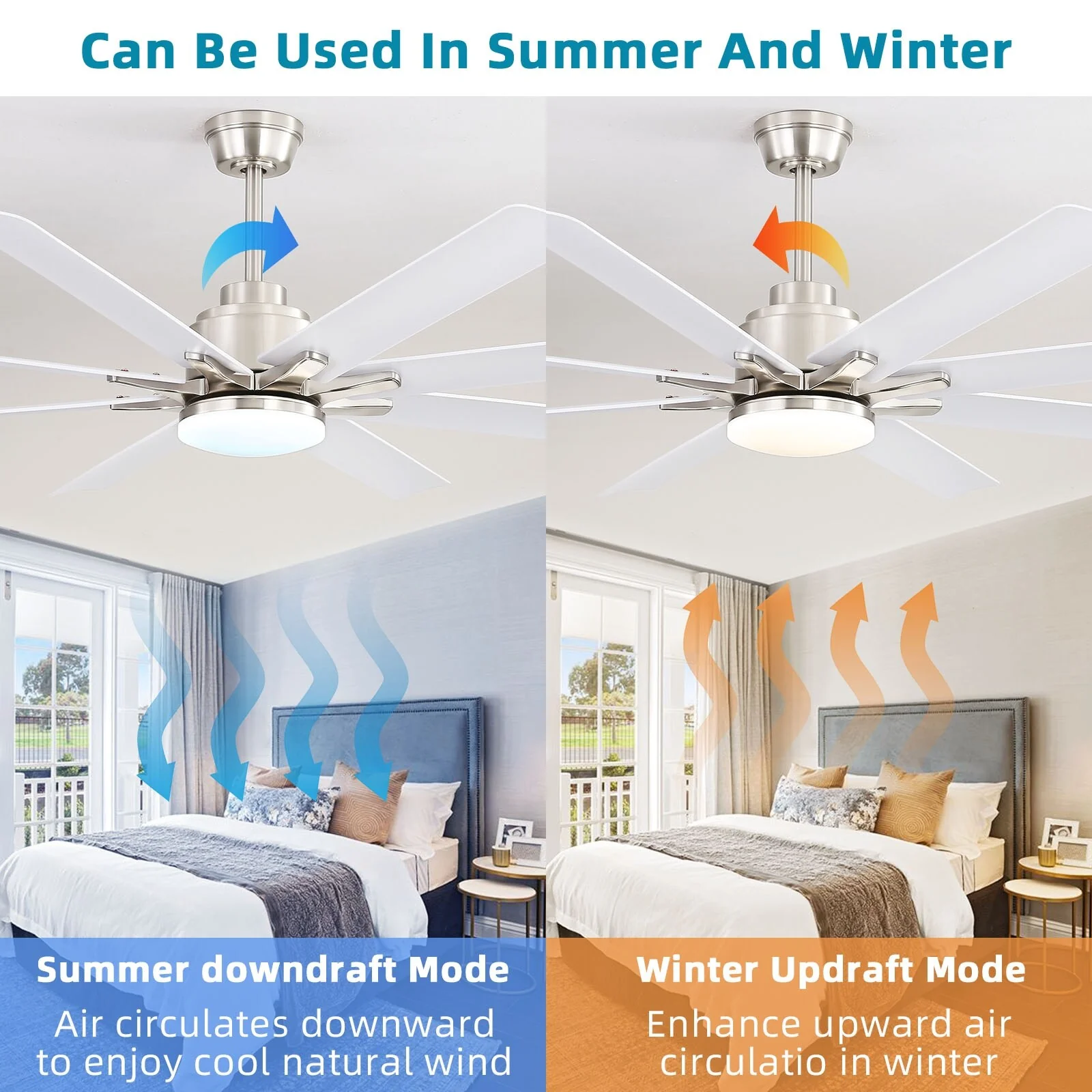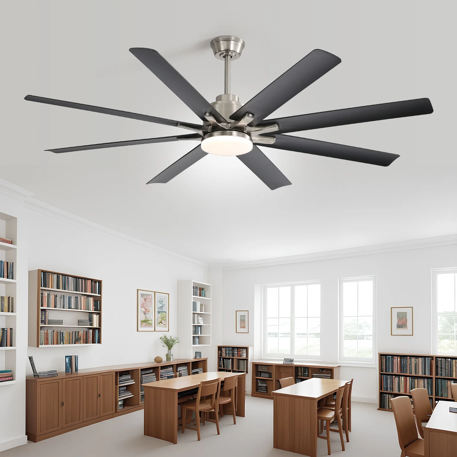 66" Large Smart Windmill Ceiling Fan with Light, Remote/APP Control, Dimmable LED Included