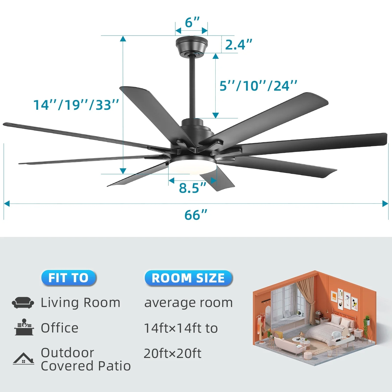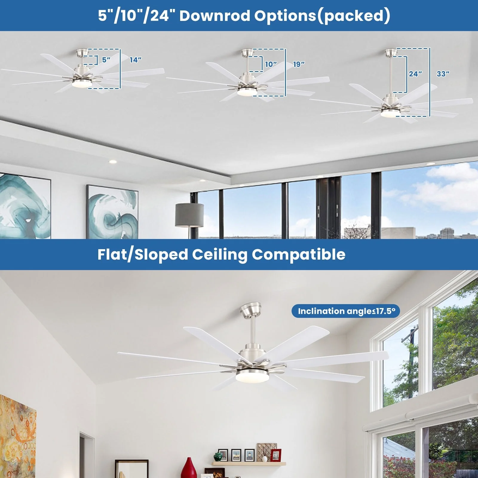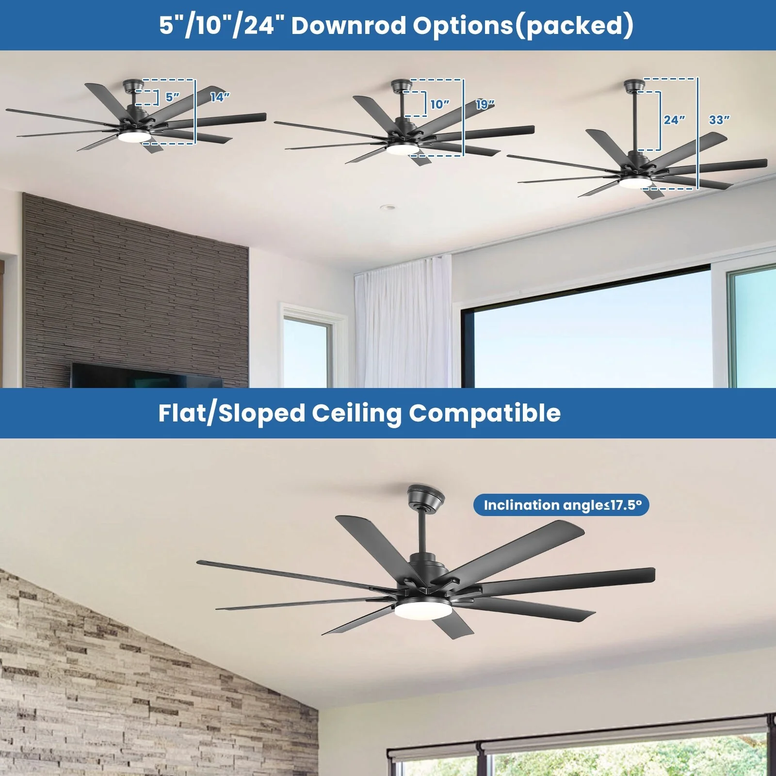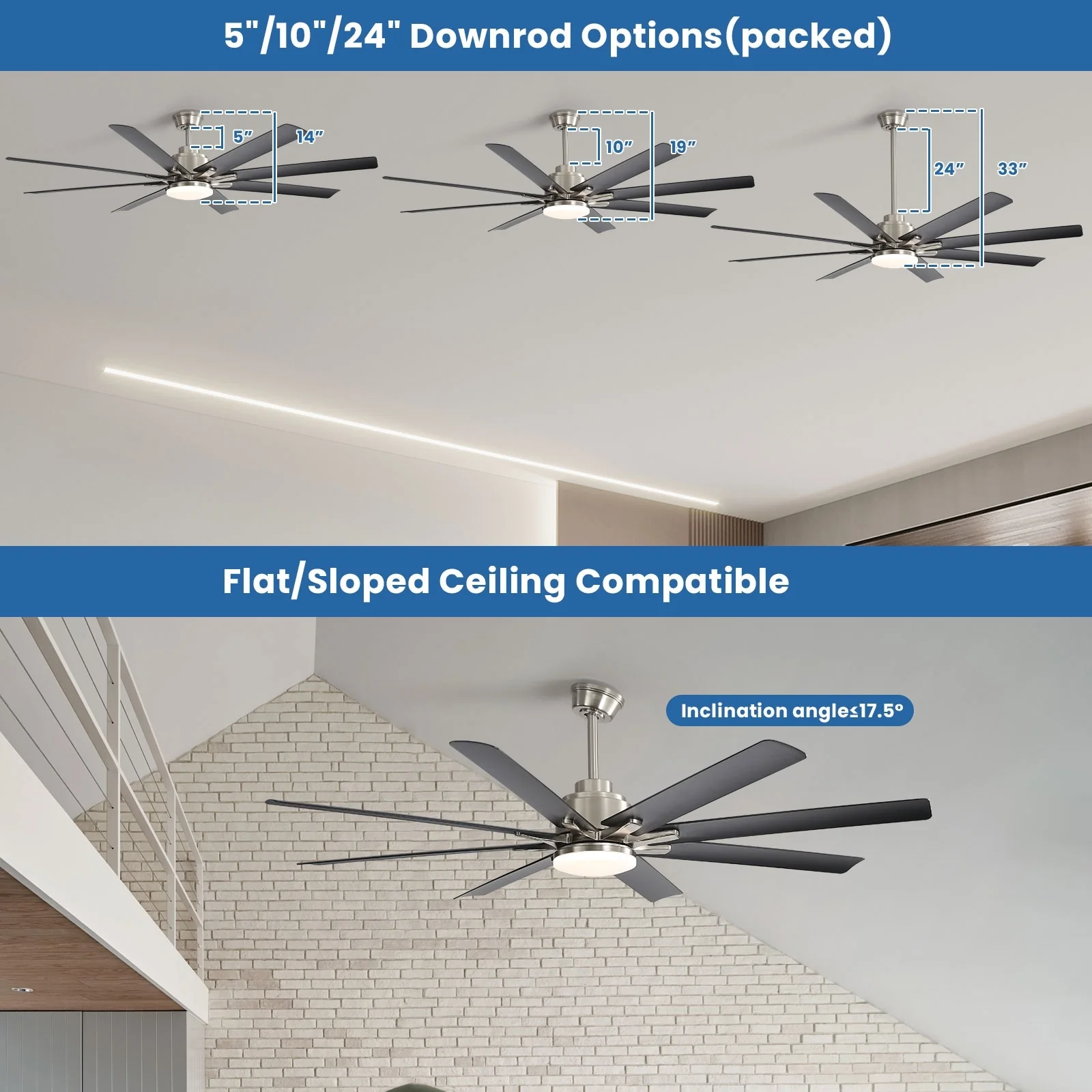 66" Large Smart Windmill Ceiling Fan with Light, Remote/APP Control, Dimmable LED Included