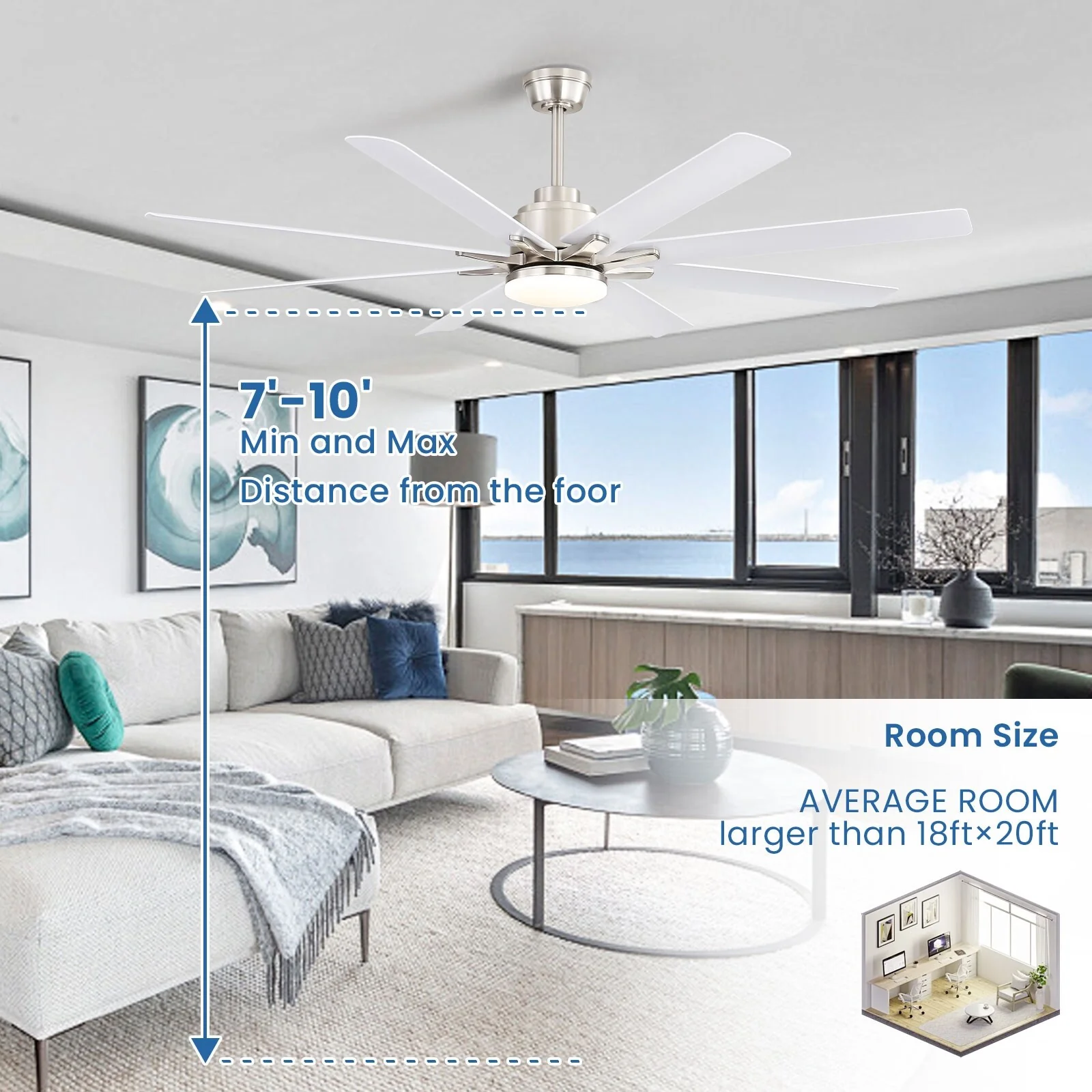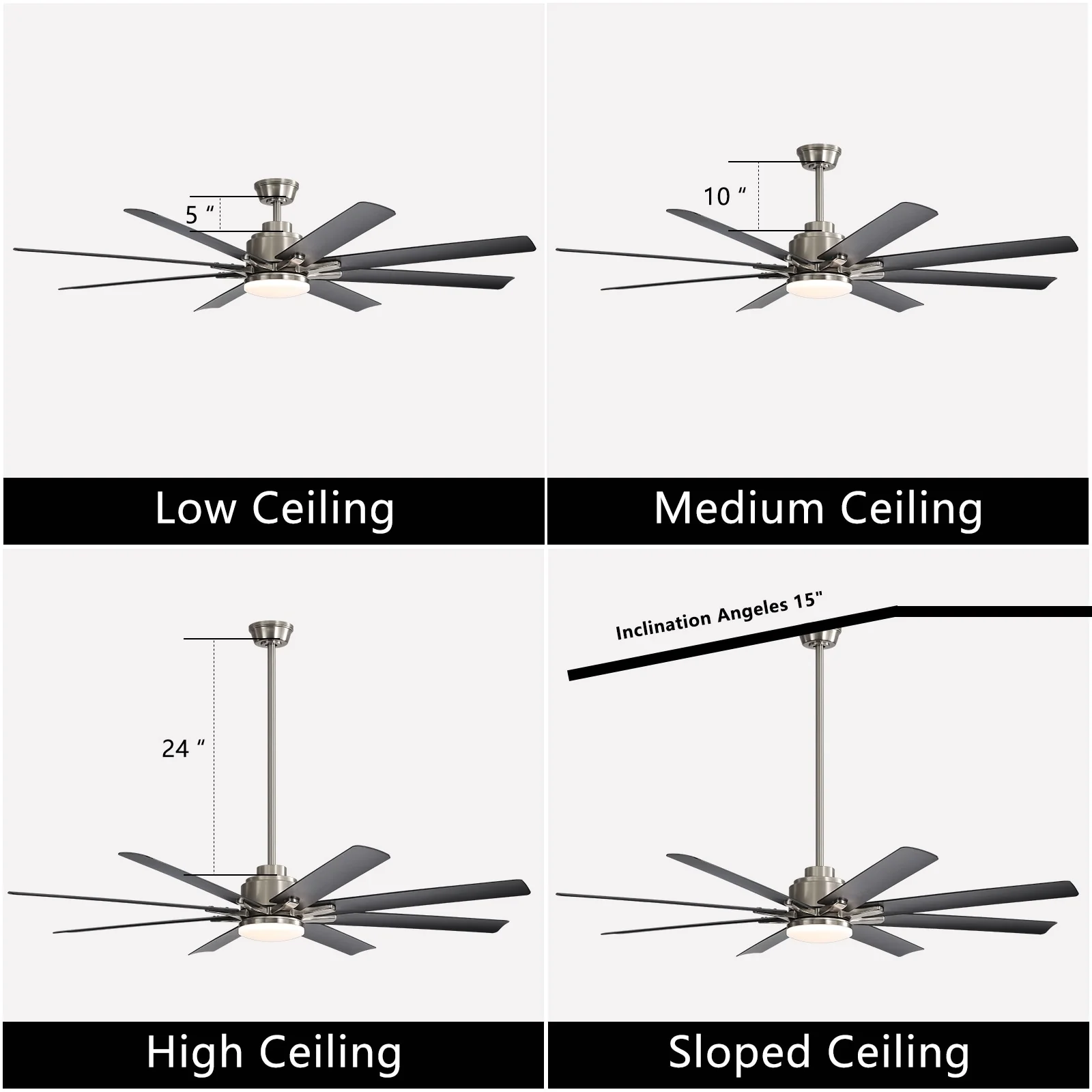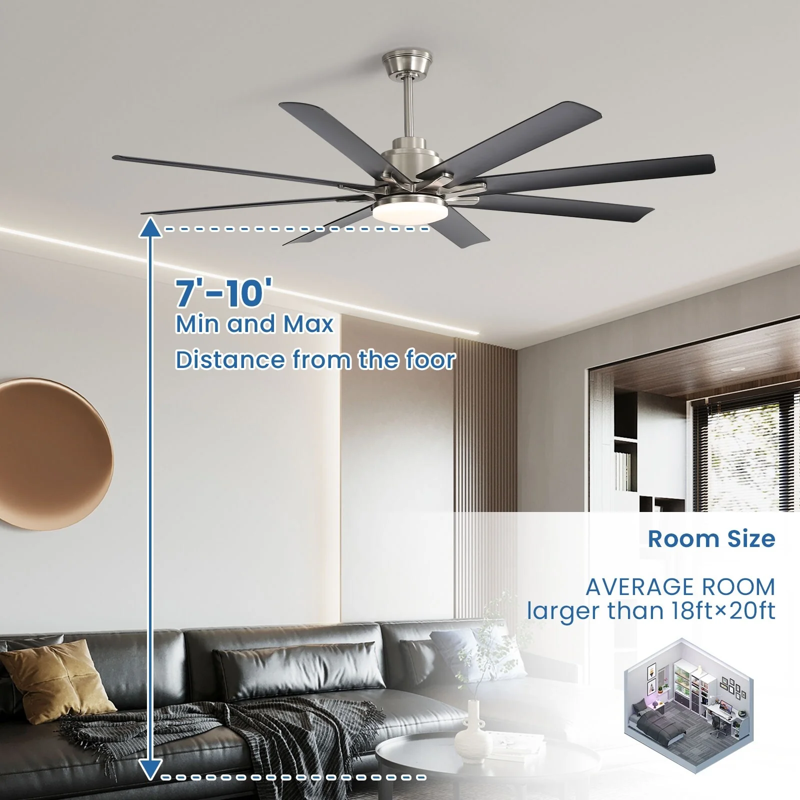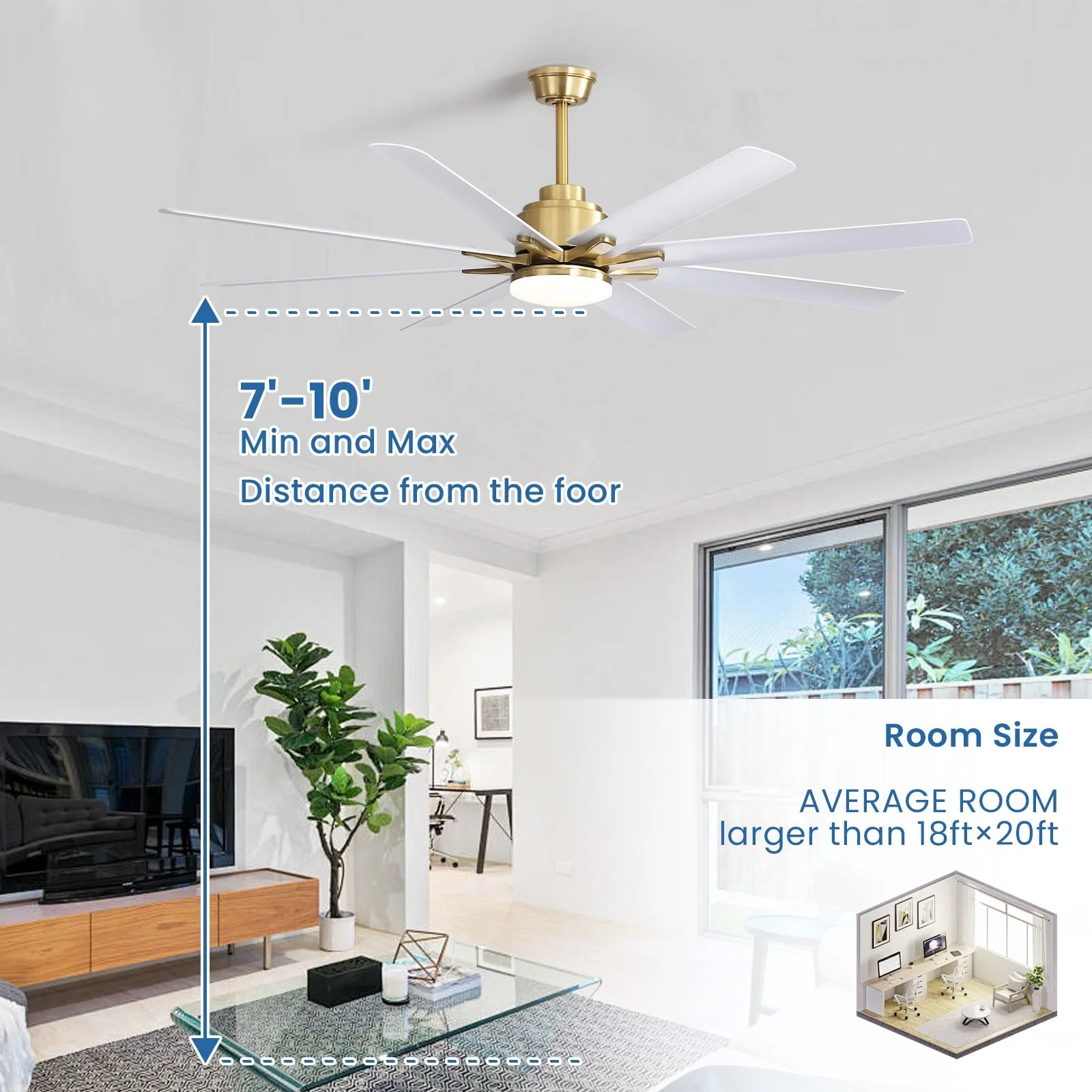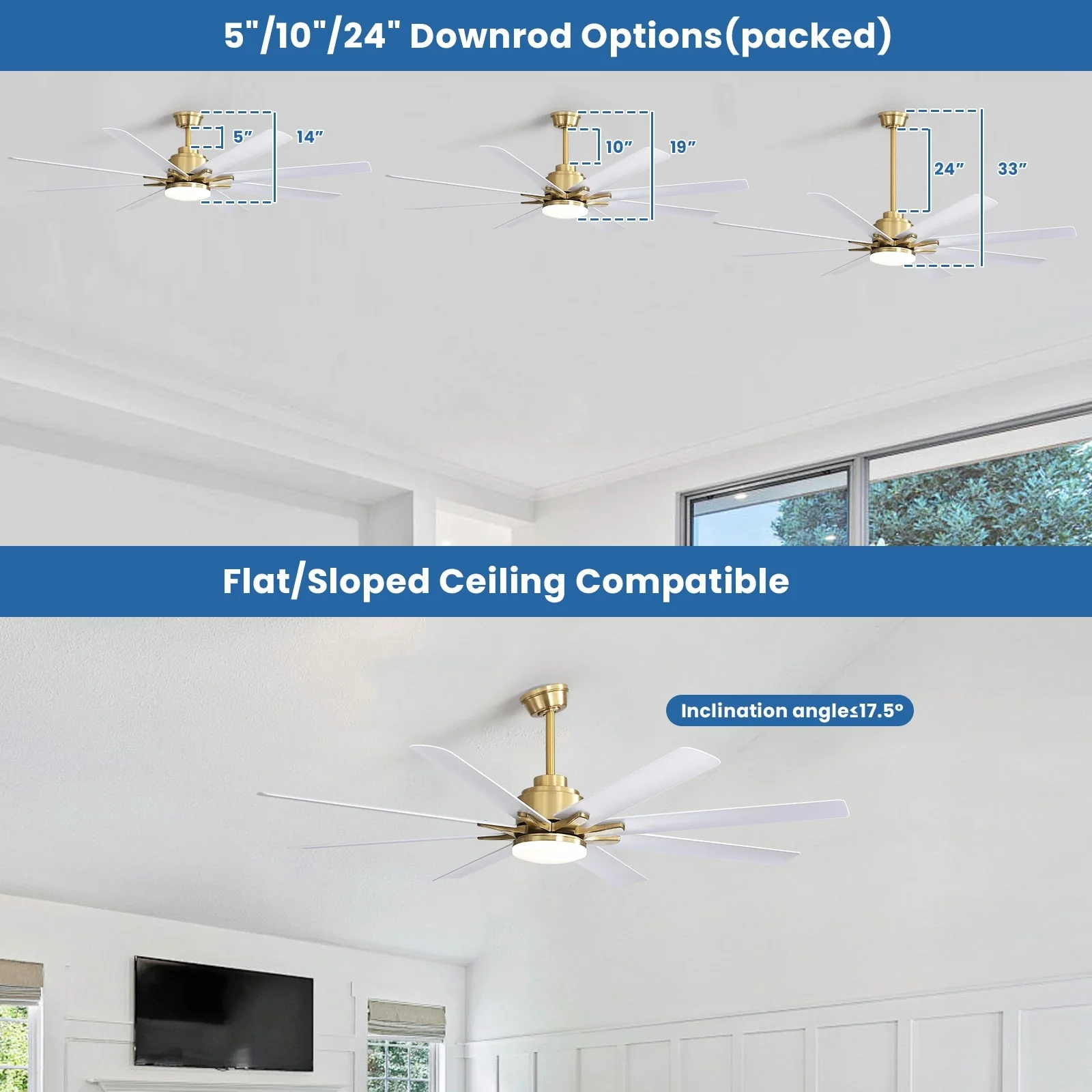 66" Large Smart Windmill Ceiling Fan with Light, Remote/APP Control, Dimmable LED Included